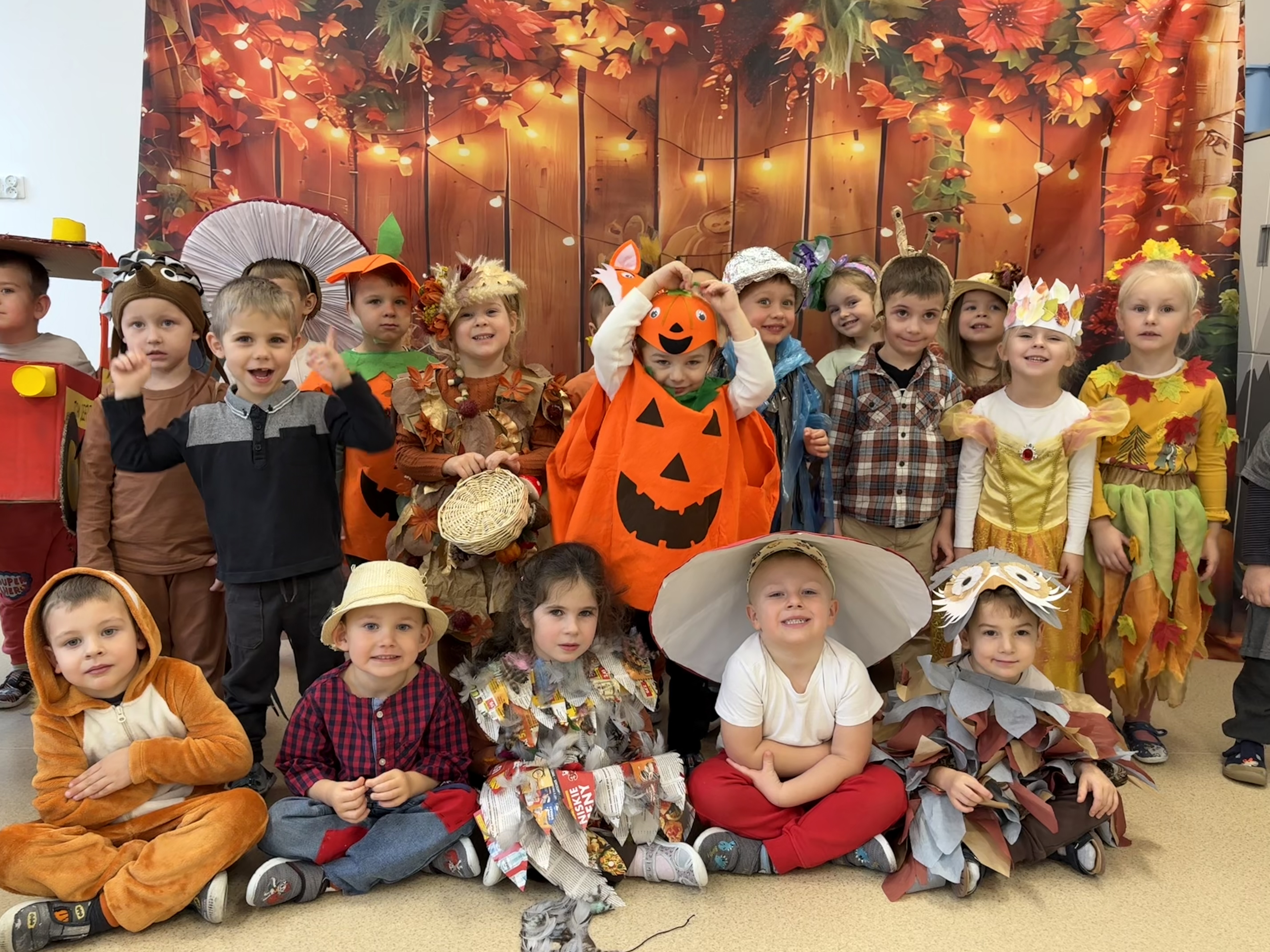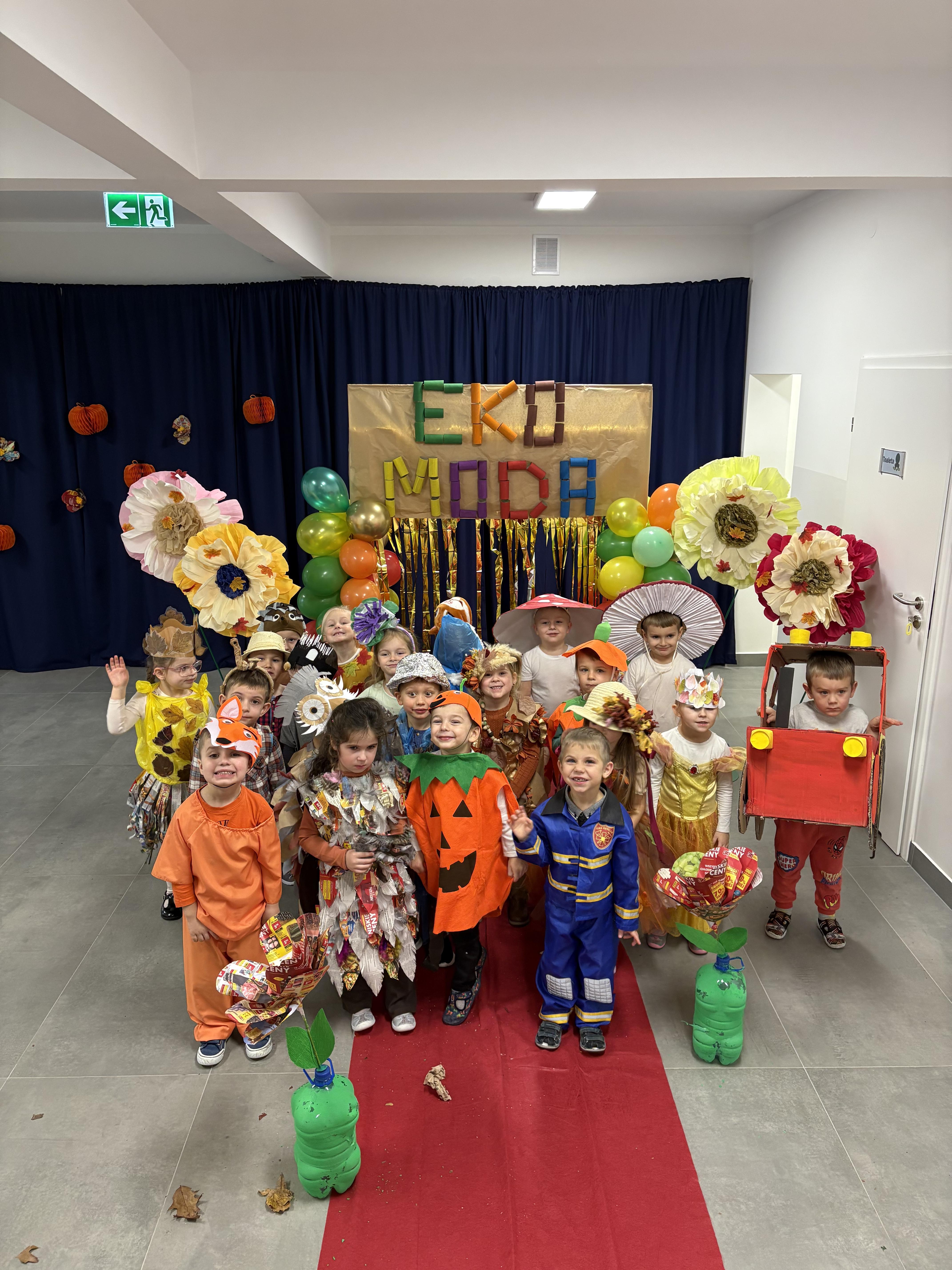 W naszym przedszkolu odbył się wyjątkowy Bal Jesienno-Ekologiczny, który wprowadził dzieci w magiczny świat kolorowej jesieni i twórczego wykorzystywania materiałów ekologicznych. Sale wypełniły się barwami liści, muzyką i radosnym śmiechem, a przedszkolaki zachwyciły wszystkich swoimi pomysłowymi strojami wykonanymi z naturalnych i recyklingowych materiałów. Serdecznie dziękujemy Rodzicom za ogromne zaangażowanie i kreatywność w przygotowaniu ekologicznych strojów.