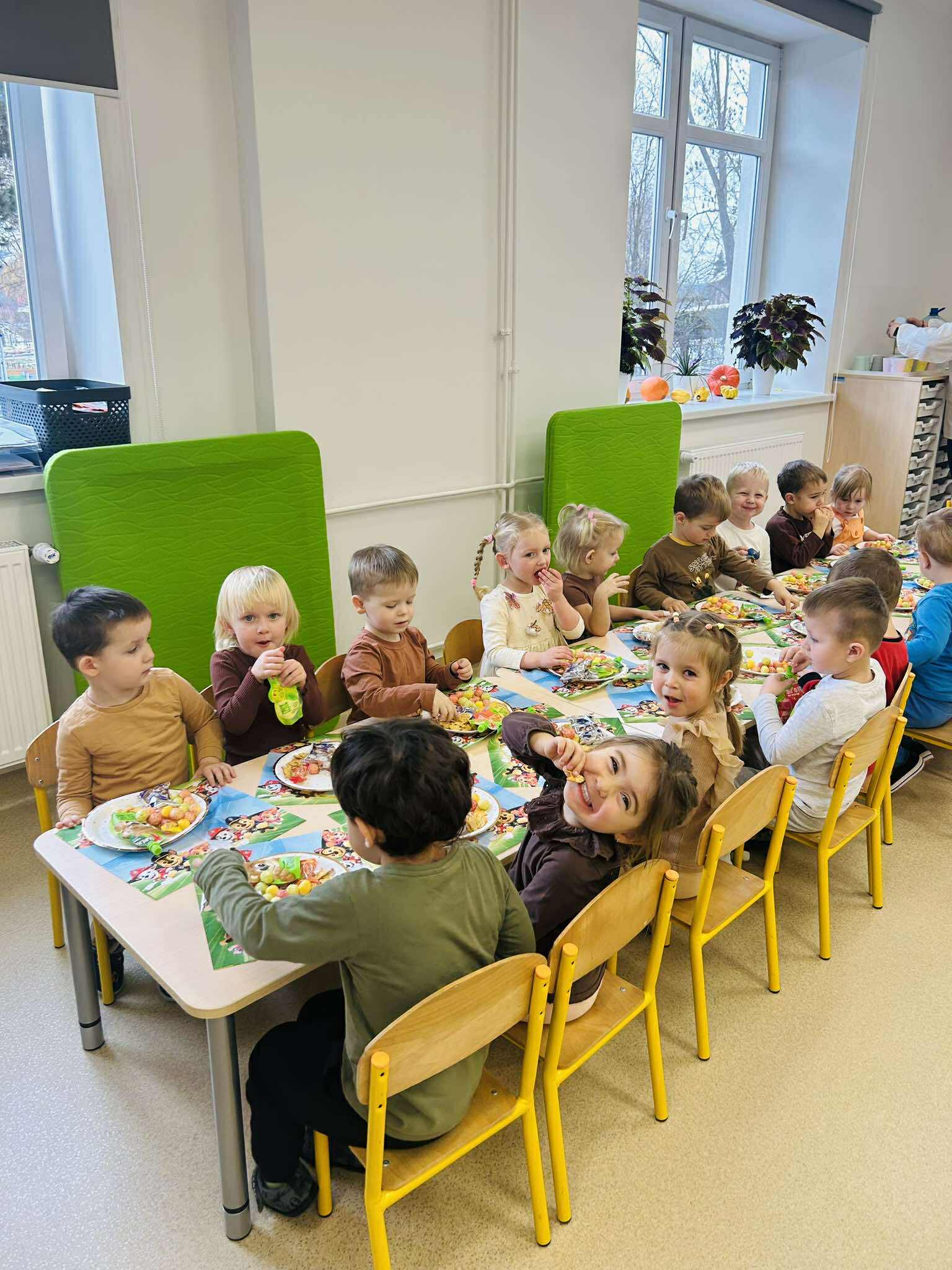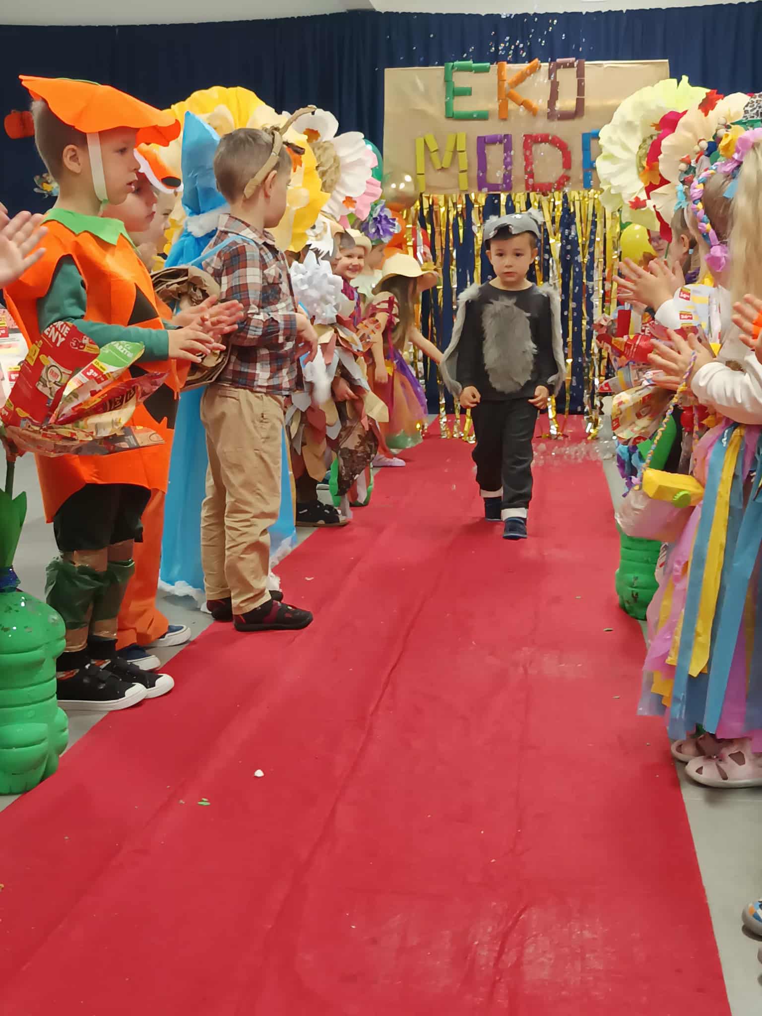 Dnia 27 listopada odbył się bal jesienno-ekologiczny połączony z pokazem eko-mody. Dzieci zaprezentowały swoje stroje, przygotowane głównie z materiałów ekologicznych, dumnie krocząc po czerwonym dywanie. W całym przedszkolu panowała radosna atmosfera. W dalszej części sale wypełniły się muzyką i radosnym śmiechem, nie zabrakło zabaw ruchowych, integracyjnych oraz pysznego poczęstunku.