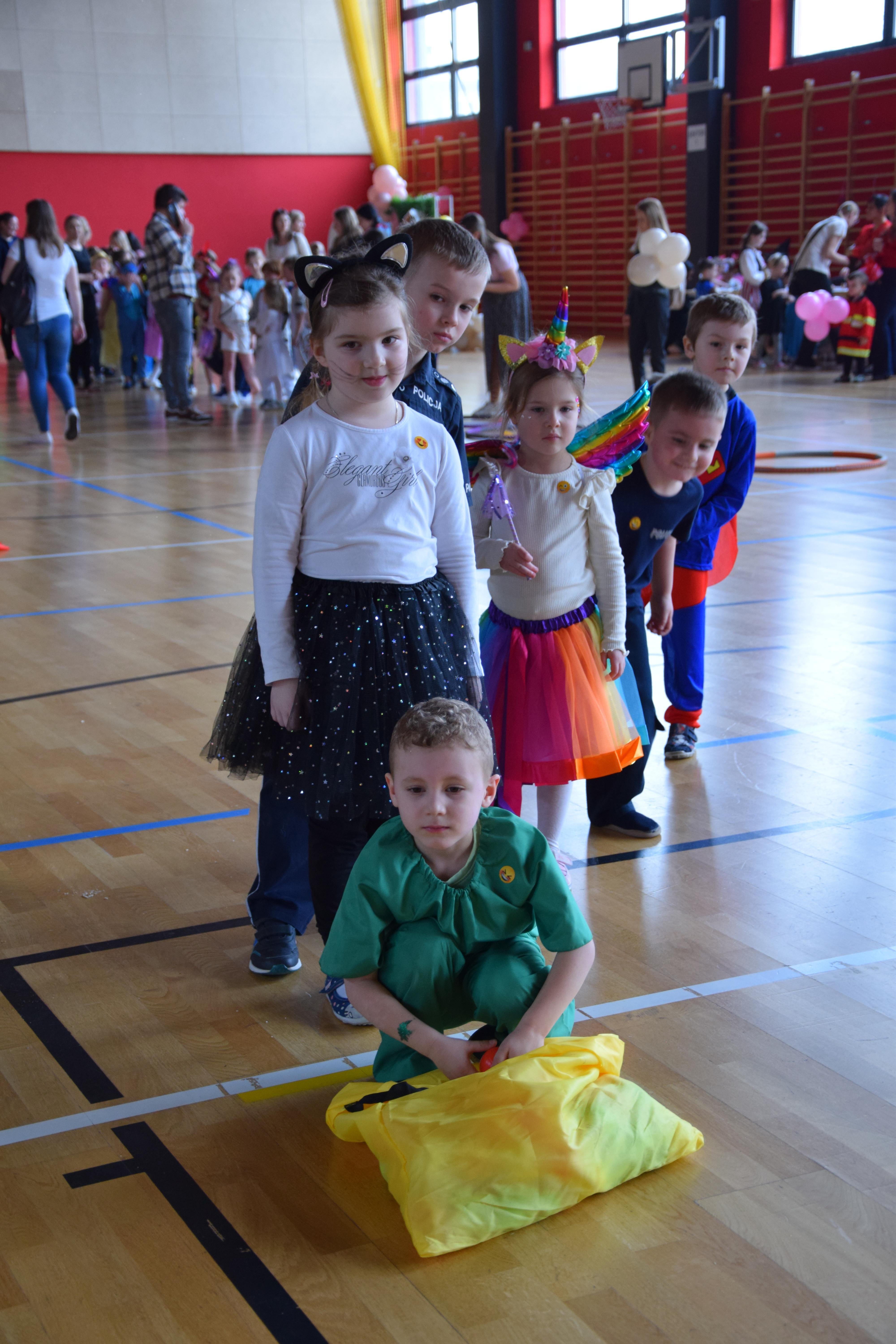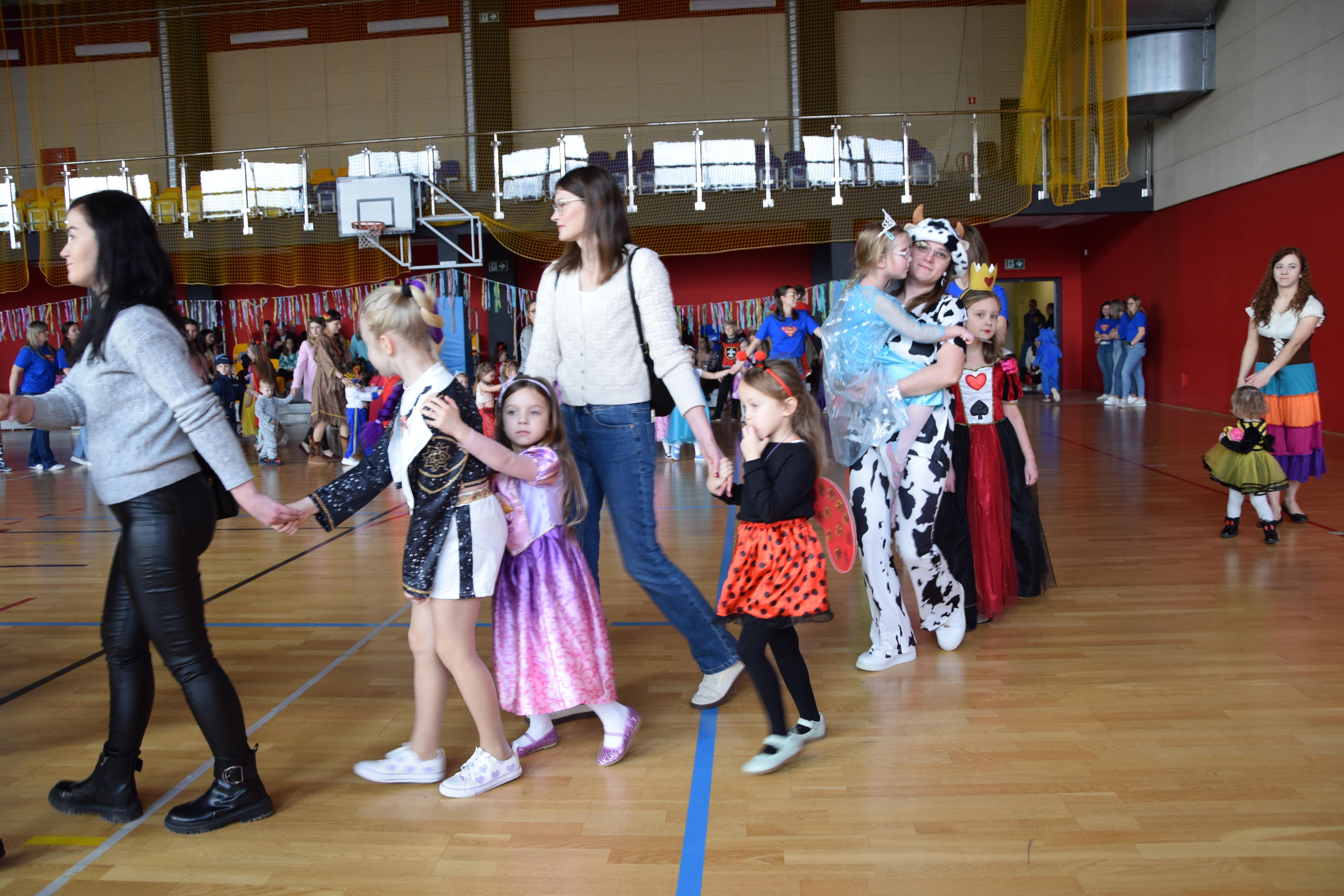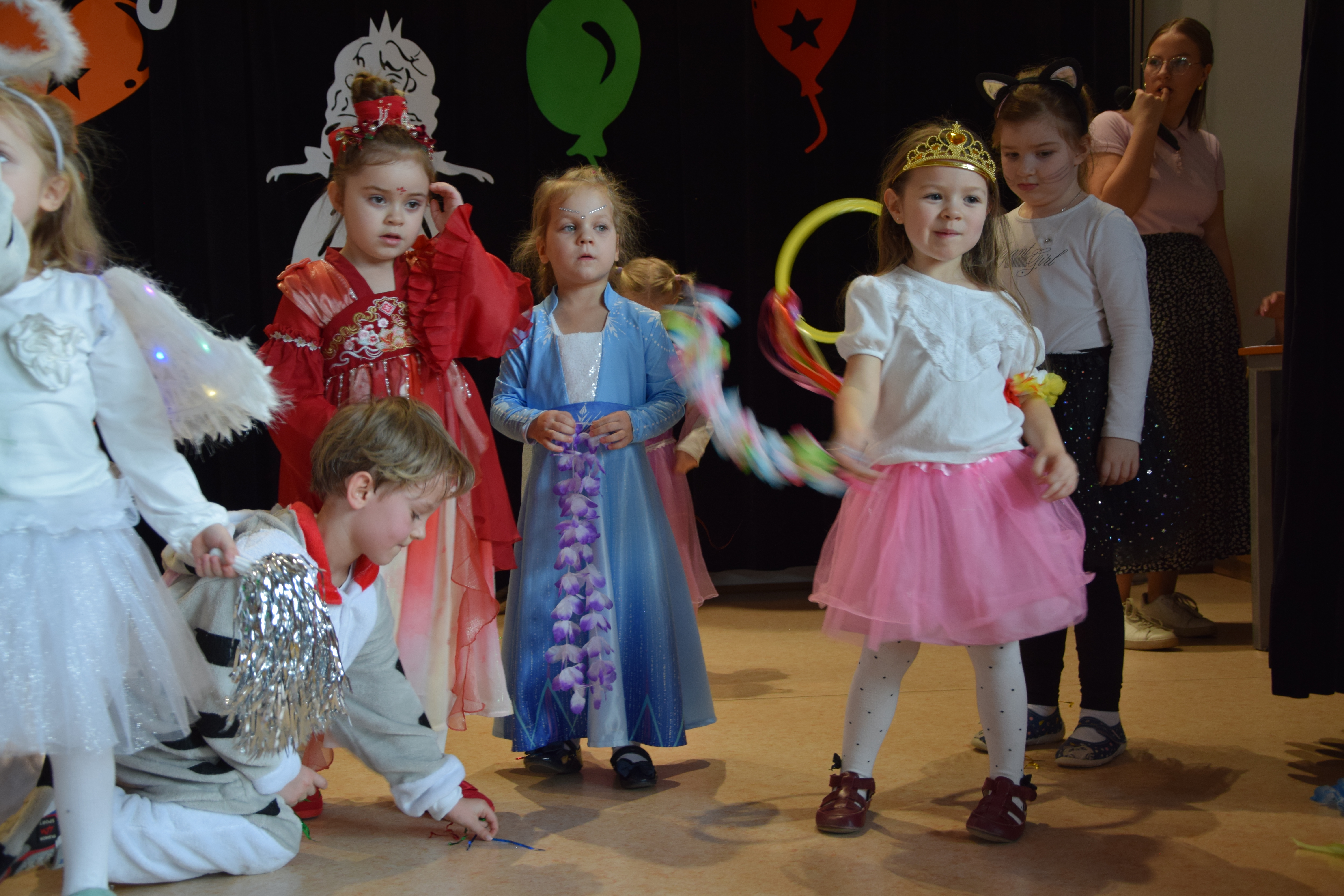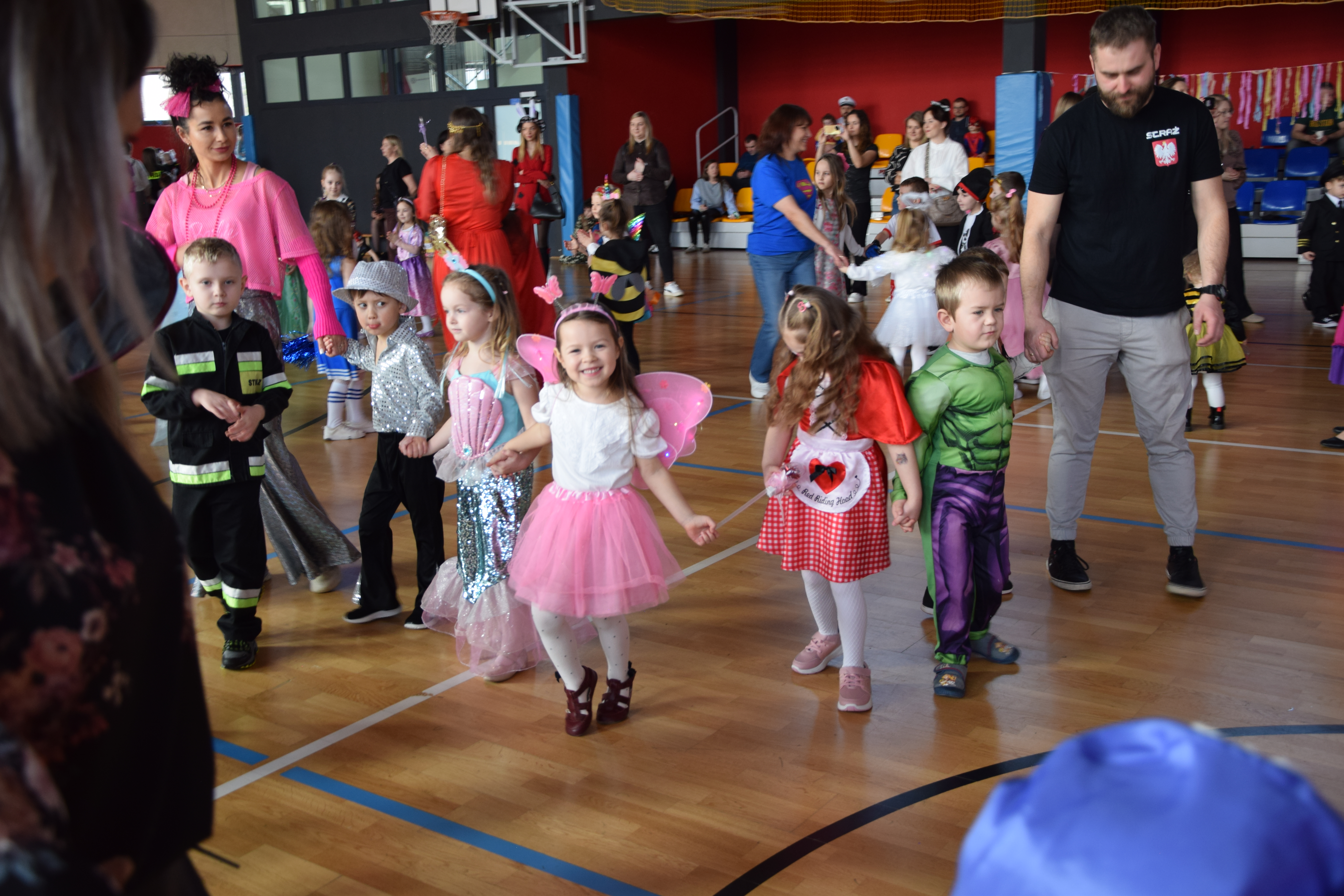 Dzieci wraz z rodzicami przygotowały piękne, kolorowe stroje i z wielką radością uczestniczyły w tańcach oraz wspólnych zabawach. Na sali panowała wspaniała, radosna atmosfera, a uśmiechy nie znikały z twarzy przedszkolaków.