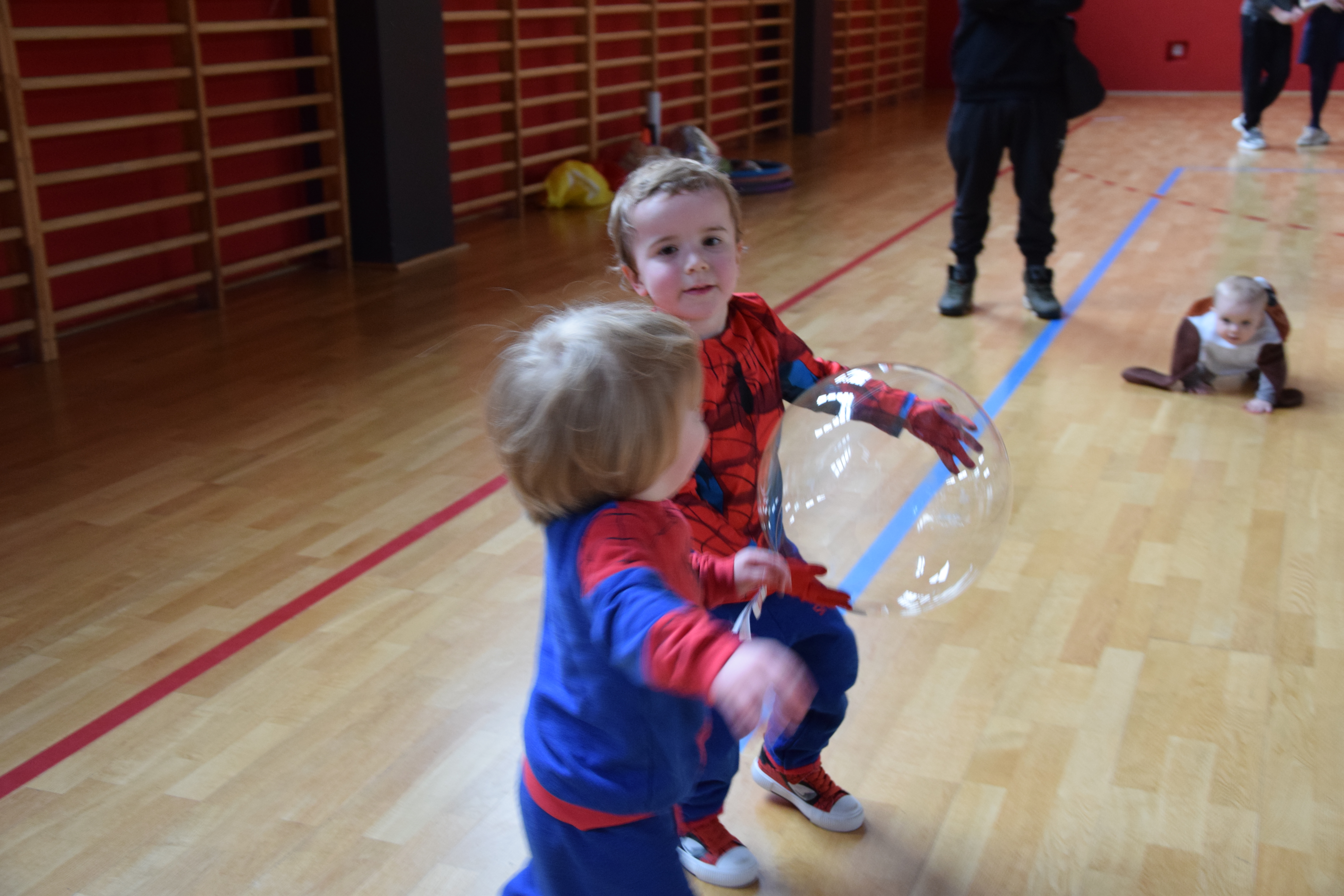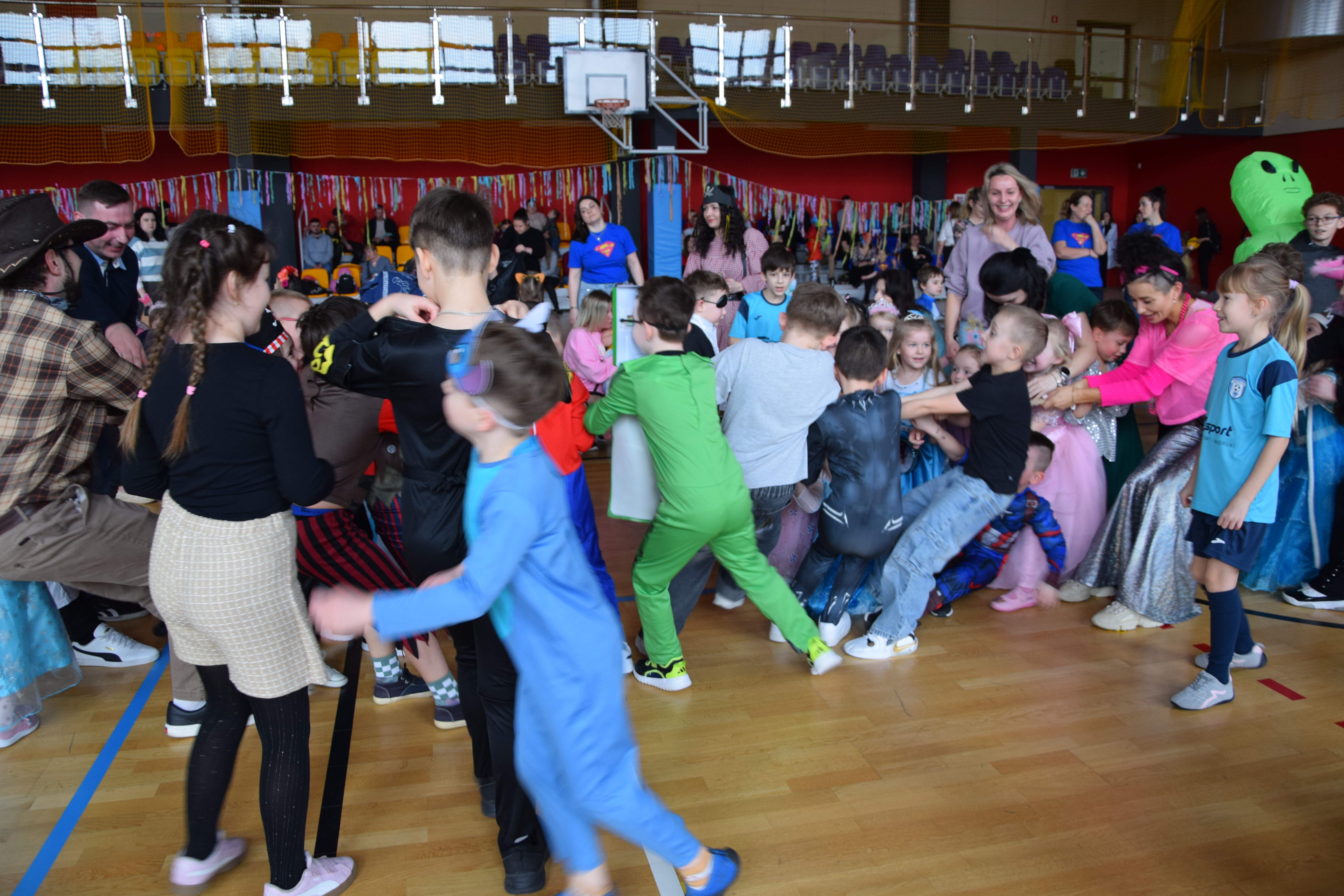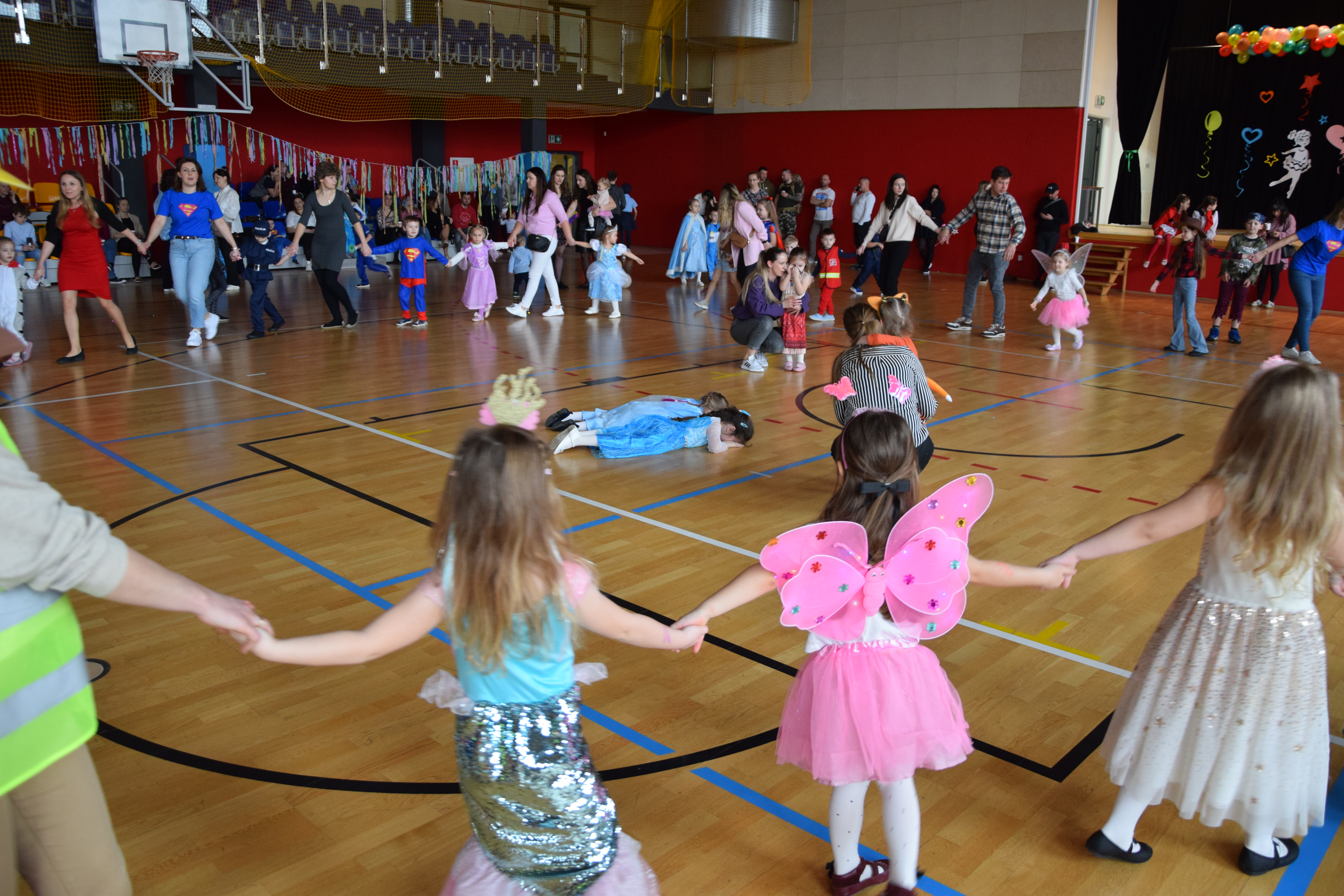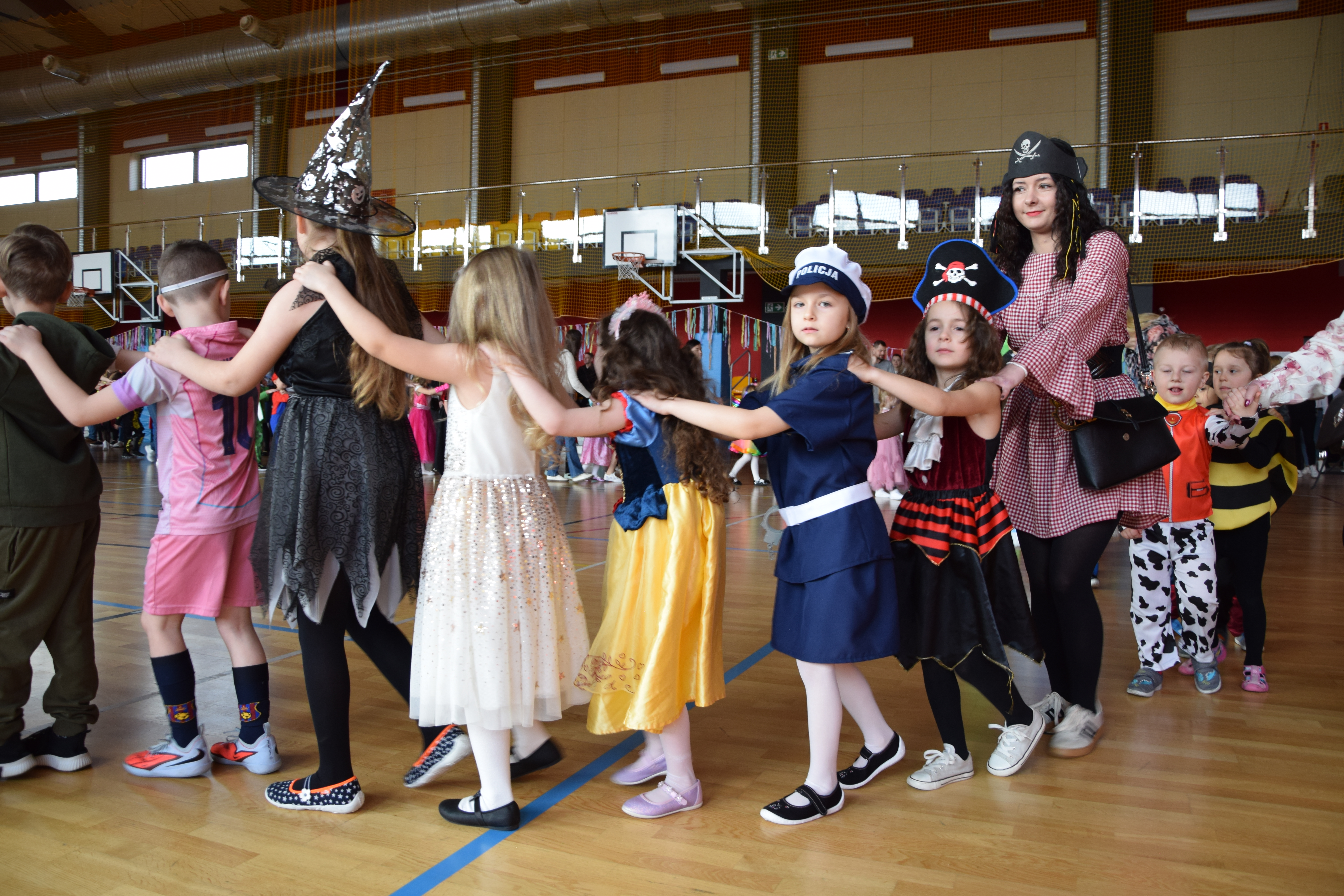 Dzieci wraz z rodzicami przygotowały piękne, kolorowe stroje i z wielką radością uczestniczyły w tańcach oraz wspólnych zabawach. Na sali panowała wspaniała, radosna atmosfera, a uśmiechy nie znikały z twarzy przedszkolaków.