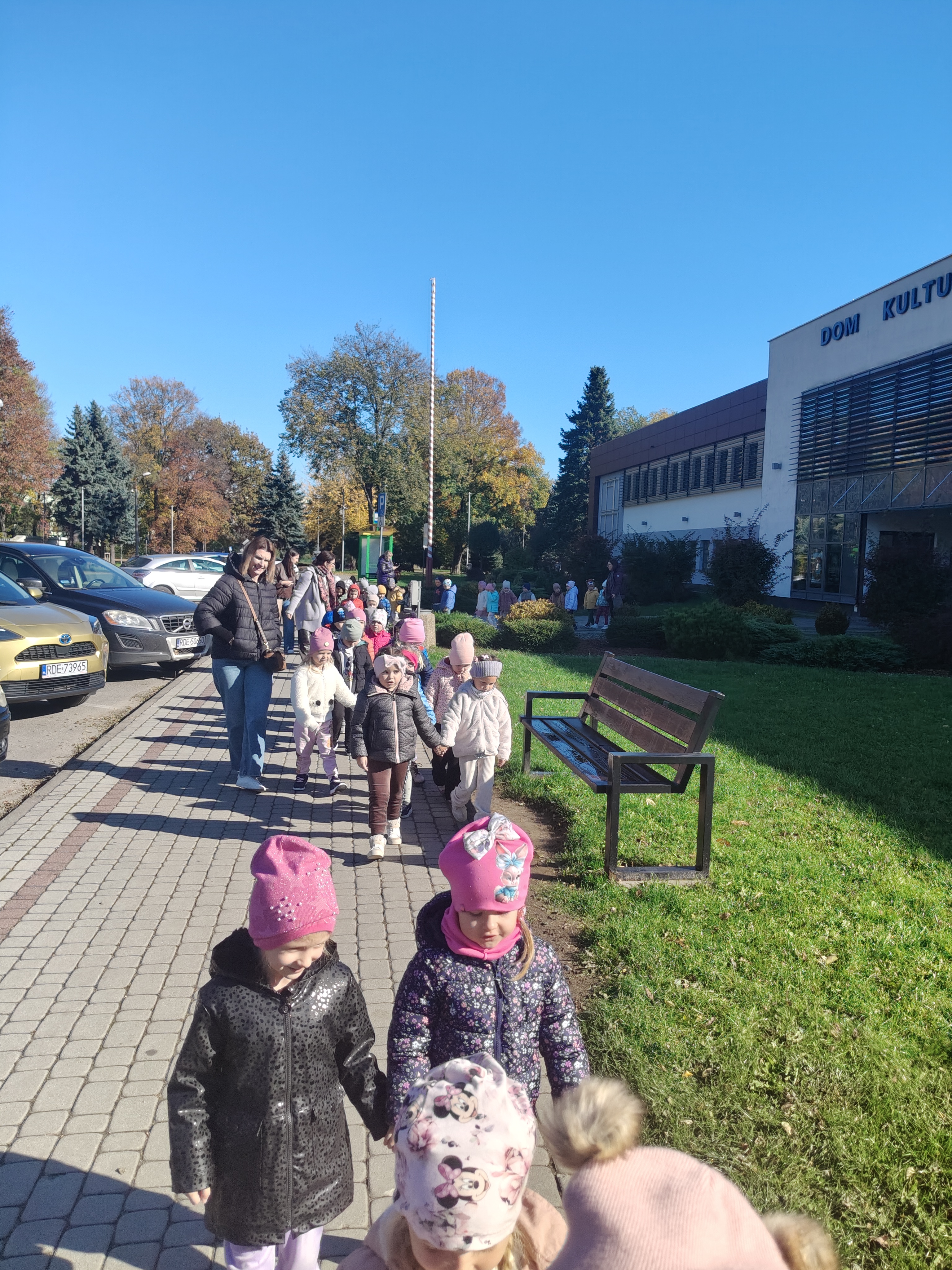 Dnia 20 października 2025r. „Rybki” i „Smerfy” wybrały się na wycieczkę do Domu Kultury MORS w Dębicy na spektakl pt. „Baśnie znane i kochane”. Celem wycieczki było między innymi rozbudzanie zainteresowania kulturą oraz rozbudzanie pozytywnych emocji i uczuć. Dzieci dowiedziały się jak bezpiecznie podróżować autokarem oraz poznały zasady prawidłowego zachowania się w tearze.
