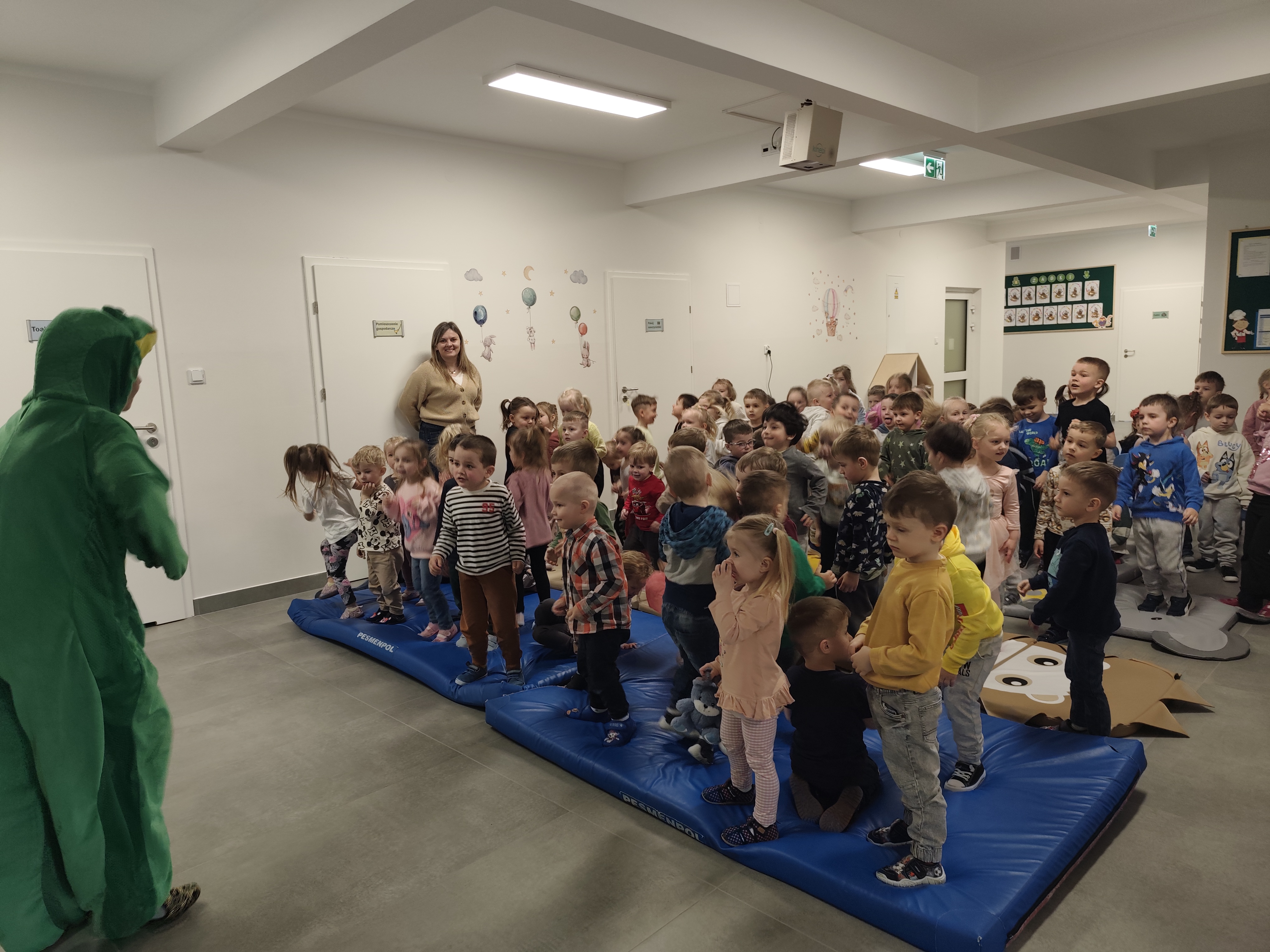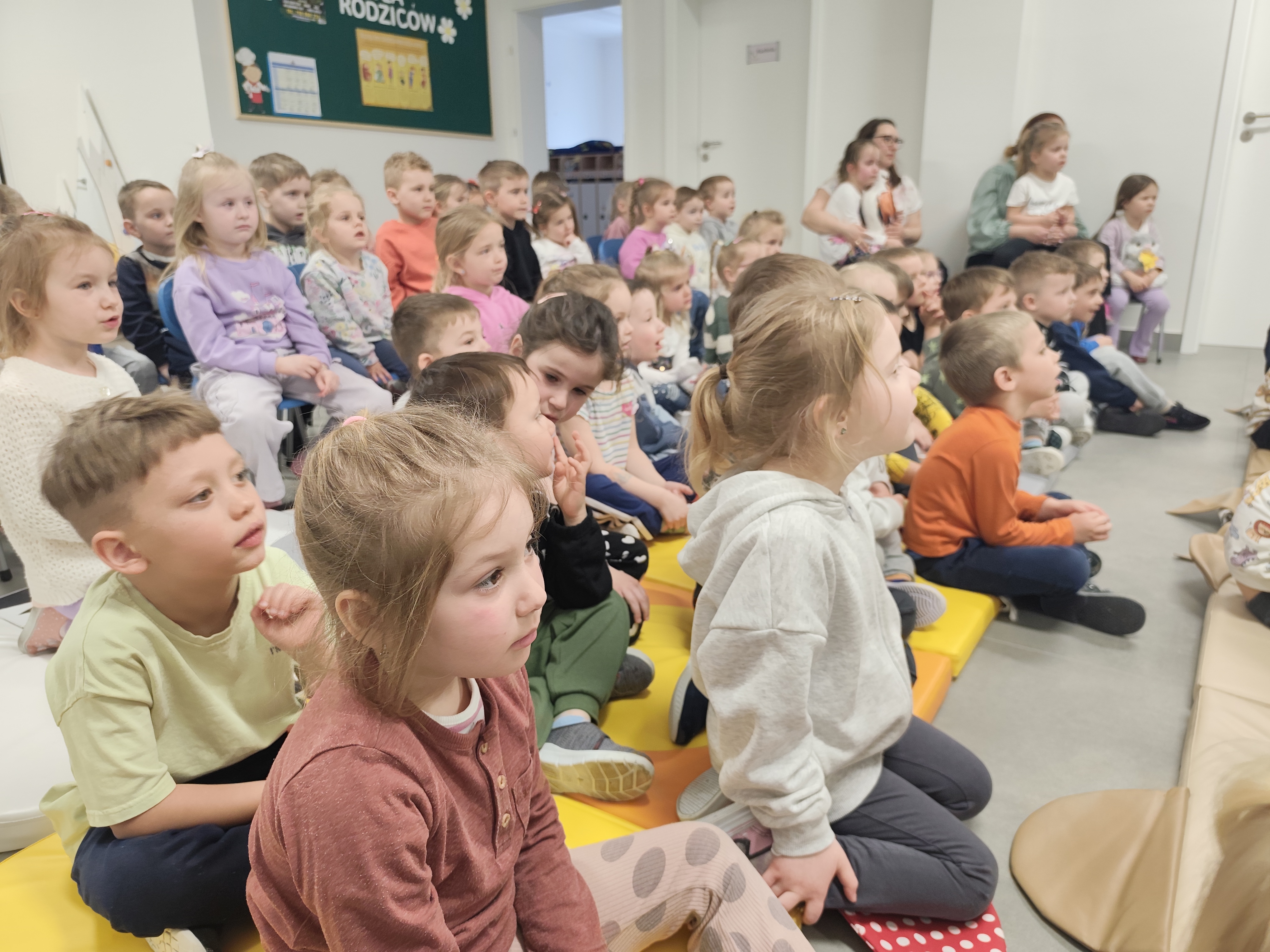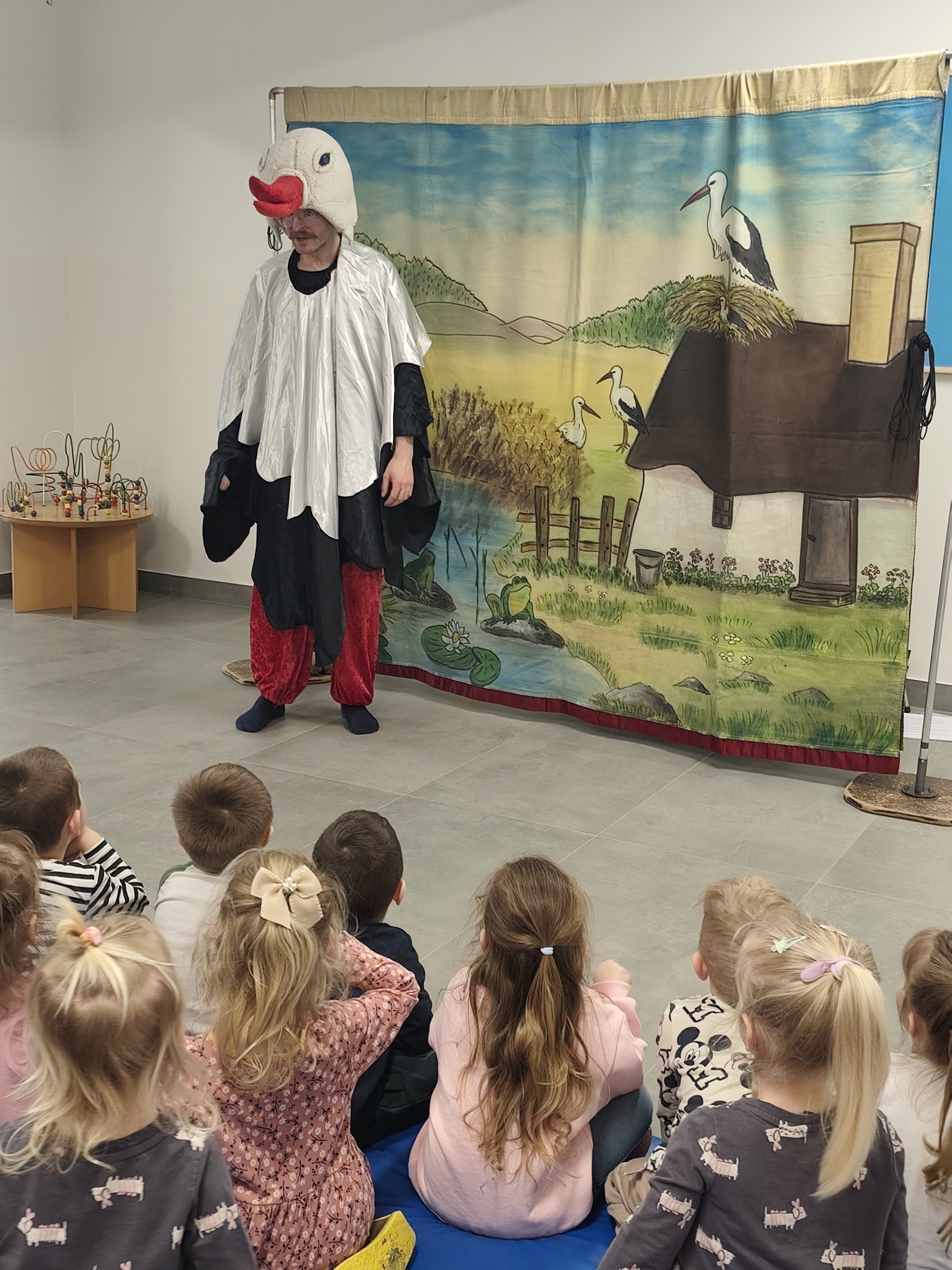 W dniu 8 kwietnia dzieci z naszej placówki miały okazje obejrzeć spektakl pt."Bocian i żabka" przygotowany przez studio teatralne KRAK-ART. Przedstawienie odbyło się w miłej i radosnej atmosferze. Spektakl opowiadał historię spotkania bociana i żabki, którzy mimo początkowych obaw zaprzyjaźniają się i wspólnie przeżywają różne przygody. Aktorzy wchodzili w interakcje z dziećmi zachecają je do współnej zabawy. Spektakl to lekcja, mówiąca o tym iż zgoda, wpółpraca i wzajemny szacunek są ważniejsze niż różnice.