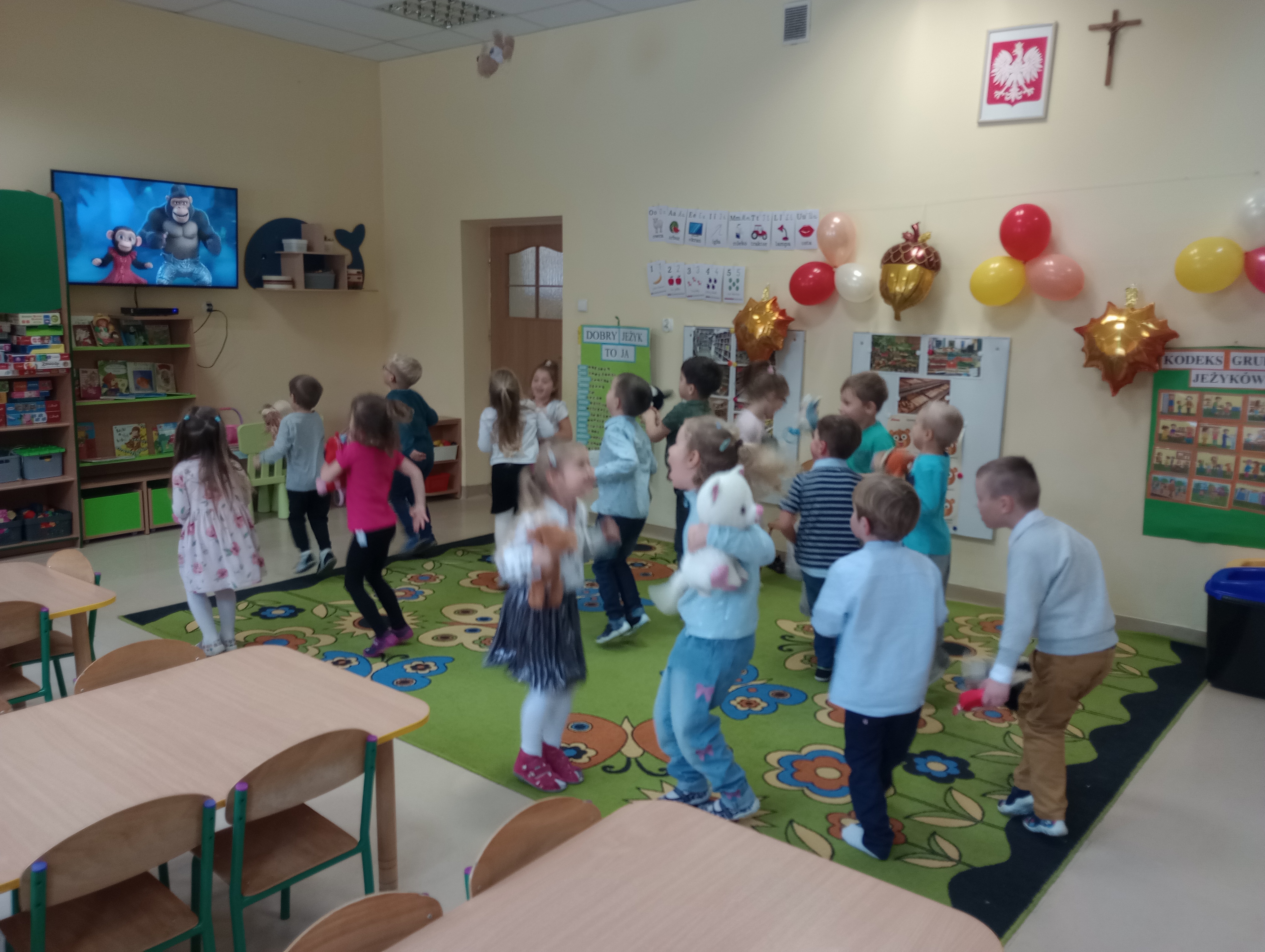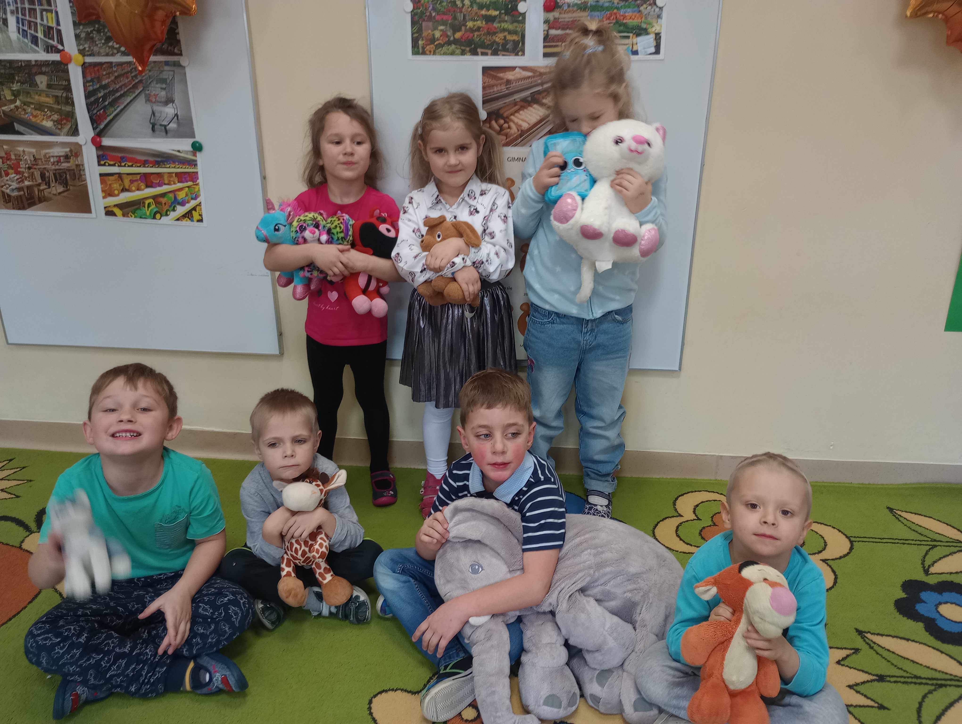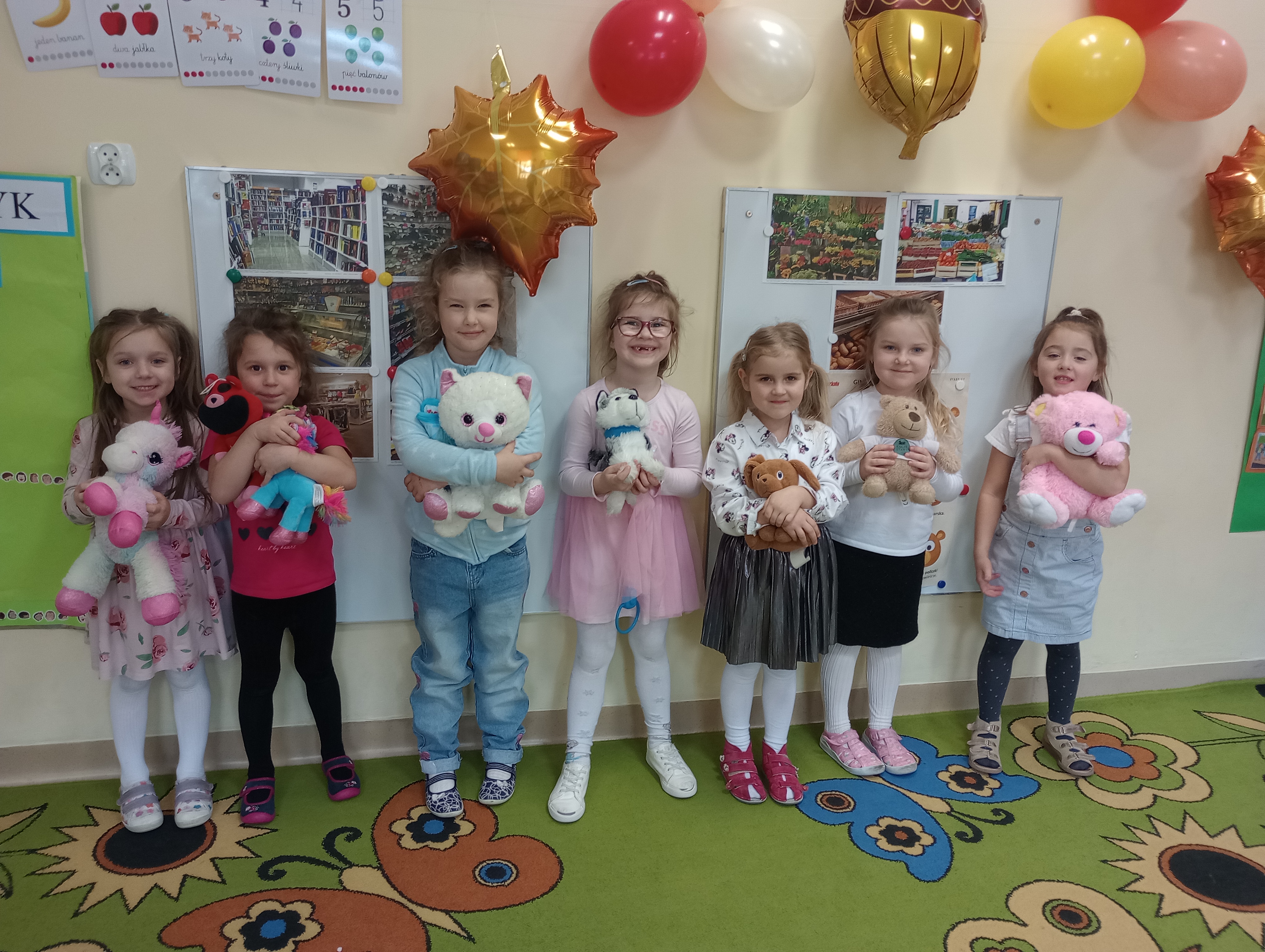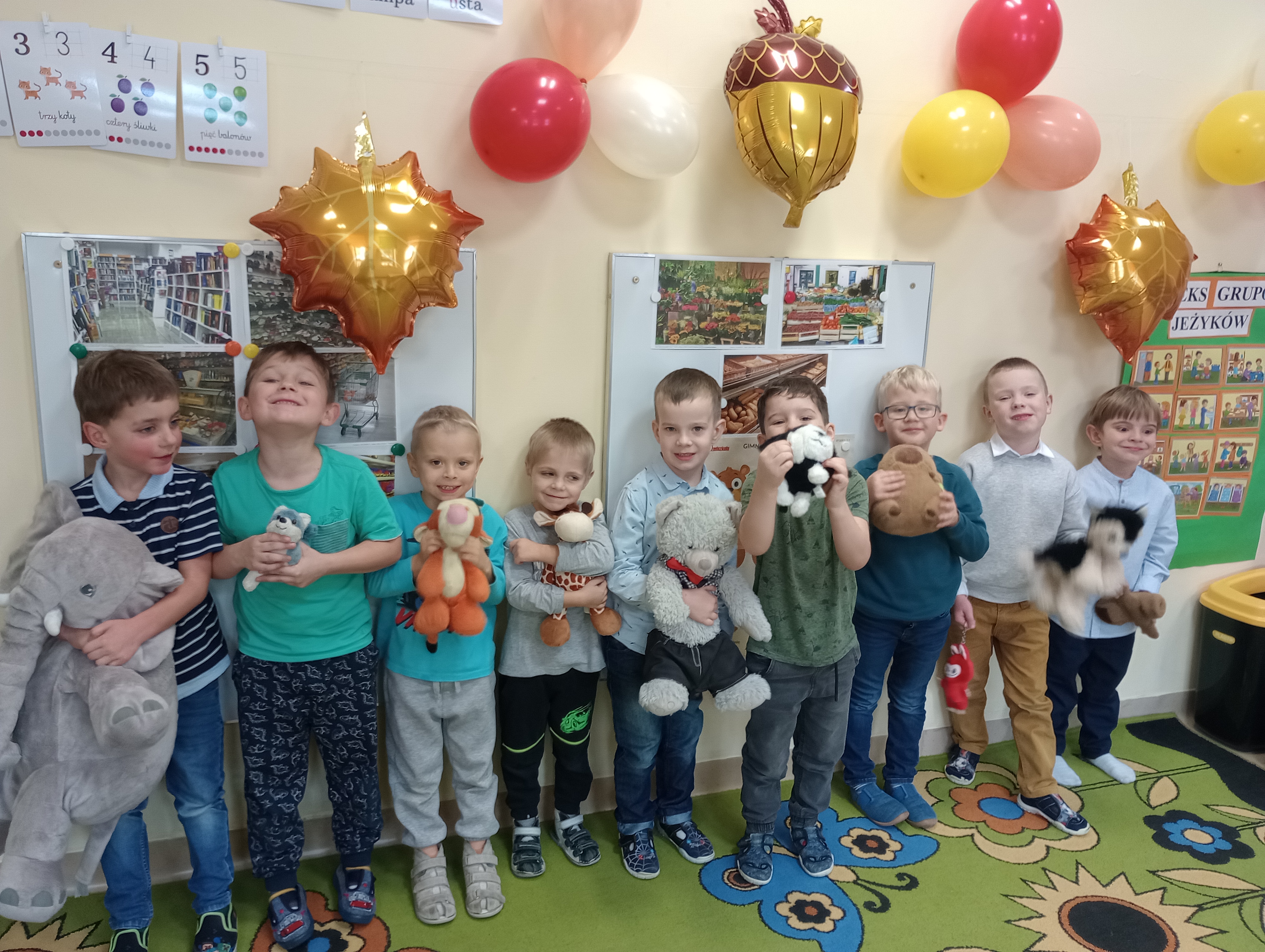 Dzisiejszy pobyt dzieci w przedszkolu przepełniony jest dobrym humorem i mnóstwem atrakcji, w których głównymi bohaterami są pluszaki.