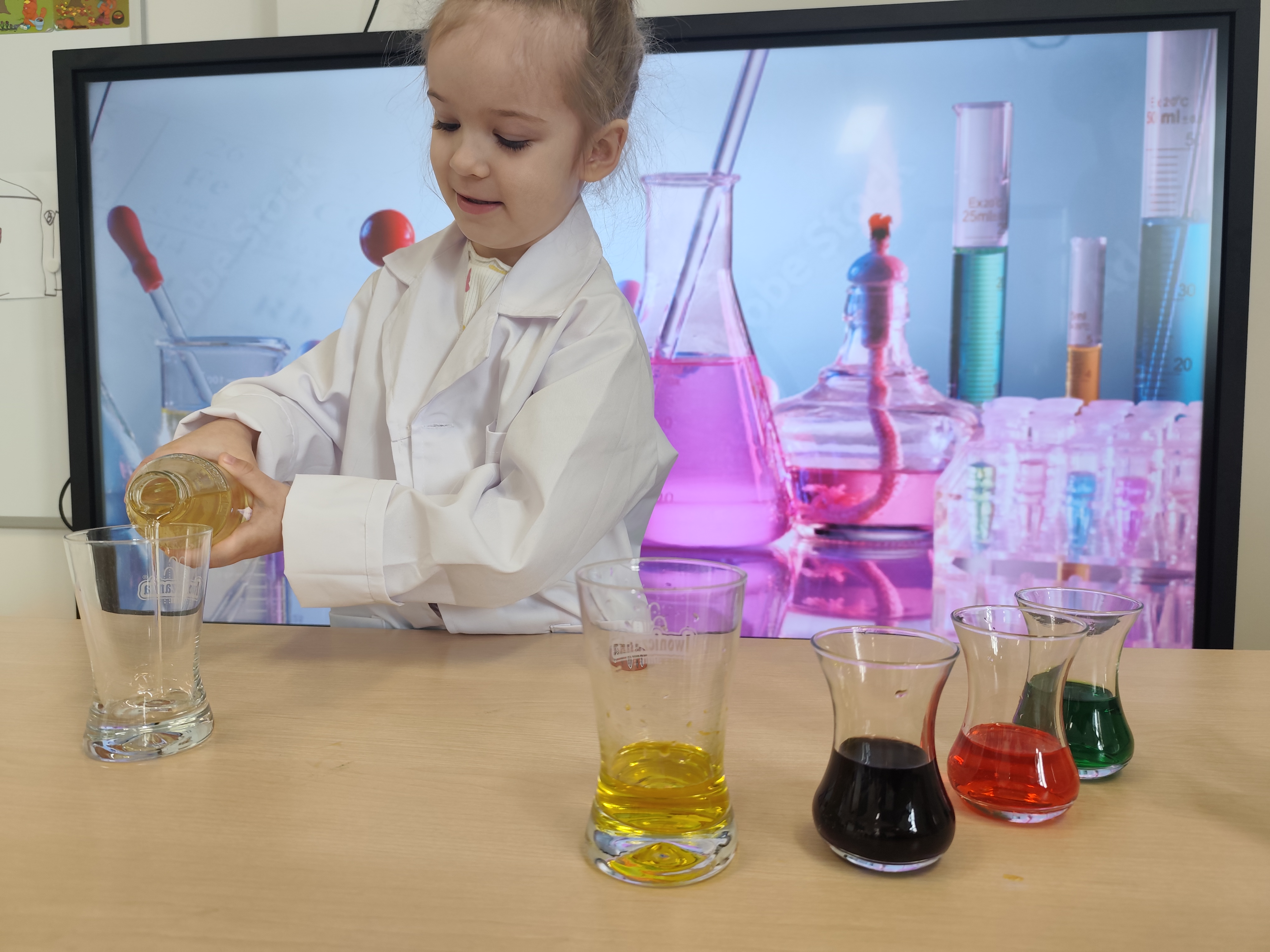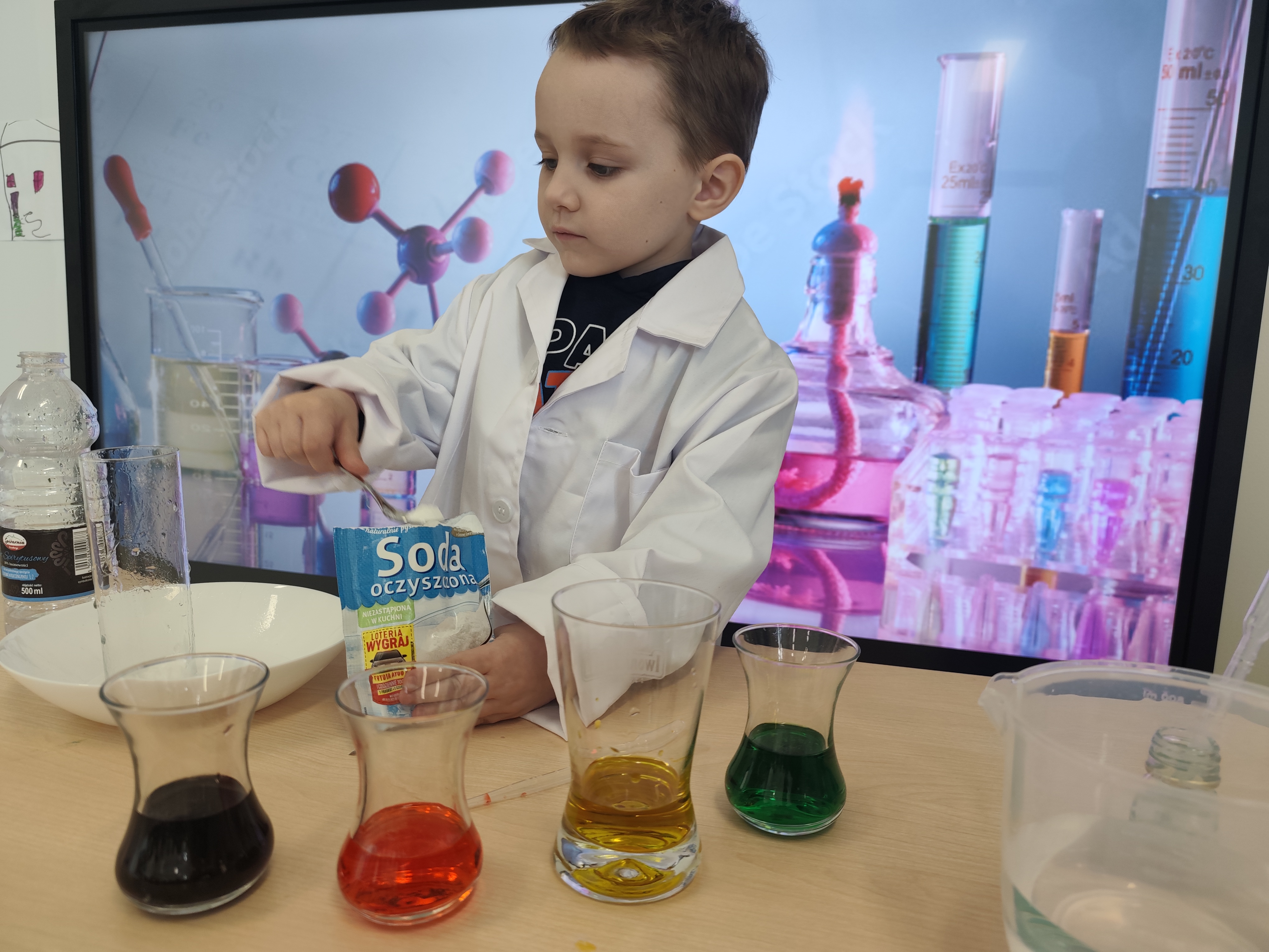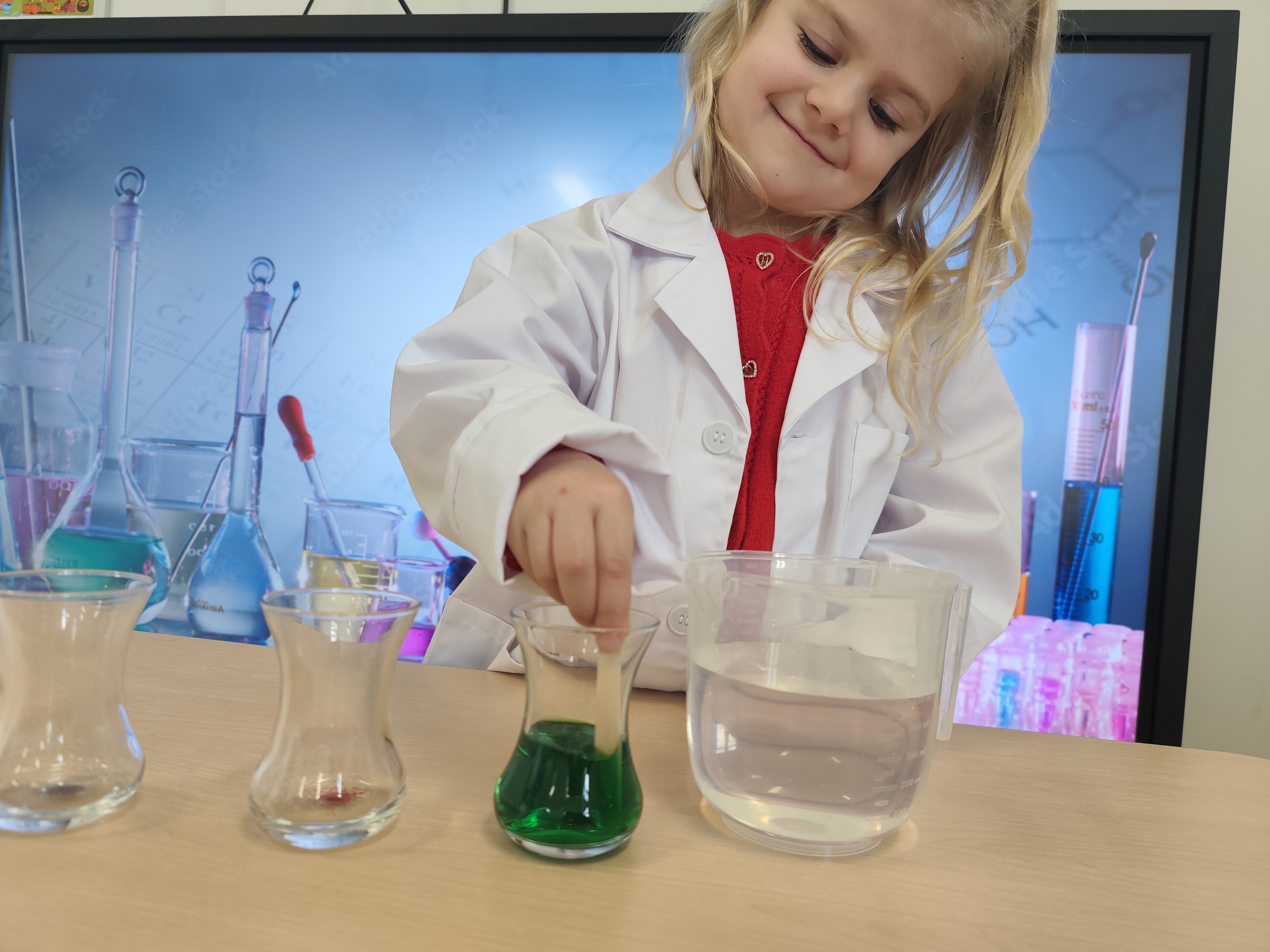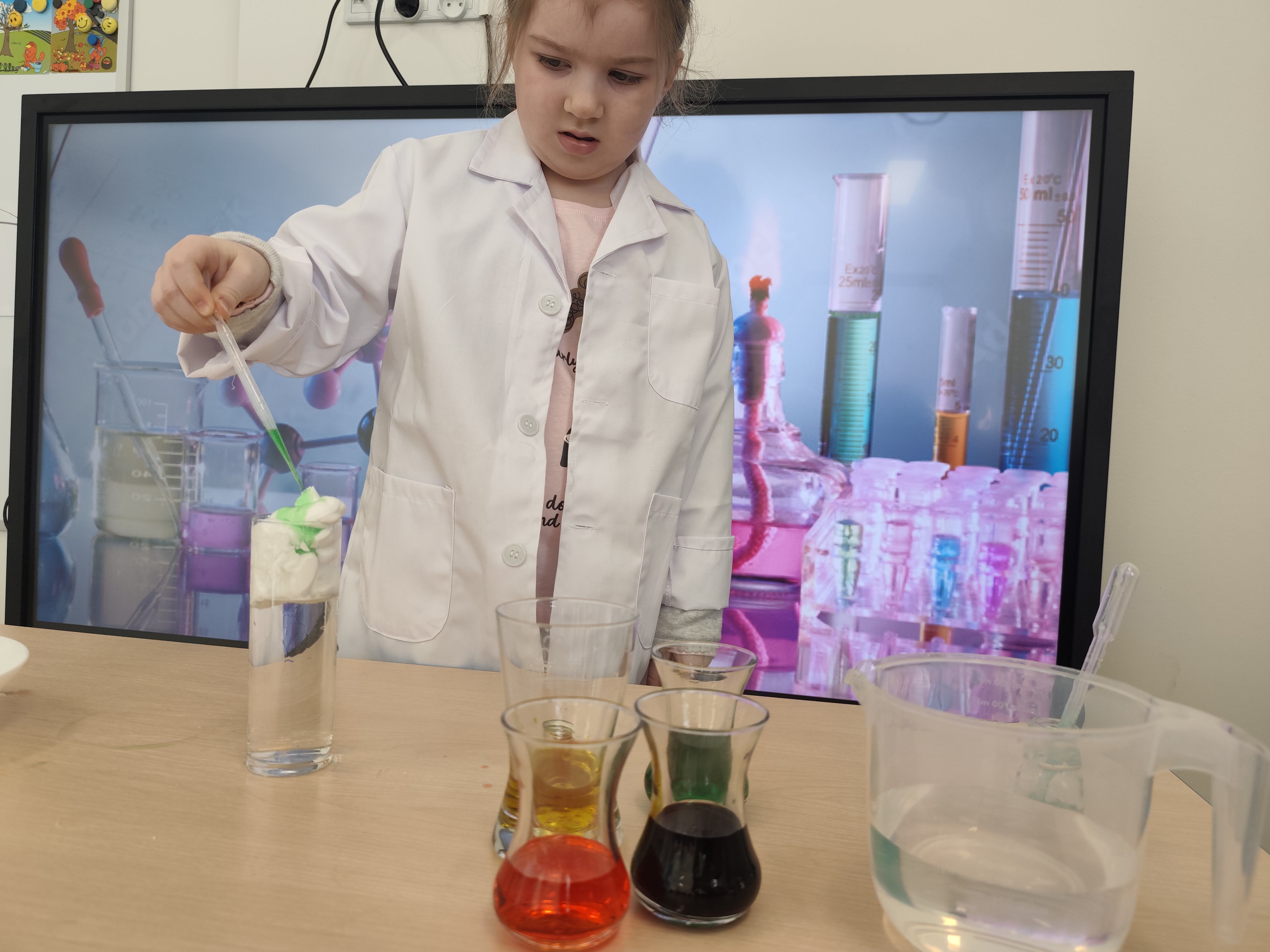 Dzieci w małym laboratorium wcieliły się w naukowców-przeprowadzały proste eksperymenty, takie jak miesznie substancji, obserwowanie reakcji czy badanie właściwości wody. Zajęcia rozwijały ciekawość poznawczą, umiejetnośc obserwacji oraz wyciaganie wniosków. Dzieci wykazały postawę prawdziwych naukowców.