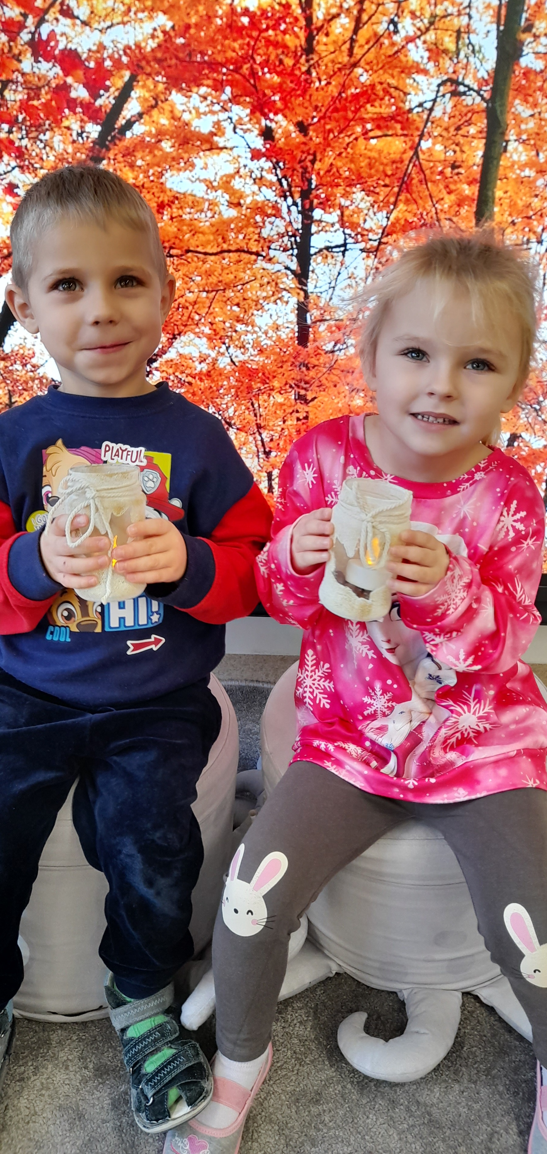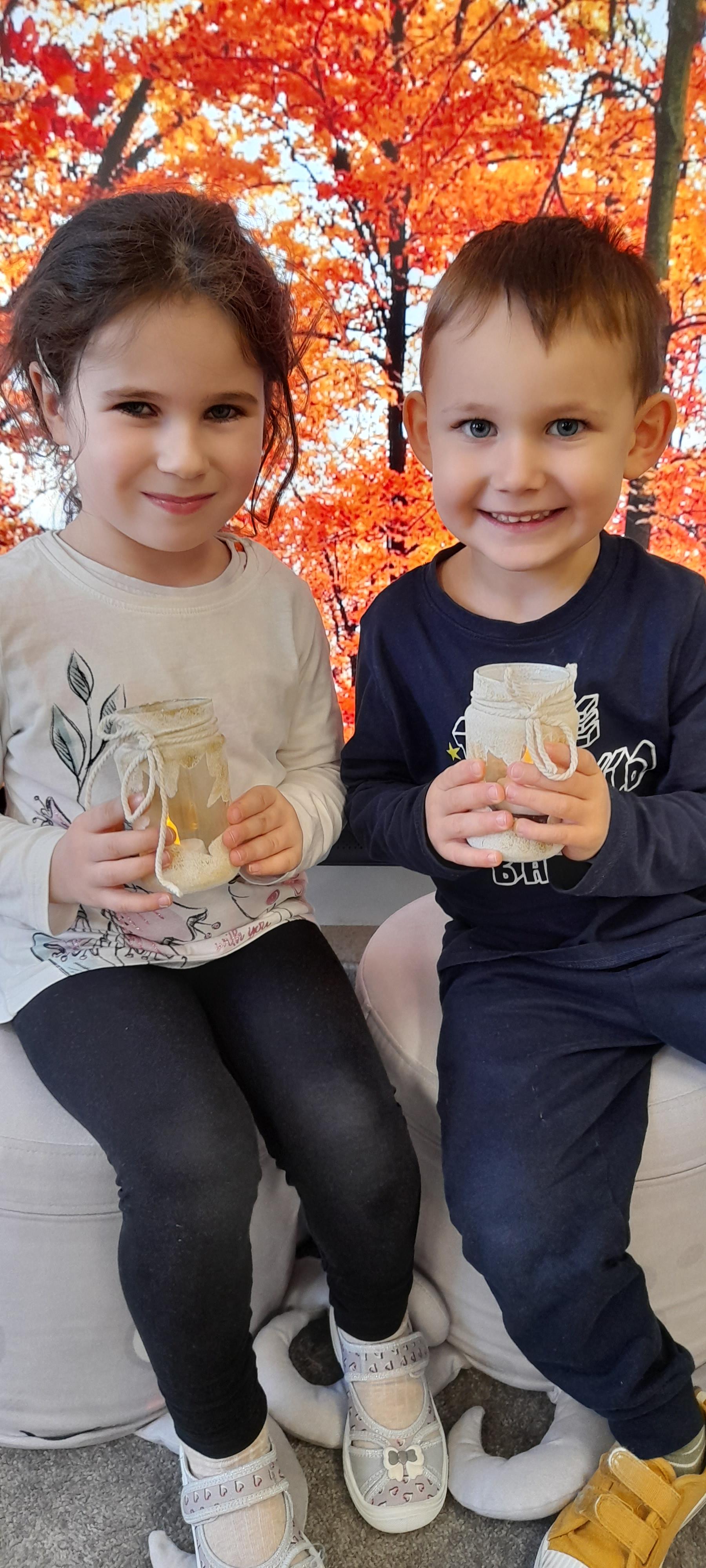 Podczas dzisiejszych warsztatów "Smerfiki" wykonały własnoręcznie dekoracyjne lampiony inspirowane motywami złotej polskiej jesieni – ciepłymi barwami, strukturą liści i nastrojem jesiennych wieczorów. Celem warsztatów było: rozwijanie kreatywności i wyobraźni dzieci, doskonalenie sprawności manualnej, kształtowanie wrażliwości estetycznej, nauka współpracy i cierpliwości podczas tworzenia wspólnego dzieła oraz rozwijanie poczucia satysfakcji z własnej pracy. To był dzień pełen kreatywności, uśmiechów i jesiennej magii!