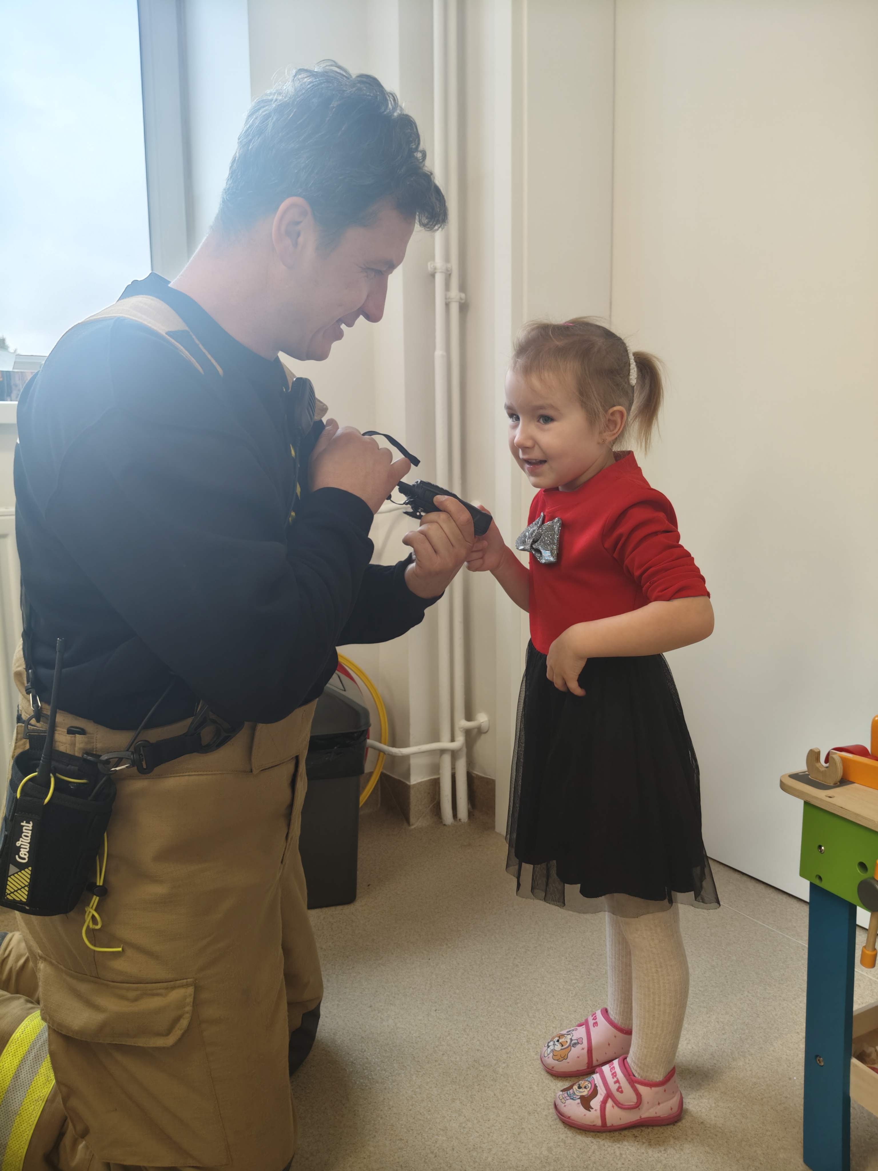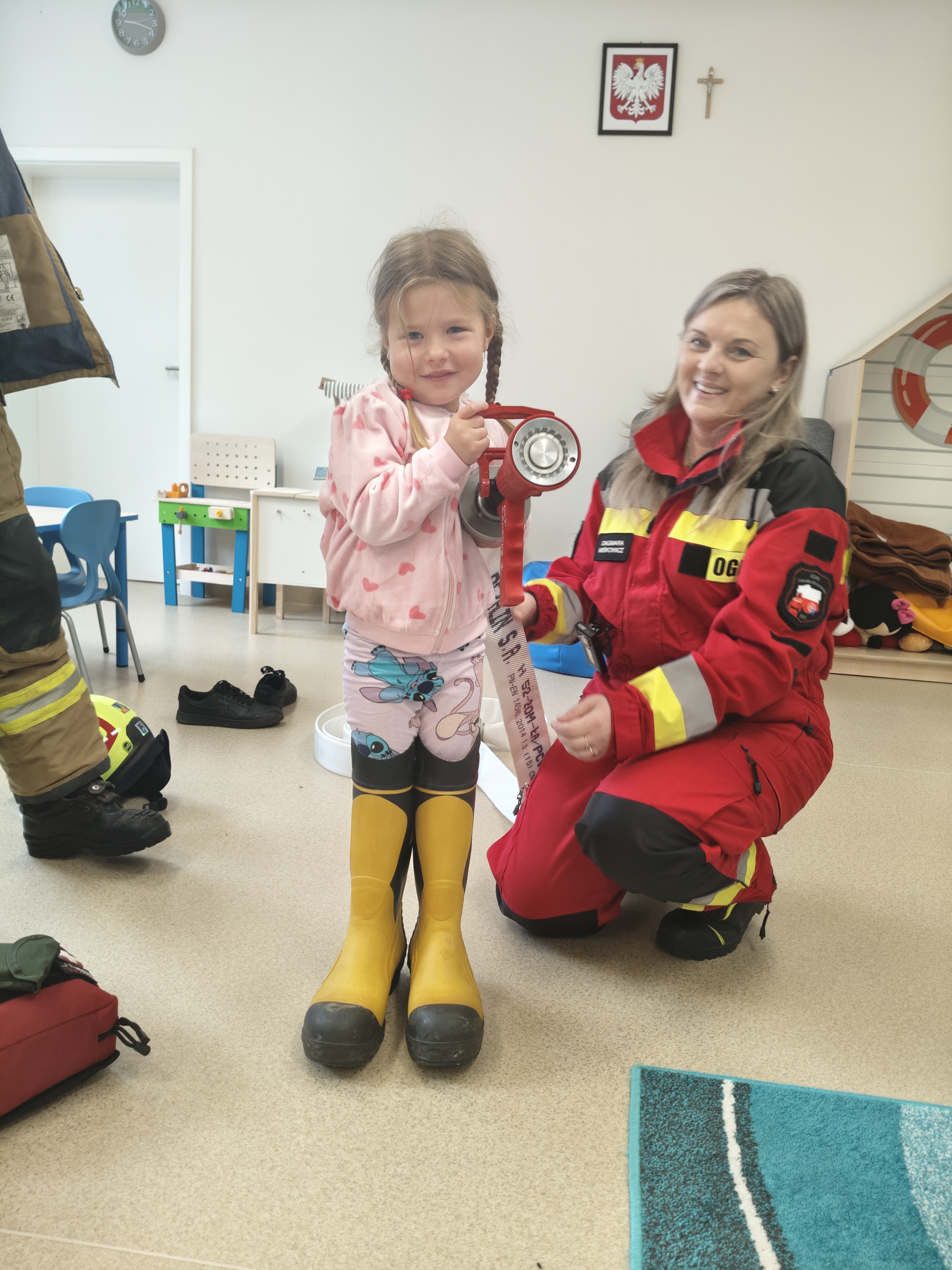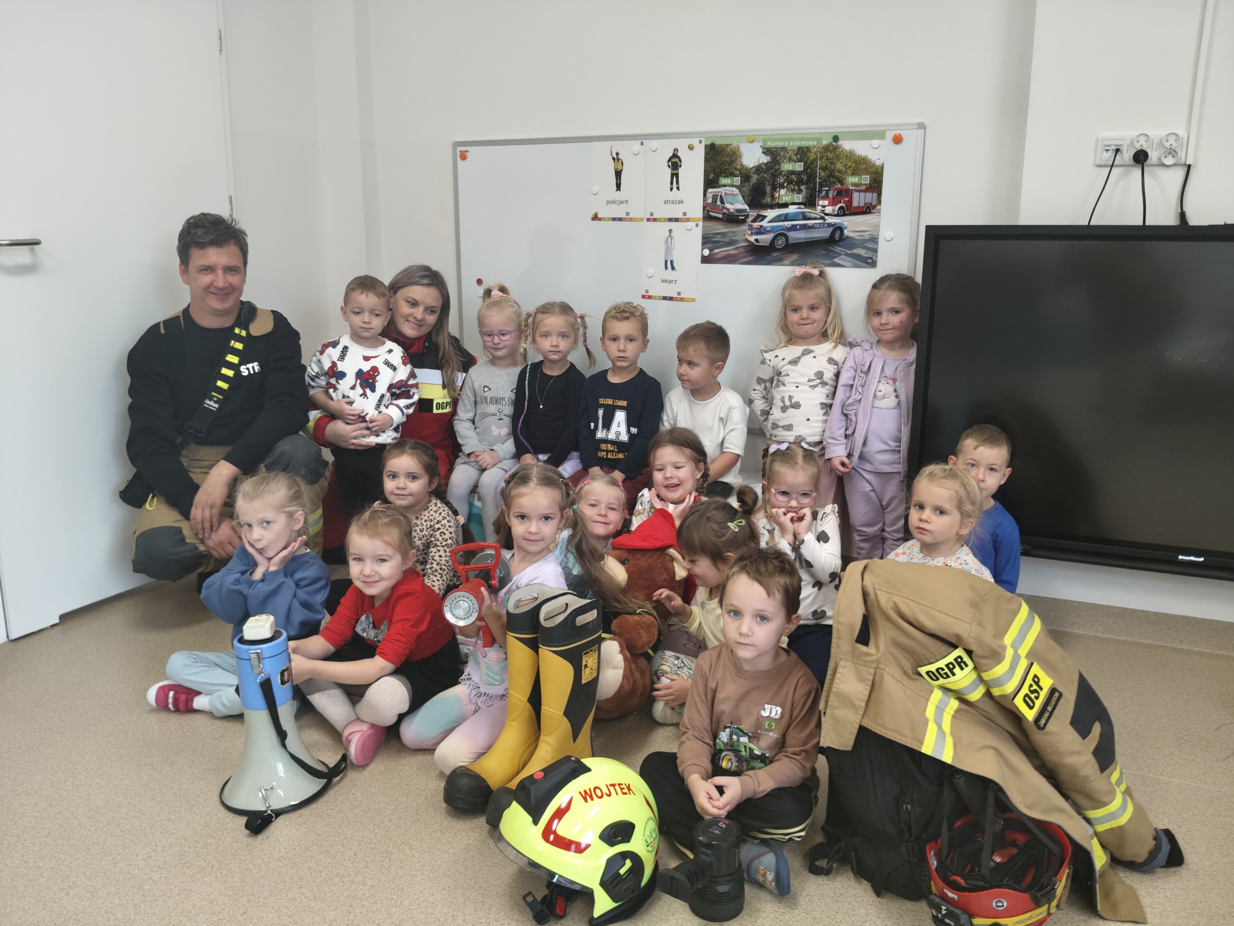 15 października w przedszkolu gościliśmy Strażaków Ratowników OSP i Ratowników OGPR z Zawadki Brzosteckiej. Goście w ciekawy sposób przybliżyli przedszkolakom specyfikę pracy strażaka jednocześnie prezentując strój i podręczny sprzęt. Strażacy zapoznali przedszkolaków z sytuacjami, w których należy wezwać straż pożarną oraz przypomnieli numery alarmowe do straży, policji i na pogotowie. Dzieci z bliska mogły podziwiać, wyposażenie jakim dysponuje grupa poszukiwawcza podczas swojej ciężkiej i odpowiedzialnej pracy. Serdeczne podziękowania Dla Pani Dagmary i Wojciecha za wspaniały pokaz.