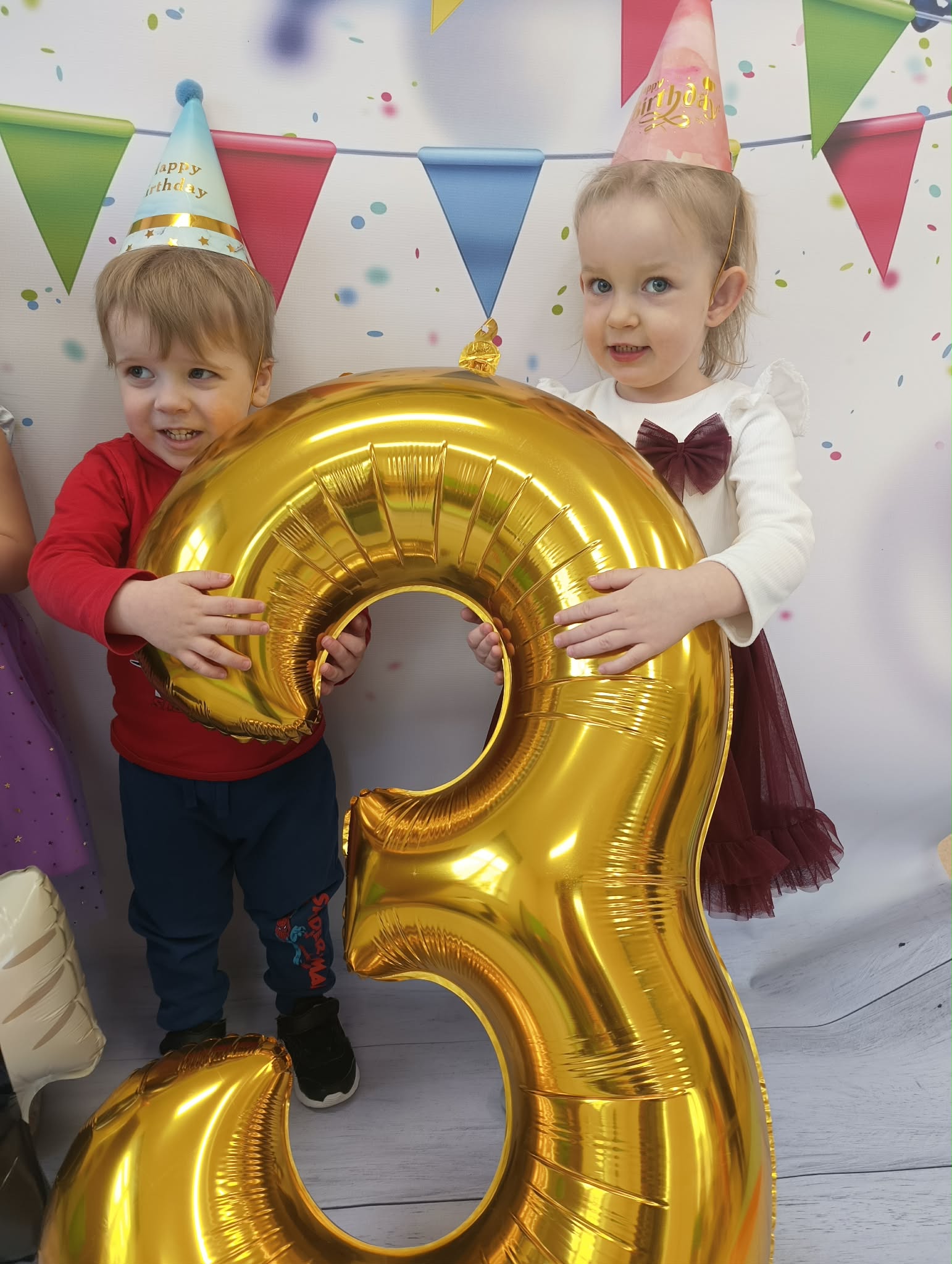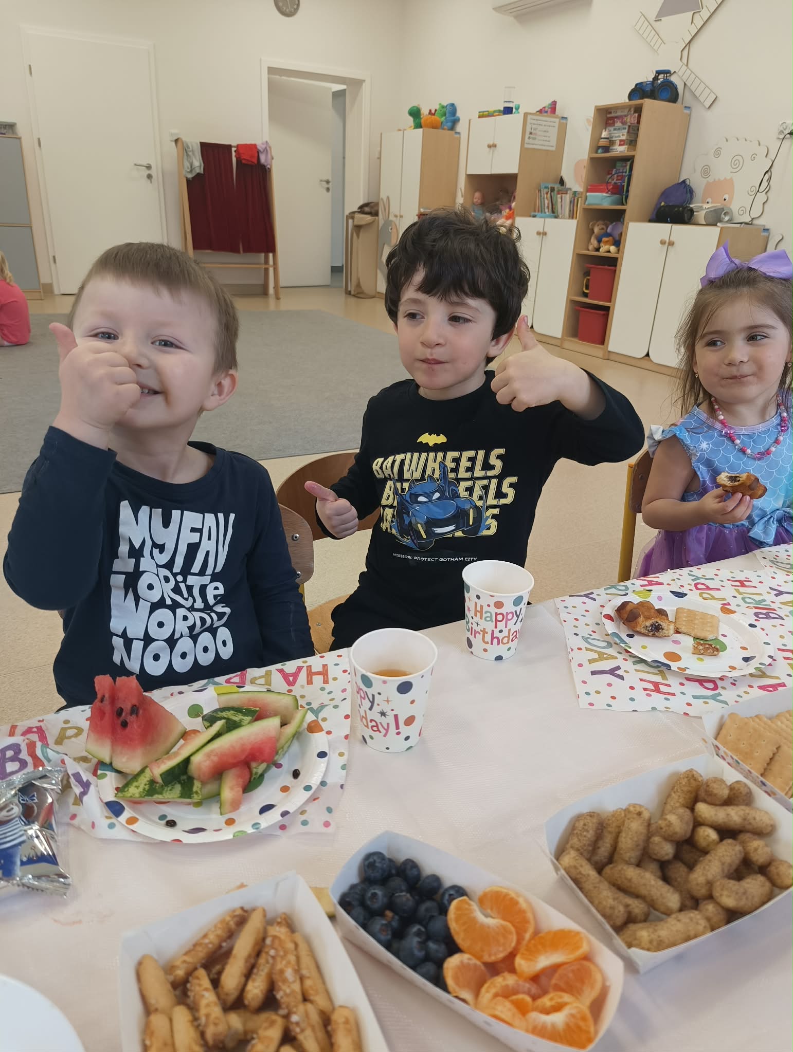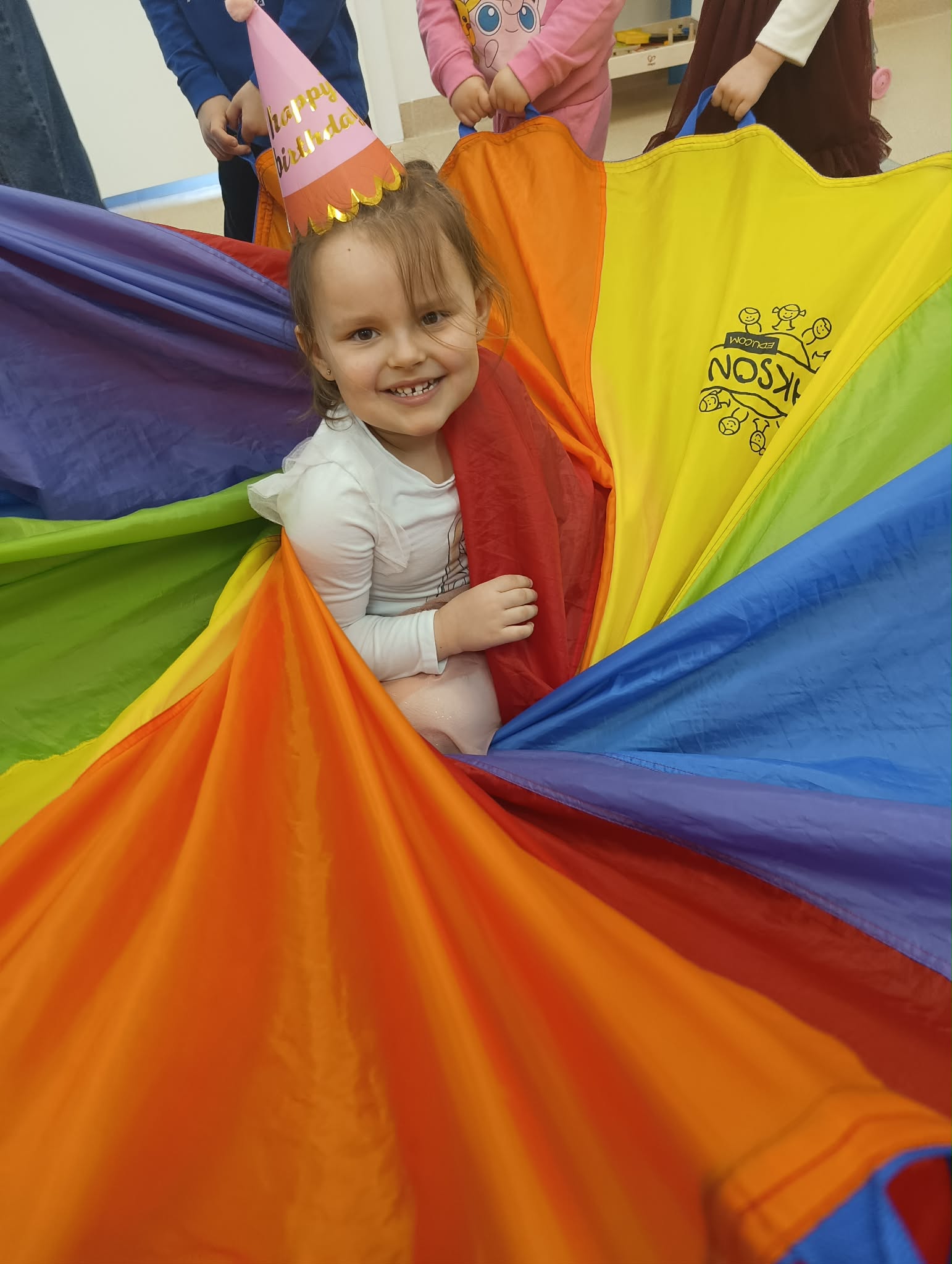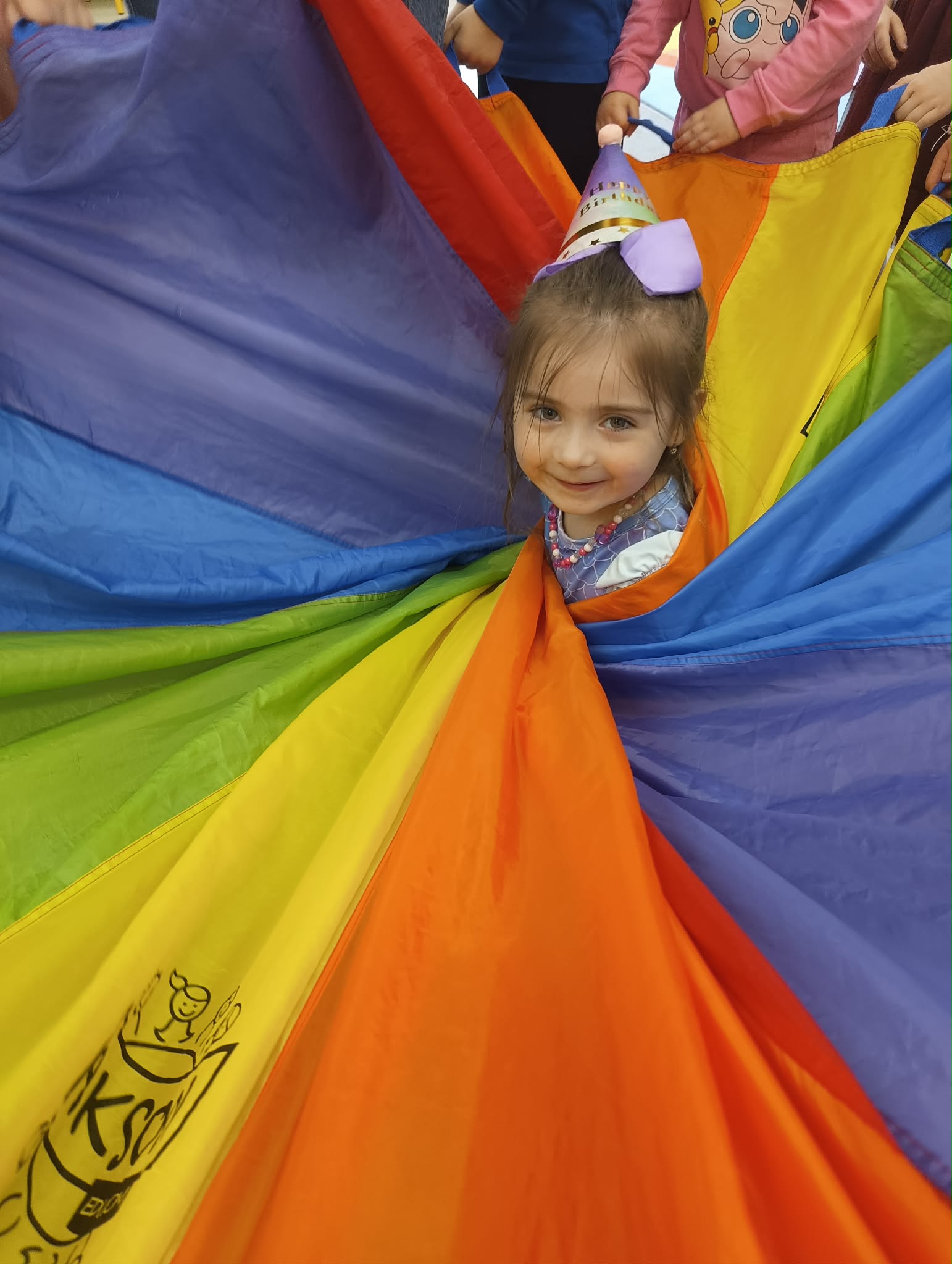 "Dziś w przedszkolu wielka sprawa,bo urodzin nadszedł czas! Niech się śmieje buzia mała,radość niech otacza nas!
