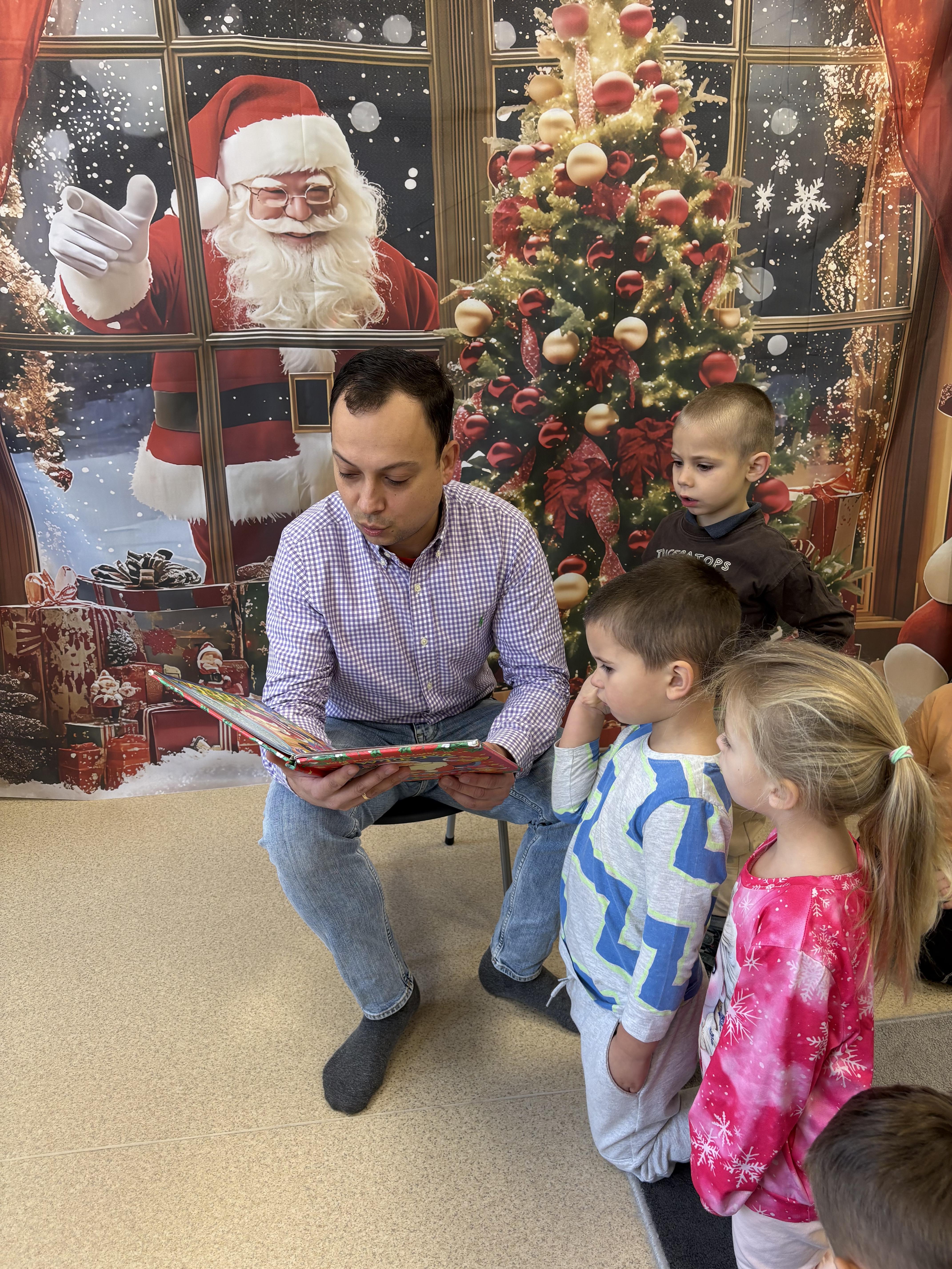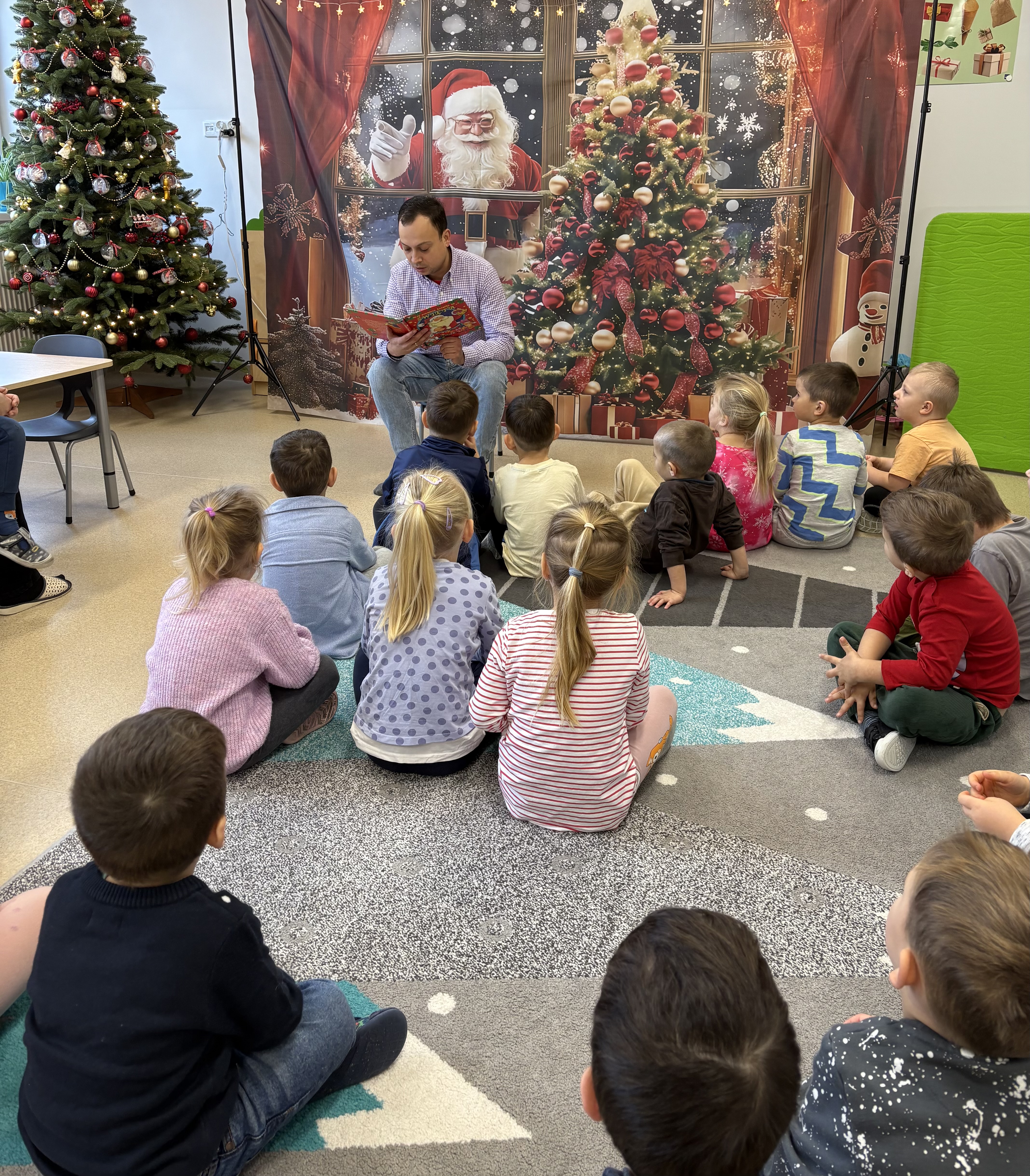 Dziś naszą grupę odwiedził Tata Orianki, który przeczytał dzieciom opowiadanie o Mikołaju. Spotkanie przebiegło w bardzo miłej, świątecznej atmosferze. Dzieci z zaciekawieniem słuchały historii i chętnie dzieliły się swoimi spostrzeżeniami.