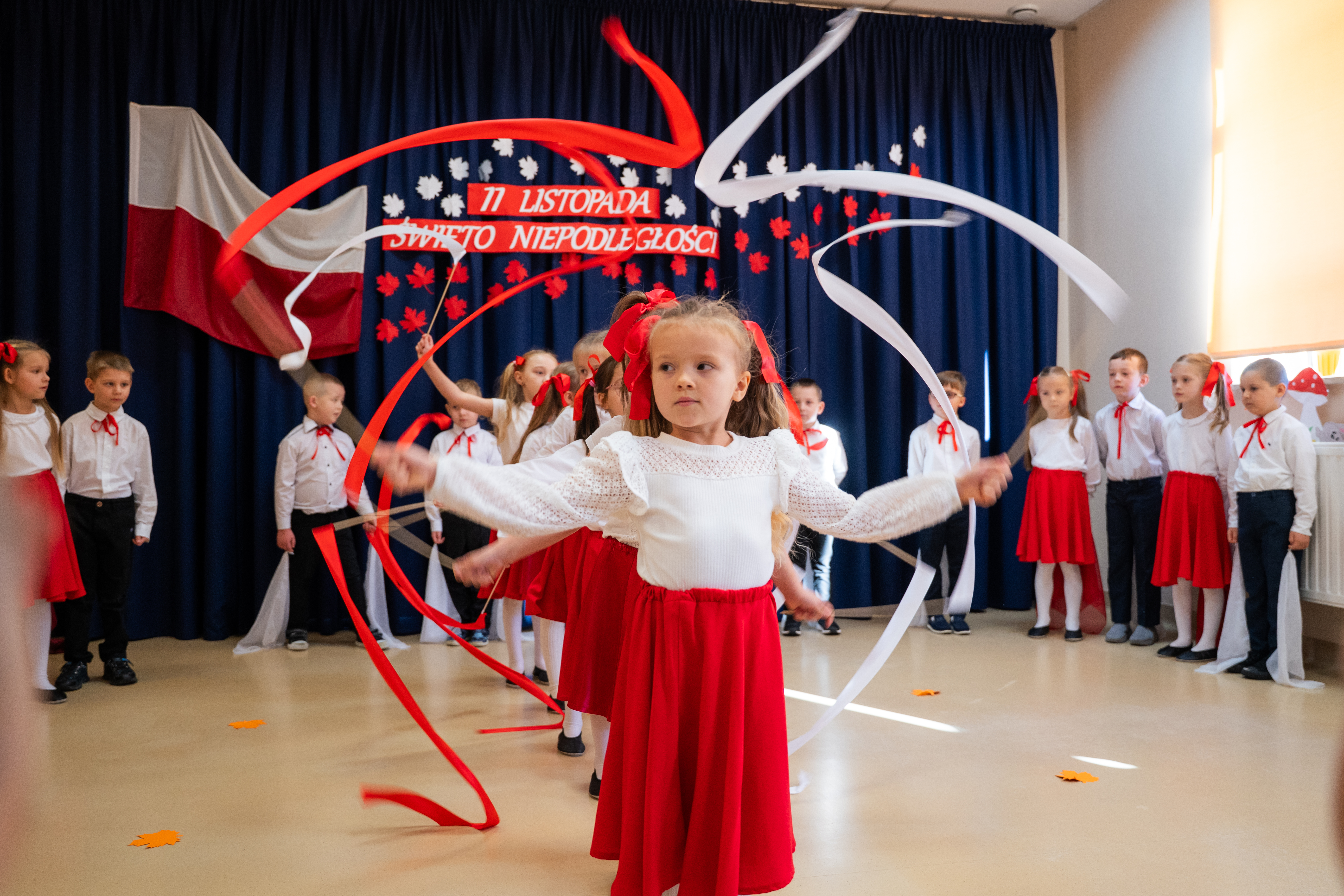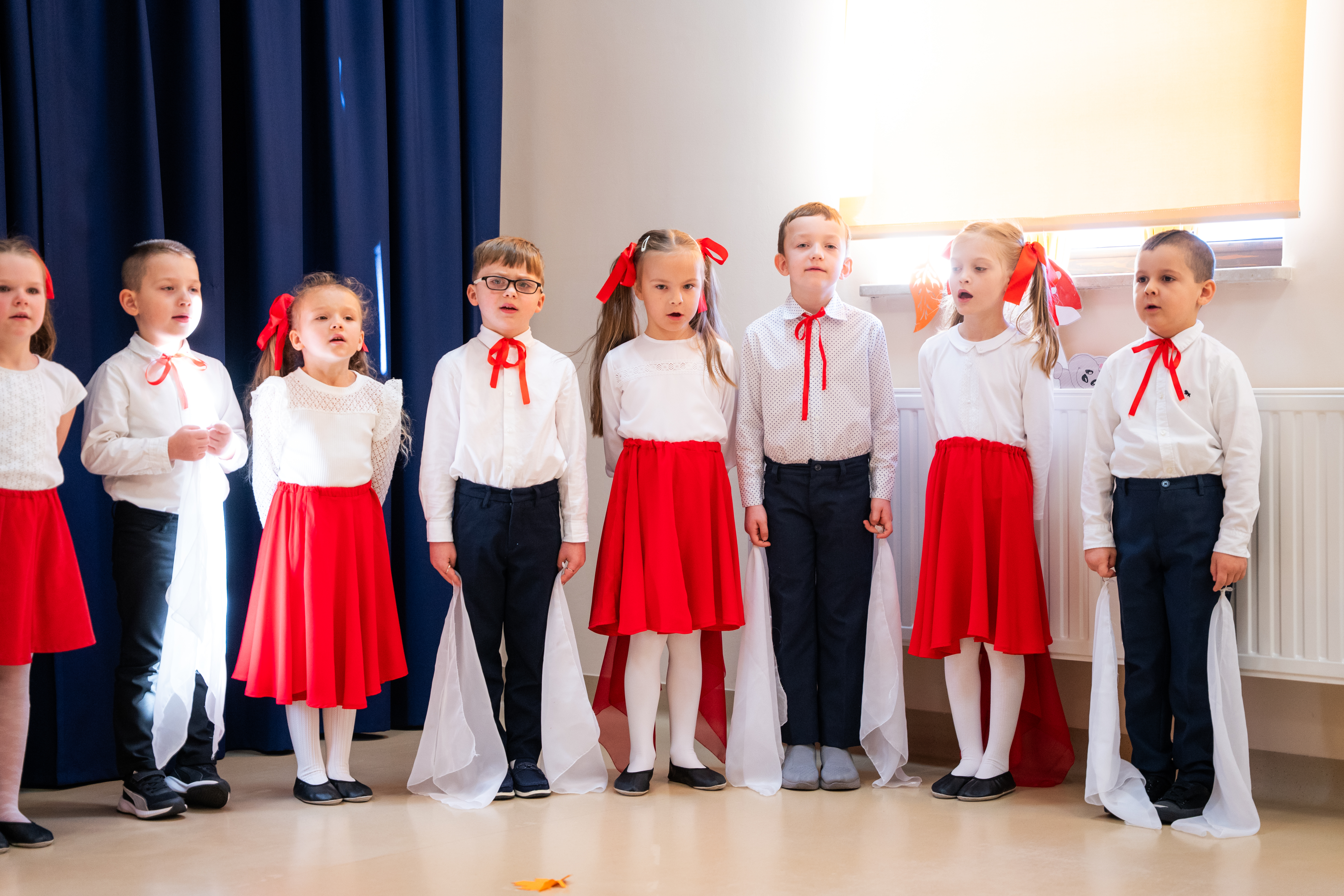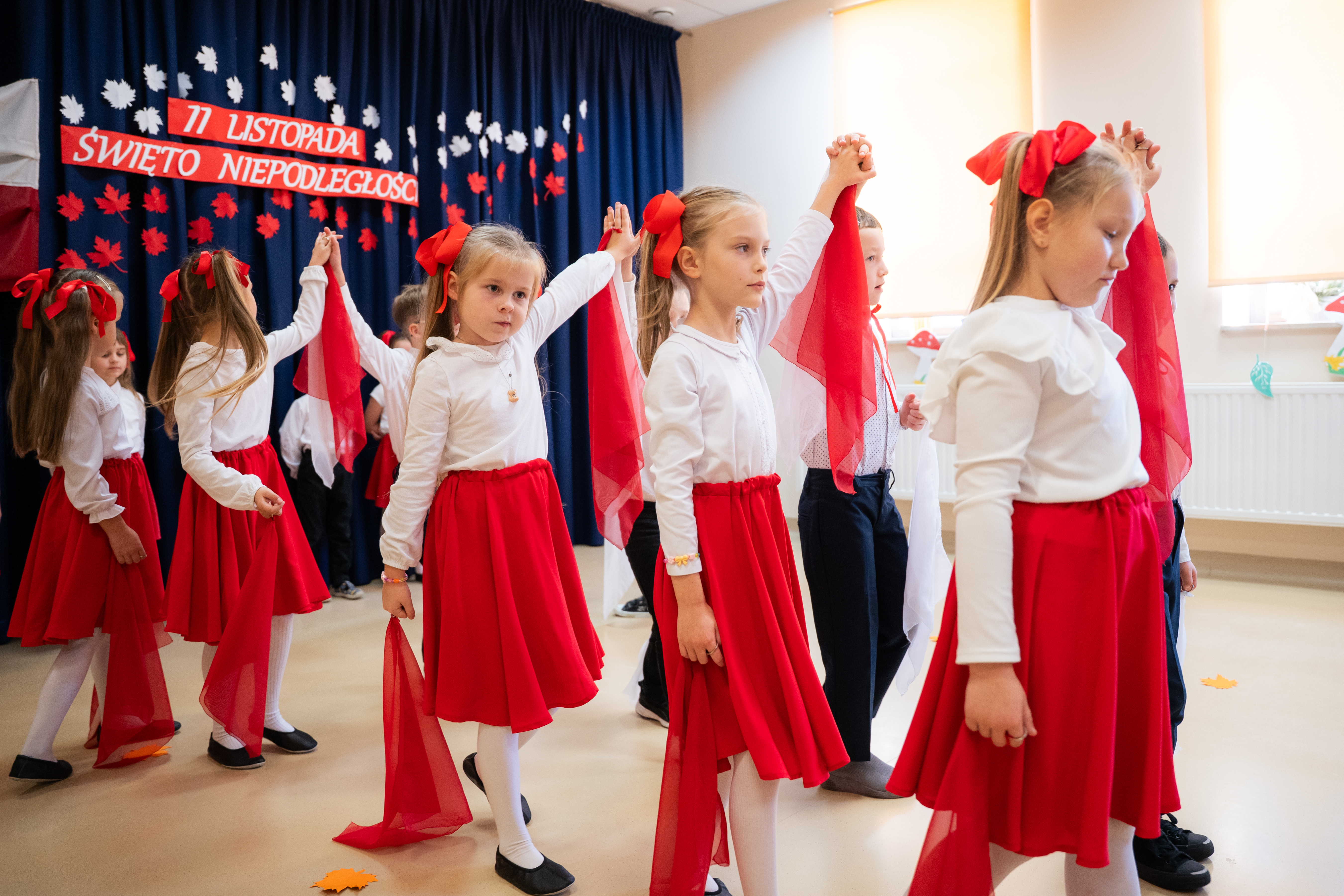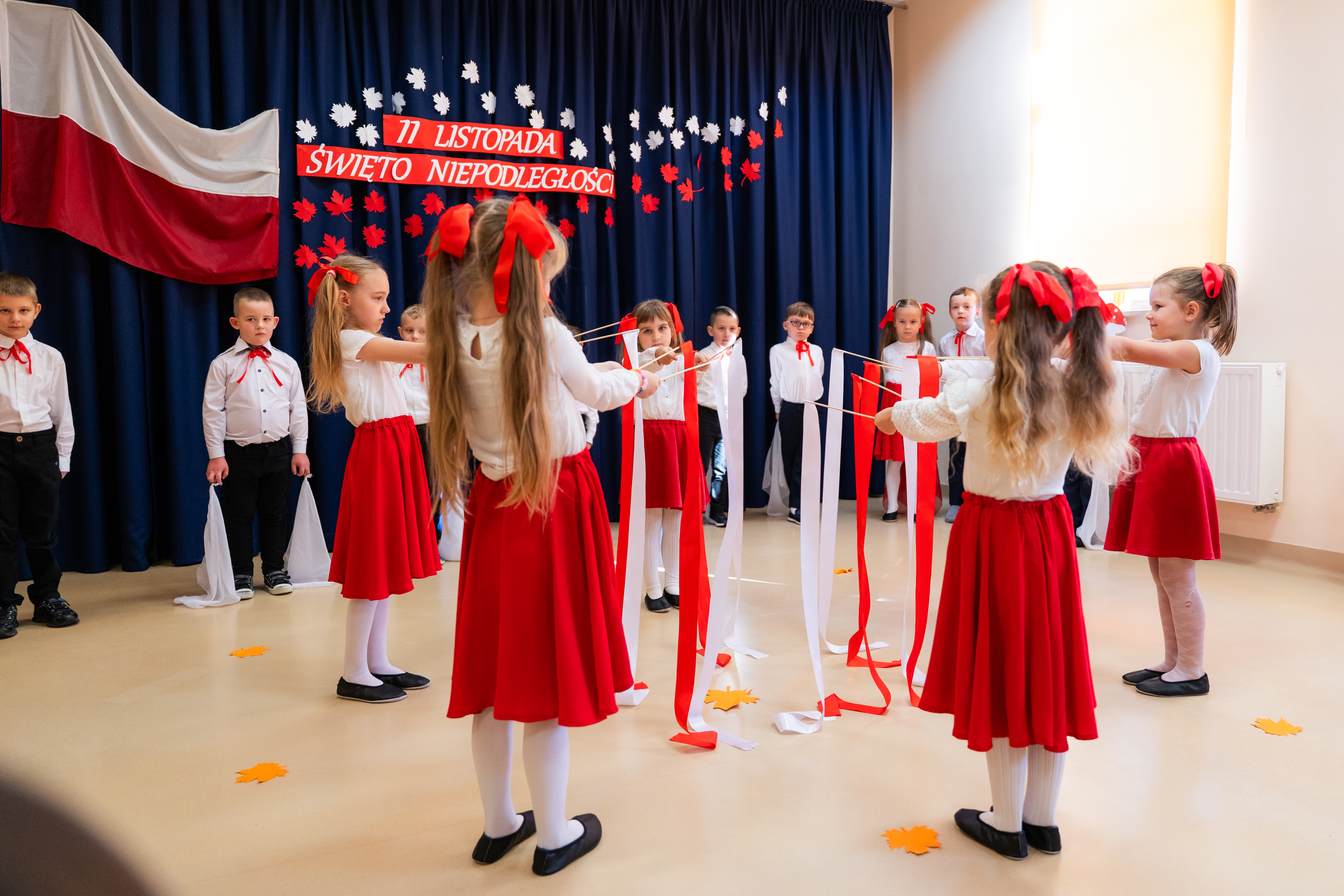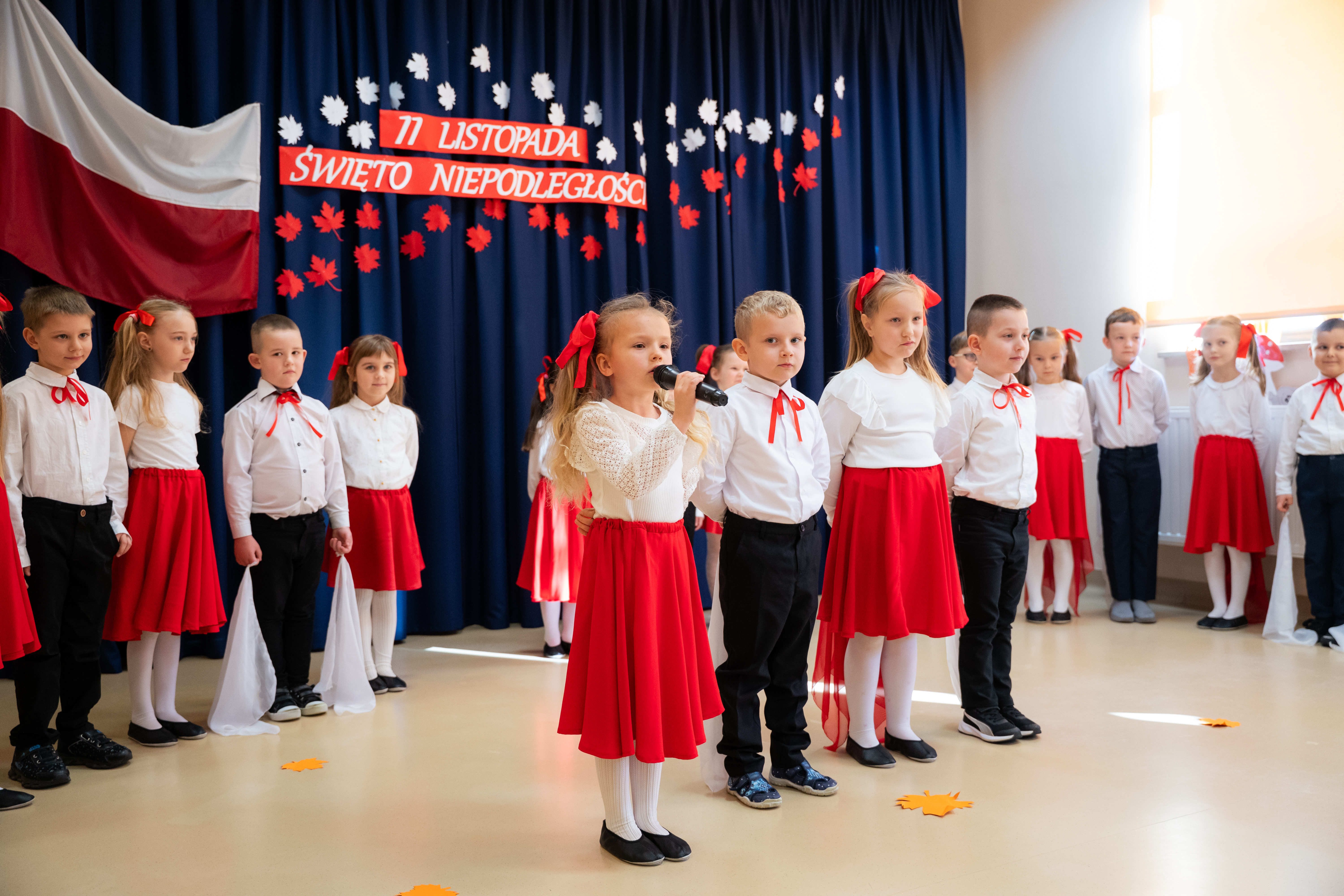 Dnia 7 listopada 2025 r. dzieci z grupy "Słoneczka" zaprezentowały montaż słowno-muzyczny upamiętniający dzień odzyskania przez Polskę NIepodległości. Podczas występu odśpiewano również wspólnie hymn "Mazurek Dąbrowskiego".