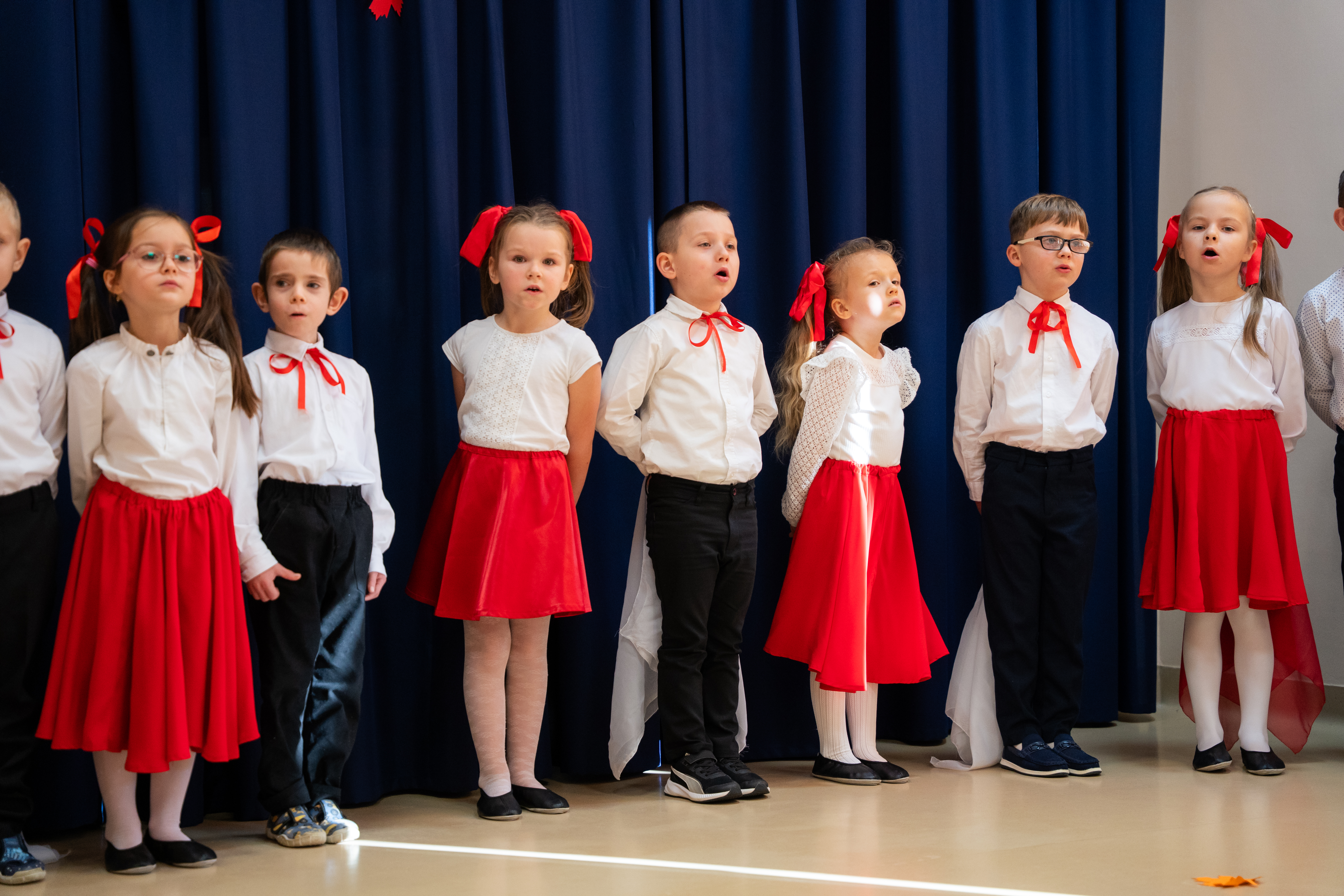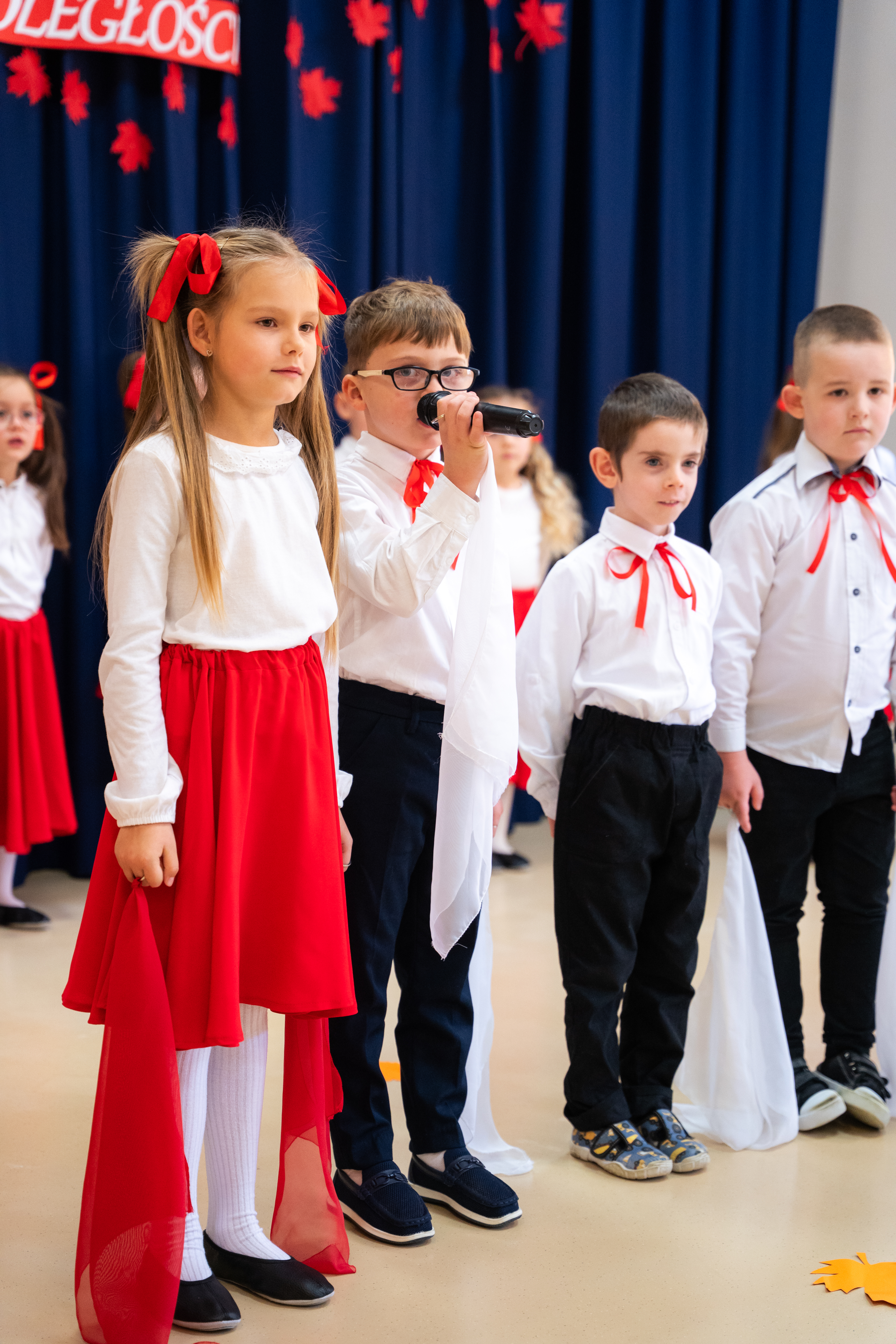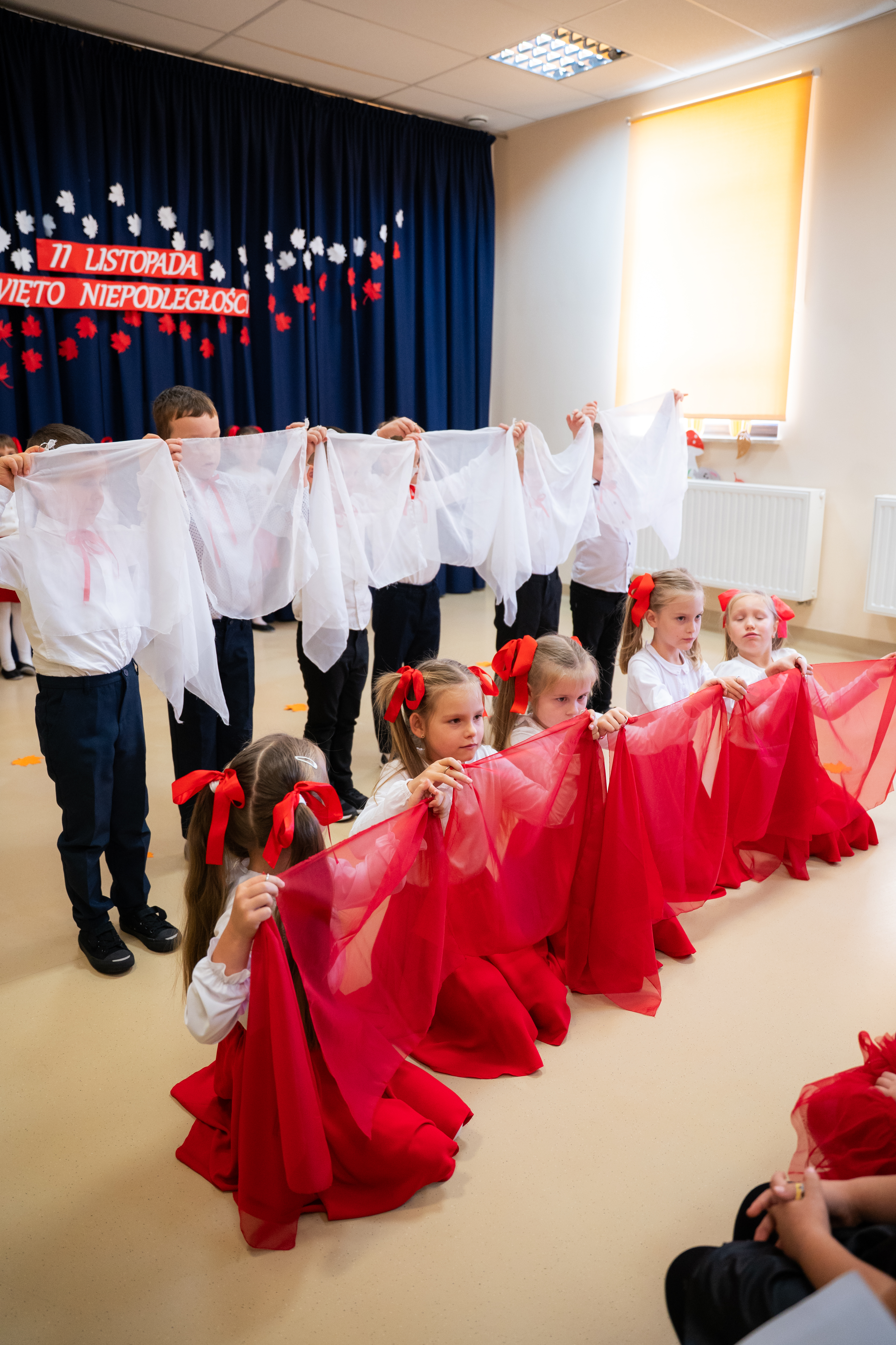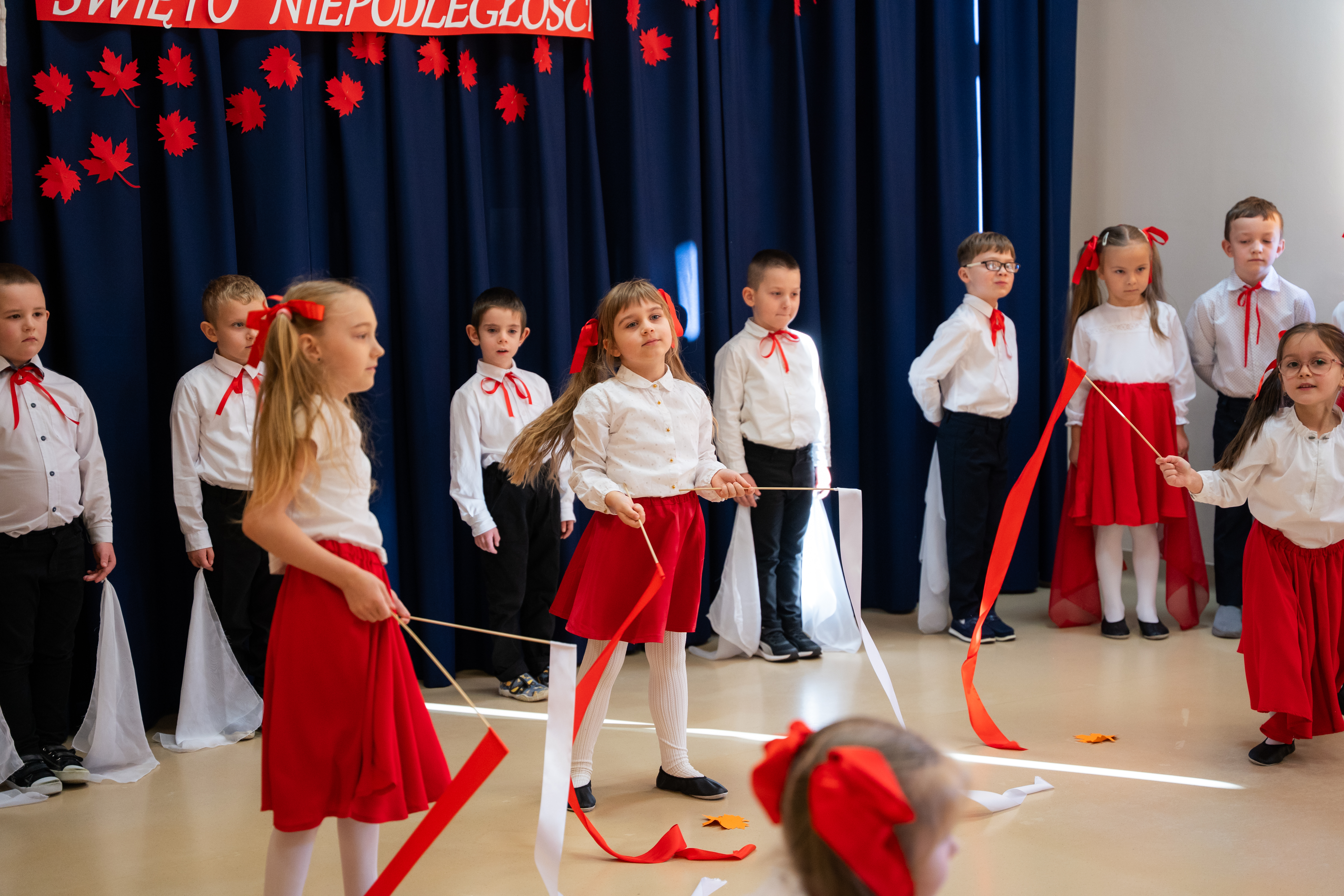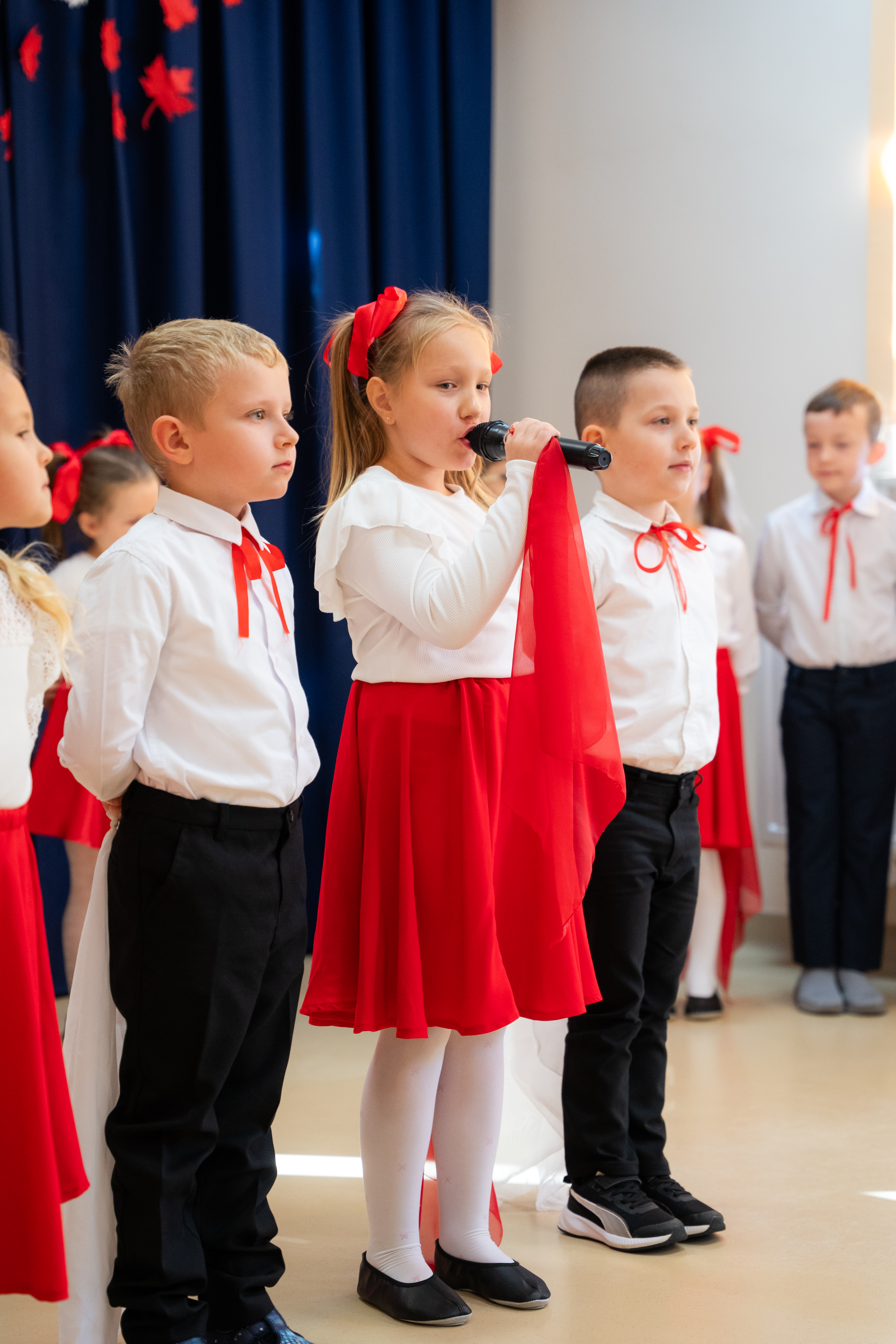 Dnia 7 listopada 2025 r. dzieci z grupy "Słoneczka" zaprezentowały montaż słowno-muzyczny upamiętniający dzień odzyskania przez Polskę NIepodległości. Podczas występu odśpiewano również wspólnie hymn "Mazurek Dąbrowskiego".