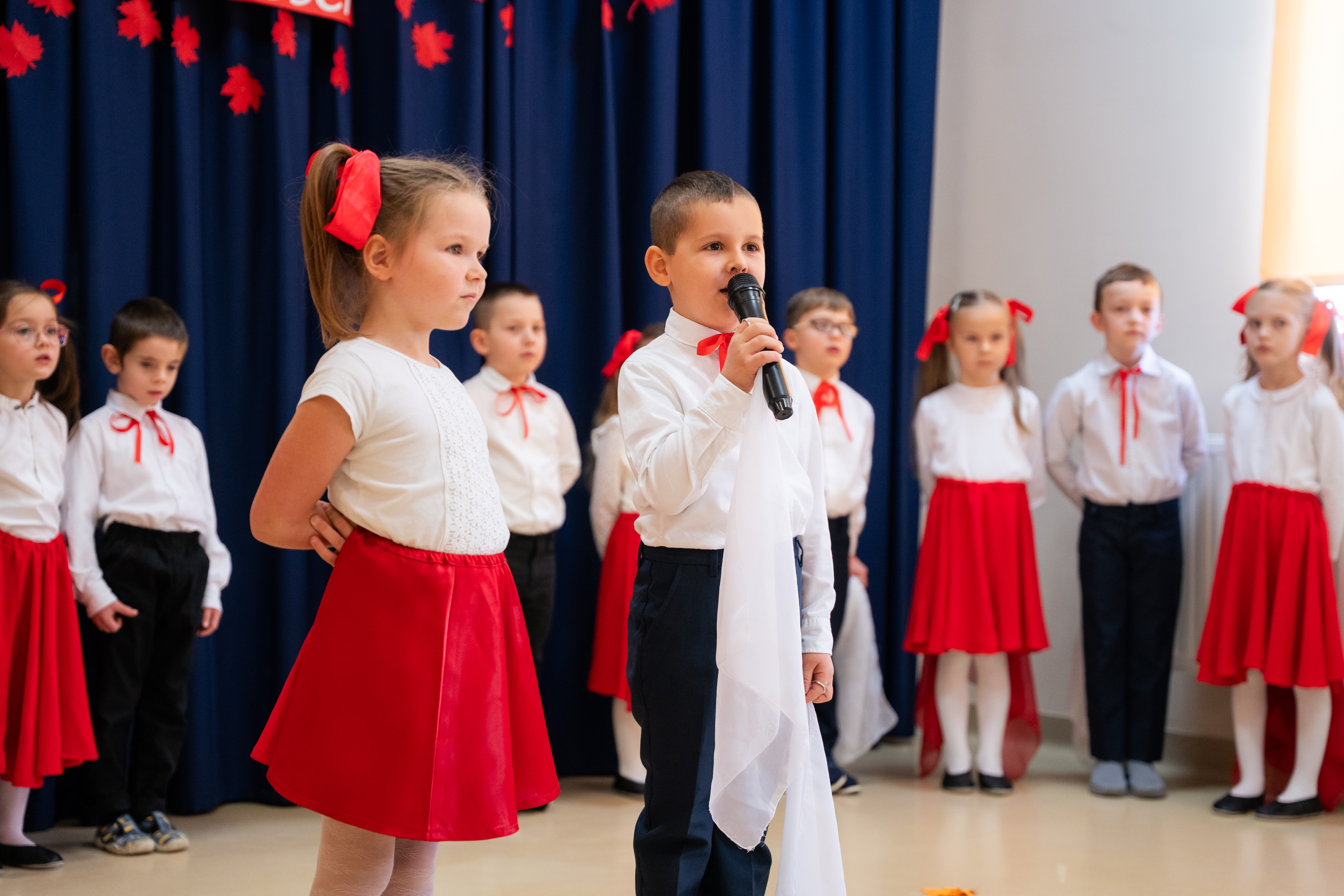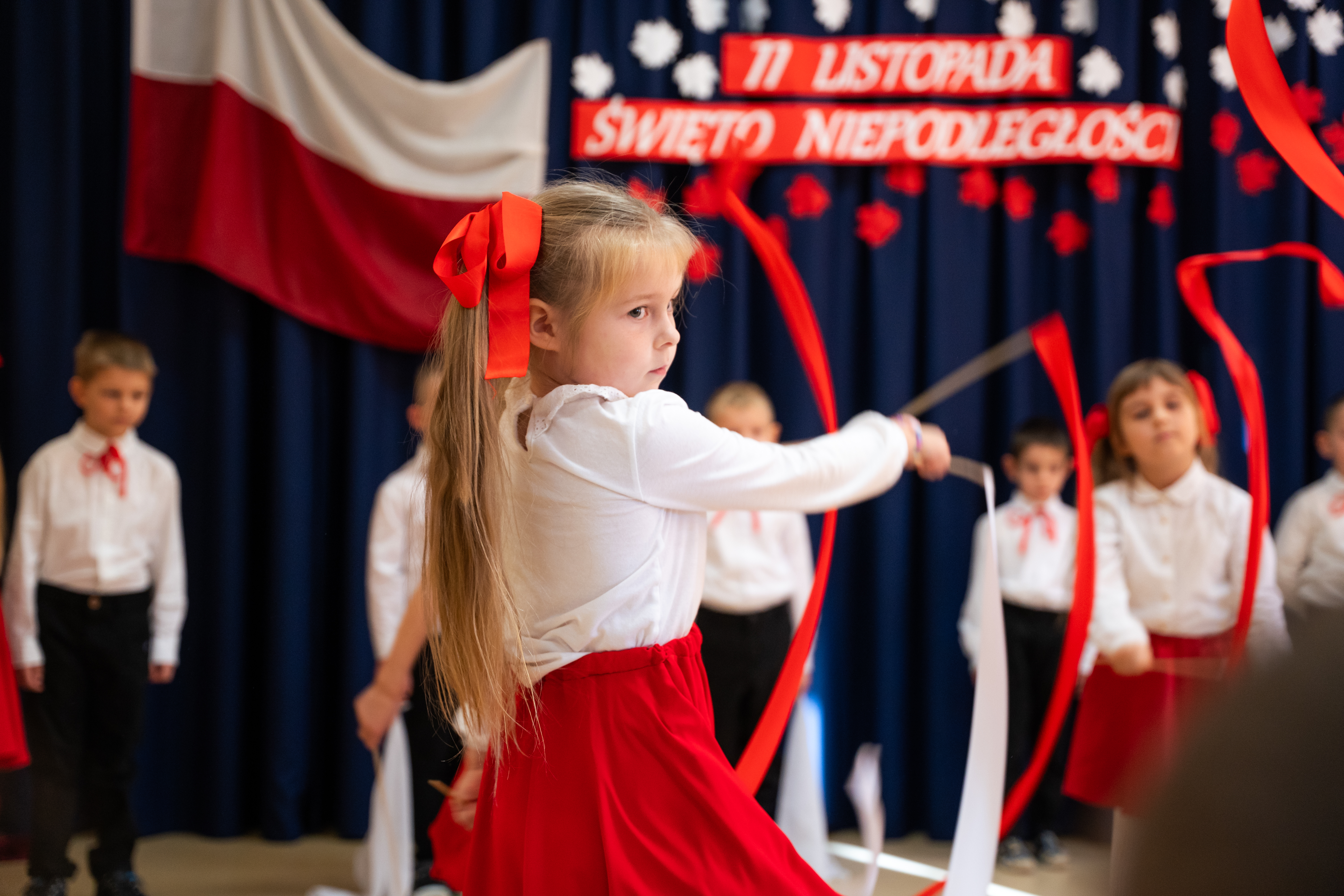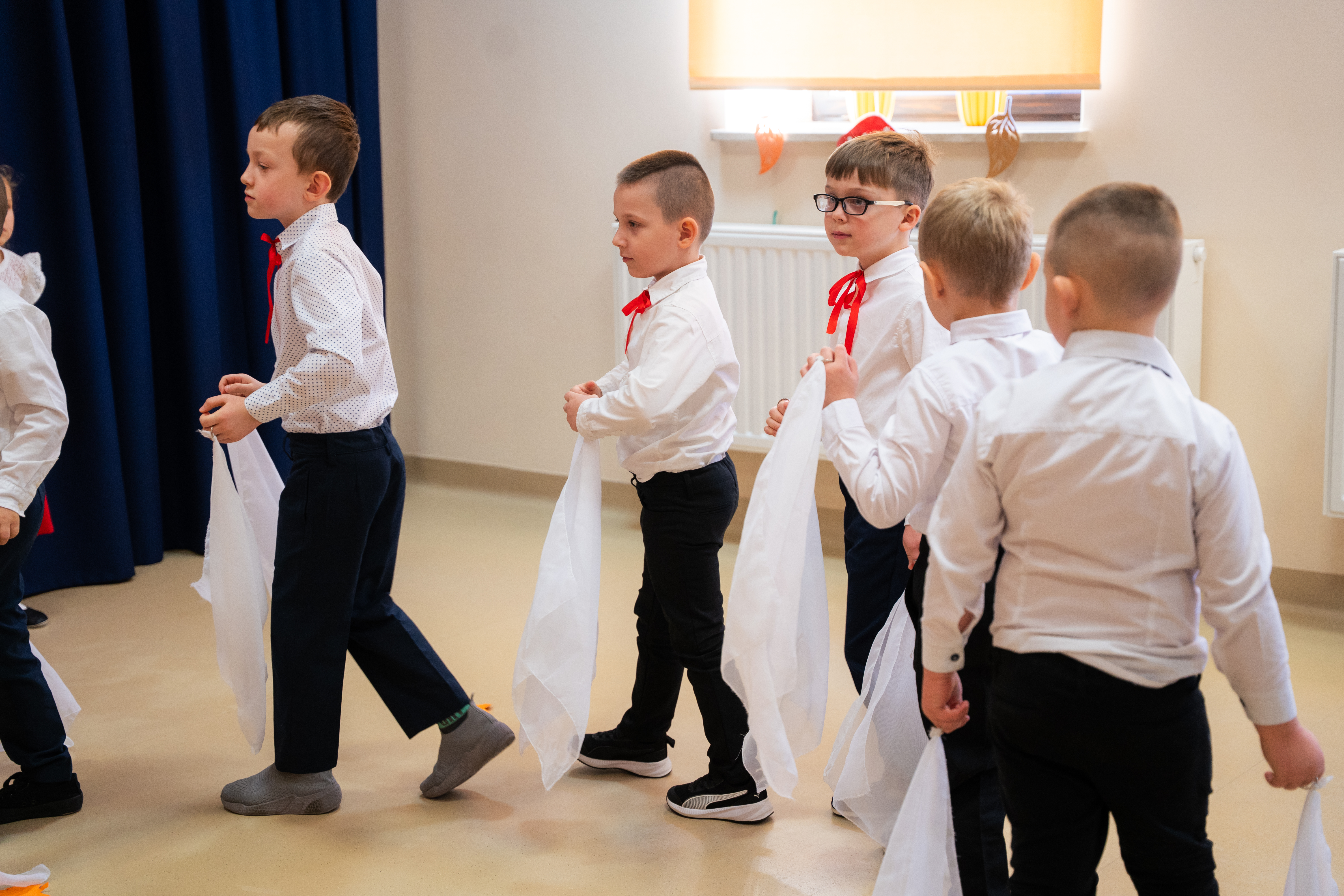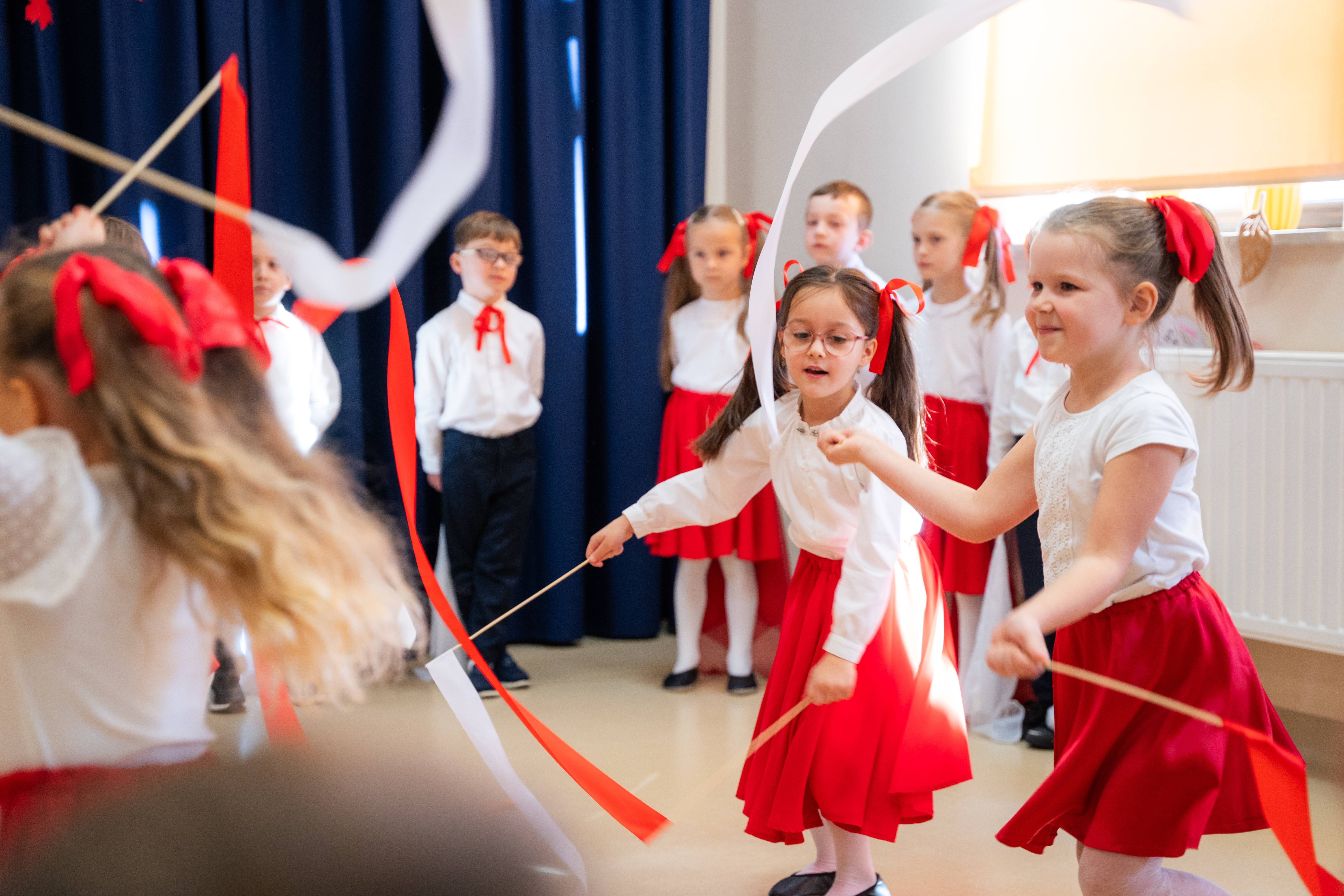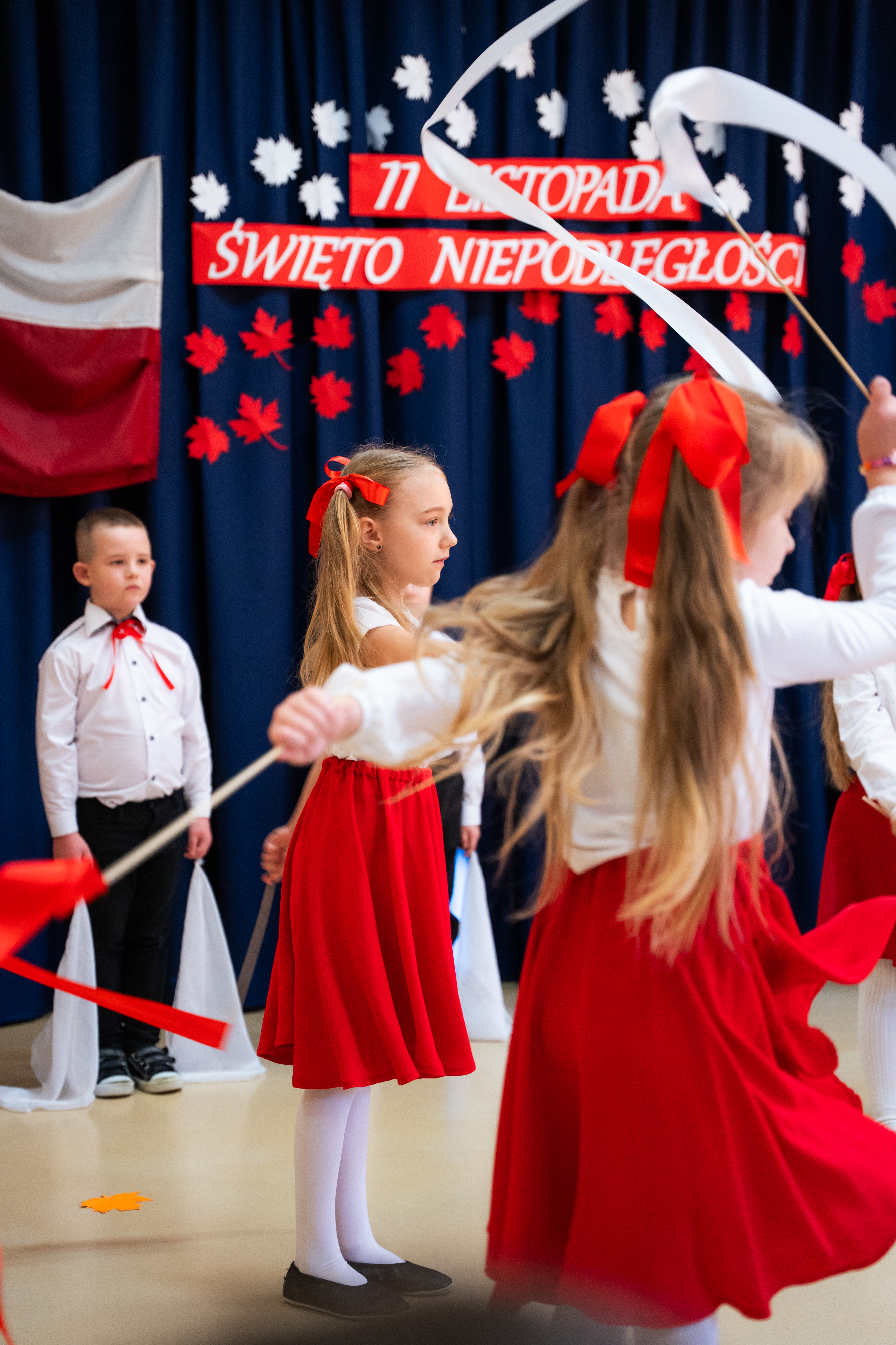 Dnia 7 listopada 2025 r. dzieci z grupy "Słoneczka" zaprezentowały montaż słowno-muzyczny upamiętniający dzień odzyskania przez Polskę NIepodległości. Podczas występu odśpiewano również wspólnie hymn "Mazurek Dąbrowskiego".