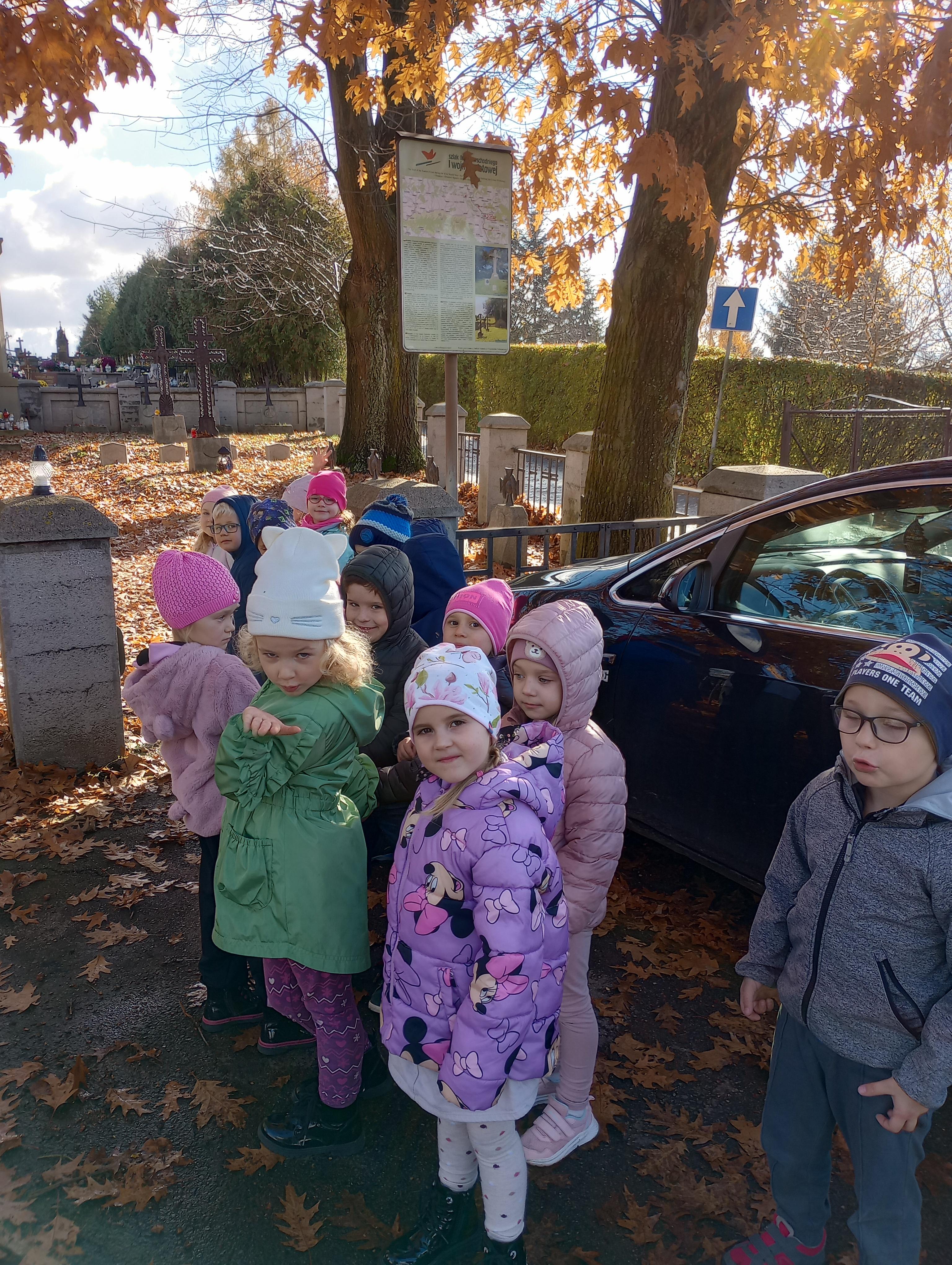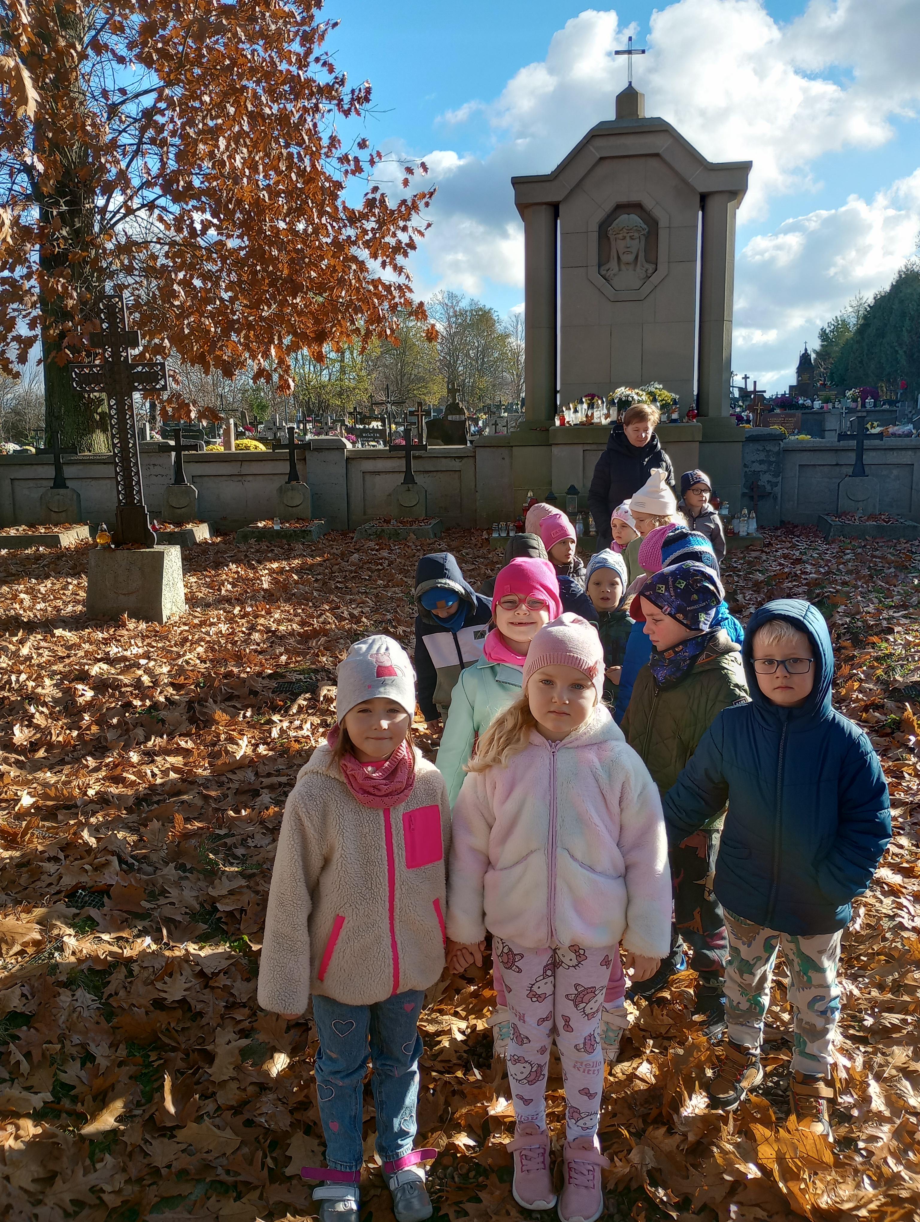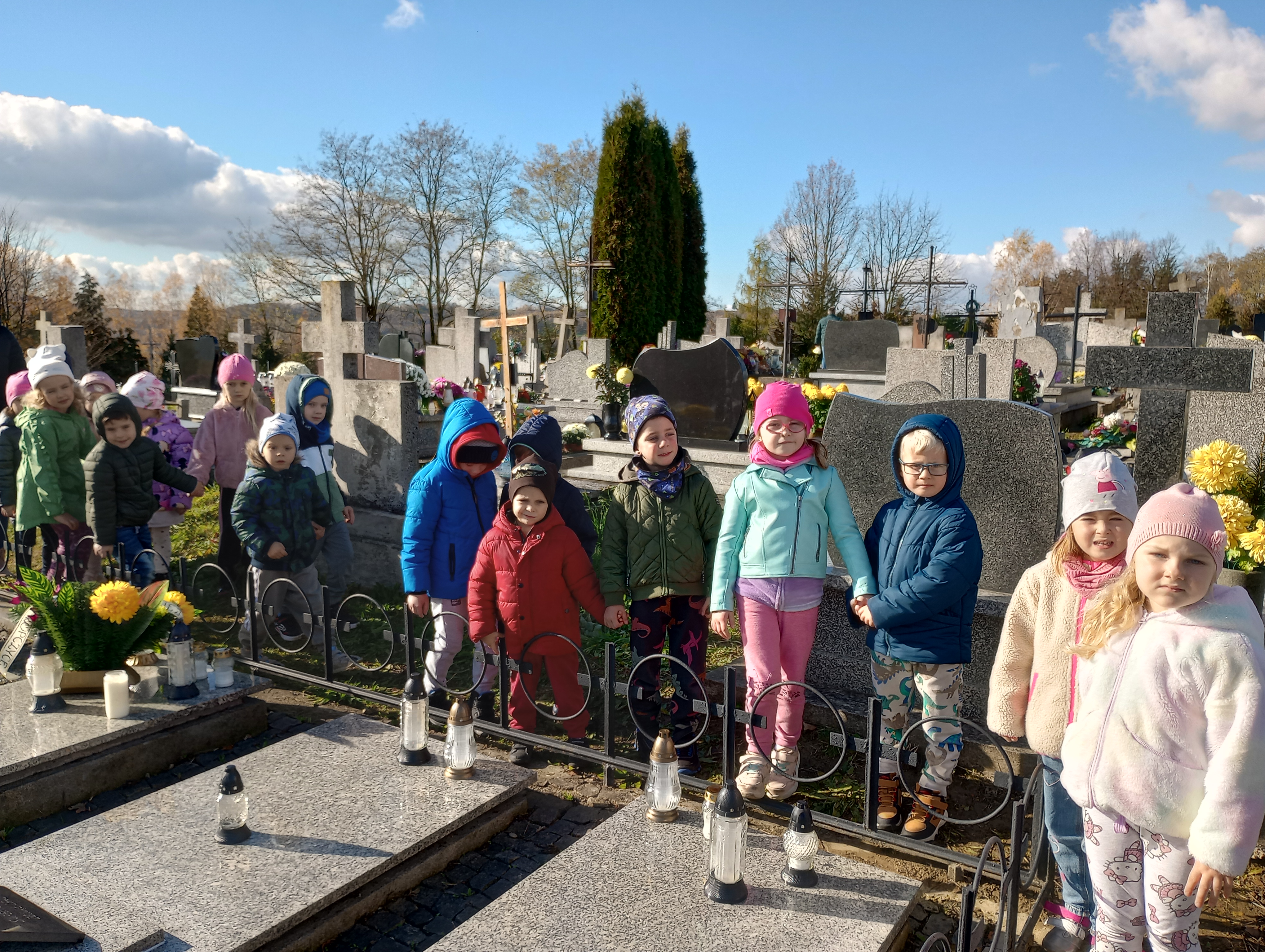 Podczas jesiennego spaceru dotarliśmy do cmentarza, gdzie w odpowiedni sposób uczciliśmy zmarłych. Poprzez wspólną modlitwę i zapalenie zniczy dzieci uświadomiły sobie, że pamięć o tych, których już z nami nie ma jest bardzo ważna.