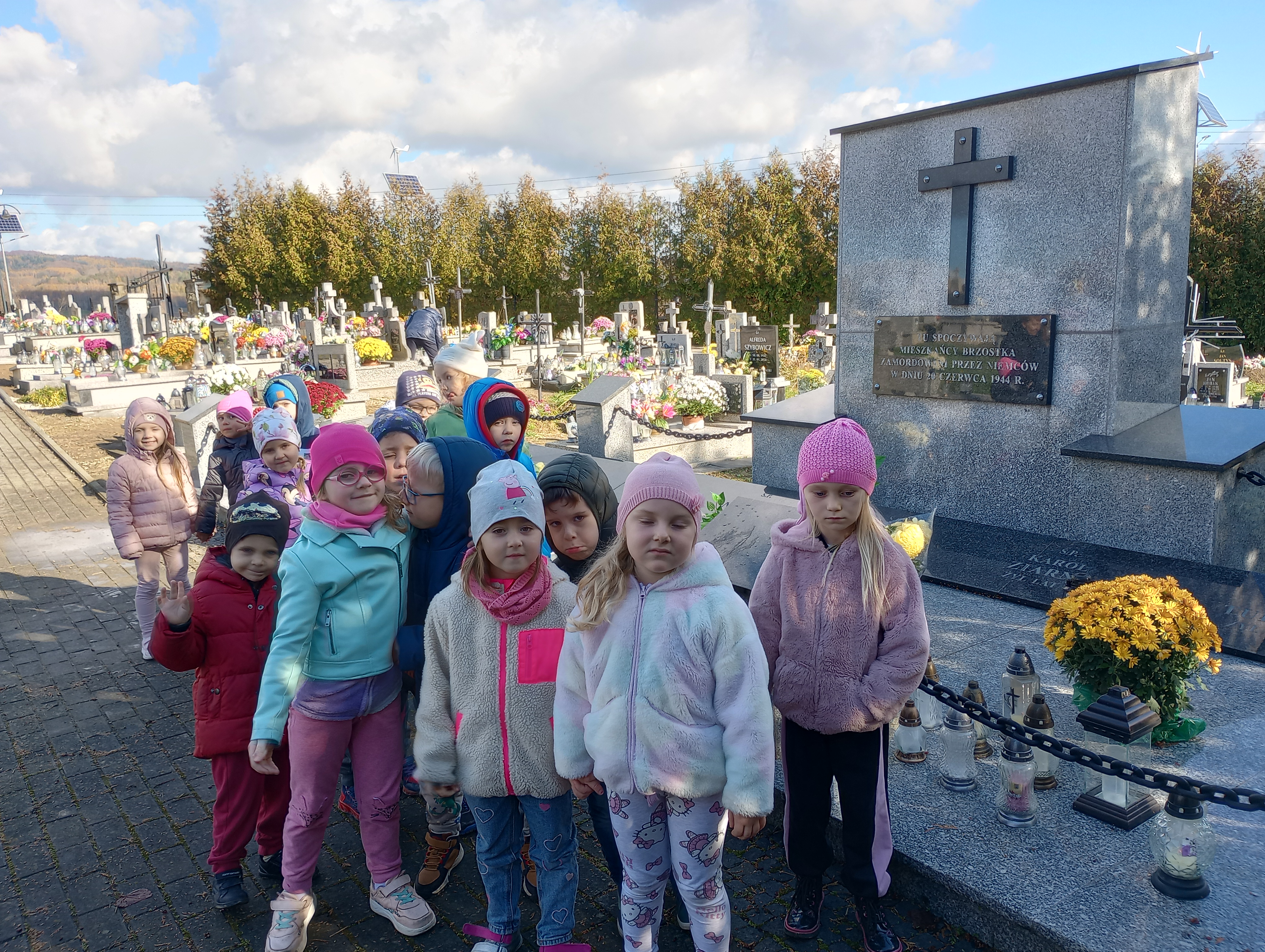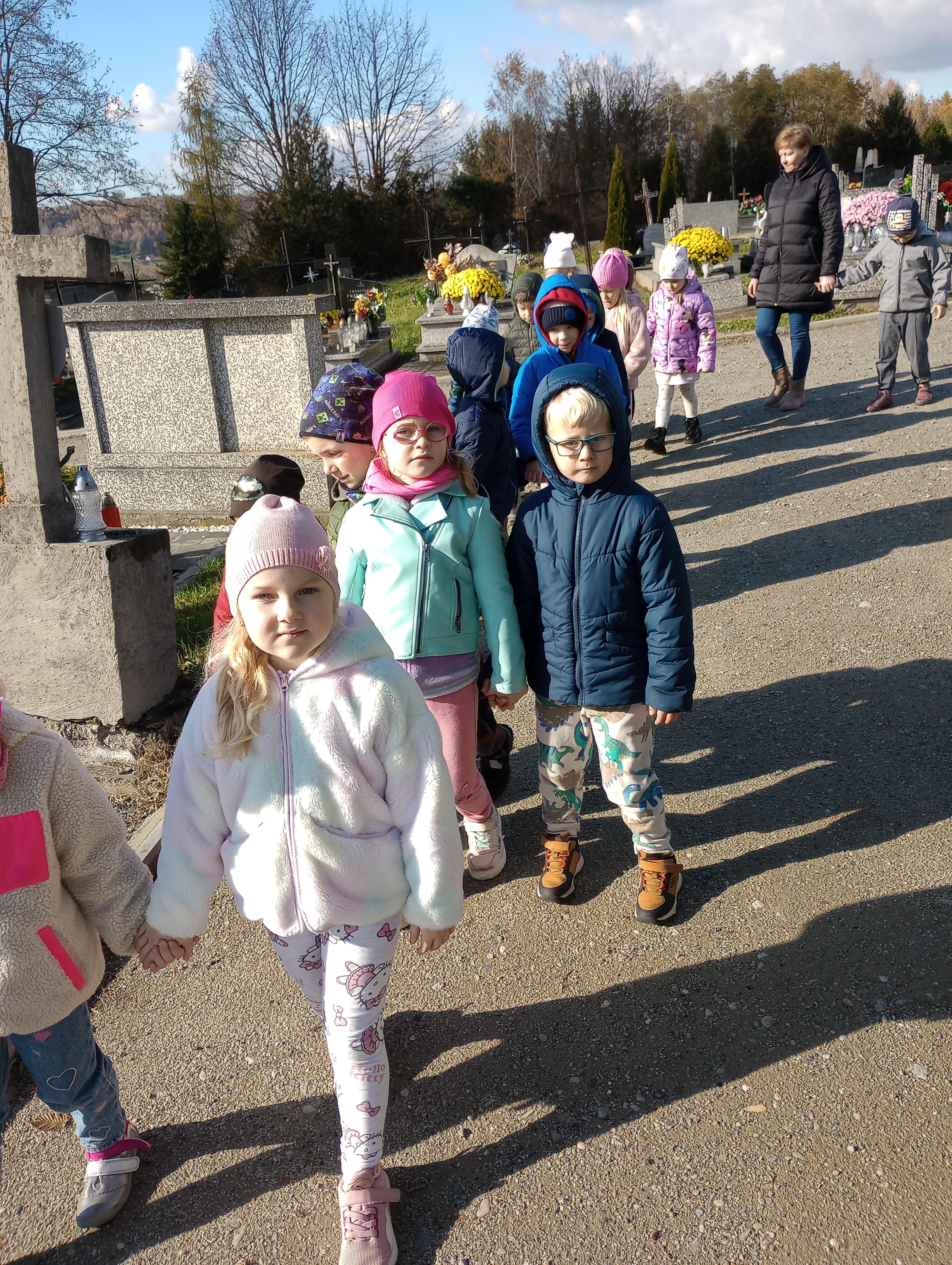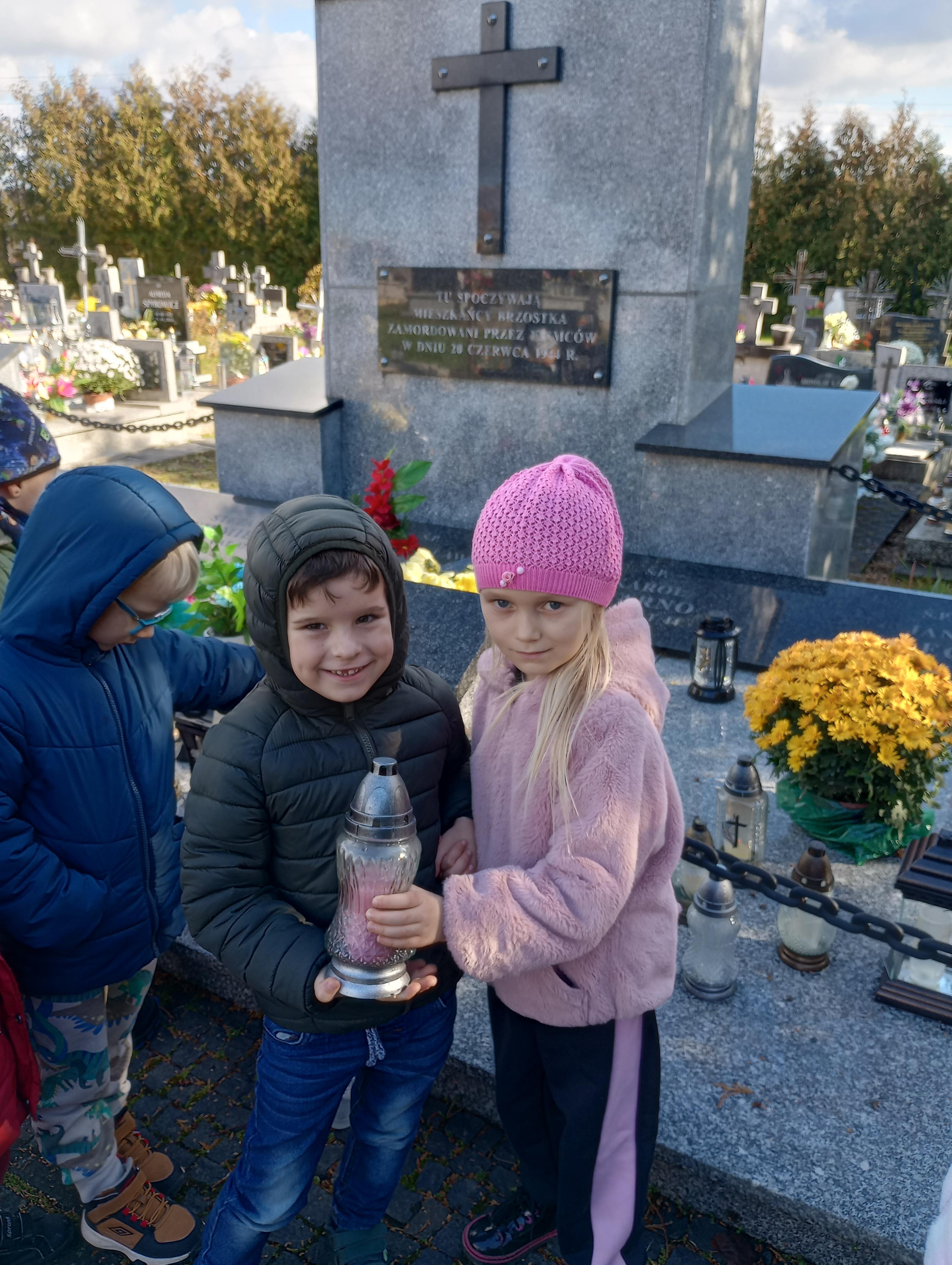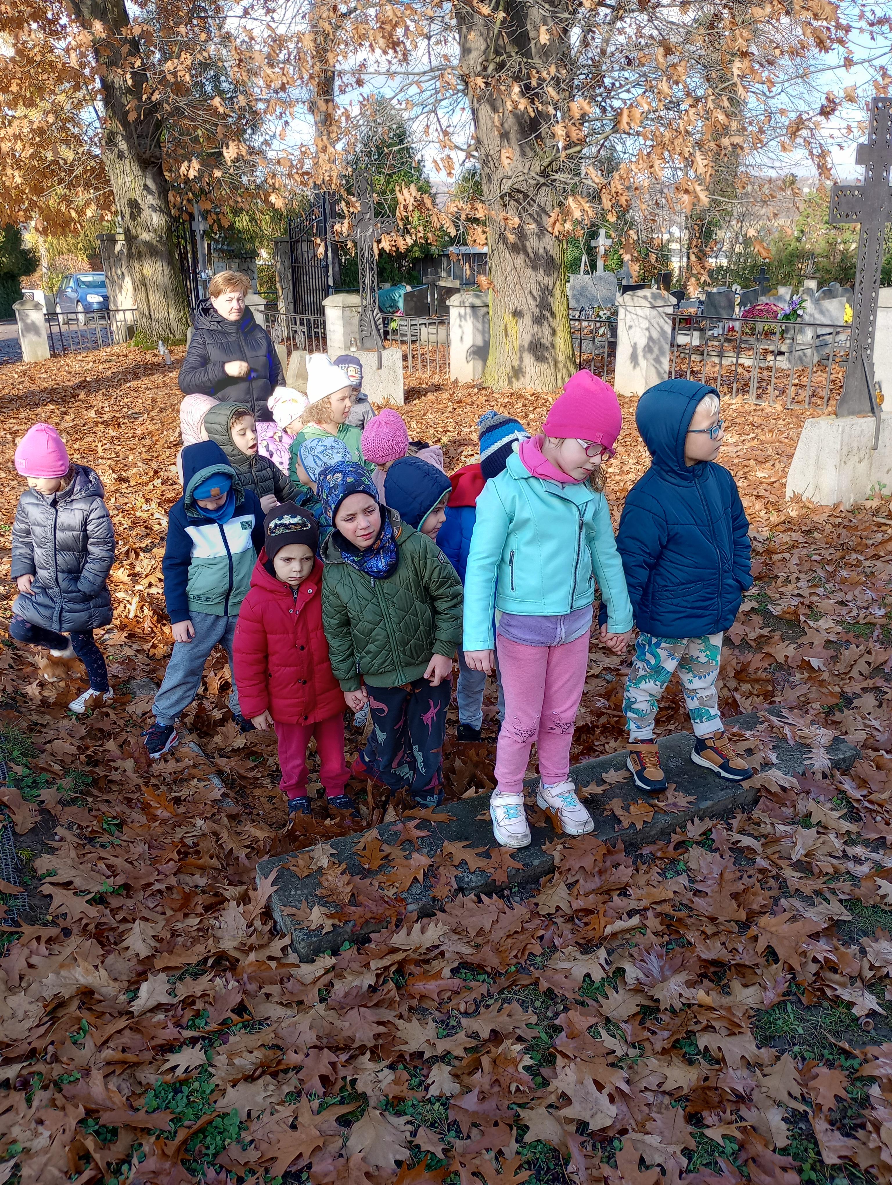 Podczas jesiennego spaceru dotarliśmy do cmentarza, gdzie w odpowiedni sposób uczciliśmy zmarłych. Poprzez wspólną modlitwę i zapalenie zniczy dzieci uświadomiły sobie, że pamięć o tych, których już z nami nie ma jest bardzo ważna.