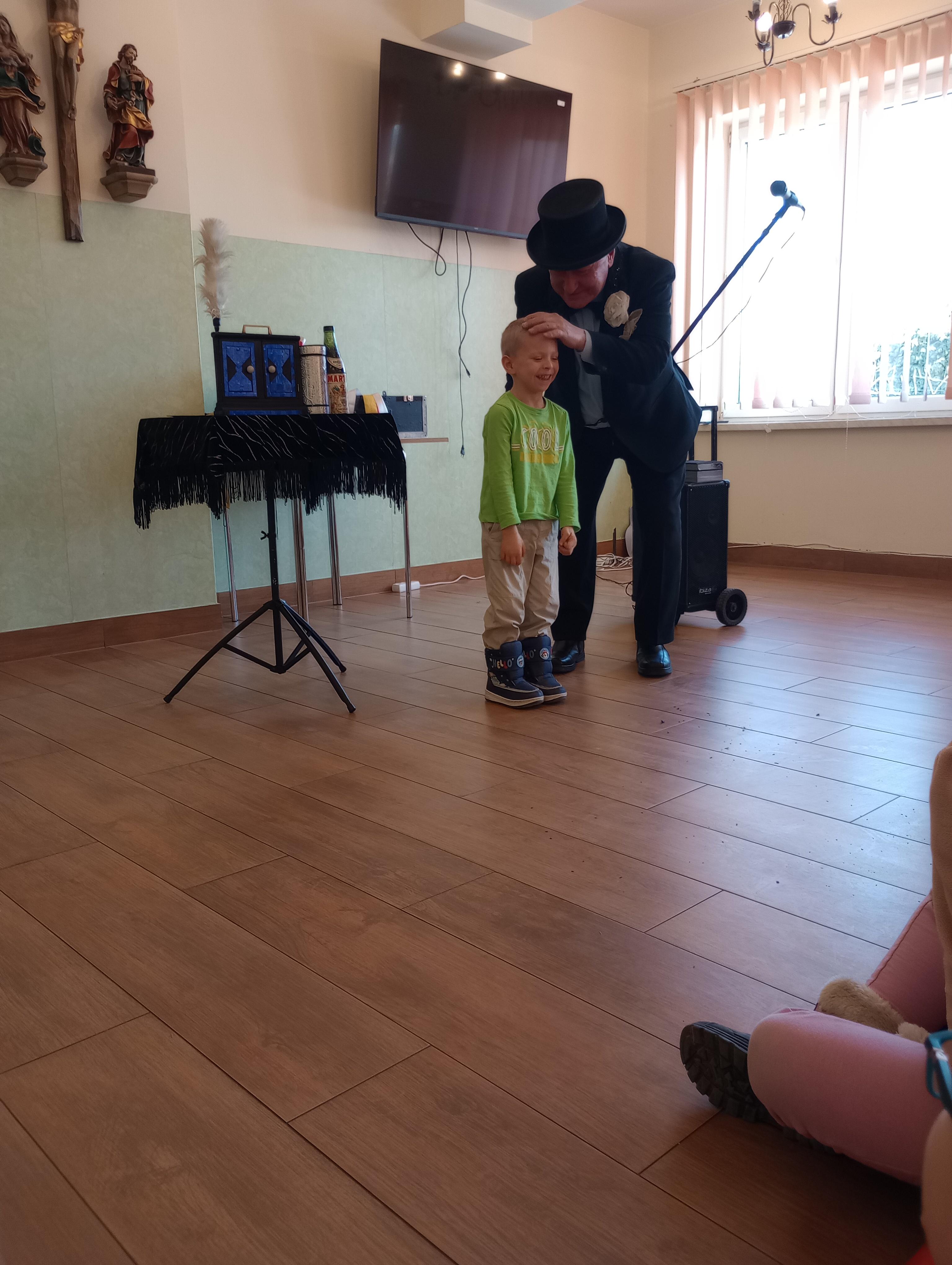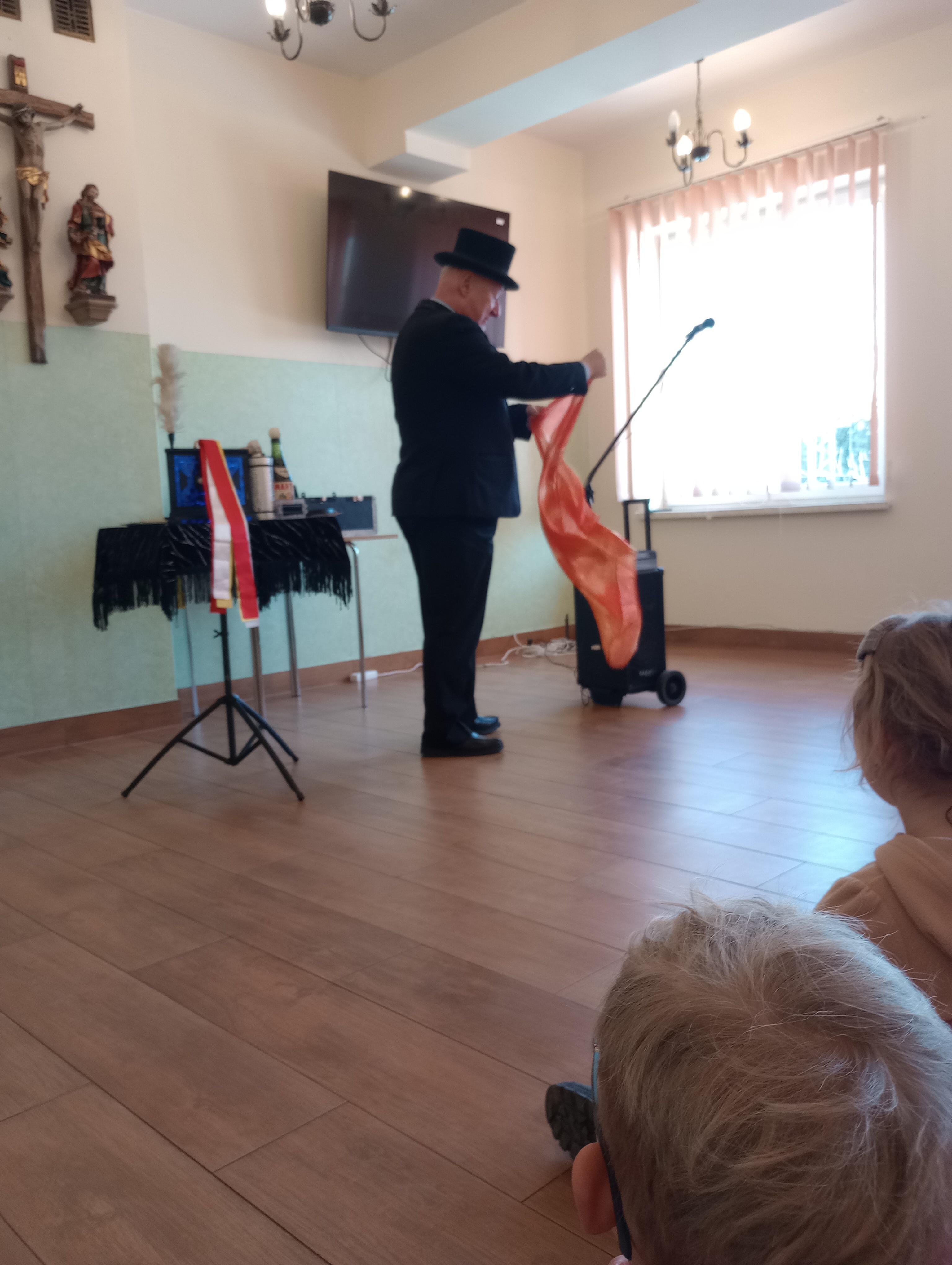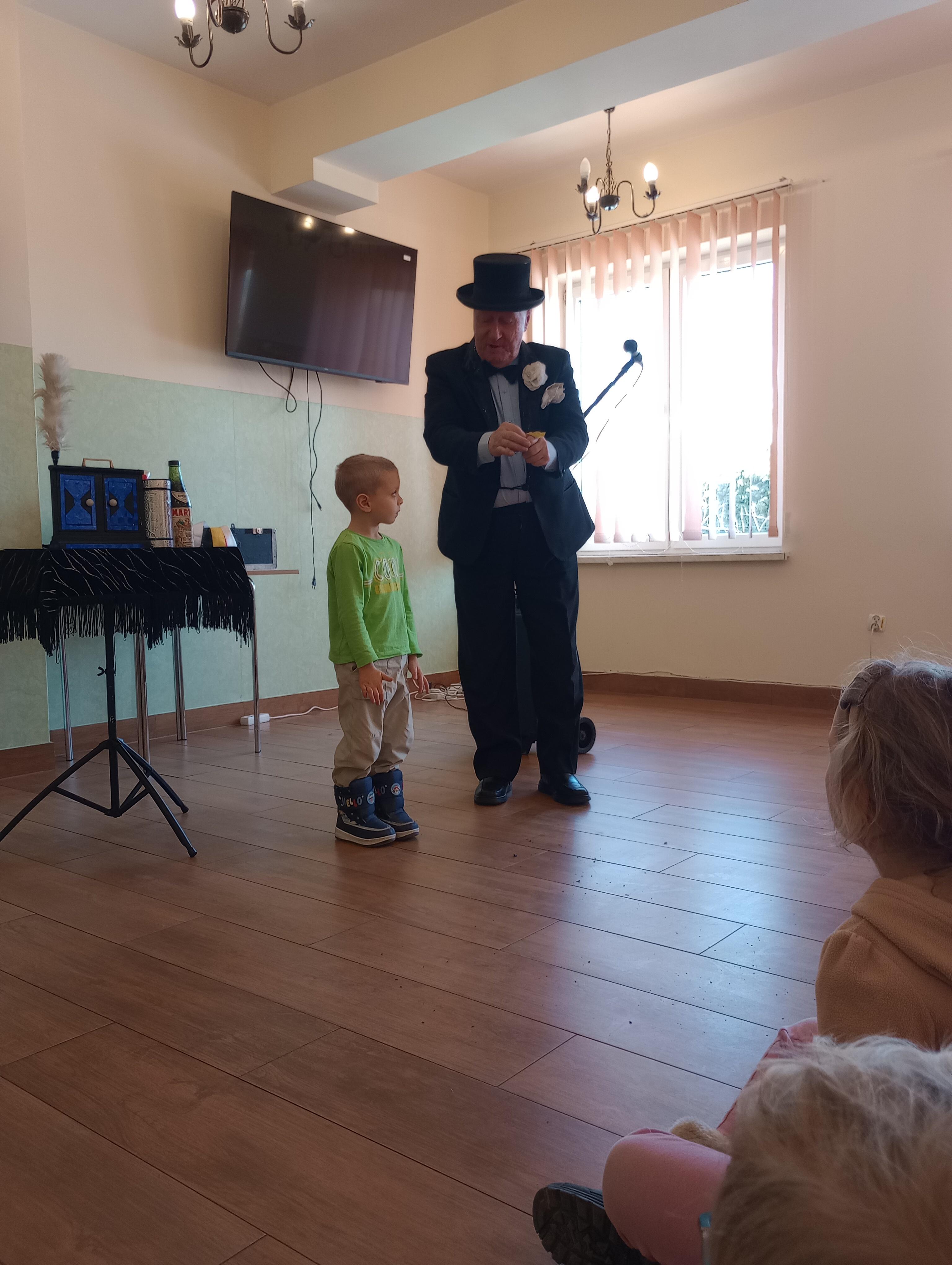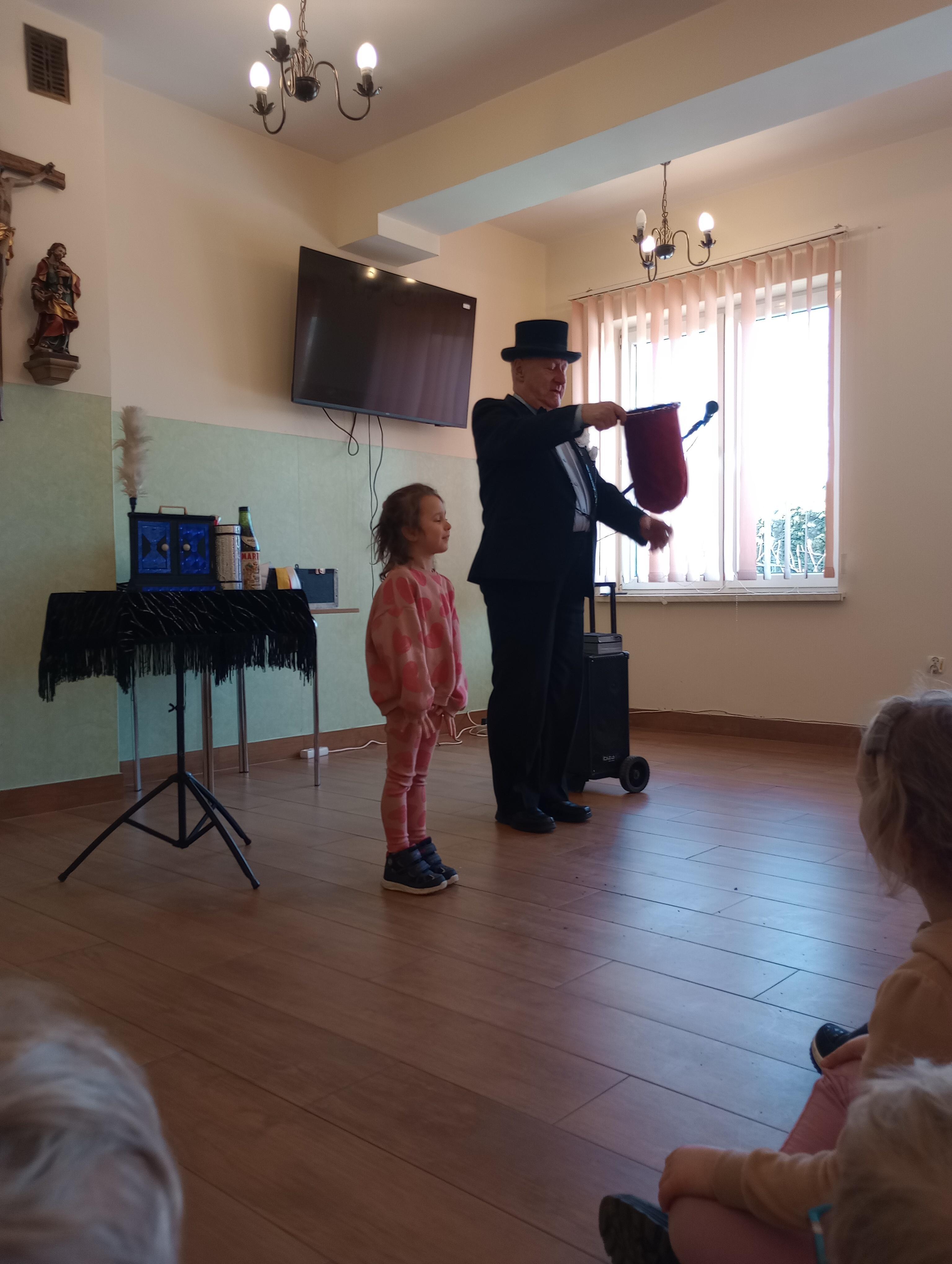 Dzięki uprzejmości Pana Karola - kierownika Środowiskowego Domu Samopomocy im. bł. Jana Pawła II w Brzostku dzieci z naszej grupy wzięły udział w spotkaniu z iluzjonistą. Pokaz magicznych sztuczek angażujący najmłodszych okazał się zaskakujący i dostarczył nam wielu pozytywnych emocji. Serdecznie dziękujemy za zaproszenie.