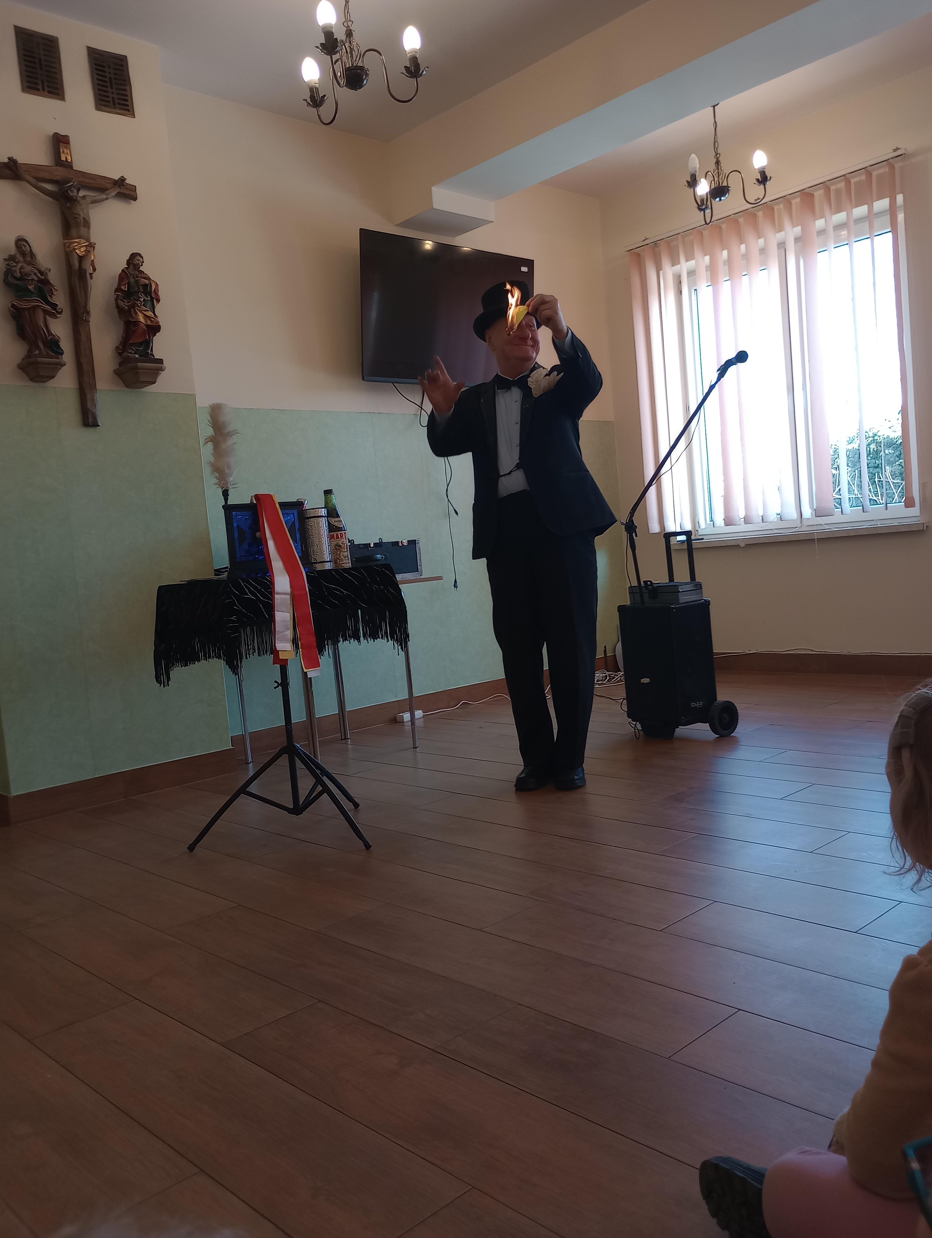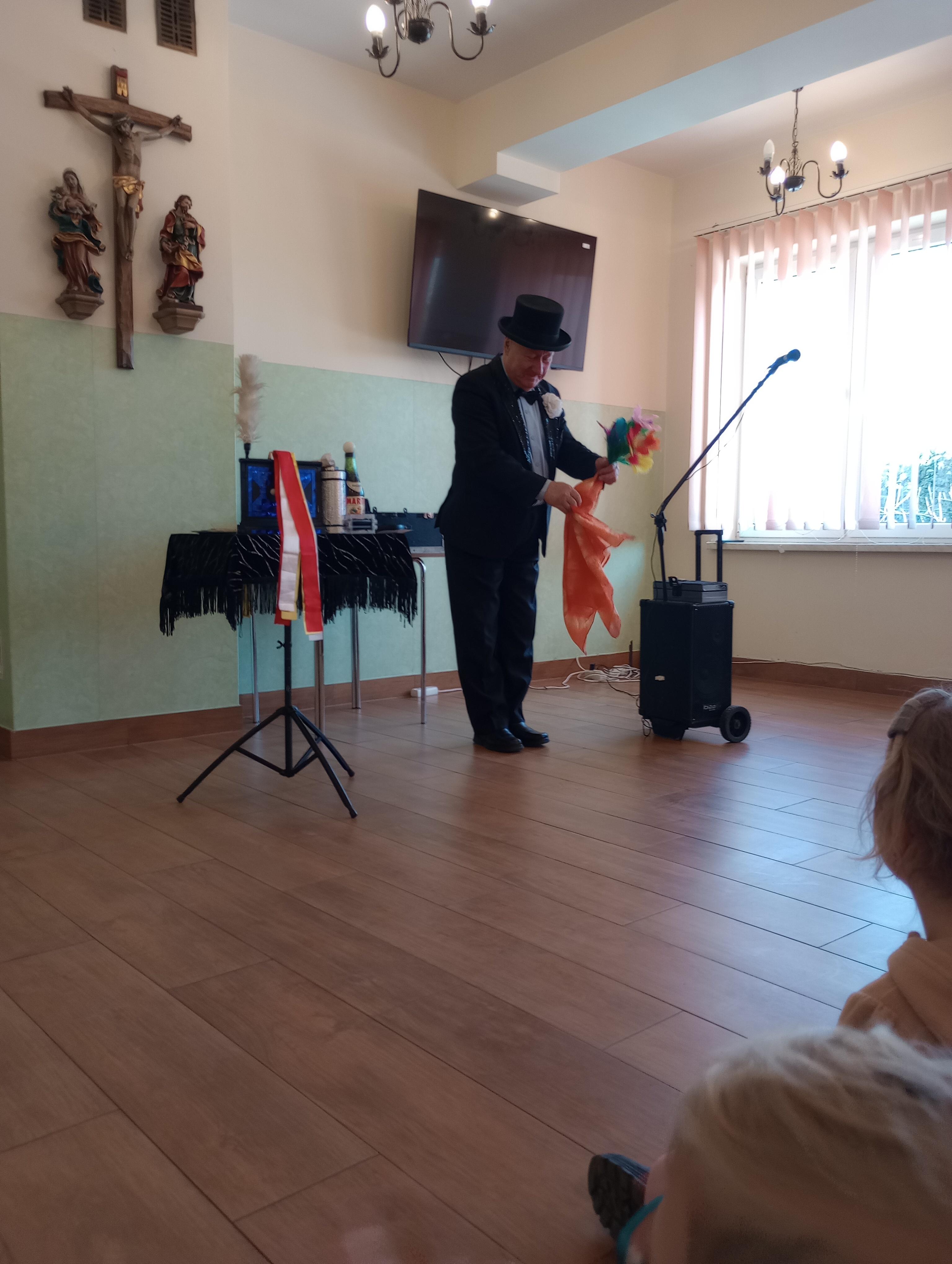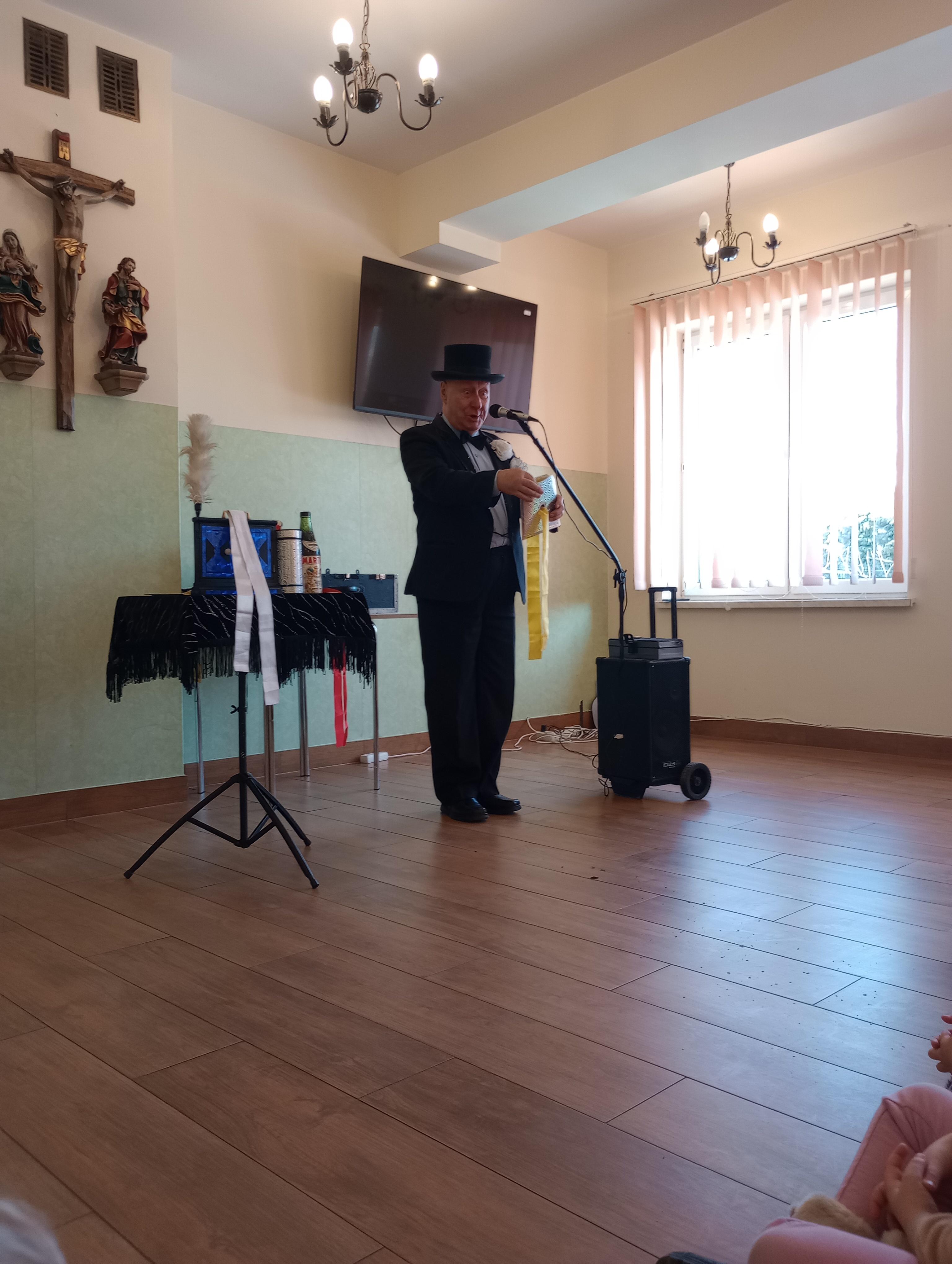 Dzięki uprzejmości Pana Karola - kierownika Środowiskowego Domu Samopomocy im. bł. Jana Pawła II w Brzostku dzieci z naszej grupy wzięły udział w spotkaniu z iluzjonistą. Pokaz magicznych sztuczek angażujący najmłodszych okazał się zaskakujący i dostarczył nam wielu pozytywnych emocji. Serdecznie dziękujemy za zaproszenie.