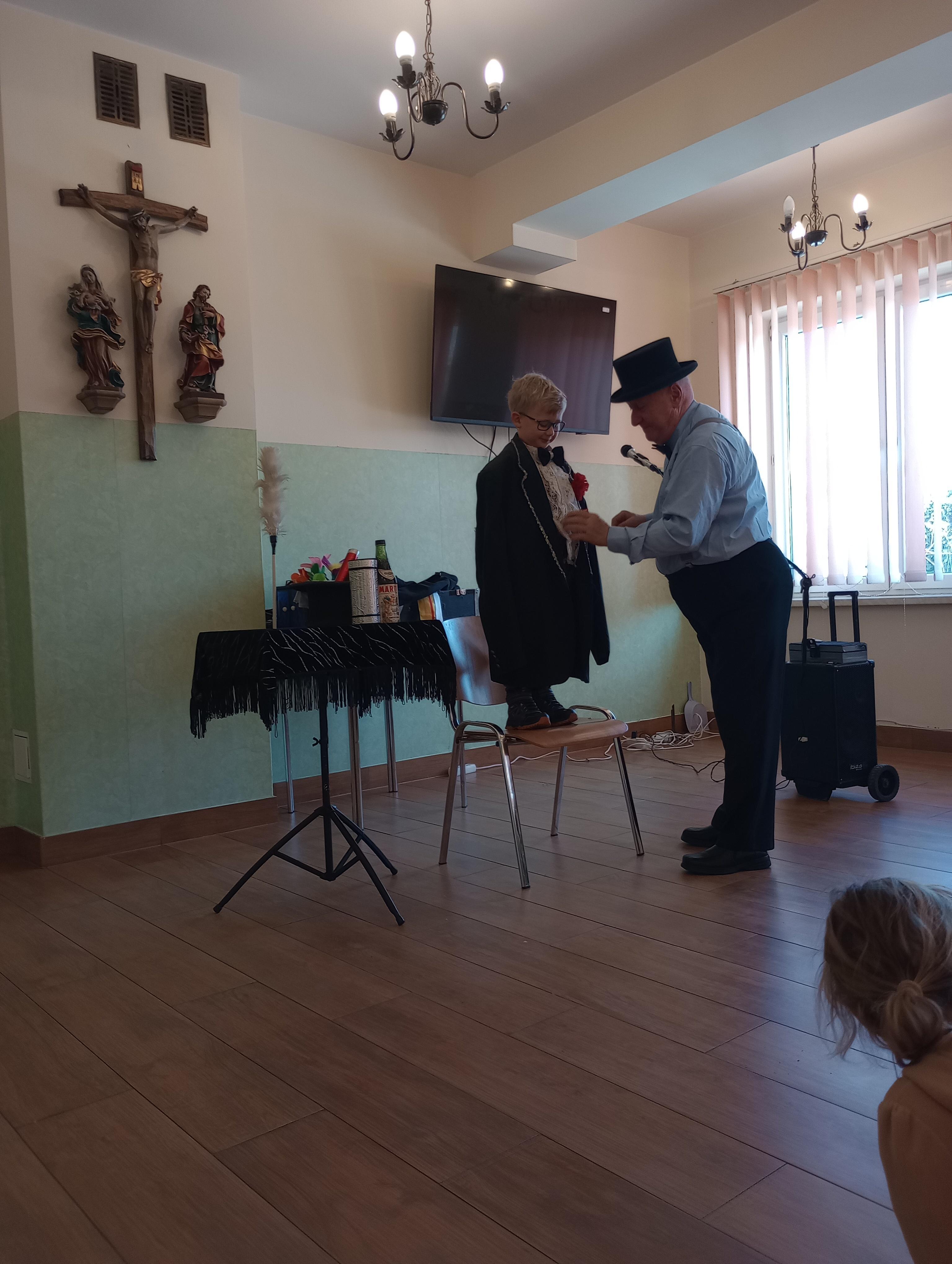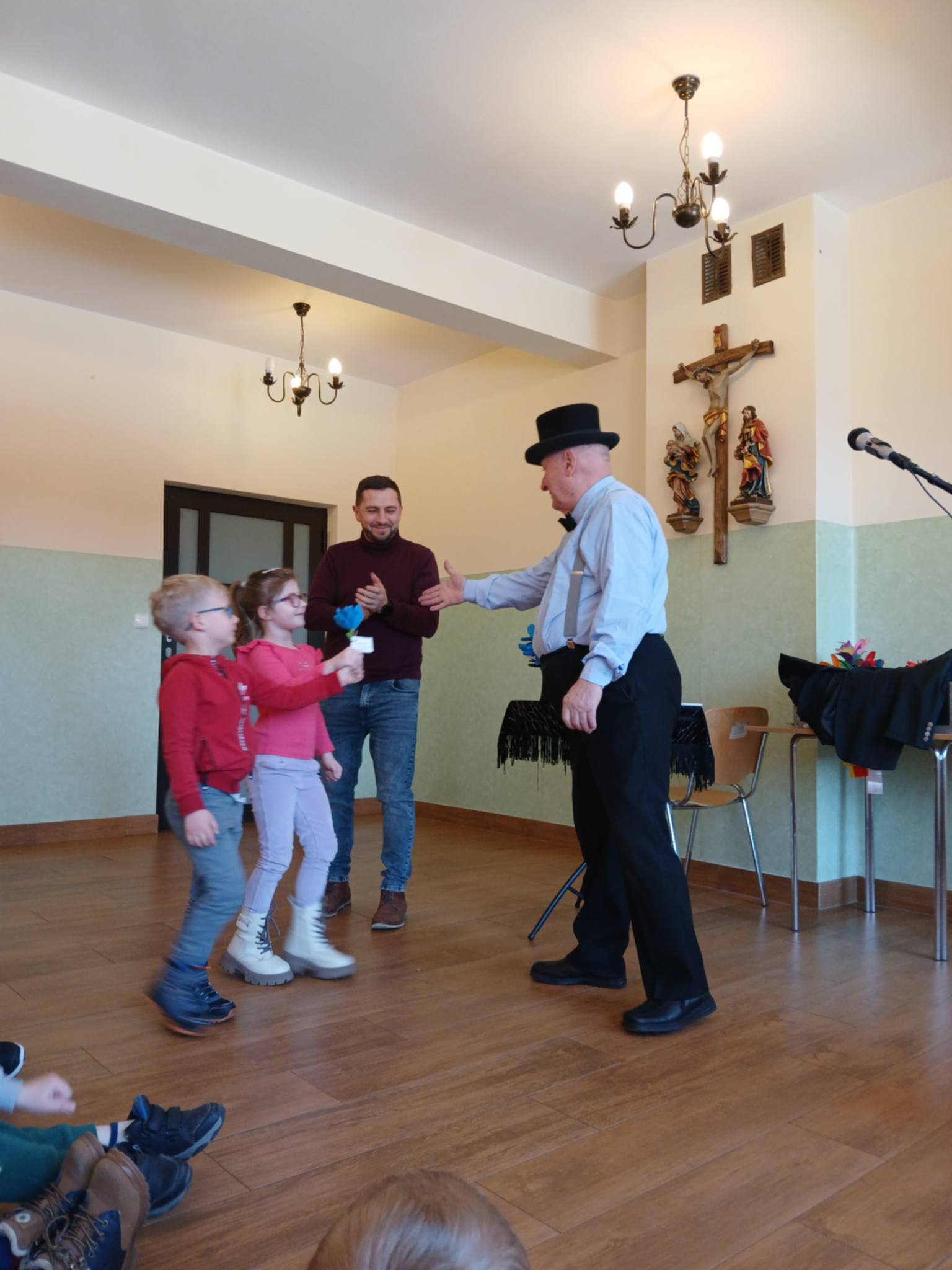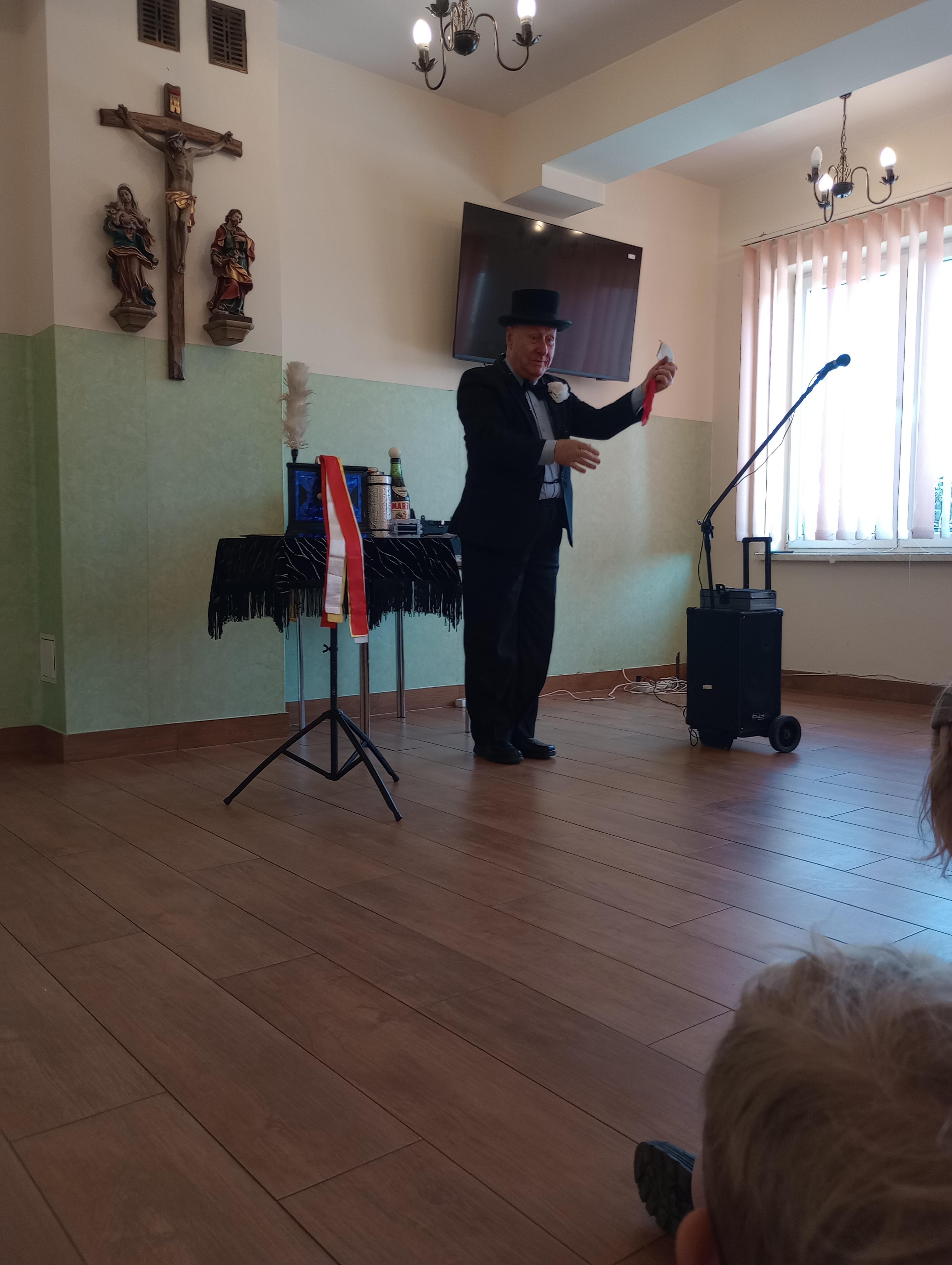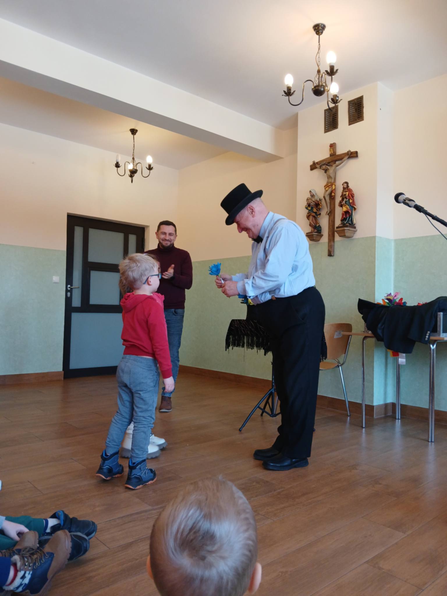 Dzięki uprzejmości Pana Karola - kierownika Środowiskowego Domu Samopomocy im. bł. Jana Pawła II w Brzostku dzieci z naszej grupy wzięły udział w spotkaniu z iluzjonistą. Pokaz magicznych sztuczek angażujący najmłodszych okazał się zaskakujący i dostarczył nam wielu pozytywnych emocji. Serdecznie dziękujemy za zaproszenie.