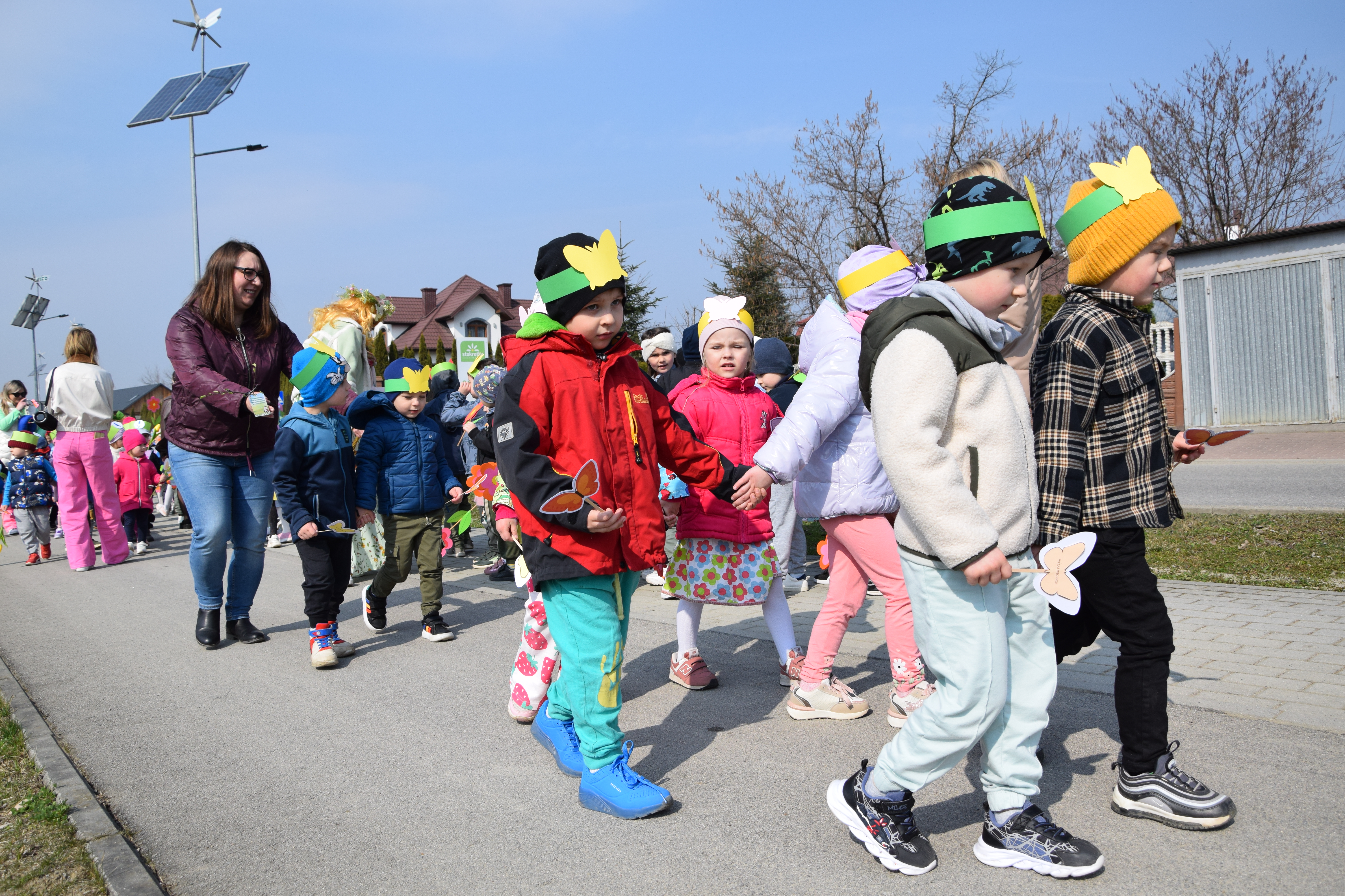 Powitanie Wiosny w naszym przedszkolu było wyjątkowym i radosnym wydarzeniem. Tego dnia wszystkie dzieci z wielkim entuzjazmem uczestniczyły w przygotowaniach do świętowania nadejścia nowej pory roku. Przedszkolaki przyszły ubrane w kolorowe stroje, a na ich głowach pojawiły się wiosenne ozdoby, takie jak kwiaty czy wianki. Najważniejszym punktem dnia był wiosenny marsz. Dzieci wraz z nauczycielami wyruszyły na spacer po okolicy. Podczas marszu śpiewały wiosenne piosenki i radośnie witały nadchodzącą wiosnę. Wszędzie było słychać śmiech i wesołe okrzyki. Na zakończenie przedszkolaki wspólnie pożegnały zimę i przywitały wiosnę, mając nadzieję na ciepłe i słoneczne dni. To był dzień pełen uśmiechu, zabawy i niezapomnianych wrażeń.