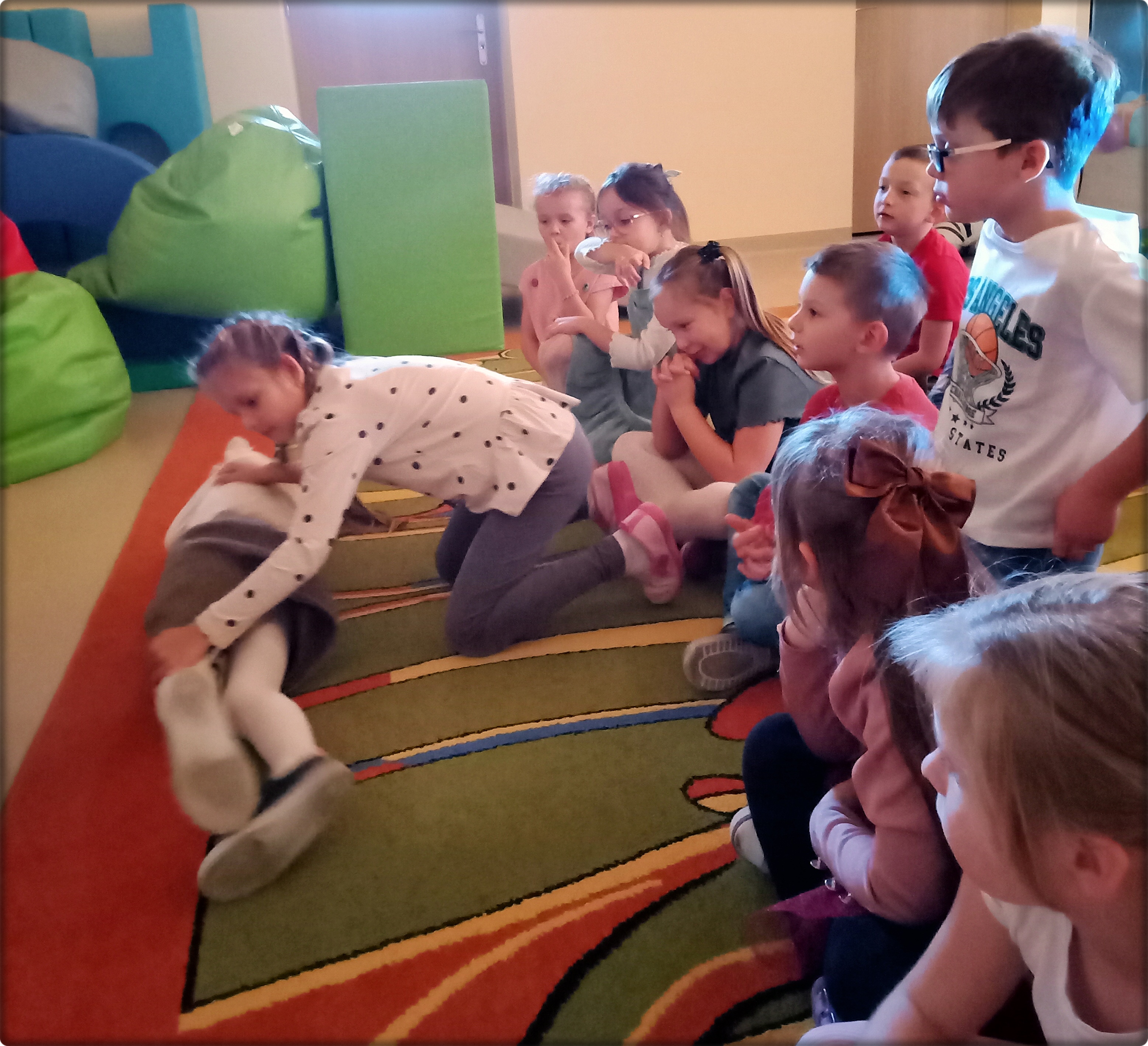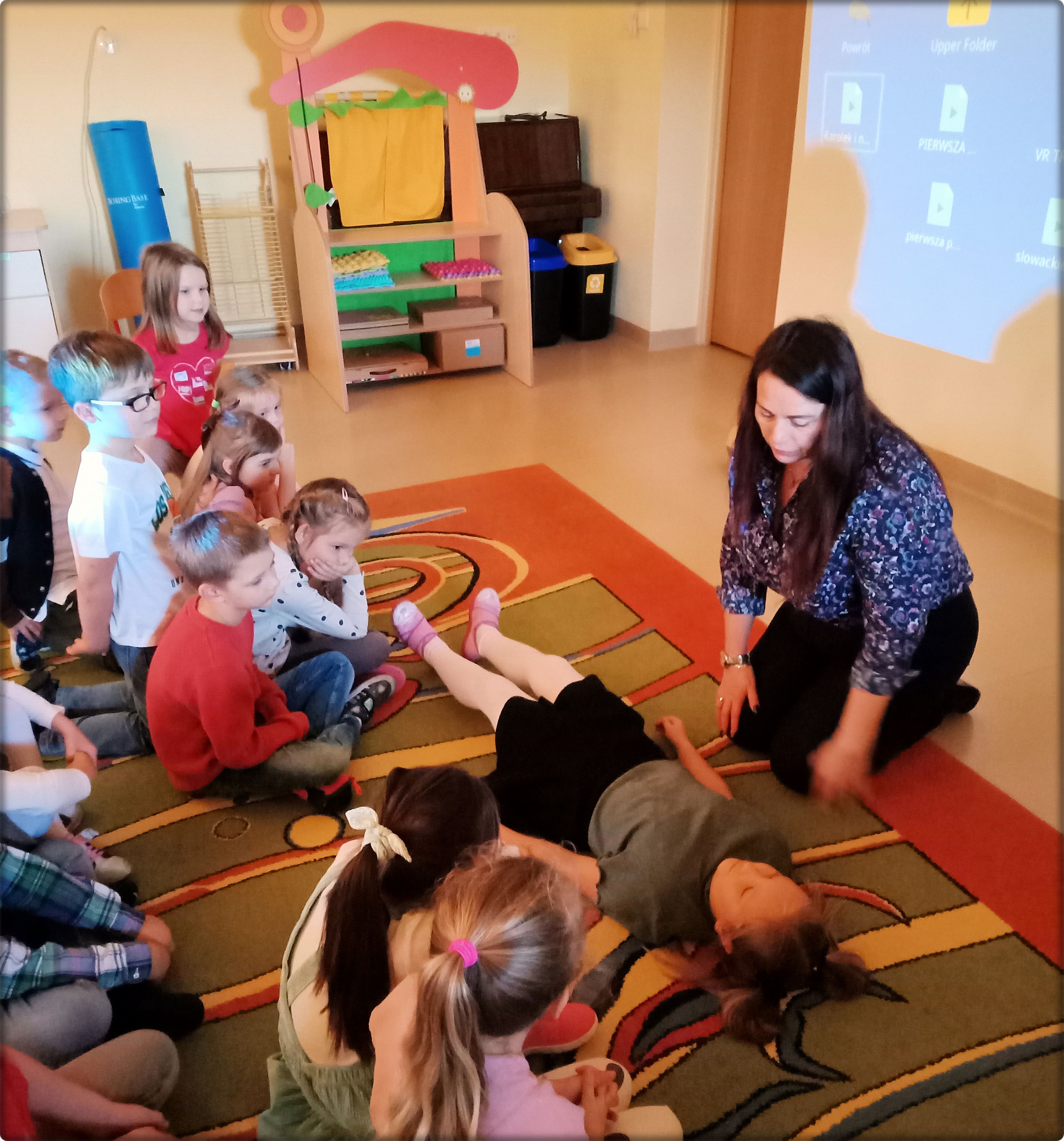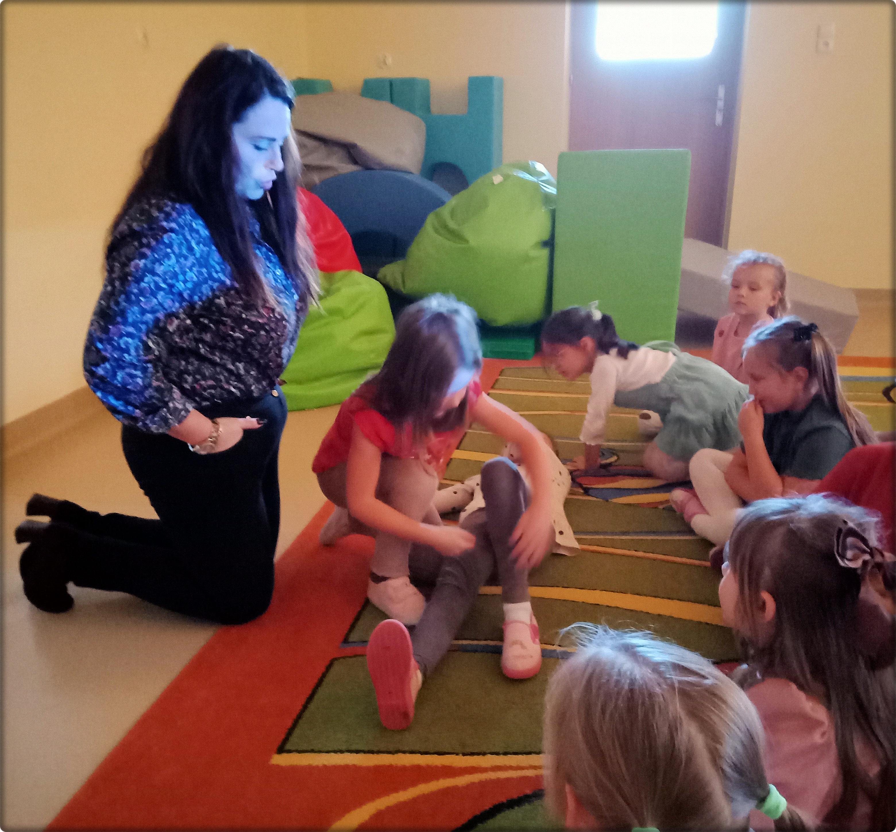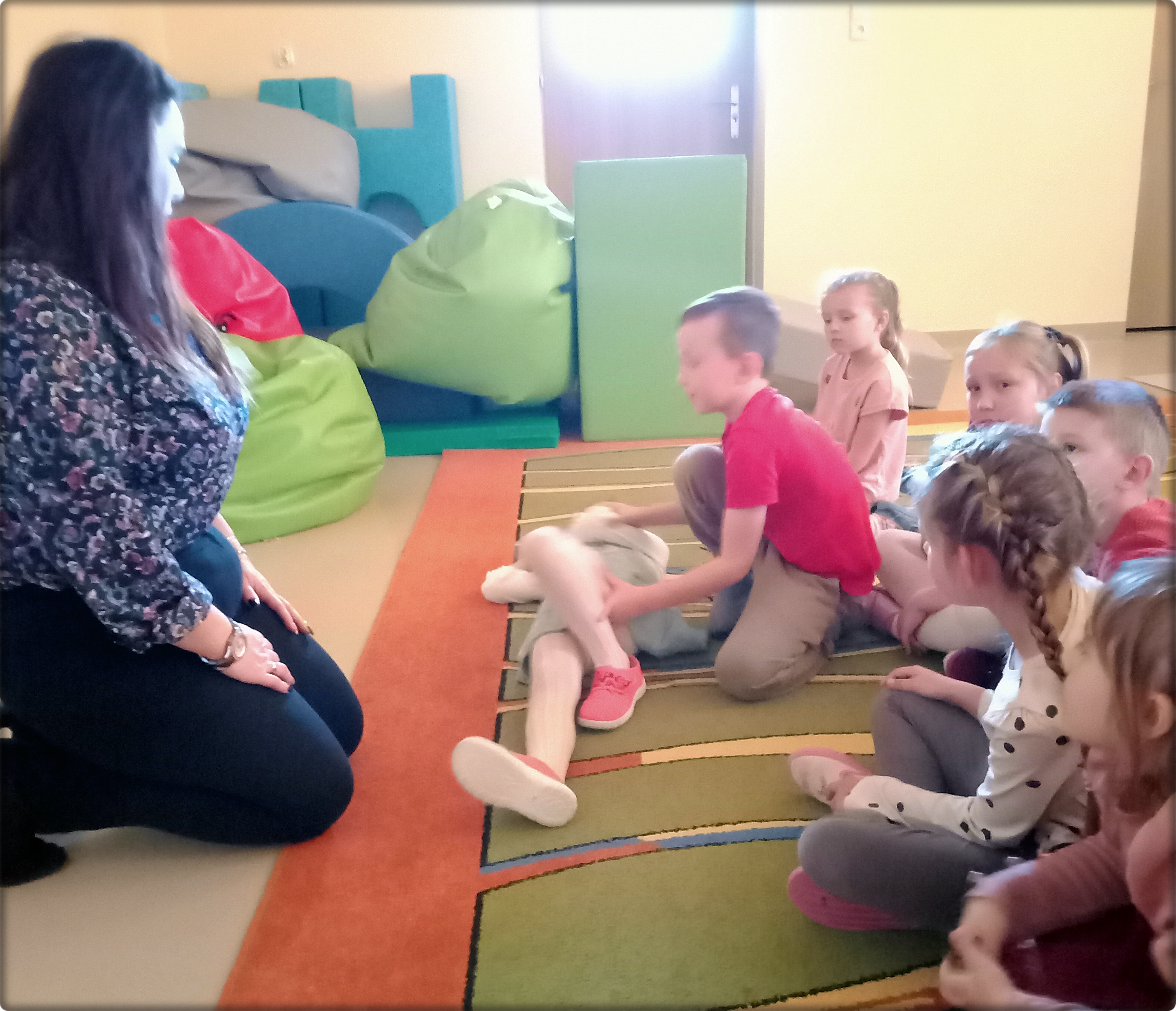 Dnia 31 października dzieci uczestniczyły w cyklu zajęć edukacyjnych z zakresu udzielania pierwszej pomocy przedmedycznej, które miały na celu kształtowanie pozytywnych i bezpiecznych postaw. Przedszkolaki dowiedziały się w jaki sposób udziela się pierwszej pomocy, jak pomóc poszkodowanym zanim przyjedzie pogotowie ratunkowe. Nauczyły się podstawowych numerów alarmowych oraz jak wezwać pomoc przez telefon. Następnie przedszkolaki przystąpiły do zadań praktycznych, gdzie uczyły się układać poszkodowanego w pozycję boczną oraz uczyły się masażu serca na fantomie. Wiadomości na ten temat utrwaliły poprzez krótki film instruktażowy. Zdobyta wiedza i ćwiczenia praktyczne sprawiły, że dzieci poczuły się "małymi ratownikami".