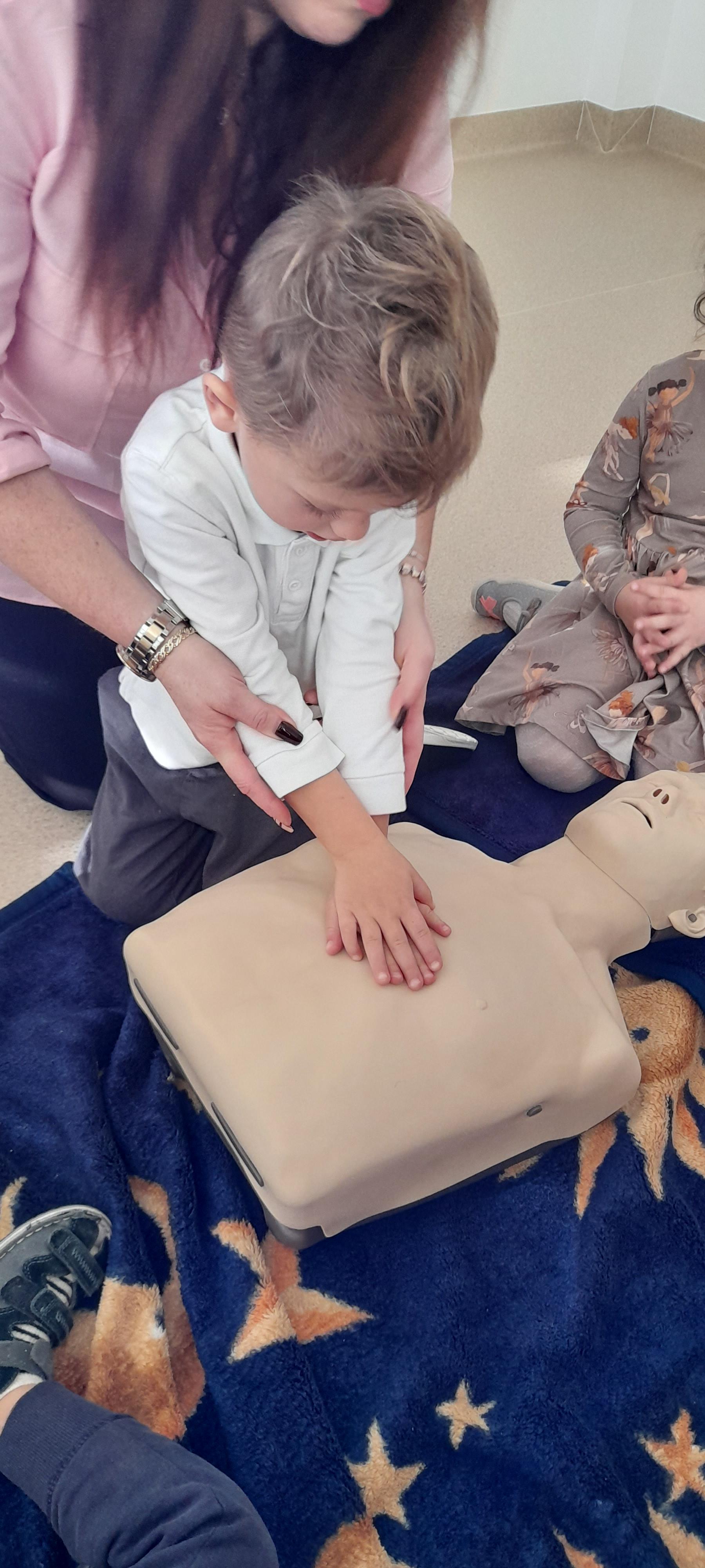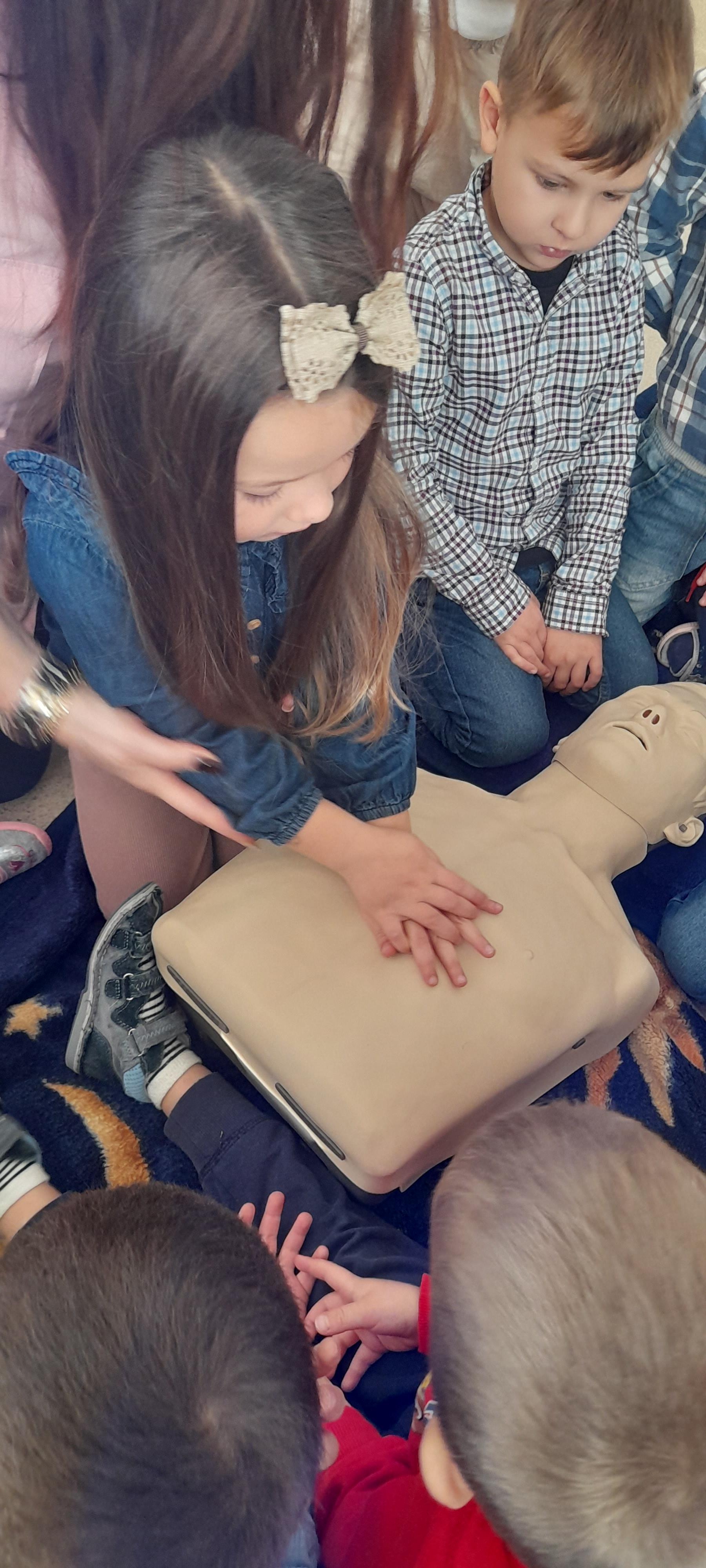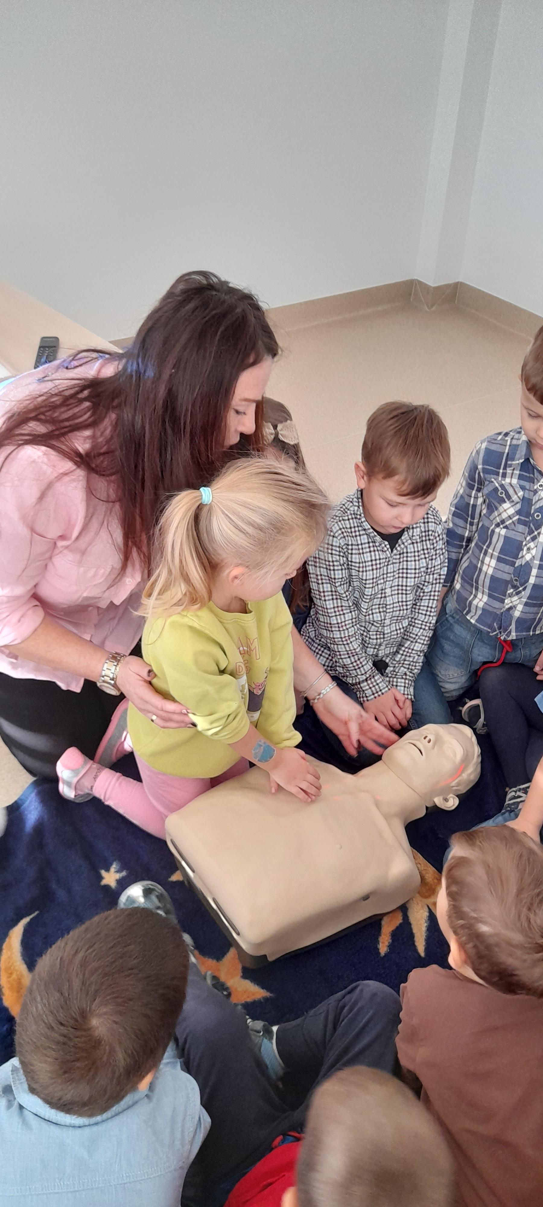 W grupie "Smerfików" odbyły się zajęcia z pierwszej pomocy, których celem było nauczenie dzieci, jak reagować w sytuacjach zagrożenia. Dzieci dowiedziały się, jak wezwać pomoc, zadbać o bezpieczeństwo własne i poszkodowanego oraz poznawały podstawowe zasady udzielania pomocy poprzez zabawę i praktyczne ćwiczenia.
