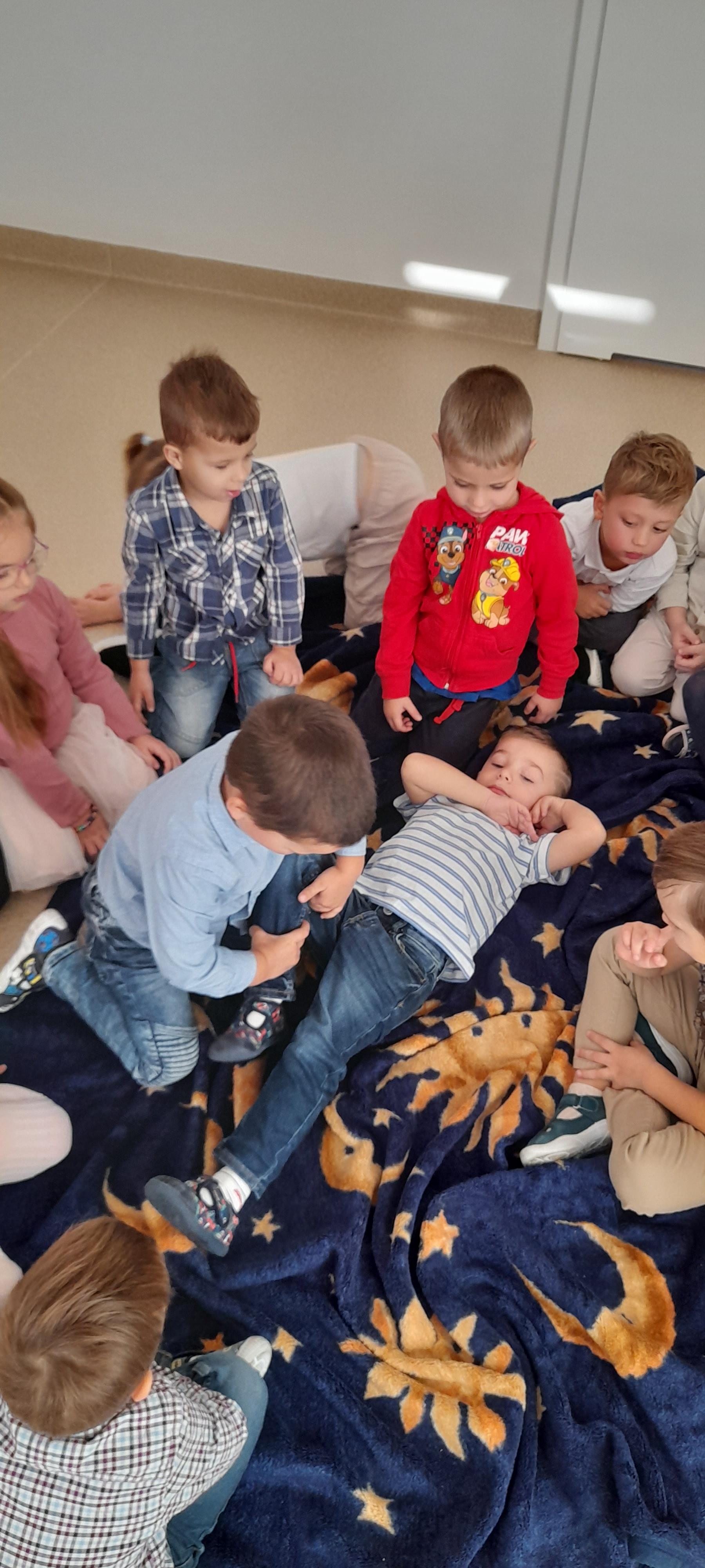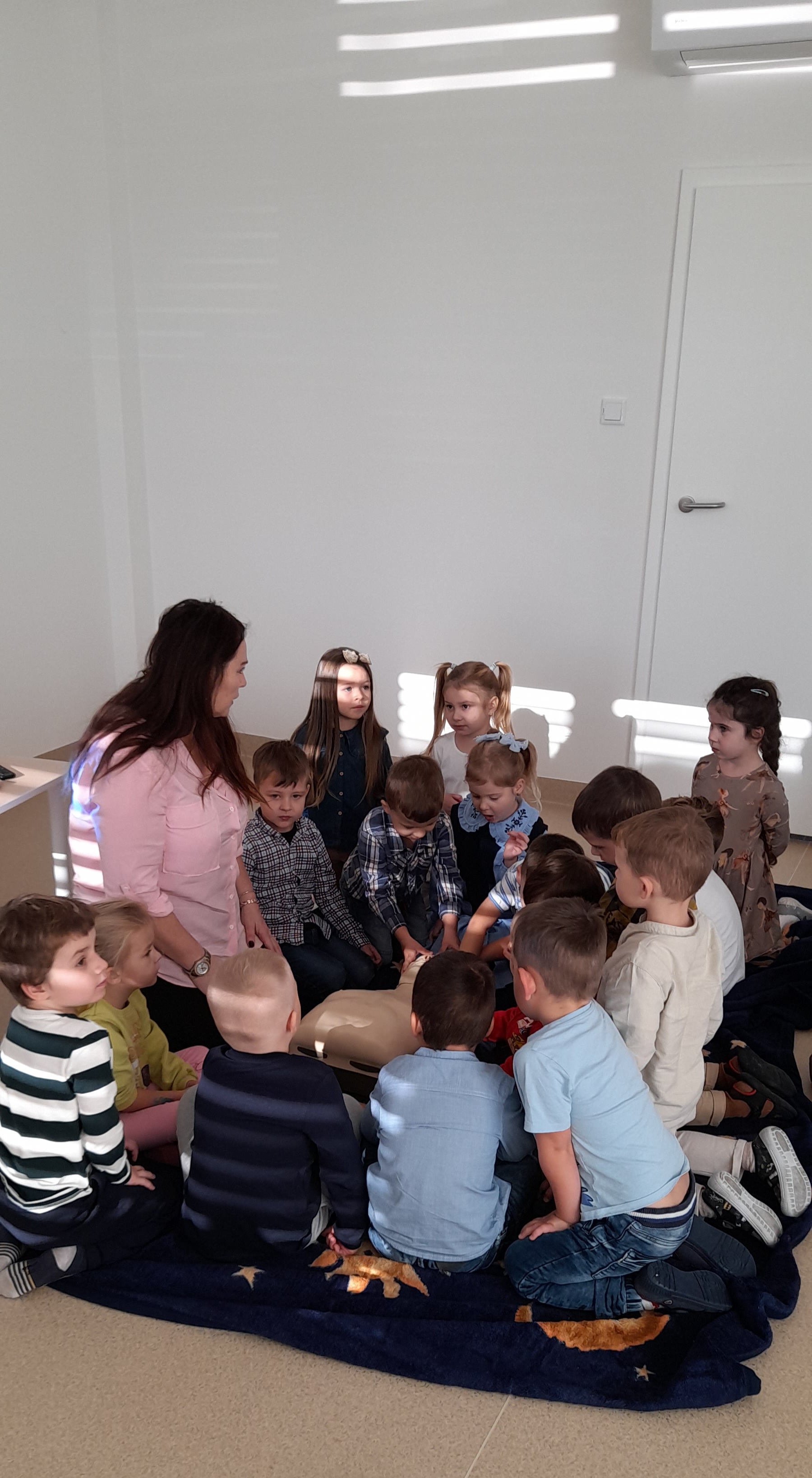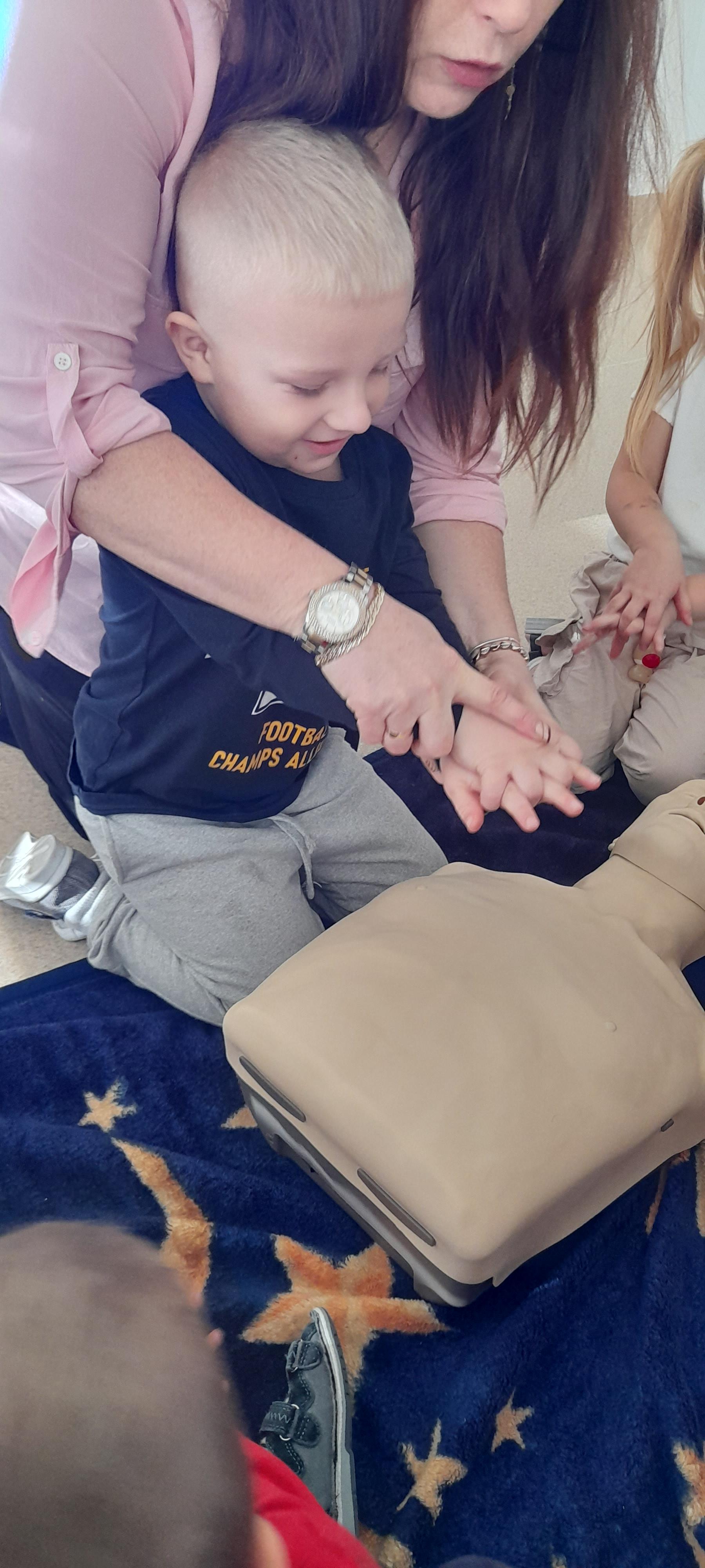 W grupie "Smerfików" odbyły się zajęcia z pierwszej pomocy, których celem było nauczenie dzieci, jak reagować w sytuacjach zagrożenia. Dzieci dowiedziały się, jak wezwać pomoc, zadbać o bezpieczeństwo własne i poszkodowanego oraz poznawały podstawowe zasady udzielania pomocy poprzez zabawę i praktyczne ćwiczenia.