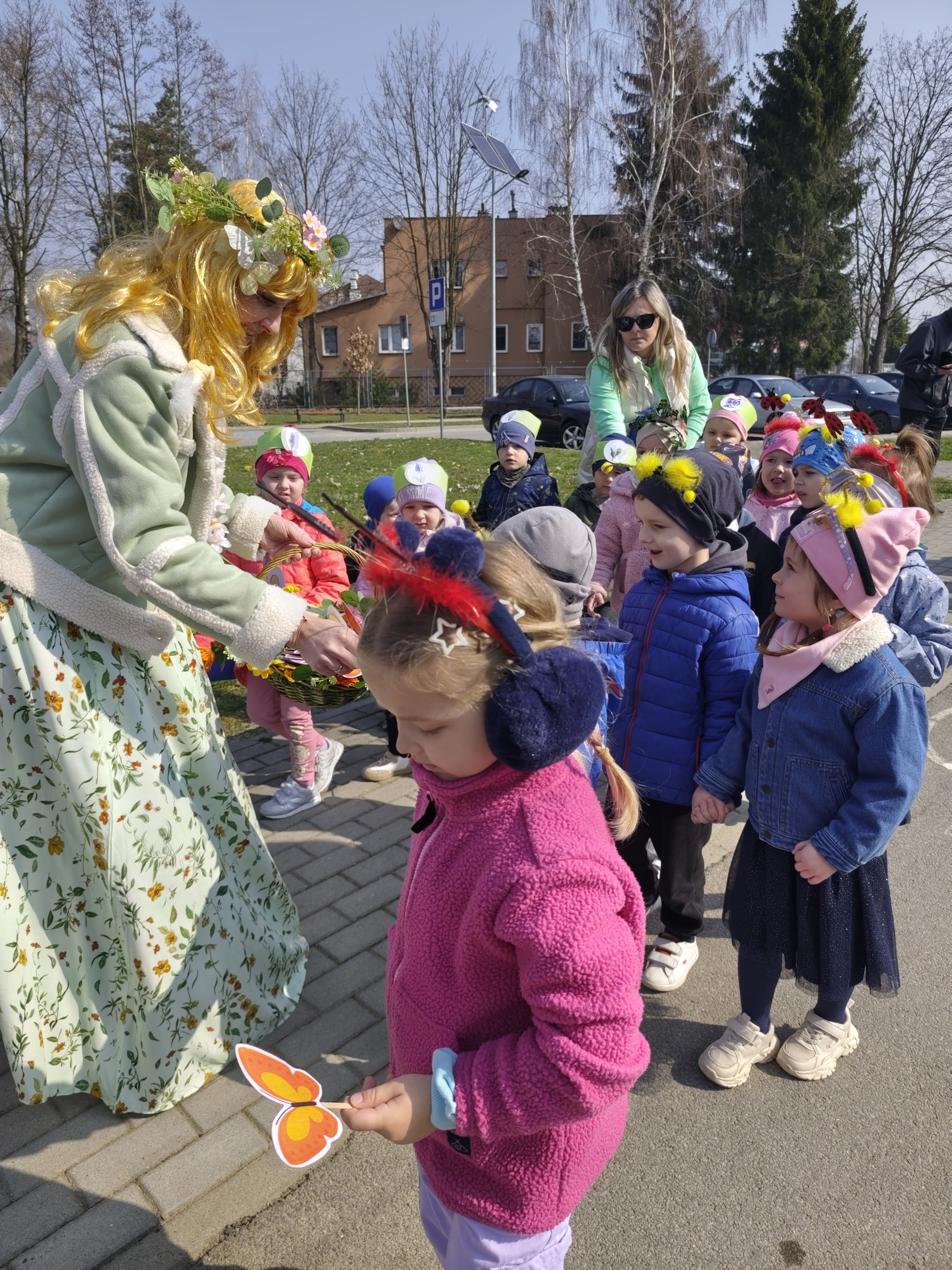 W naszym przedszkolu odbyło sie radosne powitanie wiosny pod hasłem "Spacer z Panią Wiosną". Dzieci uczestniczyły w uroczystym spotkaniu, podczas którego pojawila się Pani Wiosna, wprowadzając wszystkich w pogodny, wiosenny nastrój.