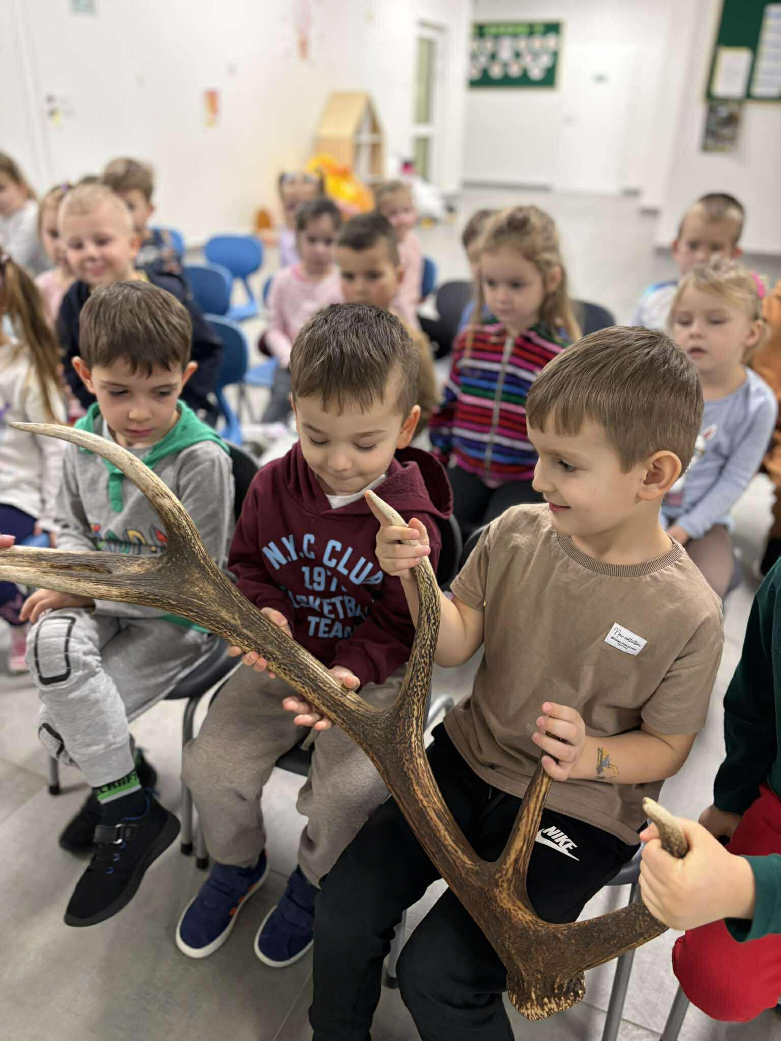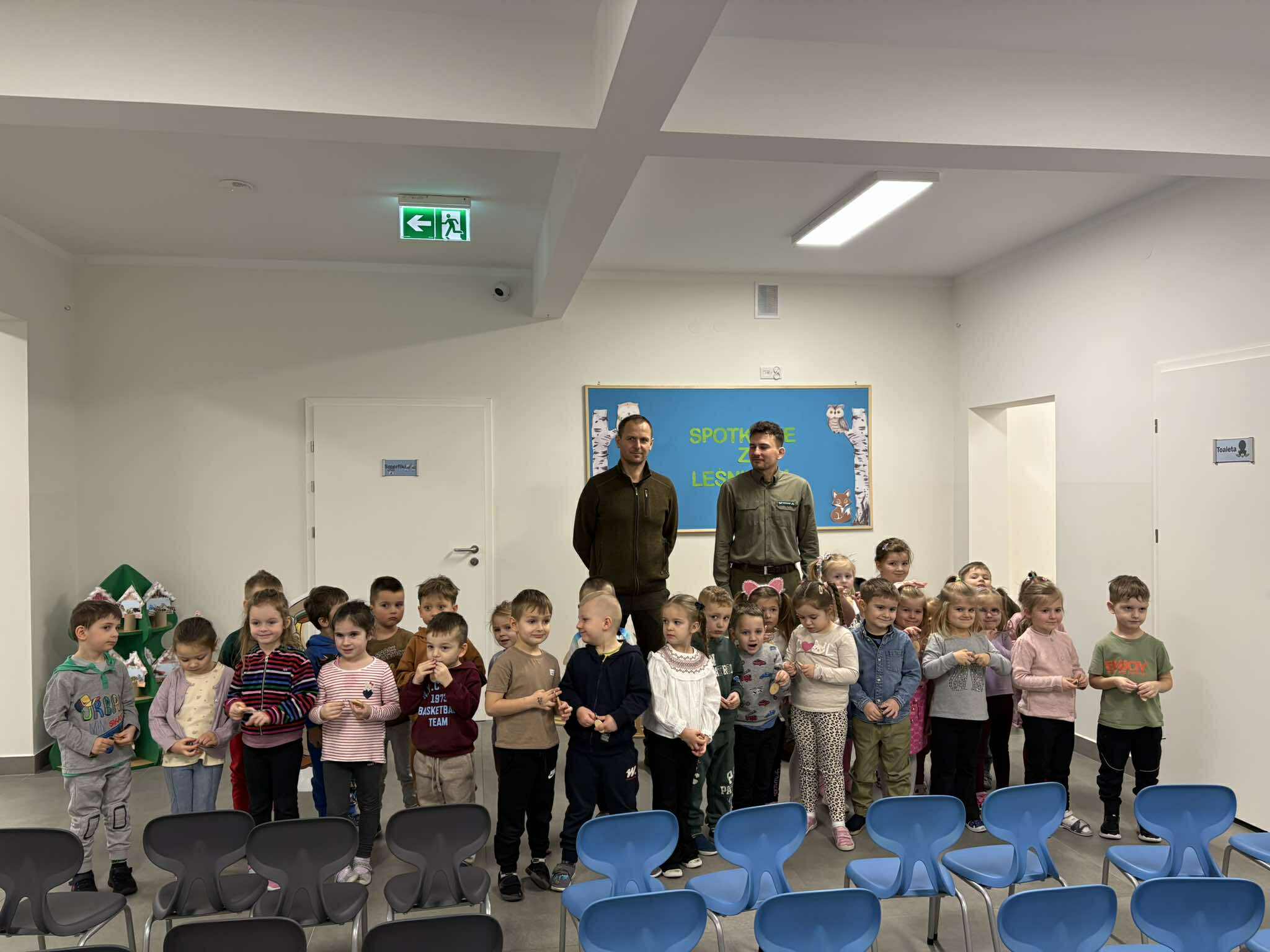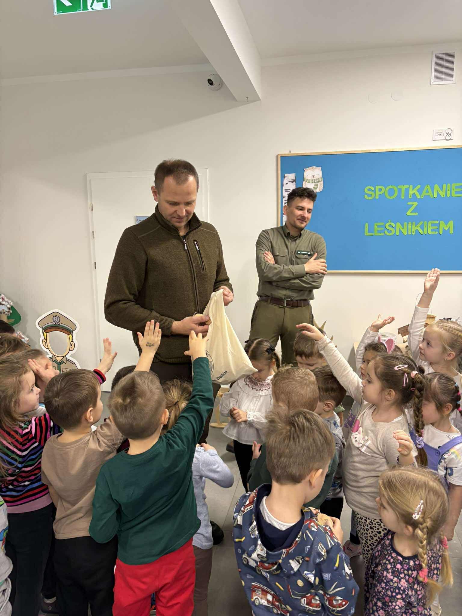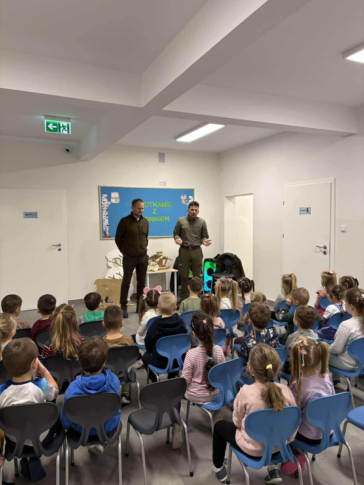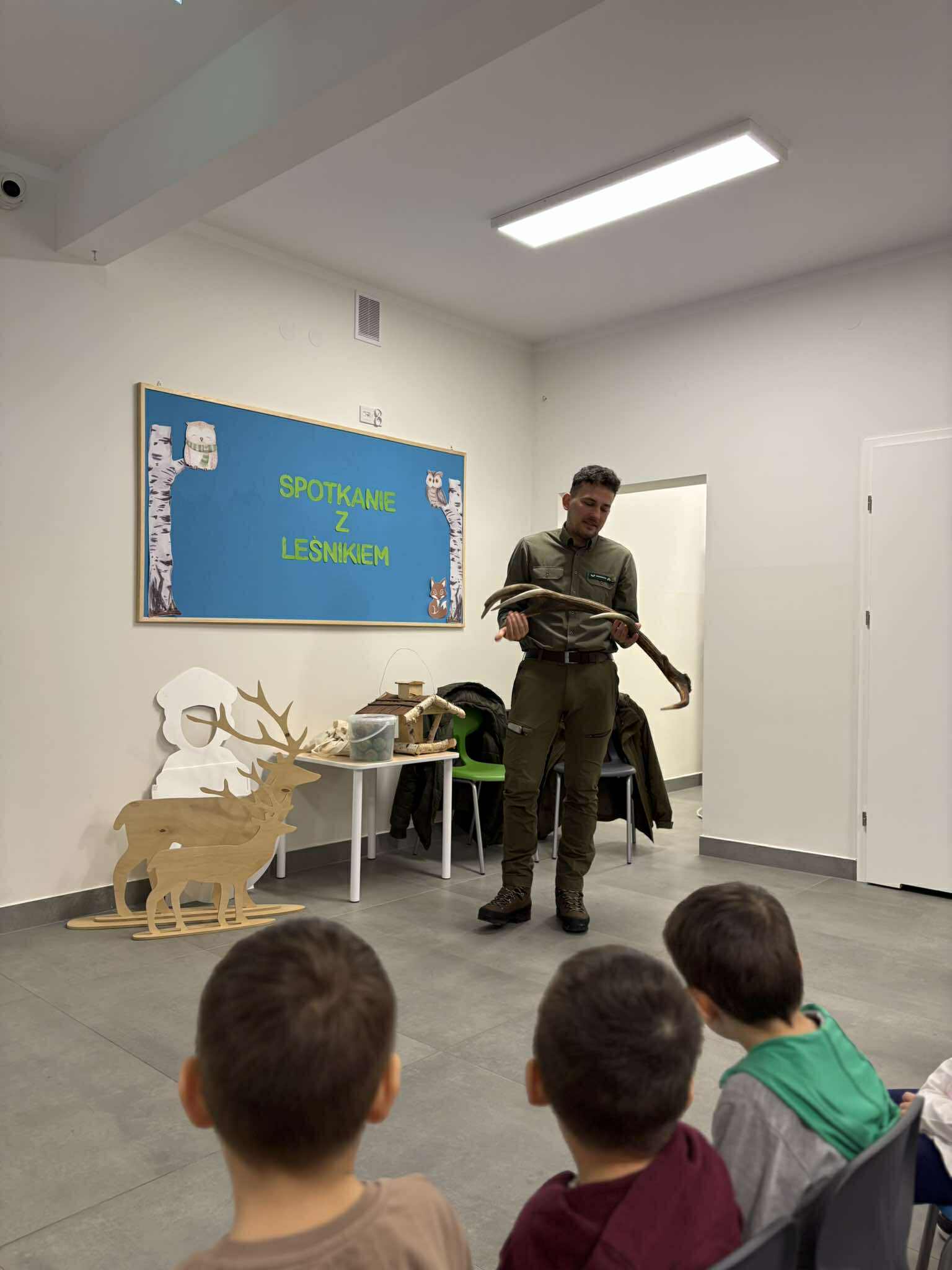 W naszym przedszkolu odbyło się wyjątkowe spotkanie z leśnikiem, którego celem było przybliżenie dzieciom świata lasu oraz kształtowanie postaw proekologicznych.Podczas zajęć dzieci dowiedziały się, na czym polega praca leśnika, jak dbać o przyrodę oraz jak zachowywać się w lesie, aby go nie niszczyć. Gość opowiedział o zwierzętach i roślinach leśnych, a także zwrócił uwagę na znaczenie ochrony środowiska. Spotkanie było bardzo interesujące i dostosowane do wieku dzieci, które z dużym zaangażowaniem uczestniczyły w rozmowie i zadawały pytania. Serdecznie dziękujemy za poświęcony czas, ciekawe opowieści oraz przekazanie dzieciom cennej wiedzy.