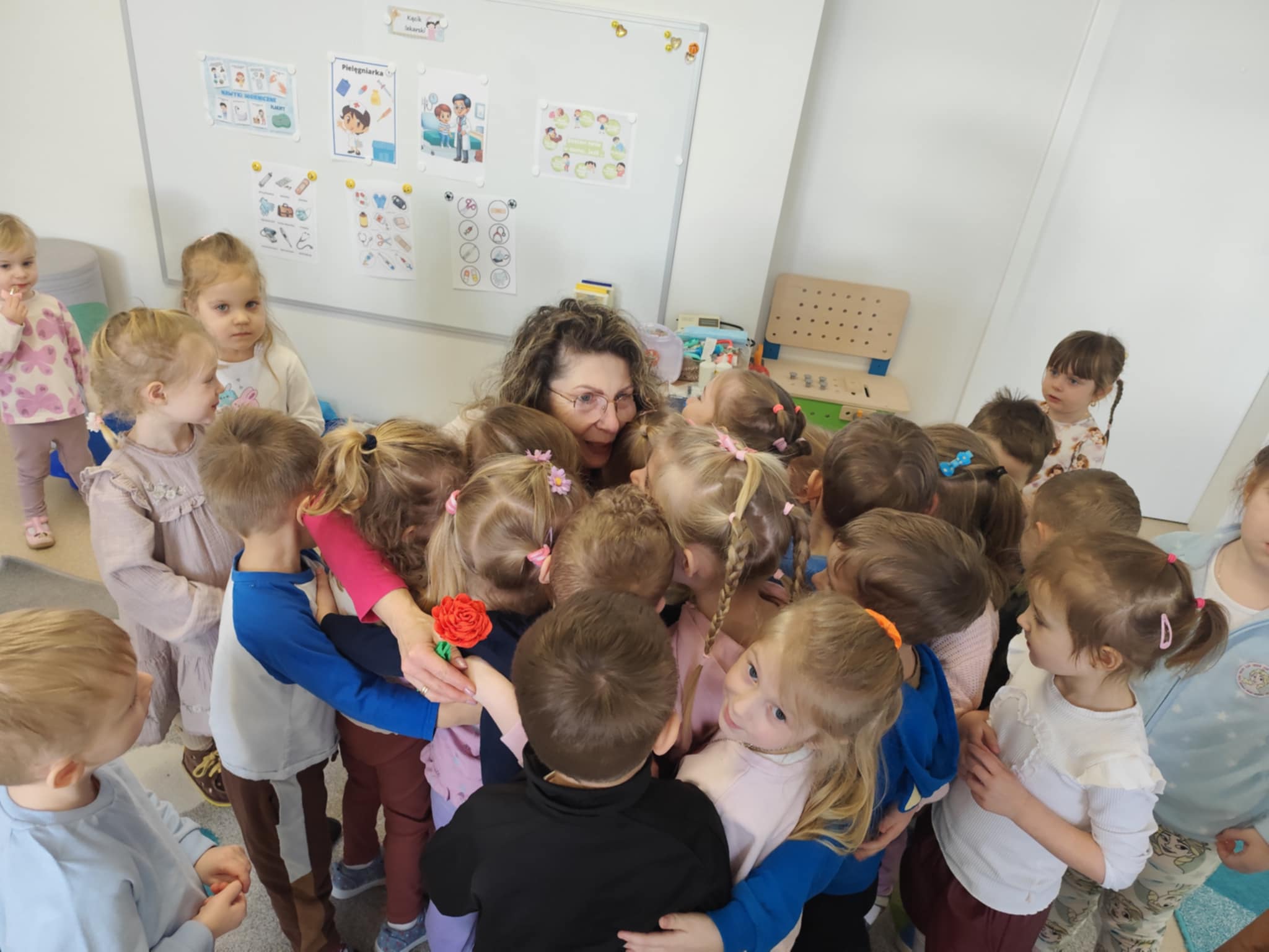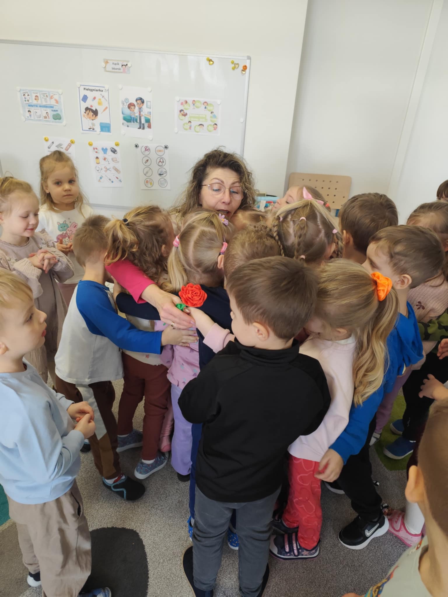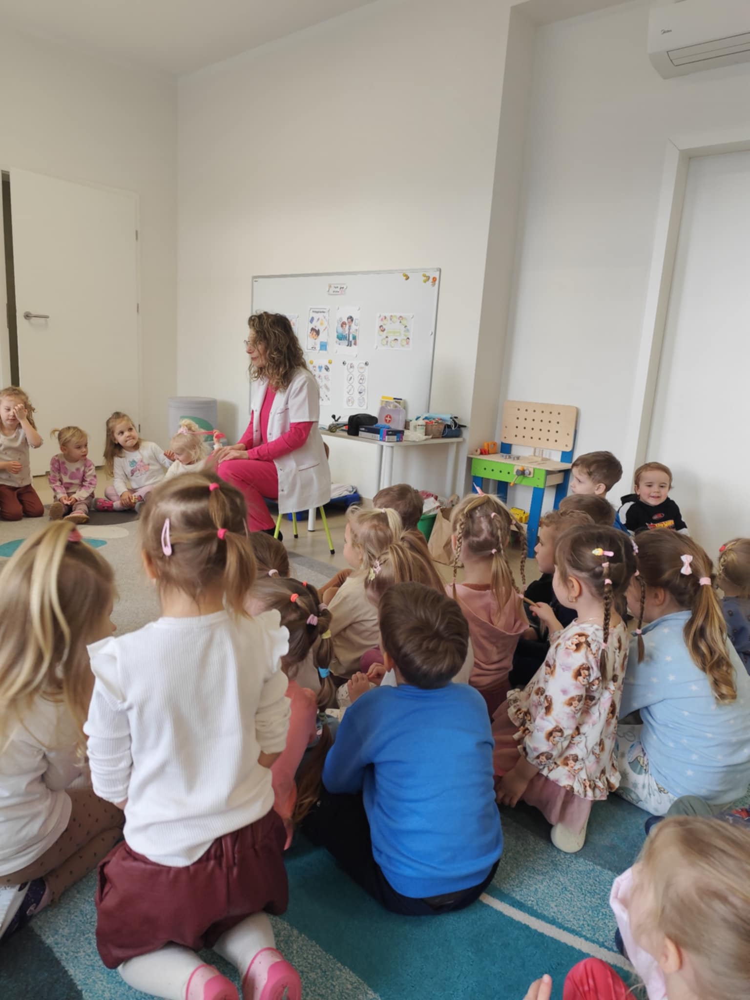 6 marca 2025 odwiedziła grupy Pani Ania pielegniarka. Przygotowała dla nas krótką pogadankę na temat potrzeby dbania o zdrowie i opowiedziała na czym polega jej praca. W czasie spotkania dzieci dowiedziały się, w jaki sposób można zapobiegać infekcjom, jak należy o siebie dbać, ubierać się stosownie do pogody, właściwie się odżywiać.