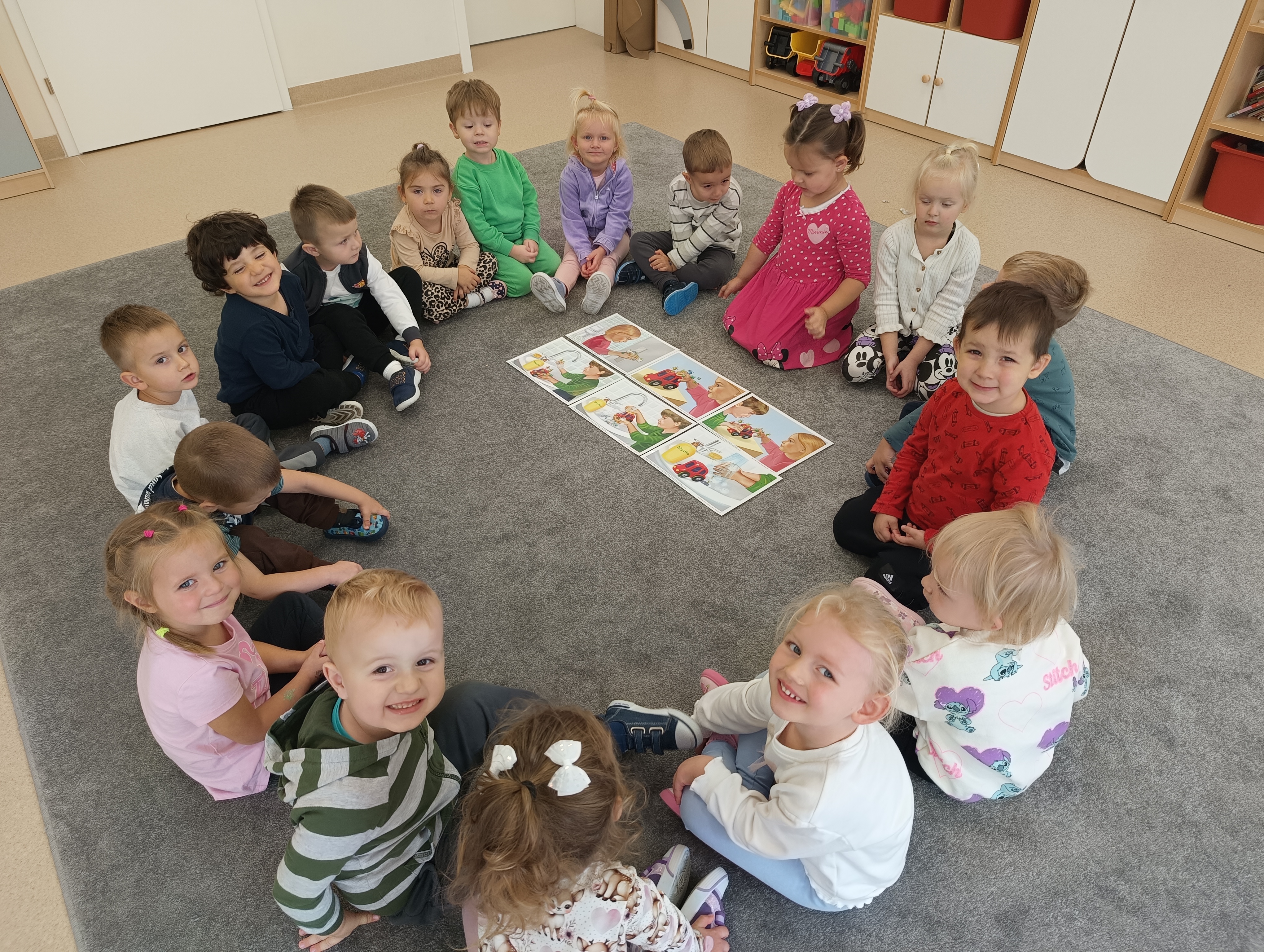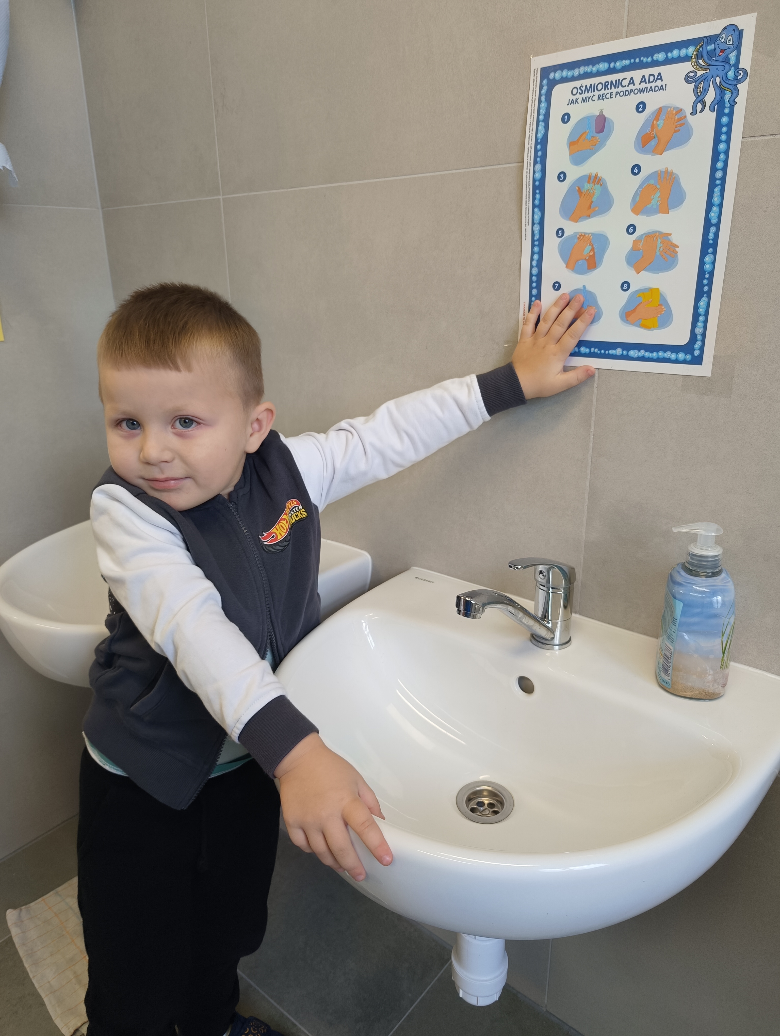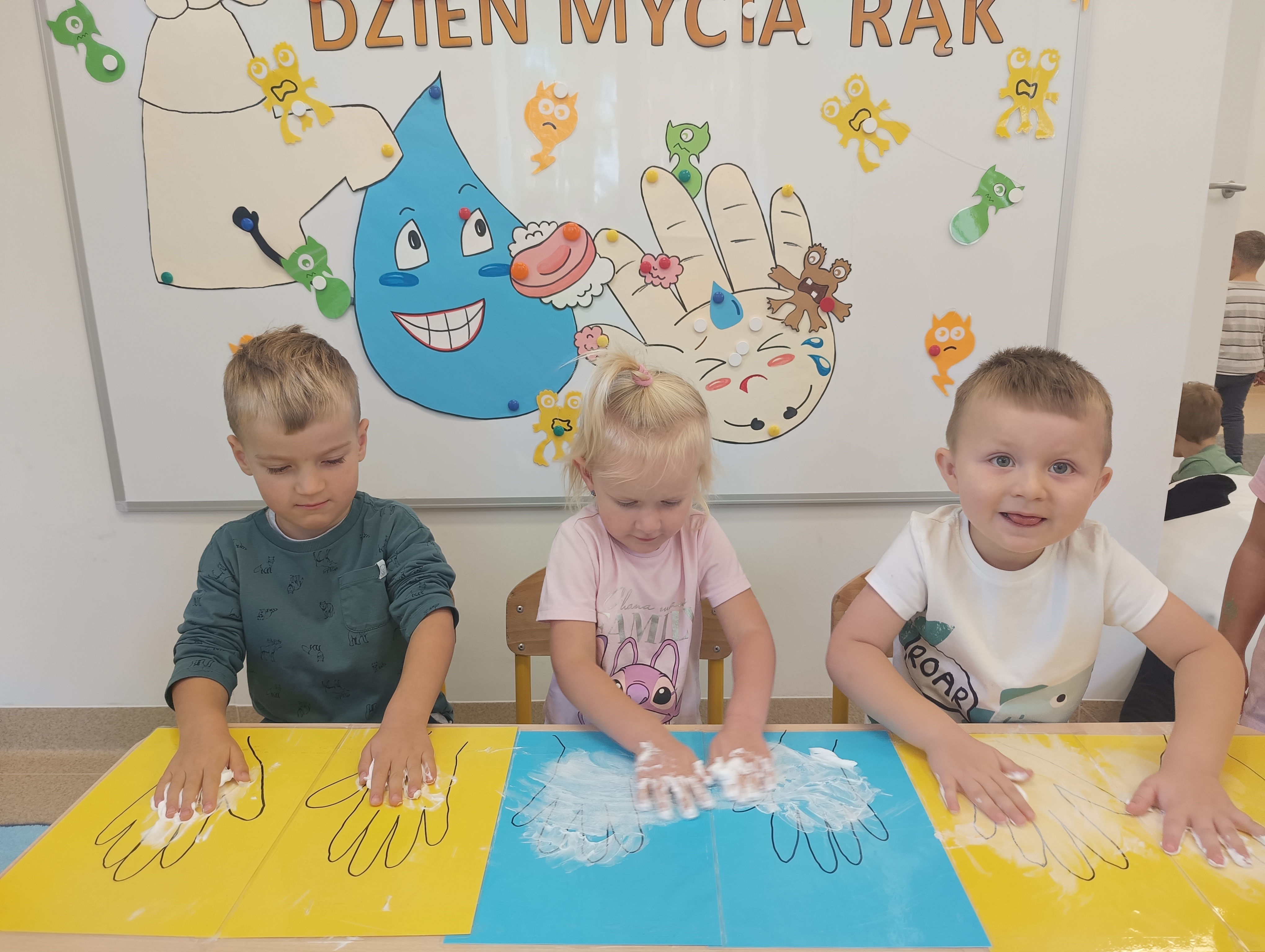 15 października obchodzony jest Światowy Dzień Mycia Rąk. Celem tego dnia jest uświadomienie dzieciom jak ważne znaczenie ma w ich życiu częste mycie rąk. Dzieci z naszego przedszkola również zostały czynnie włączone do obchodów Światowego Dnia Mycia Rąk. Nasze przedszkolne misie rozmawiały na temat zarazków, bakterii i wirusów, które dostają się do naszego organizmu poprzez brudne ręce. Dzieci dowiedziały się, w jakich sytuacjach konieczne jest mycie rąk i dlaczego należy używać mydła. Obserwowały jak zachowuje się brud w kontakcie z mydłem podczas przeprowadzonych zabaw badawczych i różnych doświadczeń. Przypomniały sobie schemat prawidłowego mycia rąk oraz zastosowały go w praktyce. Nie zabrakło też piosenek związanych z czynnościami samoobsługowymi i nawykami higienicznymi. Światowy Dzień Mycia Rąk dostarczył nam wielu wrażeń oraz pokazał, że pewne umiejętności i nawyki należy kształtować już od najmłodszych lat.
