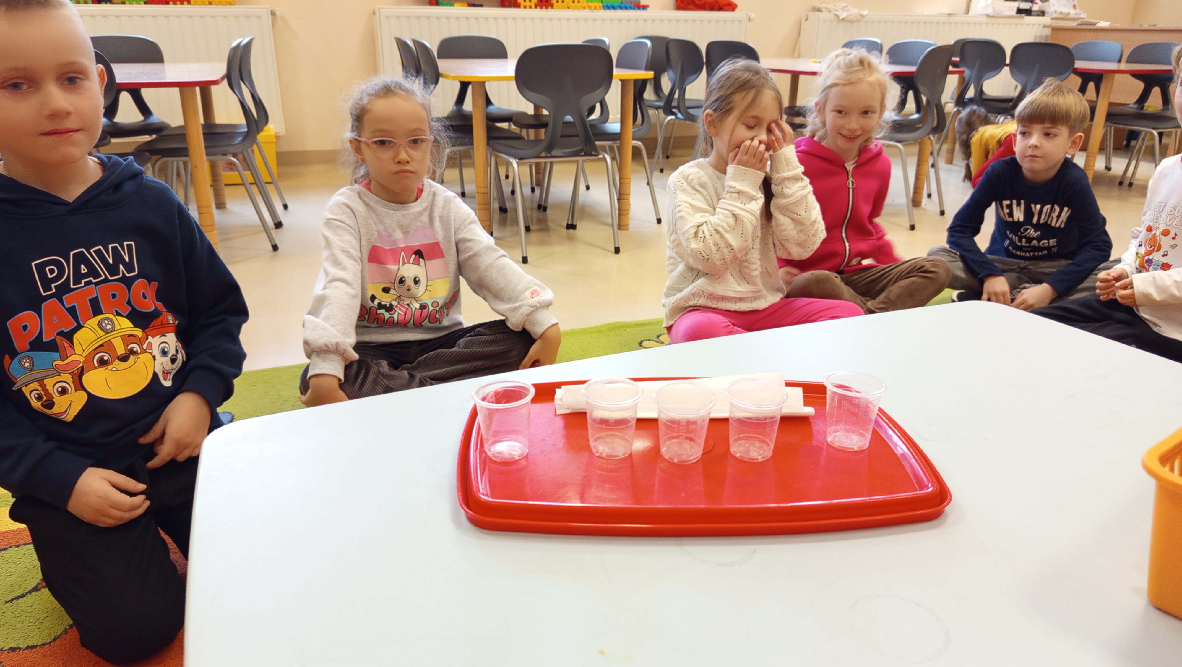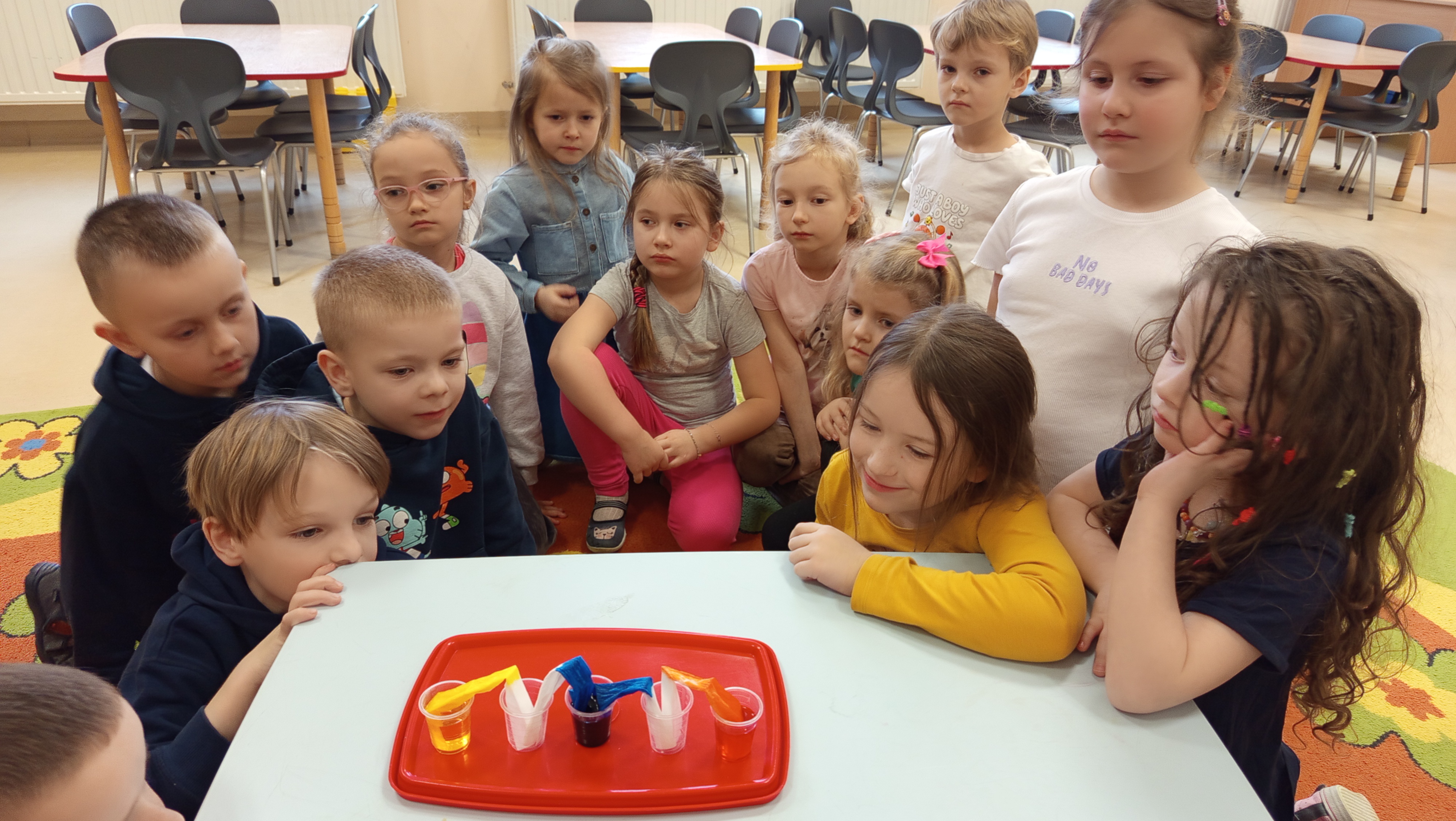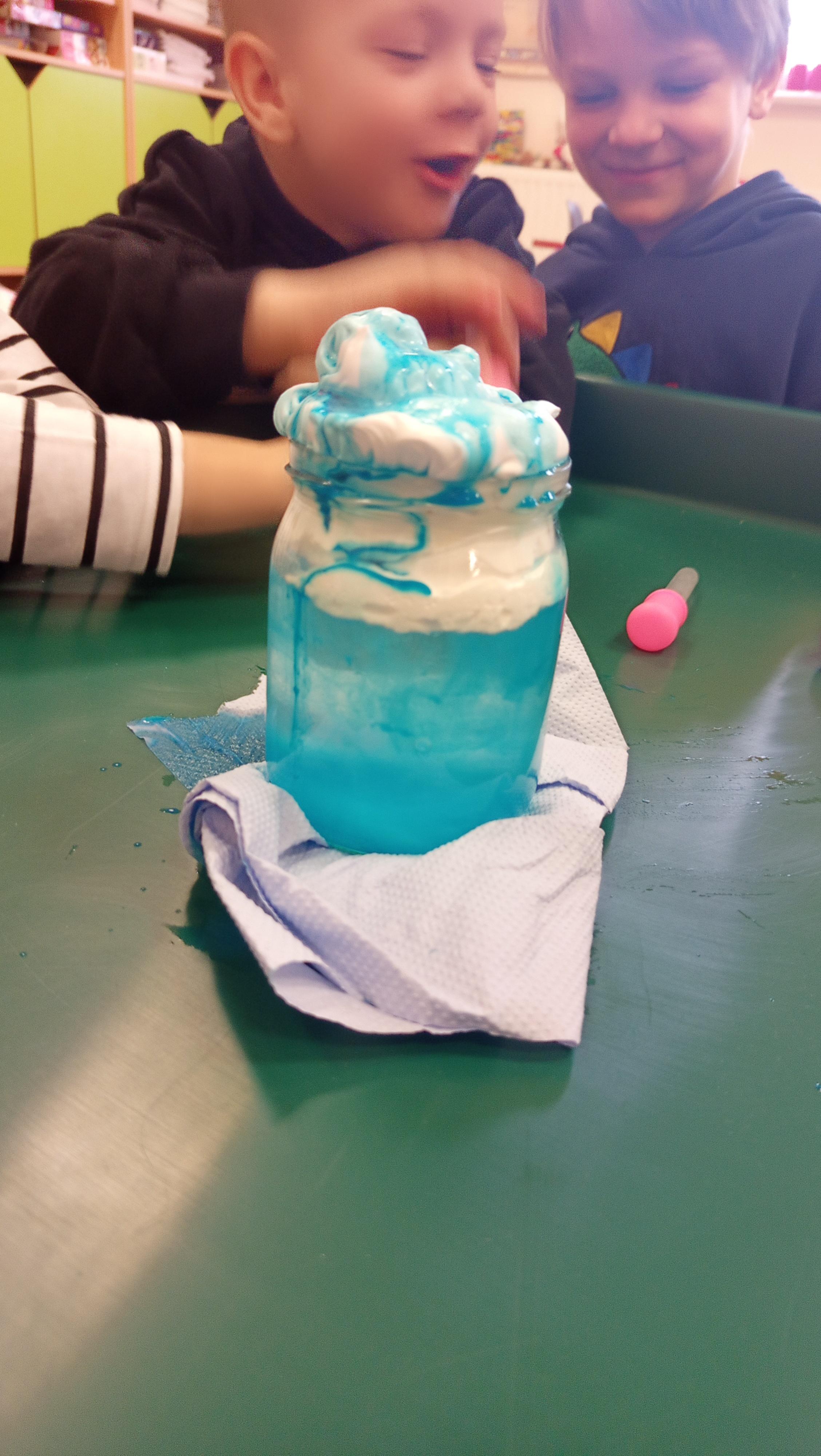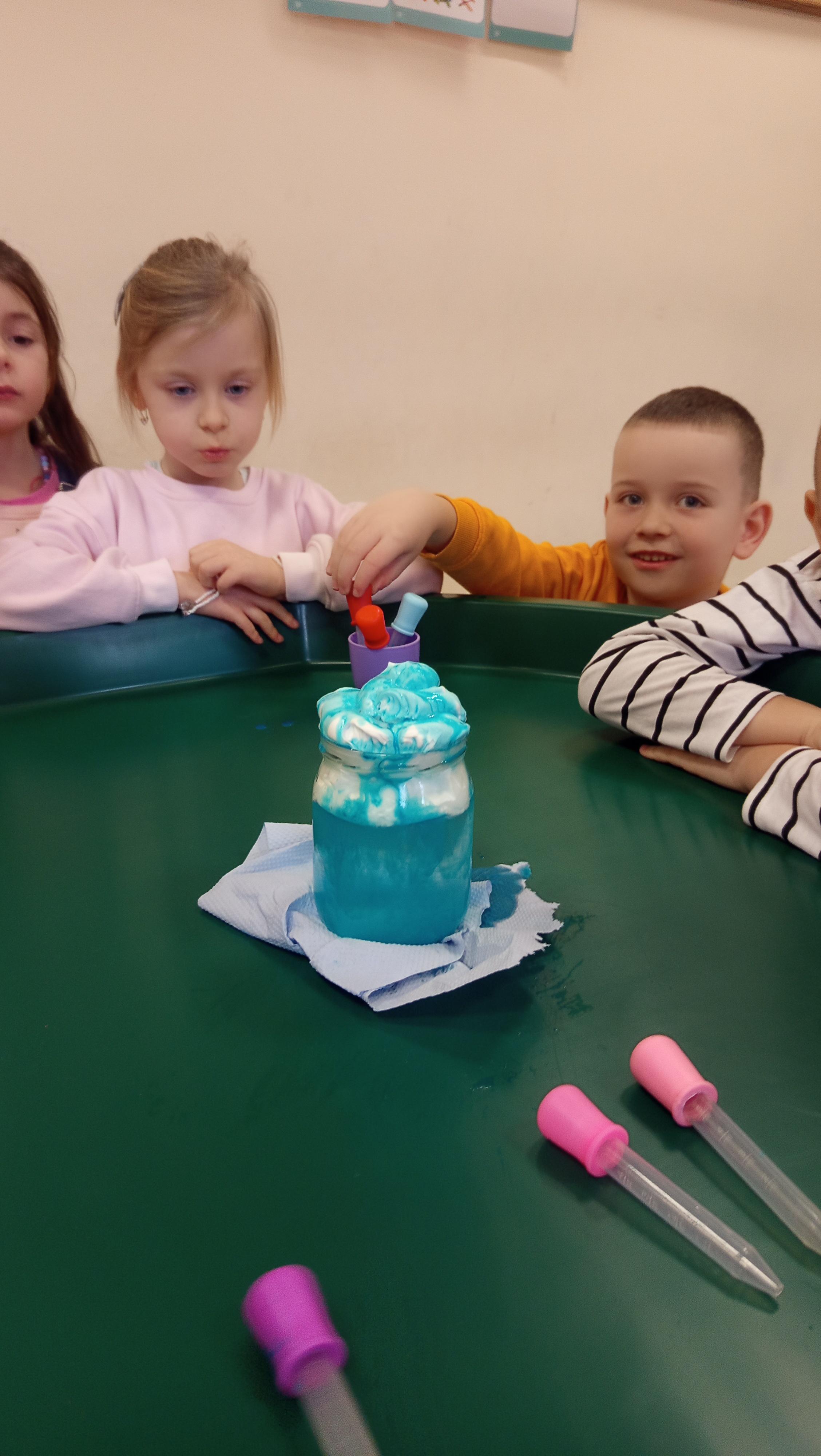 Eksperymenty towarzyszyły im przez cały tydzień, a dzięki samodzielnej eksploracji przedszkolaki mogły rozwijać ciekawość świata oraz poszerzać swoją wiedzę w sposób aktywny i twórczy. Dzieci wykonały również prace plastyczną pt. "Wodą malowane".