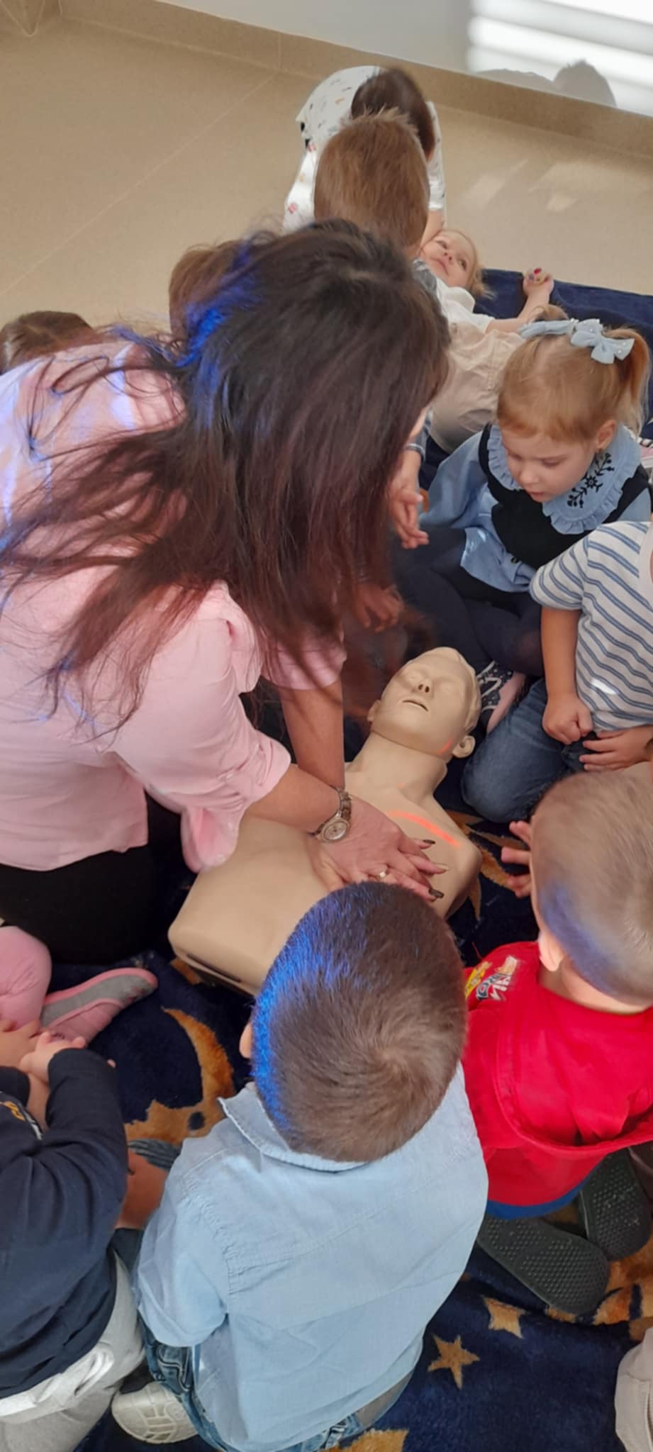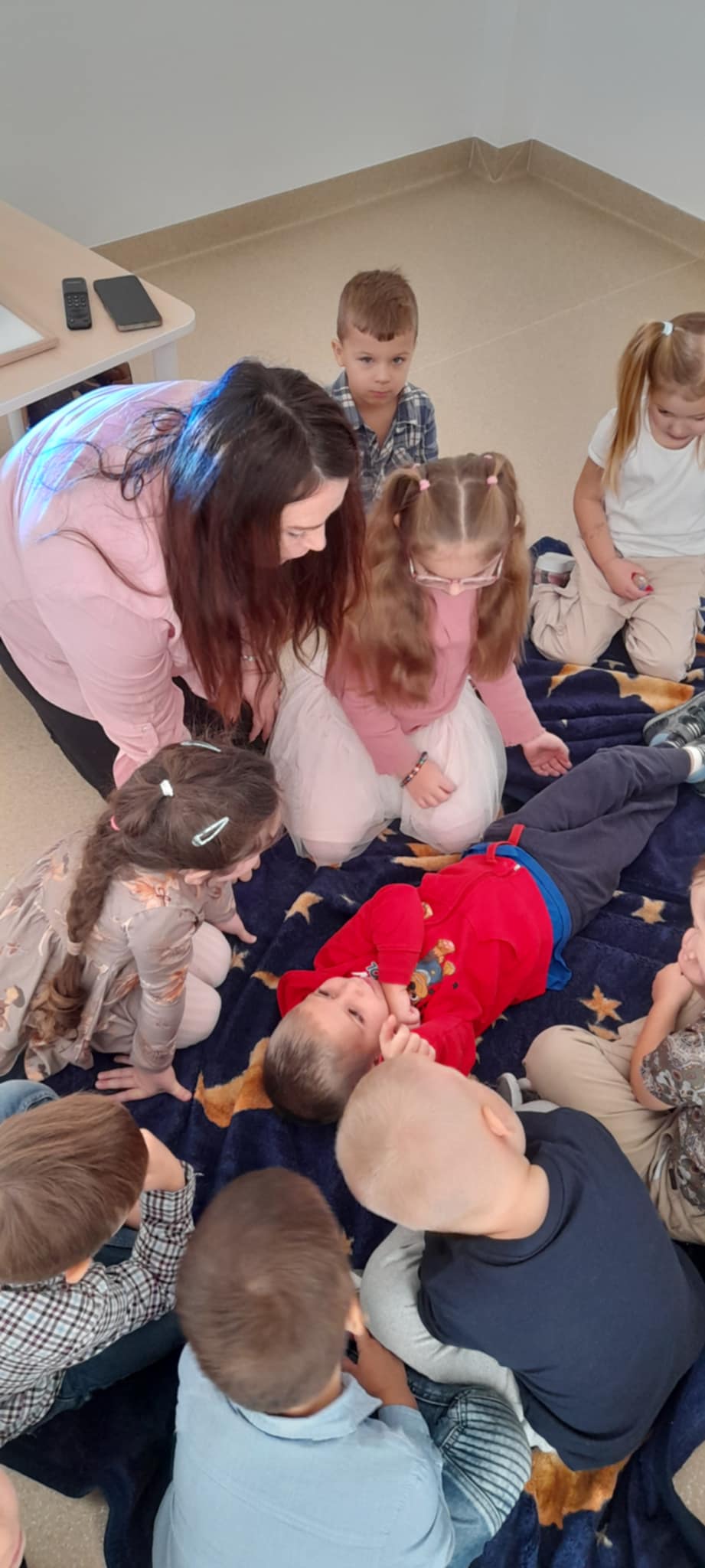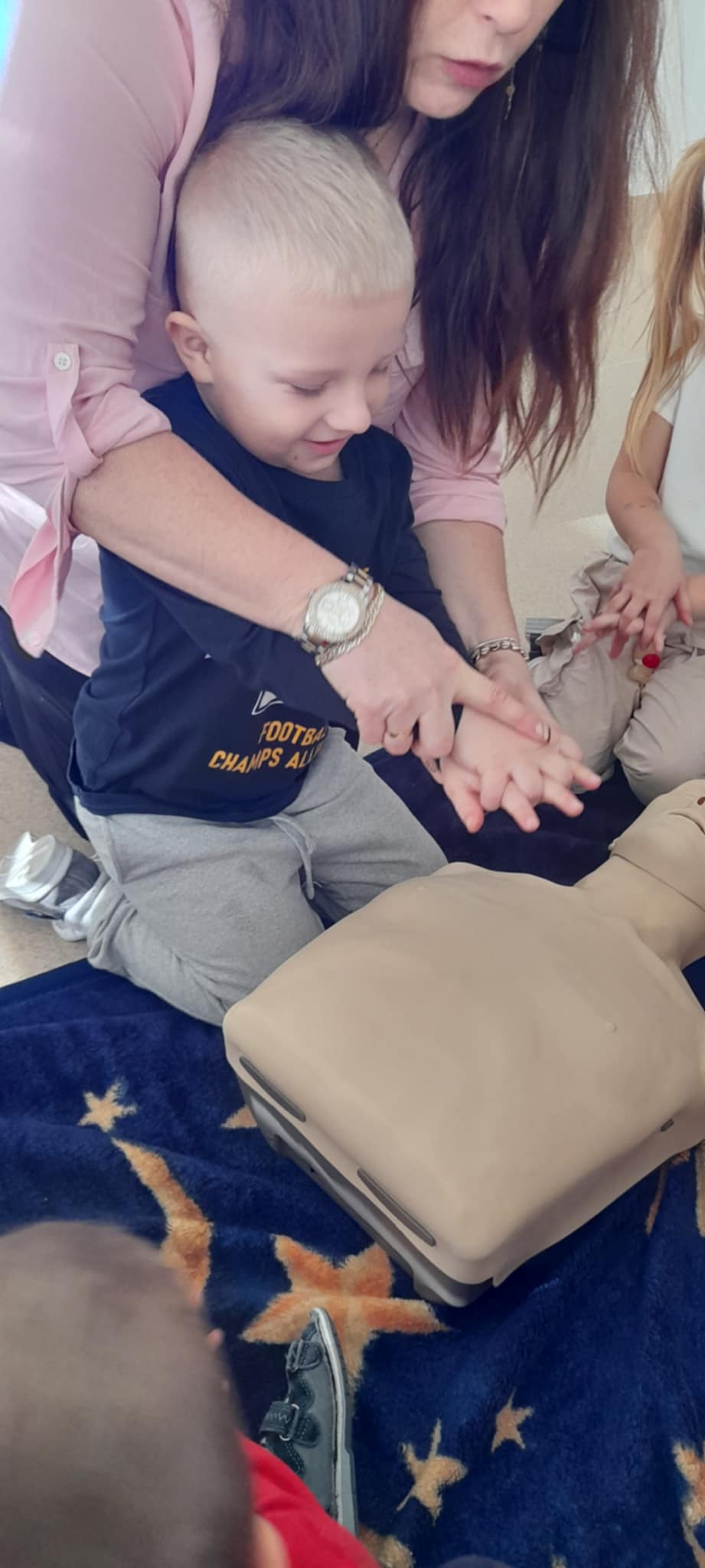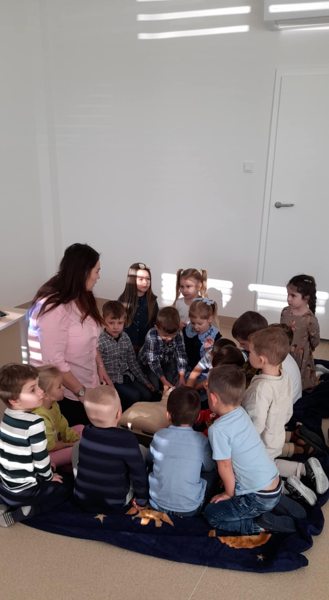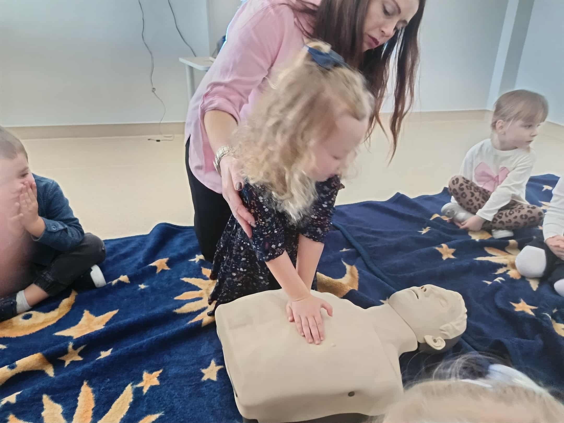 W dniach 30-31.10.2025 r. dzieci ze wszystkich grup wiekowych uczestniczyły w warsztatach z zakresu umiejętności udzielania pierwszej pomocy przedmedycznej. Poznawały ważne numery alarmowe, zasady wykonania resuscytacji czy pozycji bocznej ustalonej.