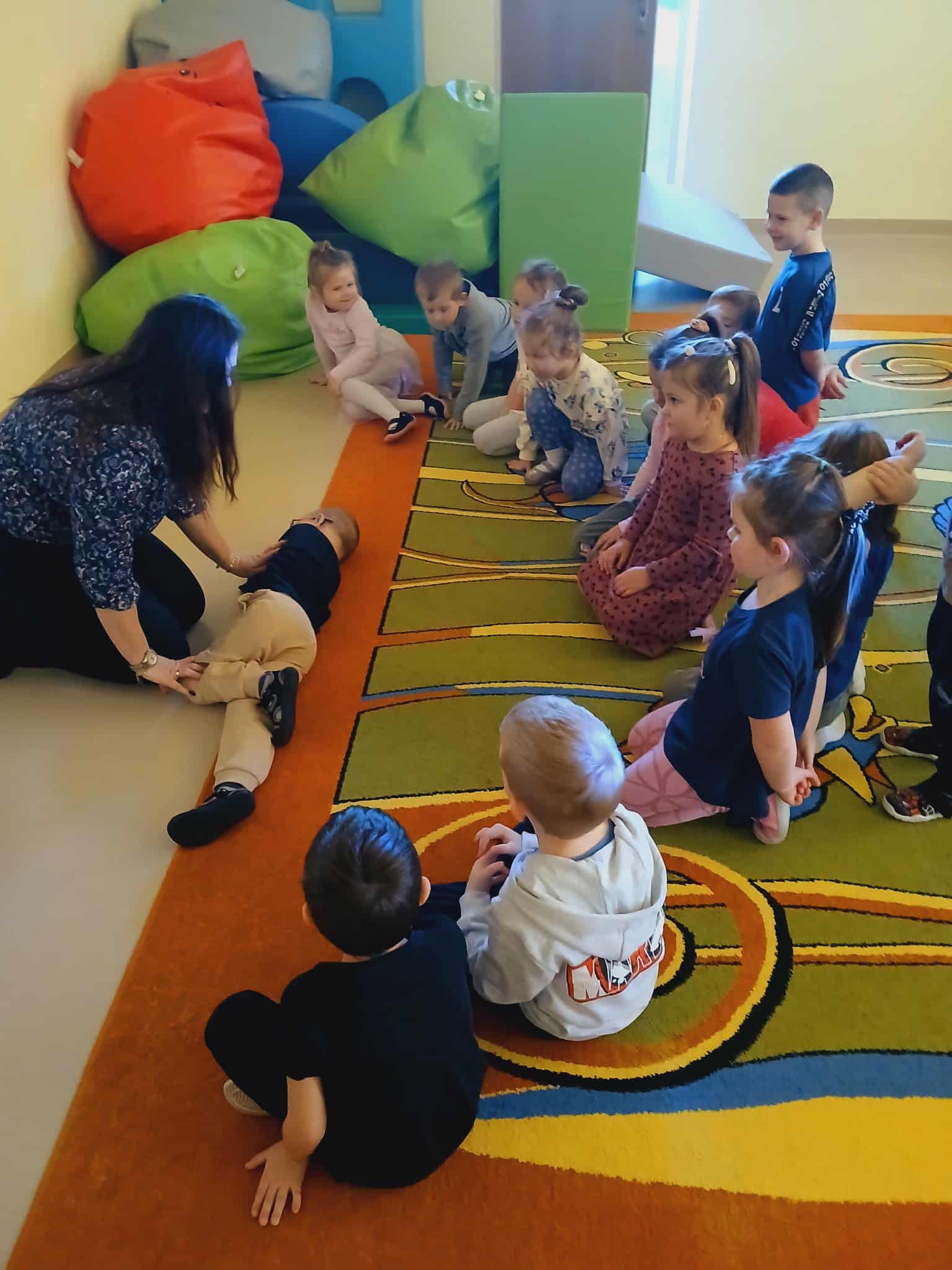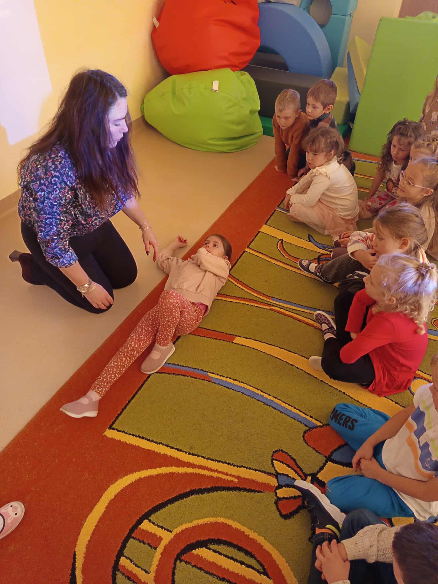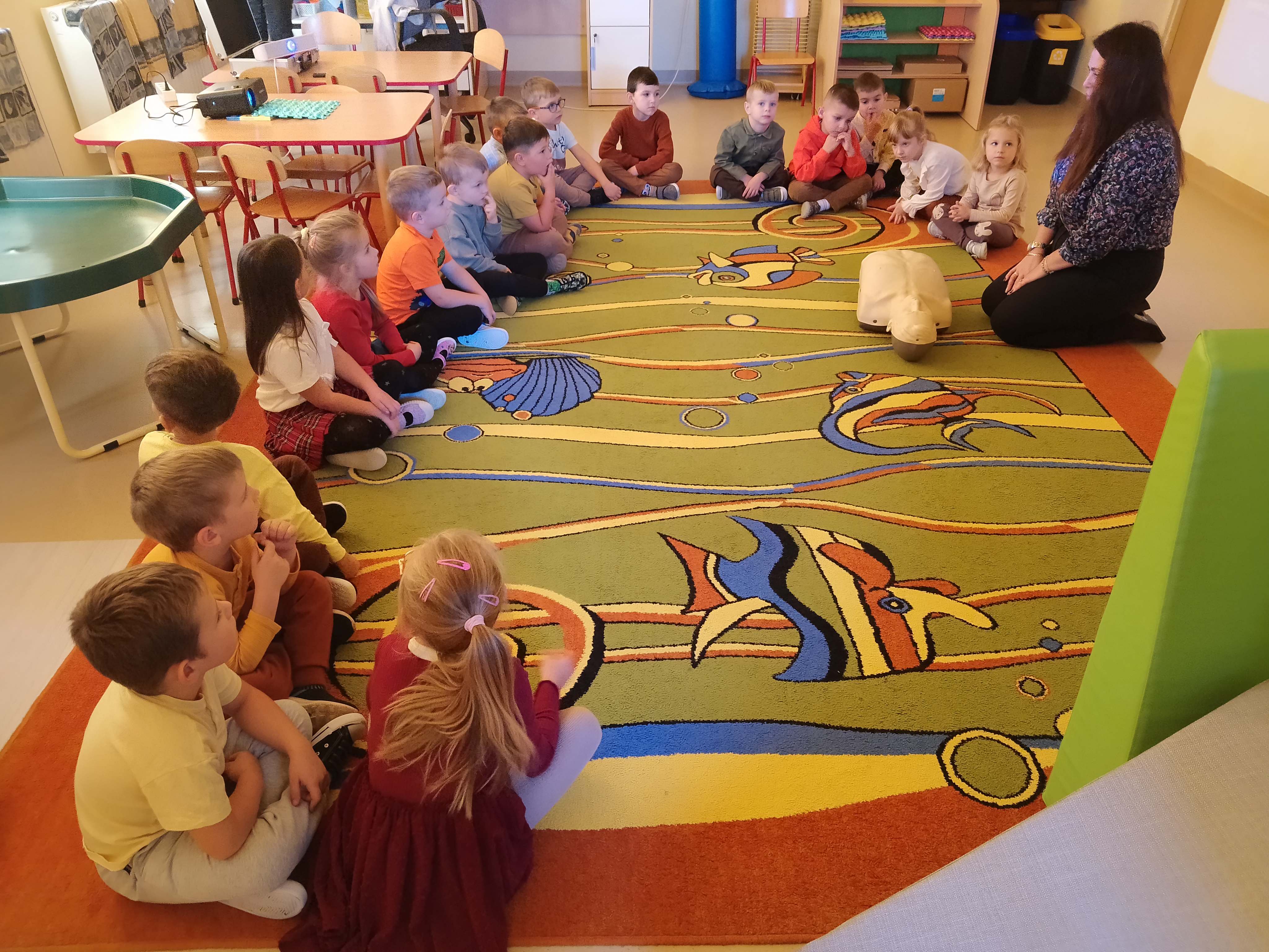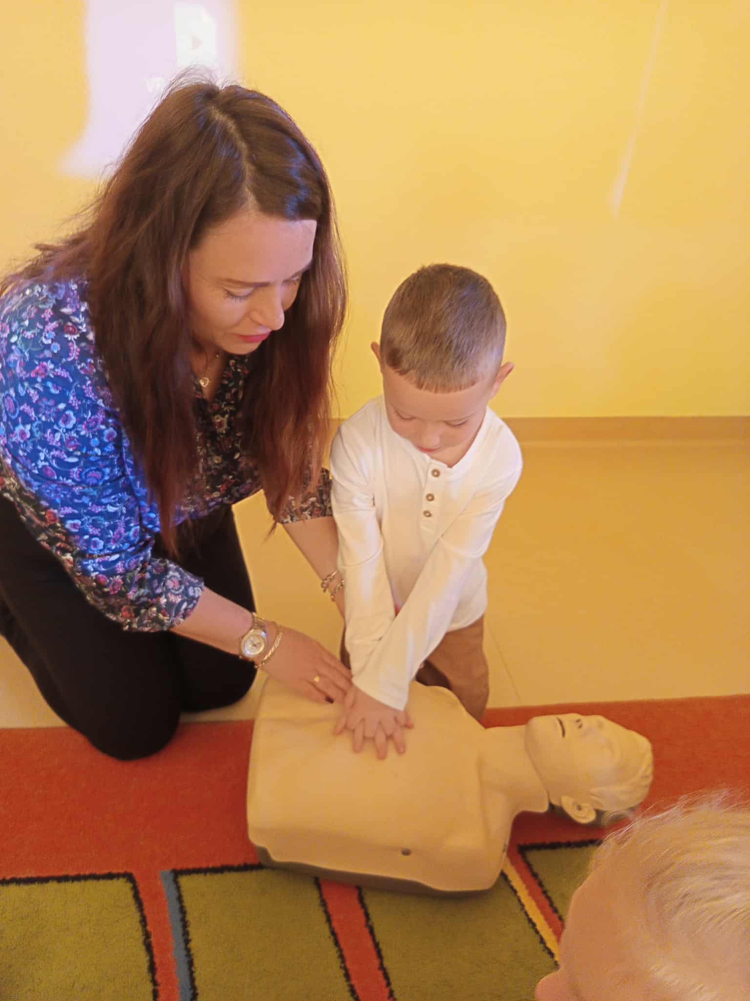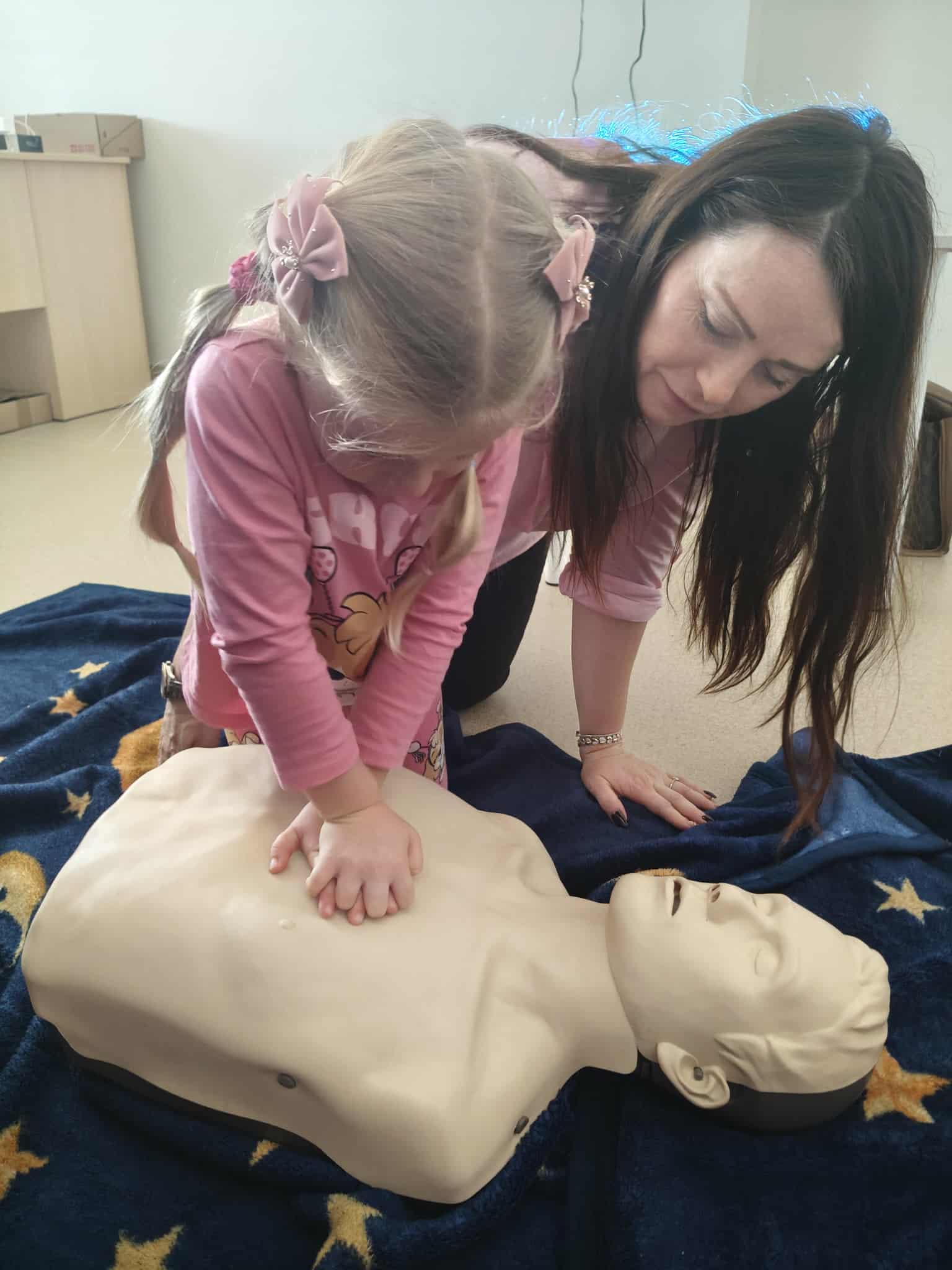 W dniach 30-31.10.2025 r. dzieci ze wszystkich grup wiekowych uczestniczyły w warsztatach z zakresu umiejętności udzielania pierwszej pomocy przedmedycznej. Poznawały ważne numery alarmowe, zasady wykonania resuscytacji czy pozycji bocznej ustalonej.