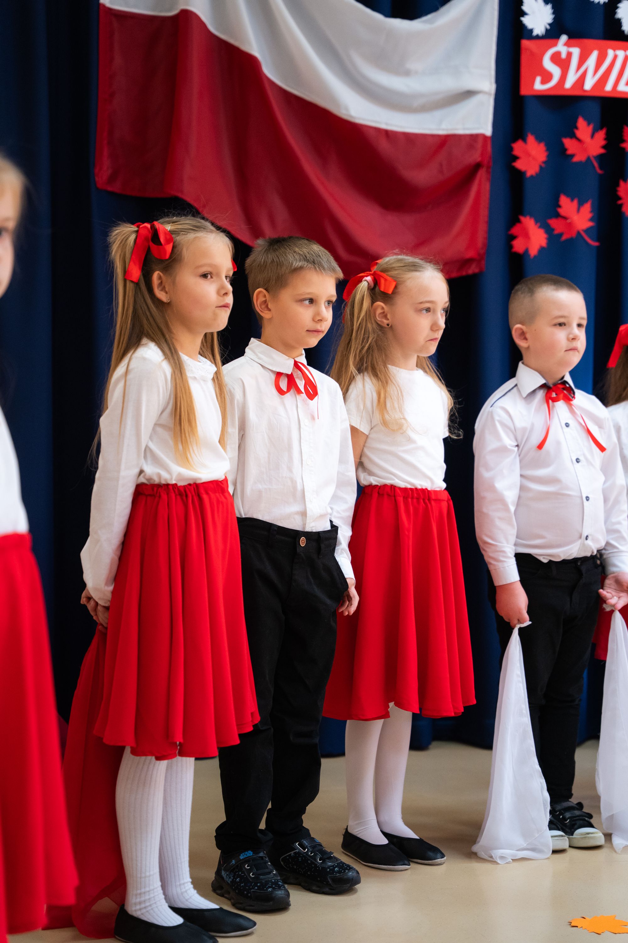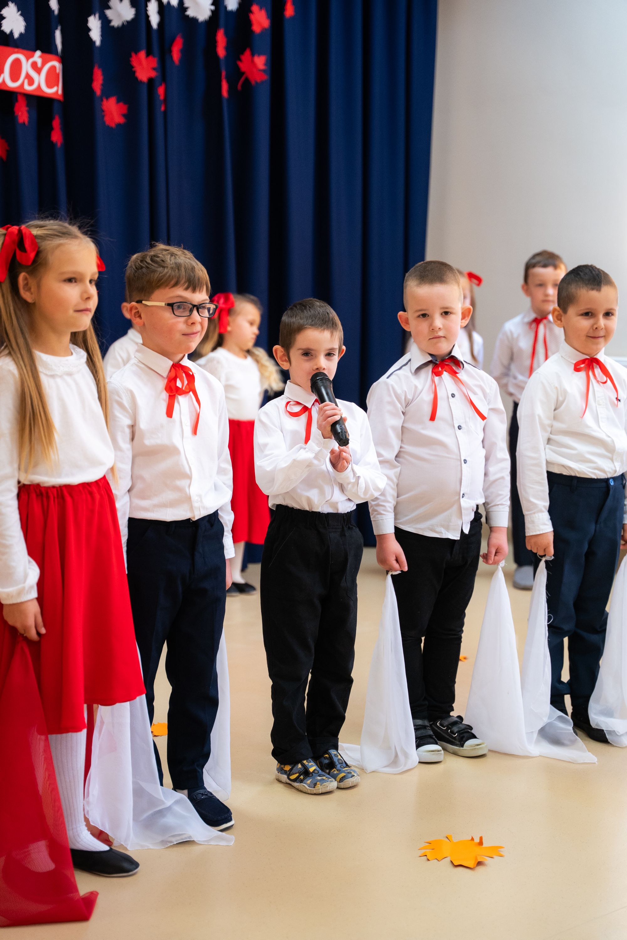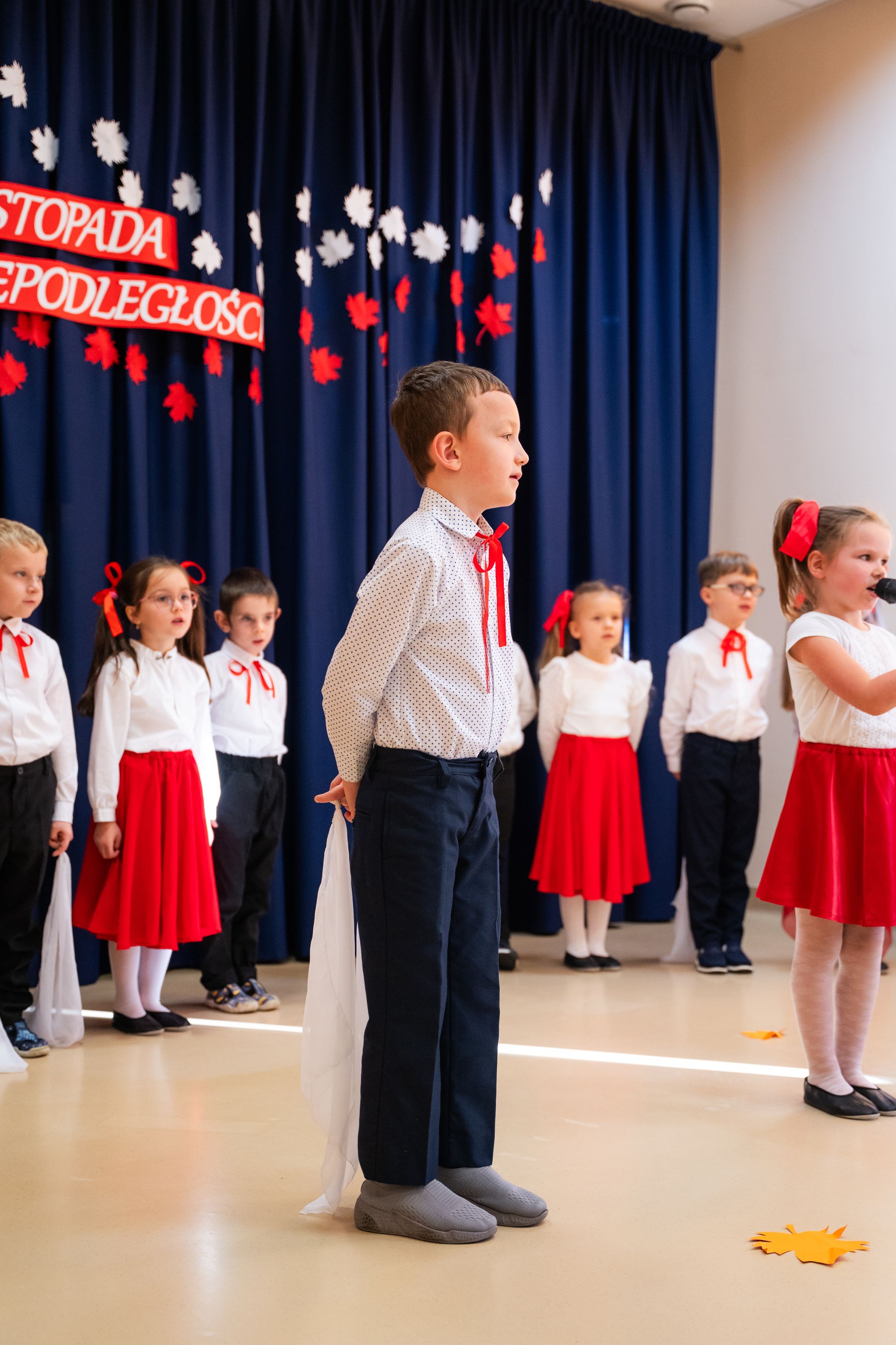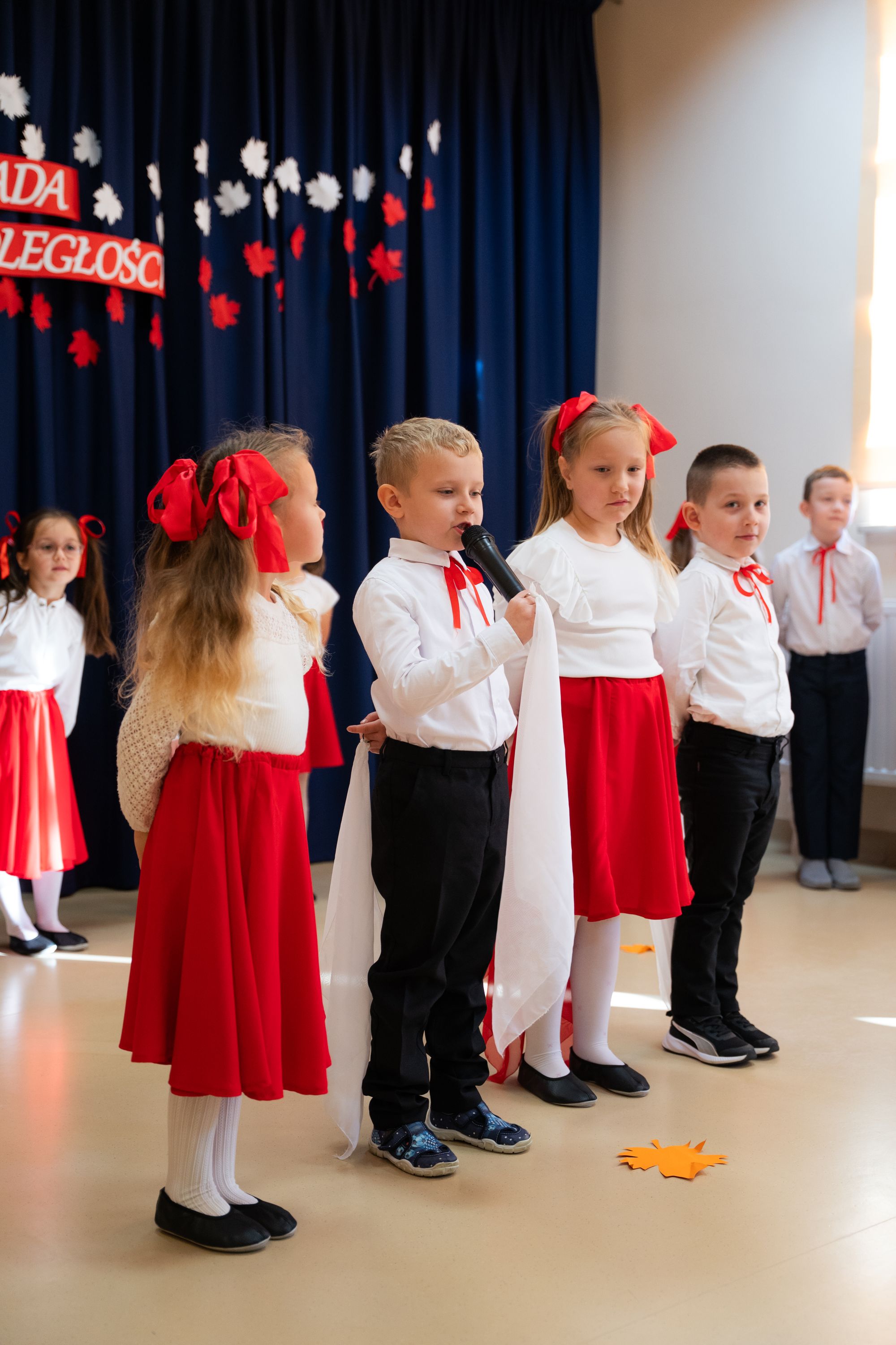 Dzieci z grupy „Słoneczka” przygotowały piękny program artystyczny. Spotkanie rozpoczęło się wspólnym odśpiewaniem hymnu narodowego, a następnie przedszkolaki recytowały wiersze, śpiewały pieśni patriotyczne i zaprezentowały tańce.