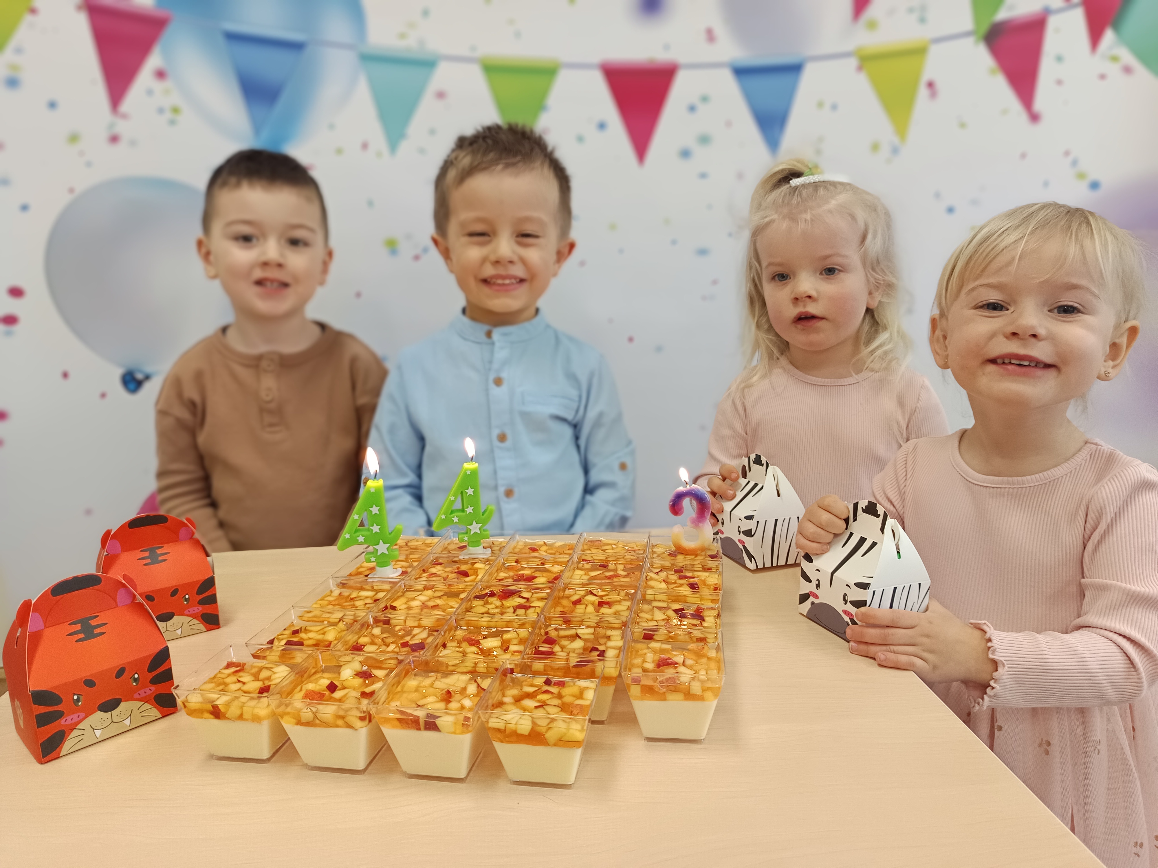 Przedszkolne urodzinki obchodzili w tym miesiącu Zosia P. ,Wikusia O. ,Antoś B. i Kacperek R..