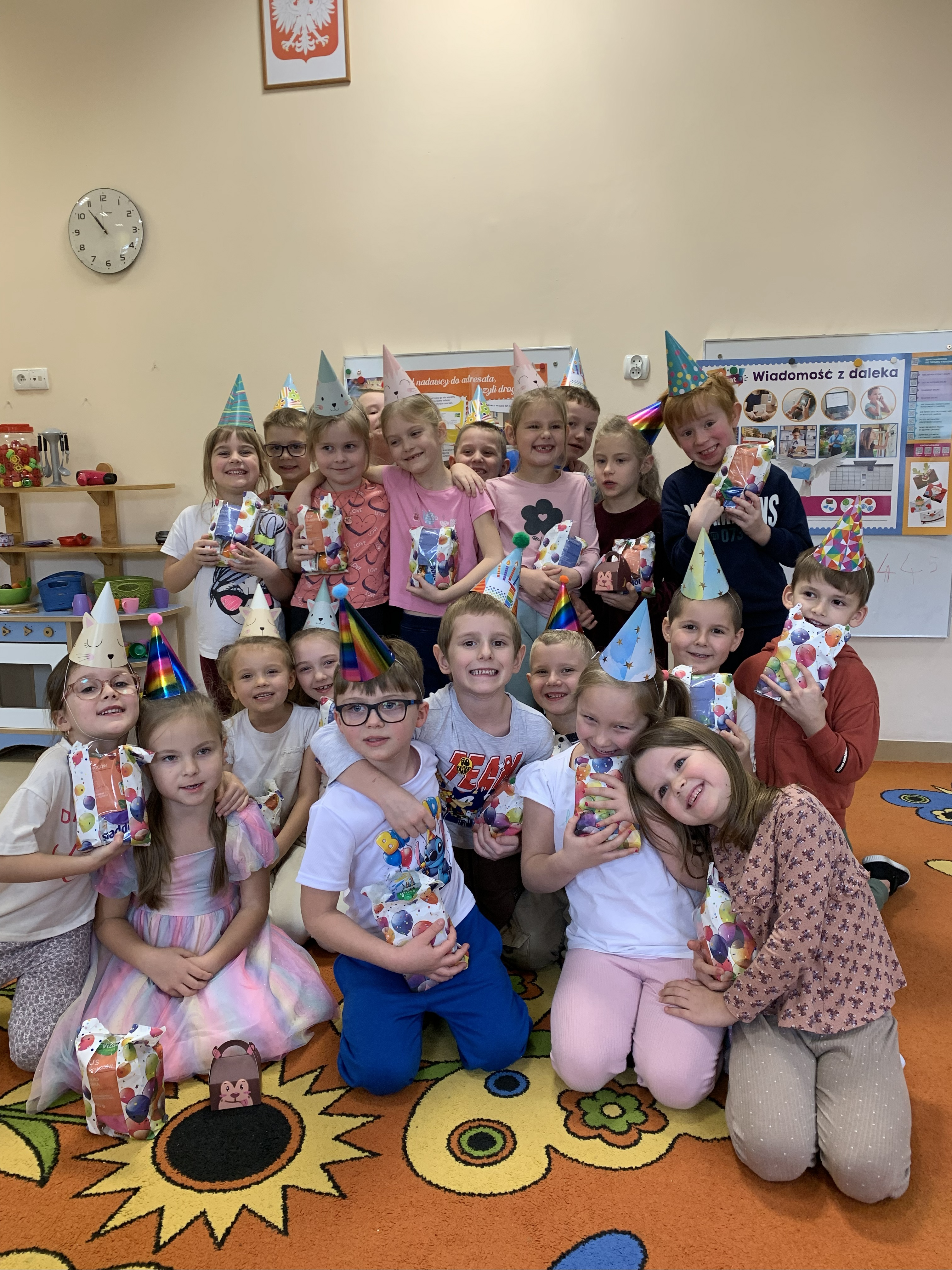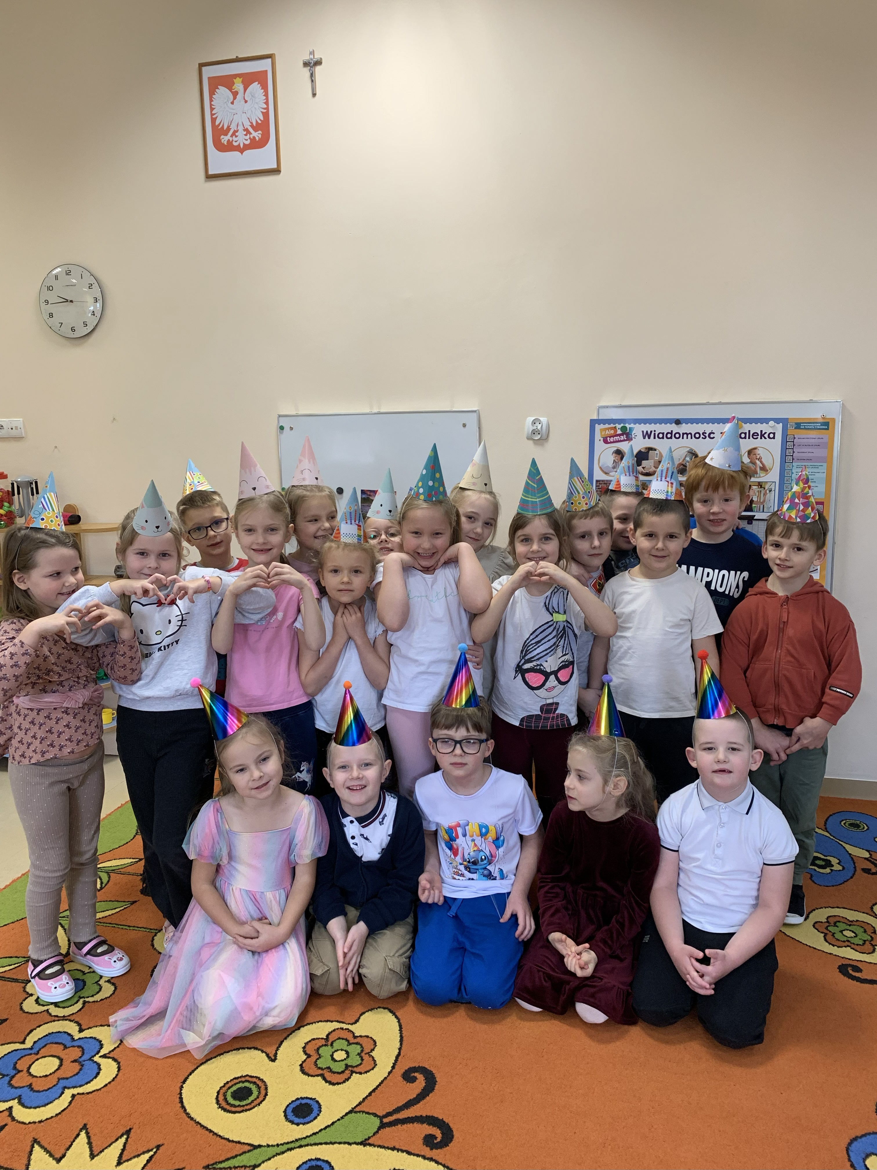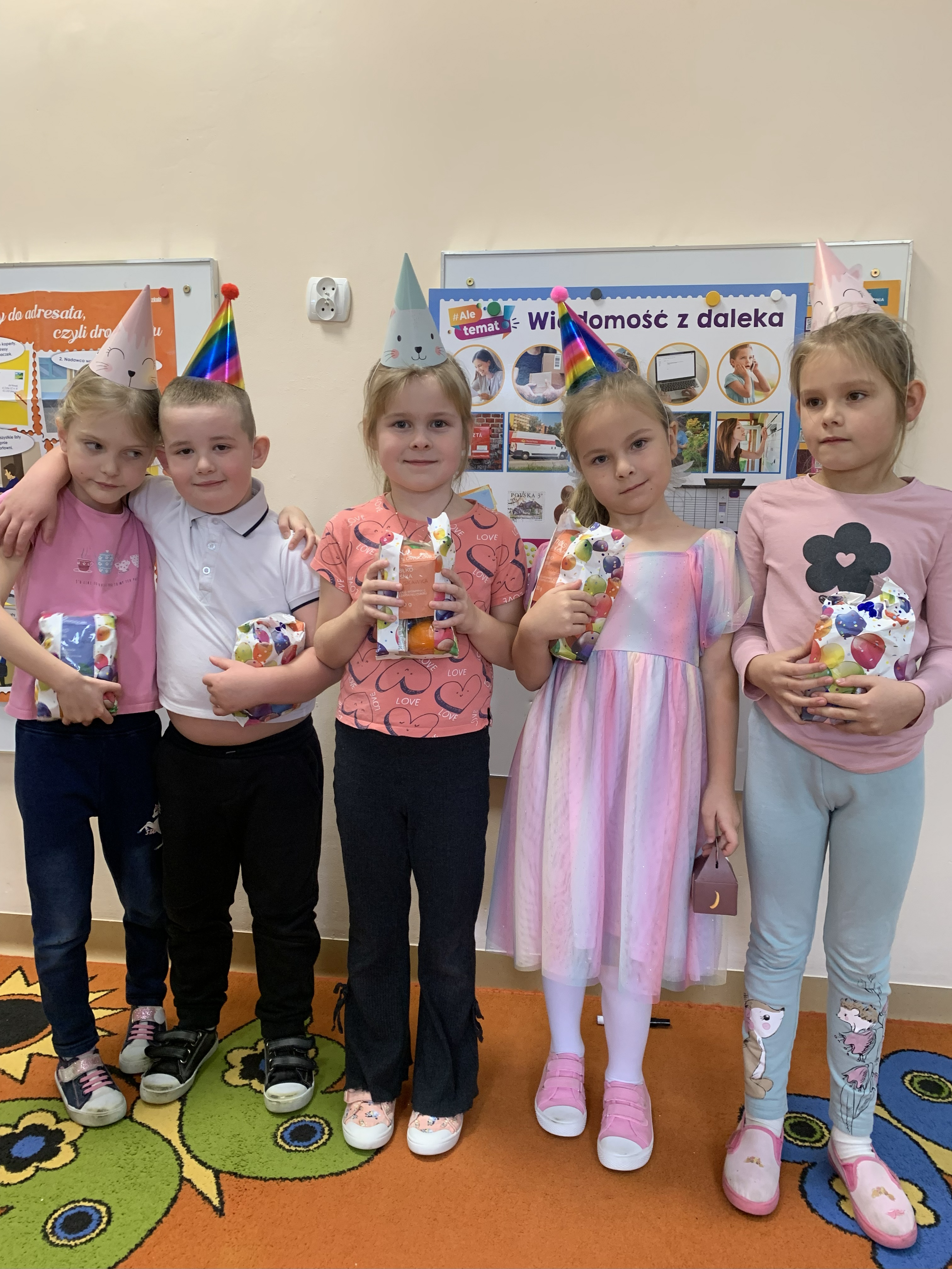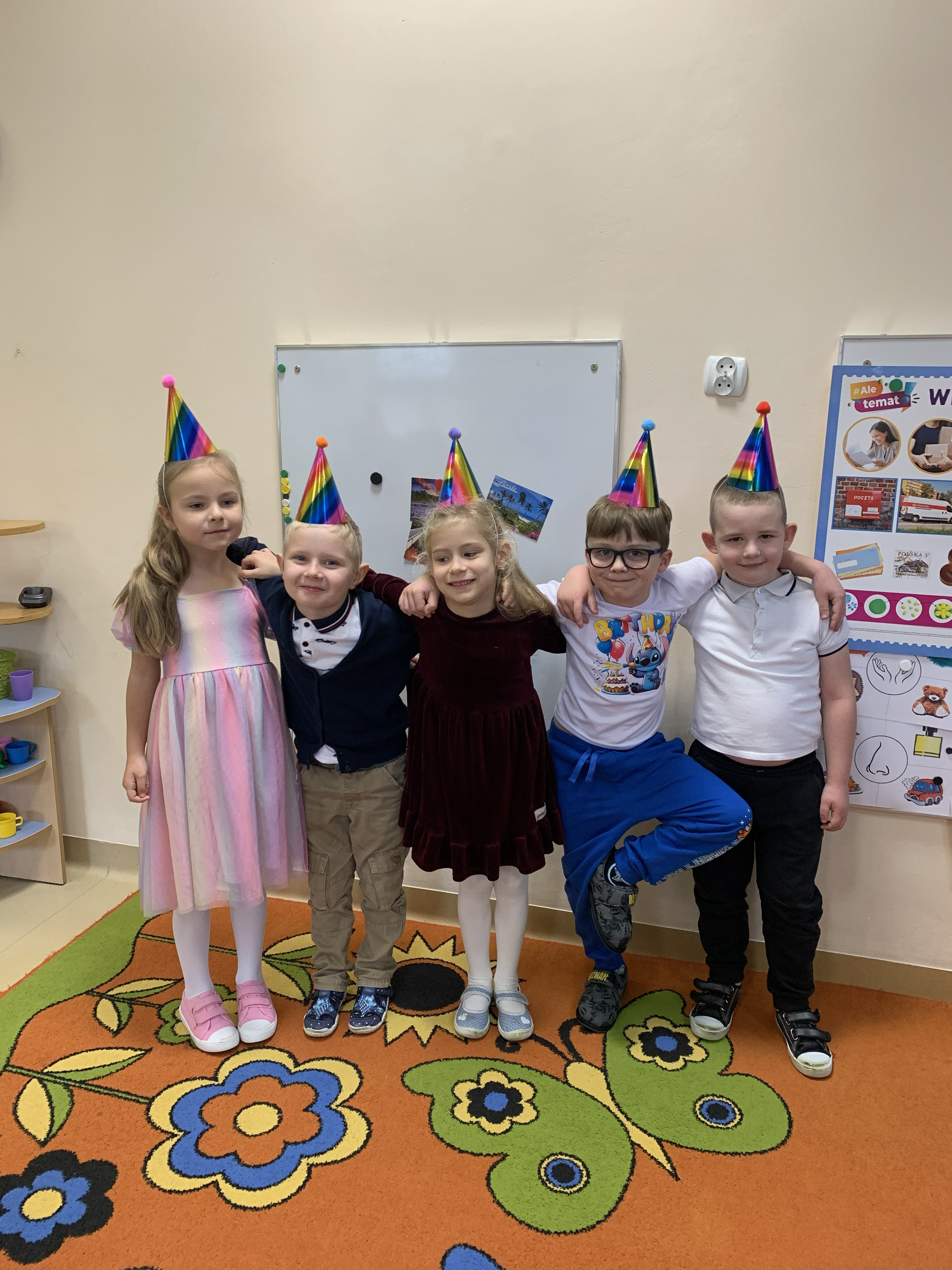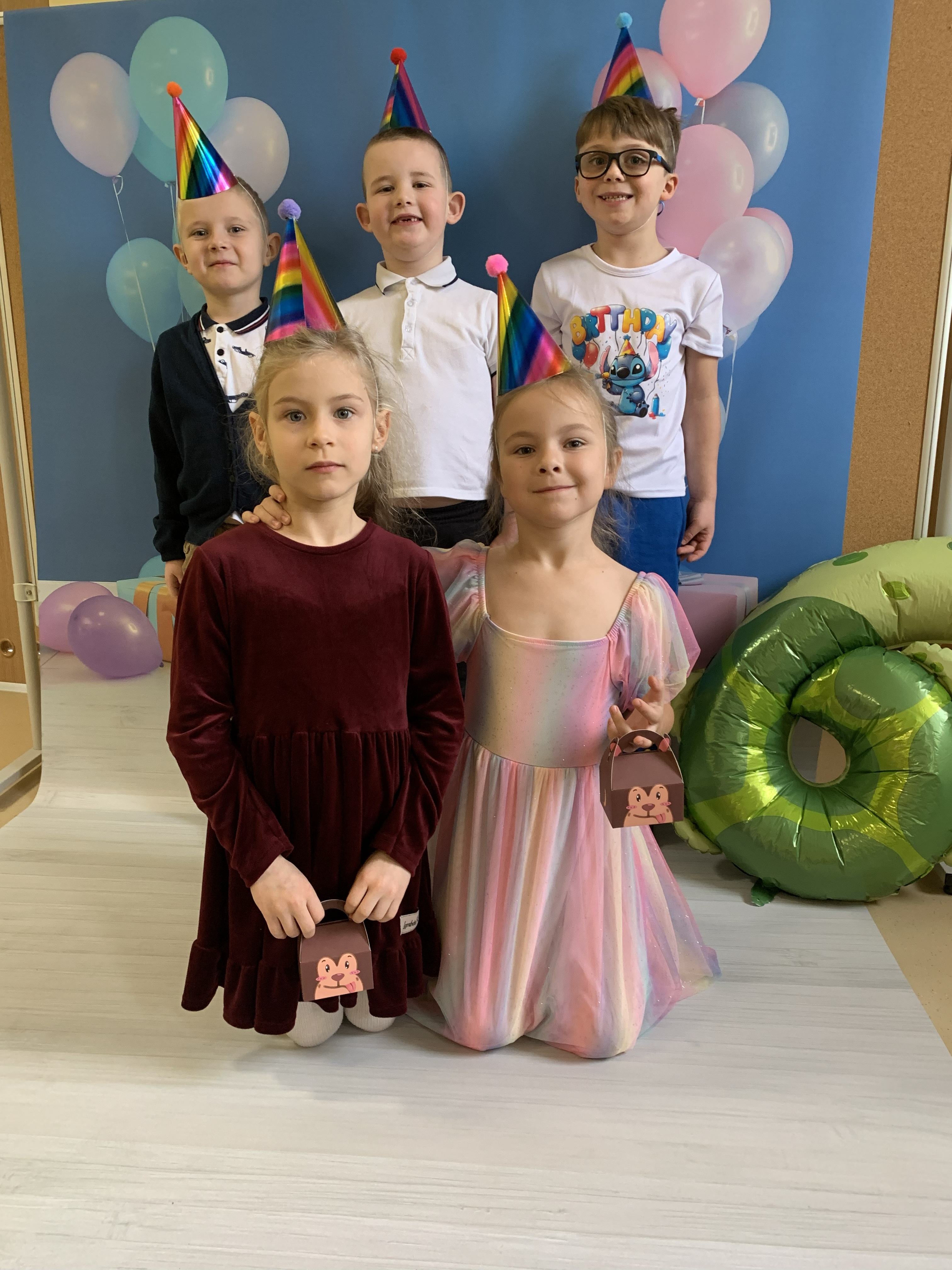 Wszyscy mają świetne minki, bo dziś mamy Urodzinki! Solenizantami są: Martynka, Matylda, Antoś, Oskar i Mikołaj. Wszystkiego najlepszego. Niech zdrowie Wam dopisuje każdego dnia.
