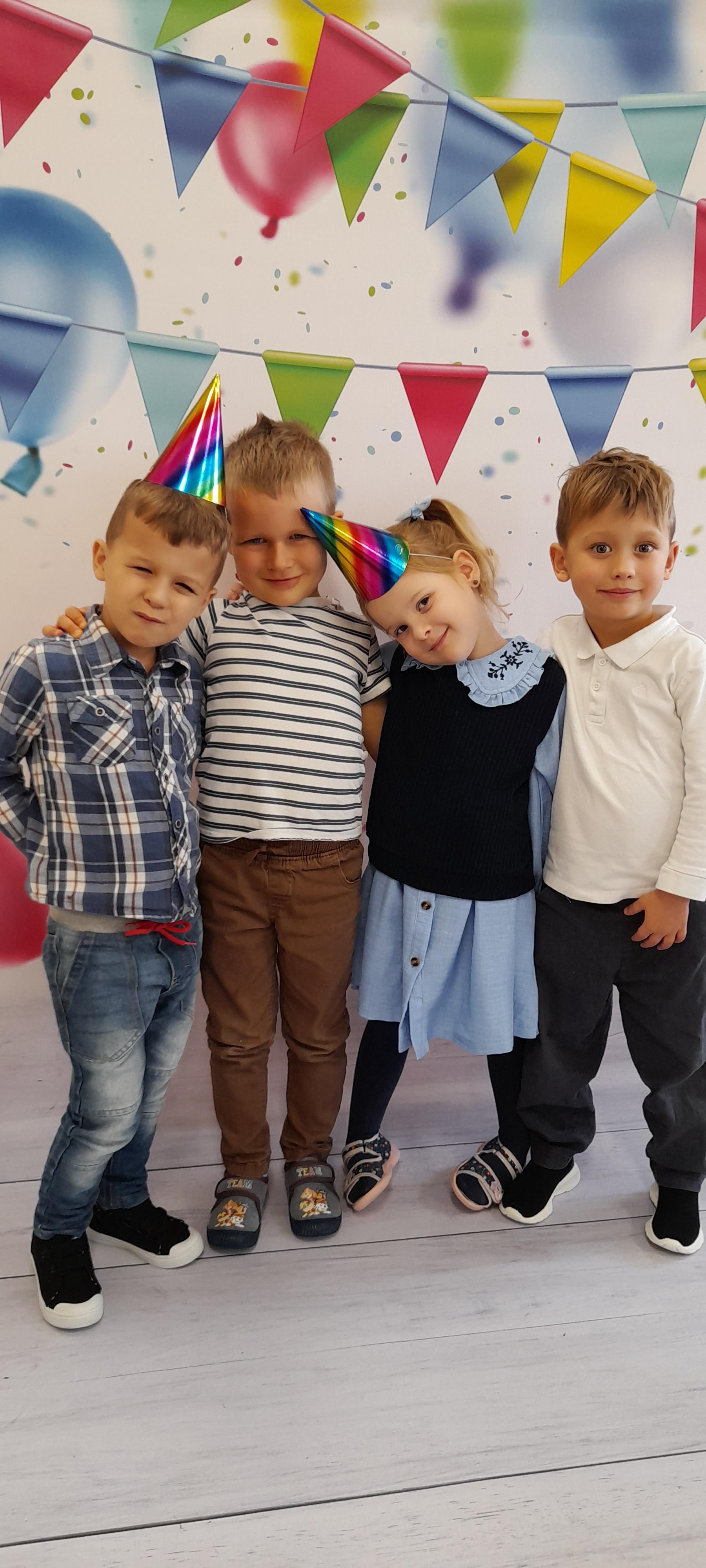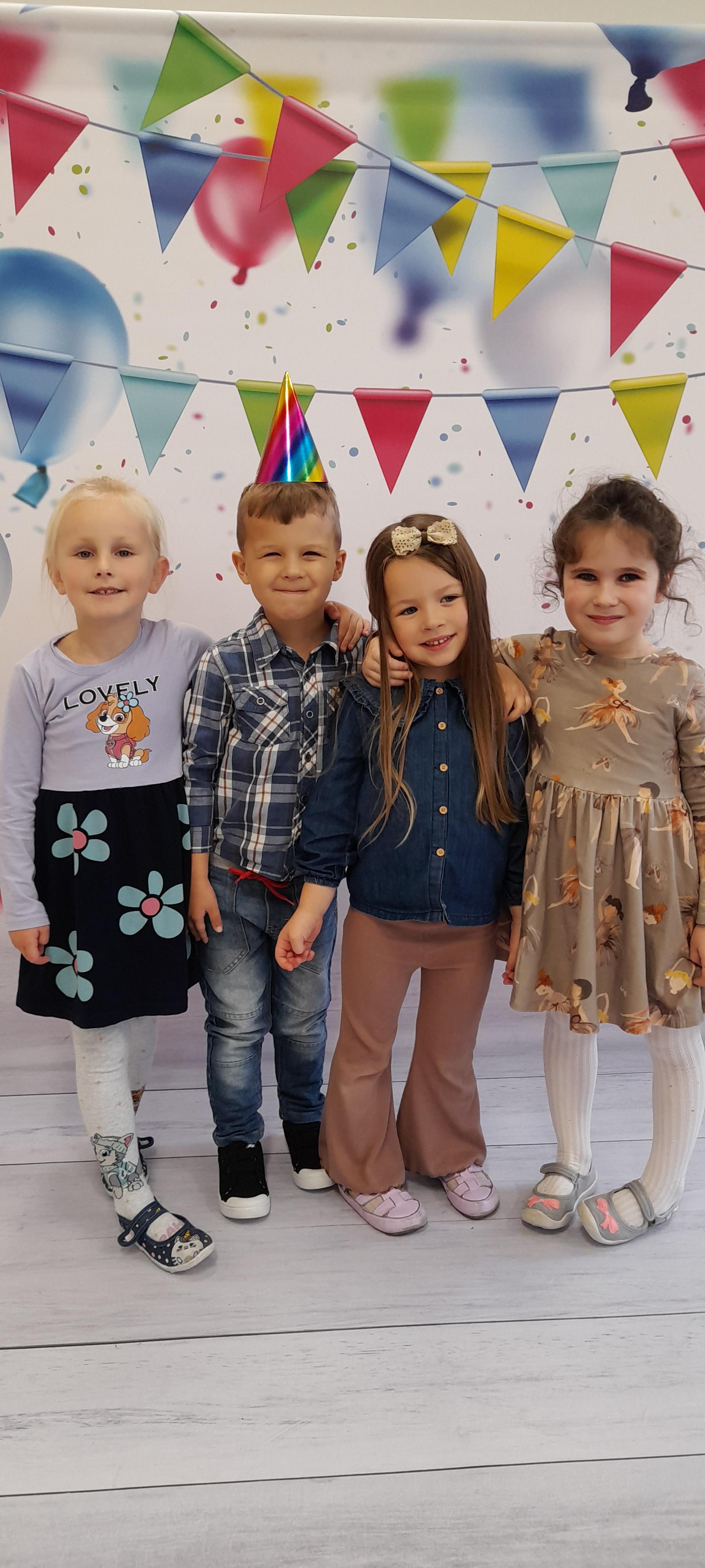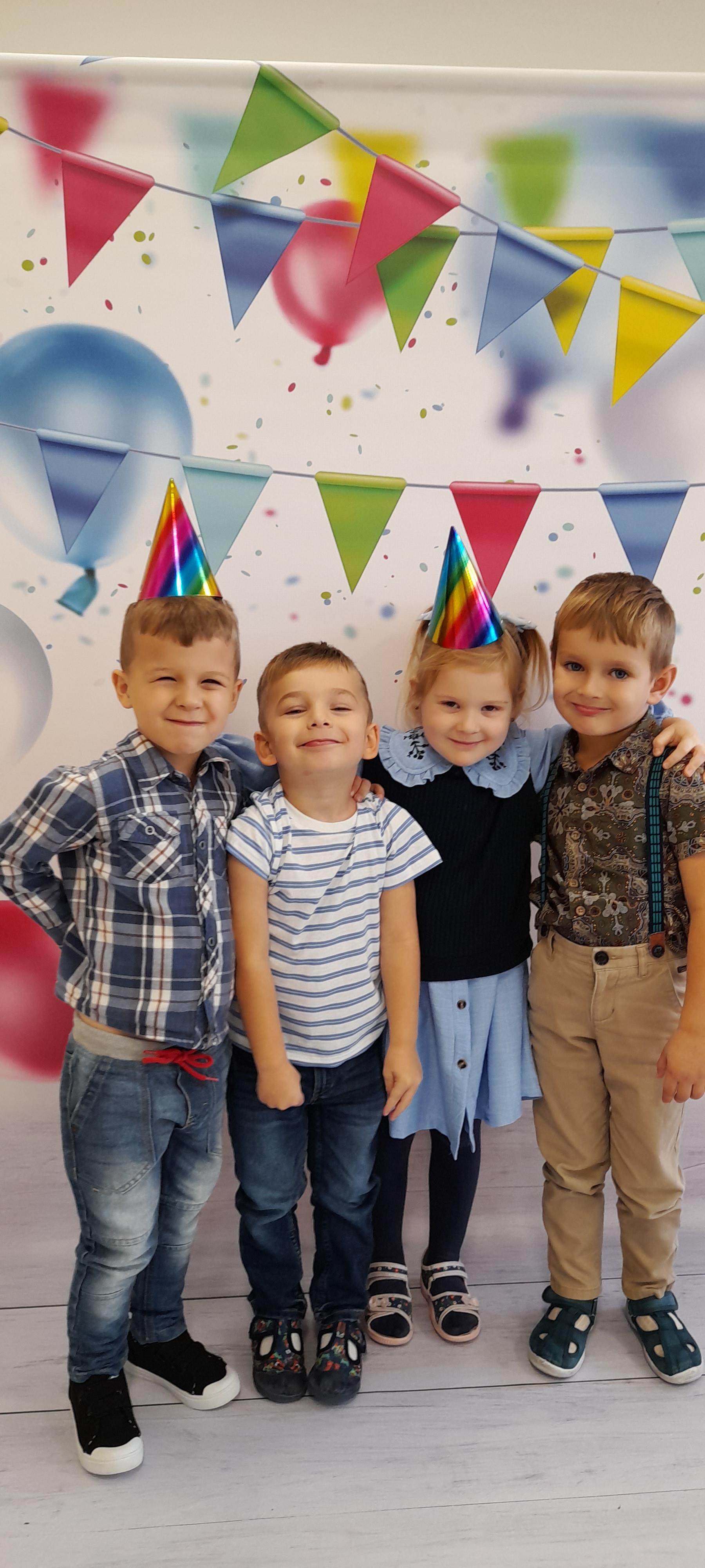"Dziś w przedszkolu wielka sprawa, bo urodzin nadszedł czas! Niech się śmieje buzia mała, radość niech otacza nas!
