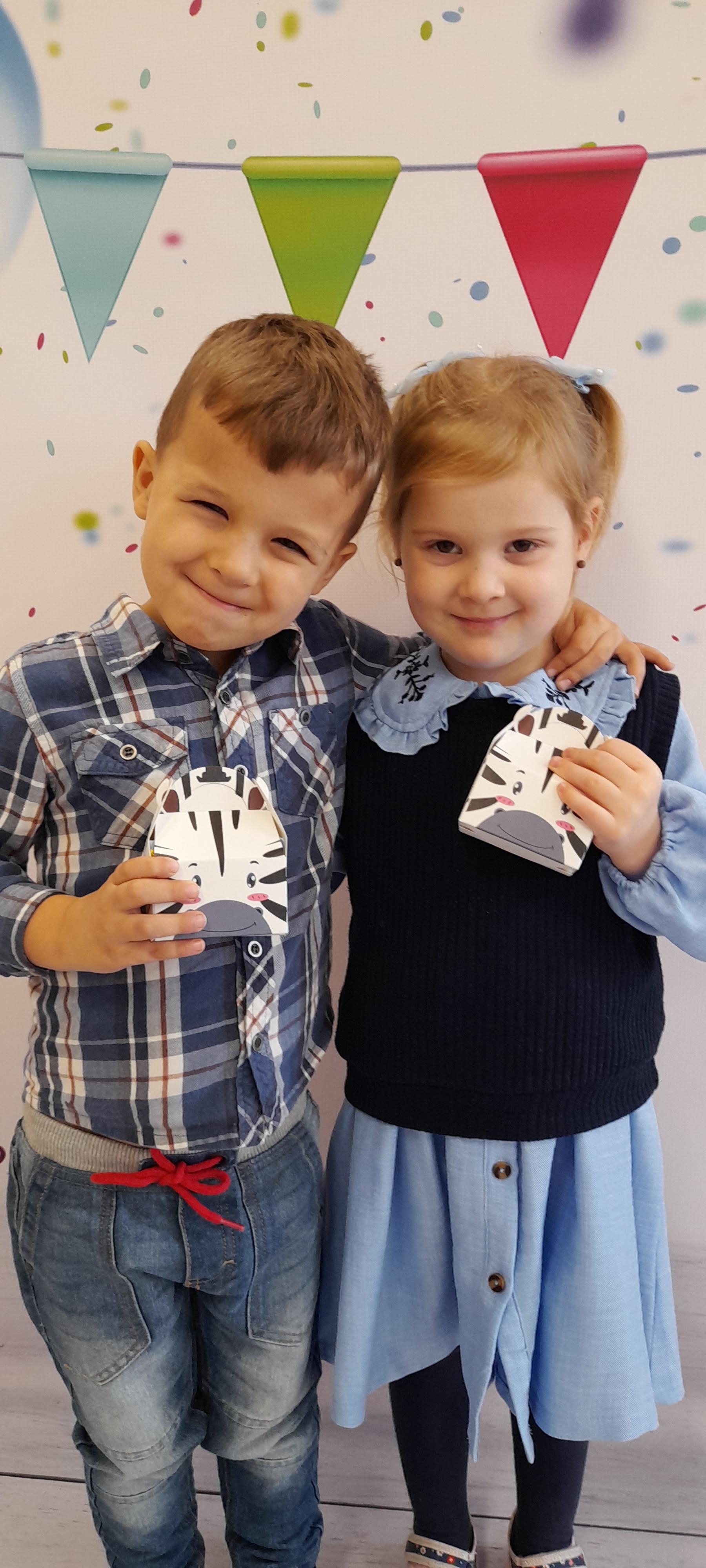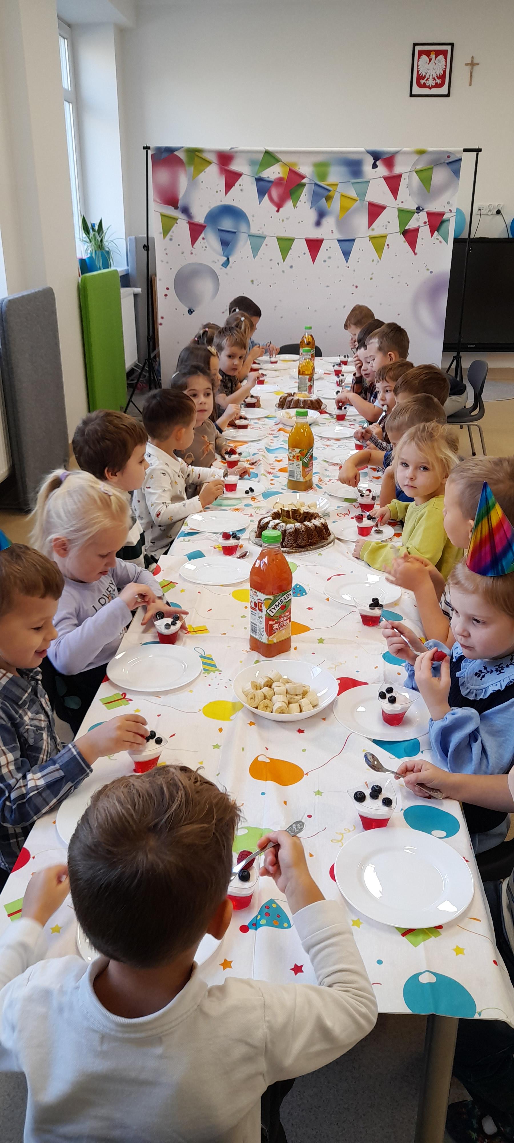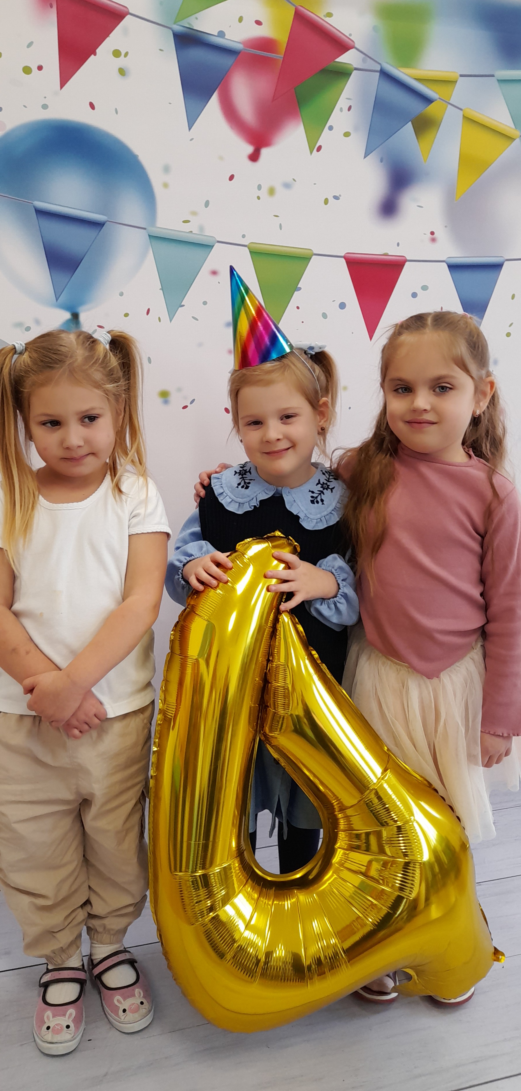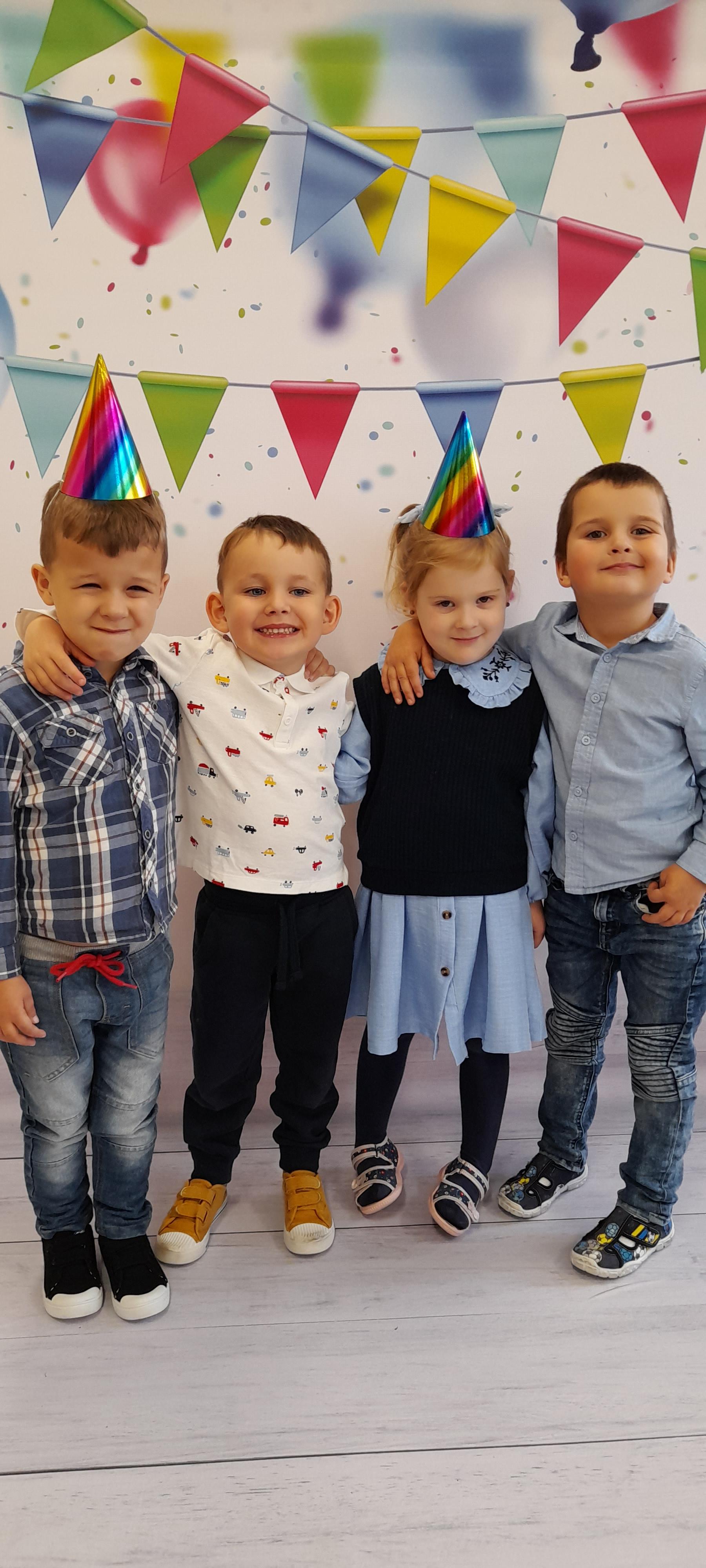 "Dziś w przedszkolu wielka sprawa, bo urodzin nadszedł czas! Niech się śmieje buzia mała, radość niech otacza nas!