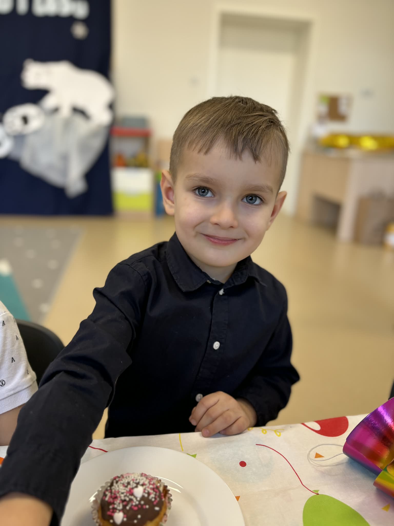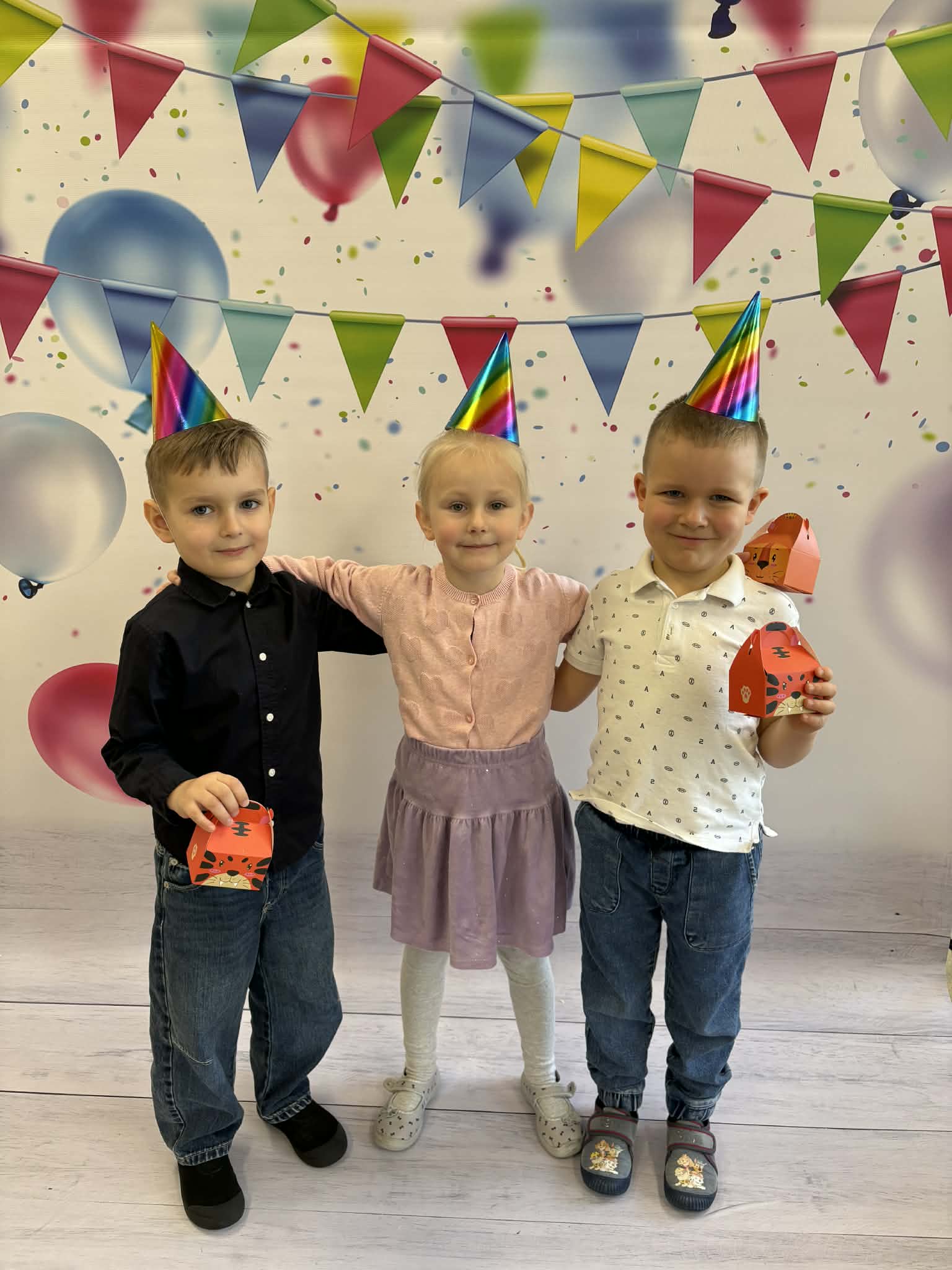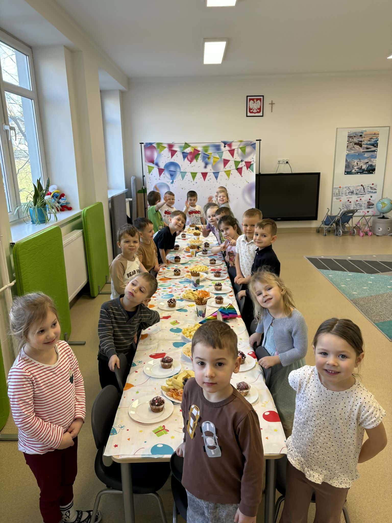 Dziś w przedszkolu wielka sprawa, bo urodzin nadszedł czas! Niech się śmieje buzia mała, radość niech otacza nas!