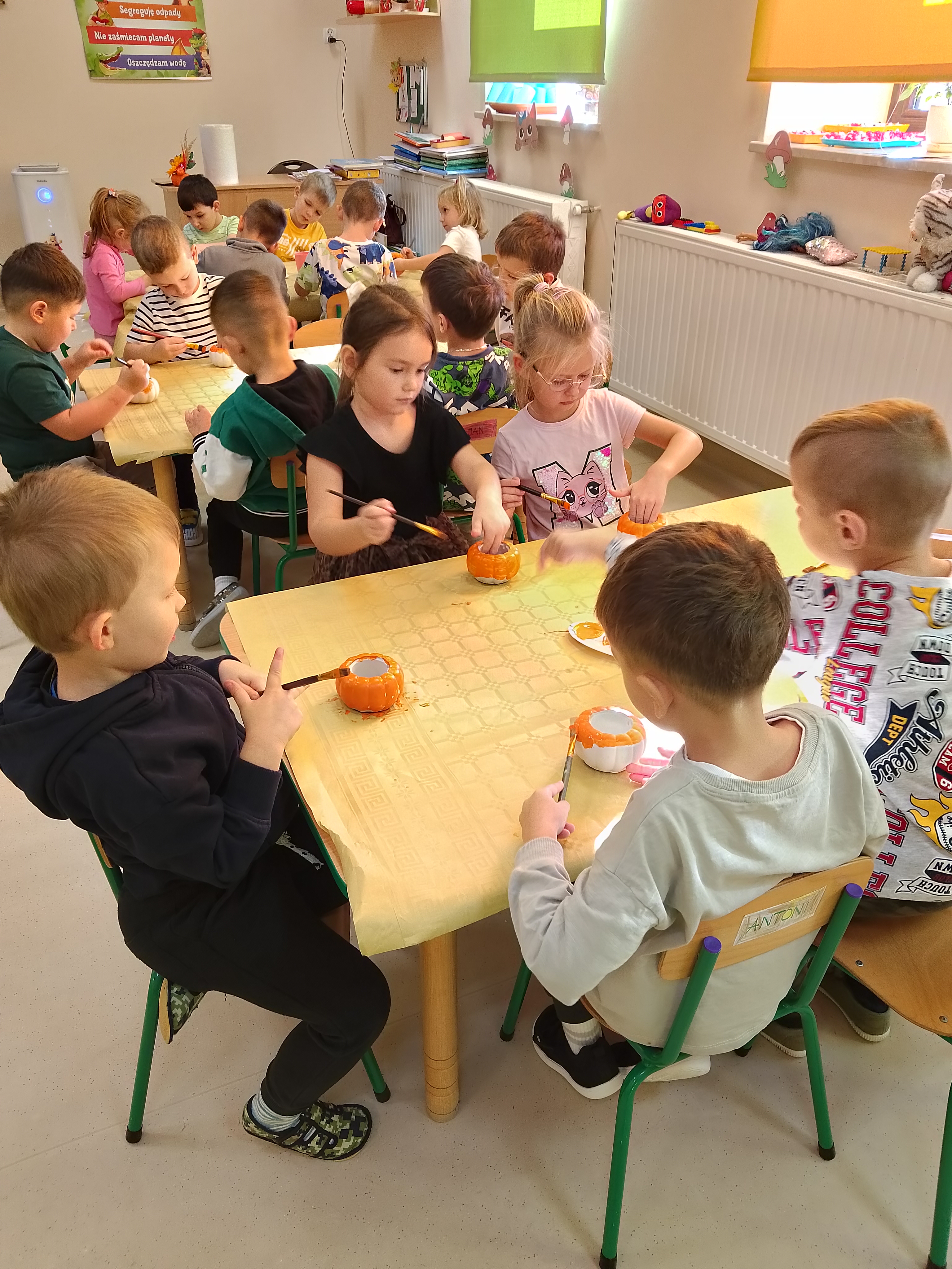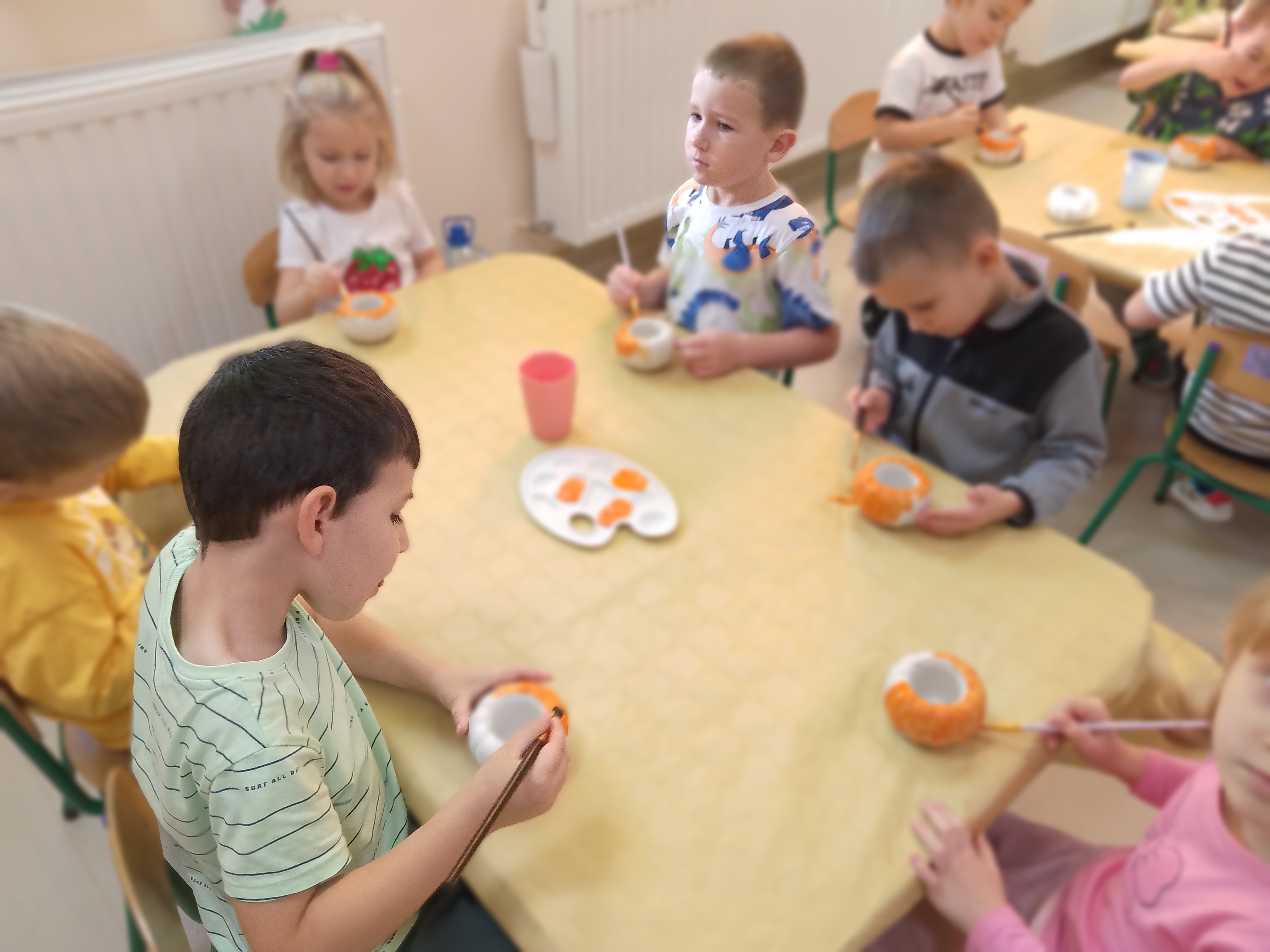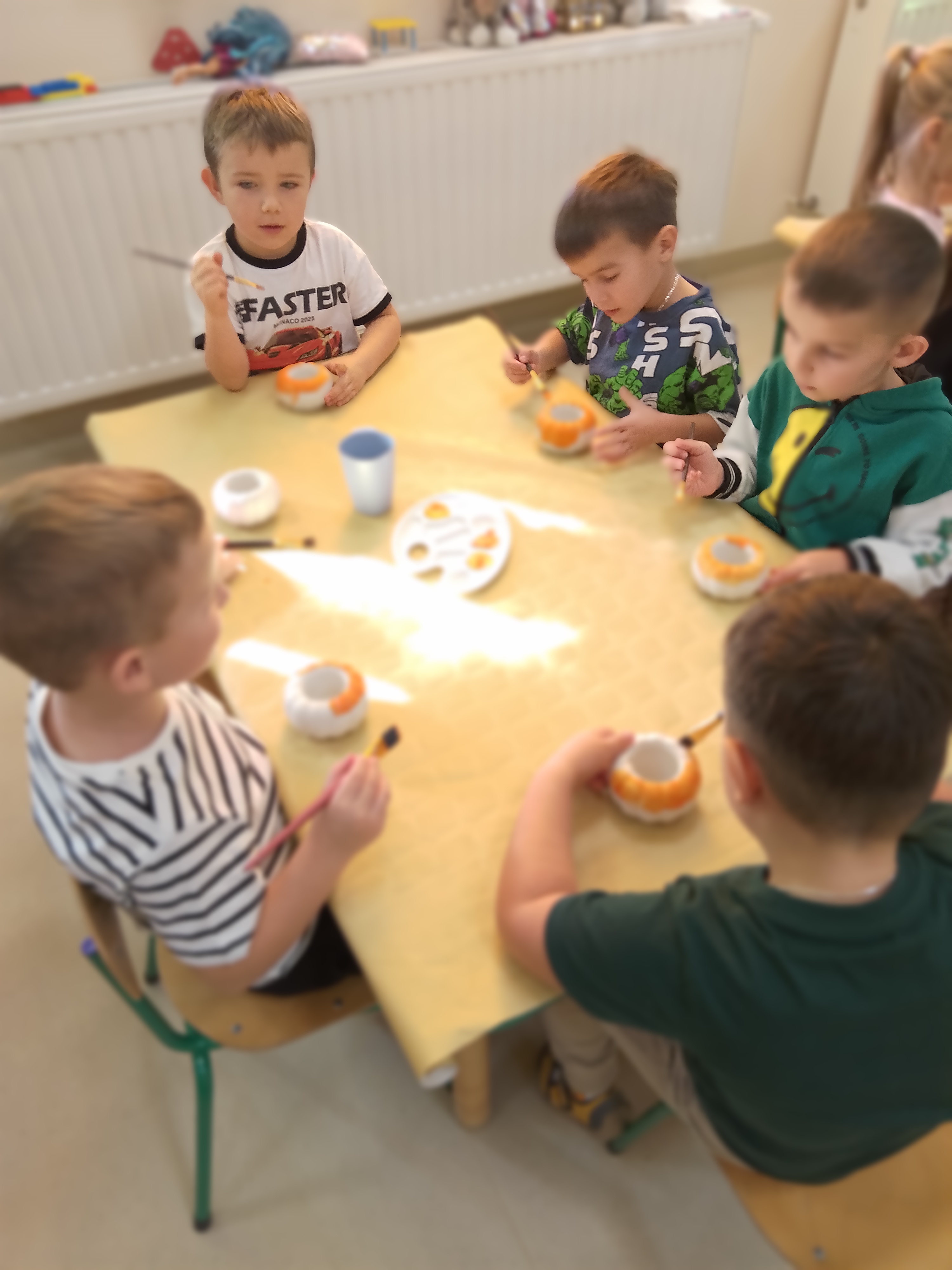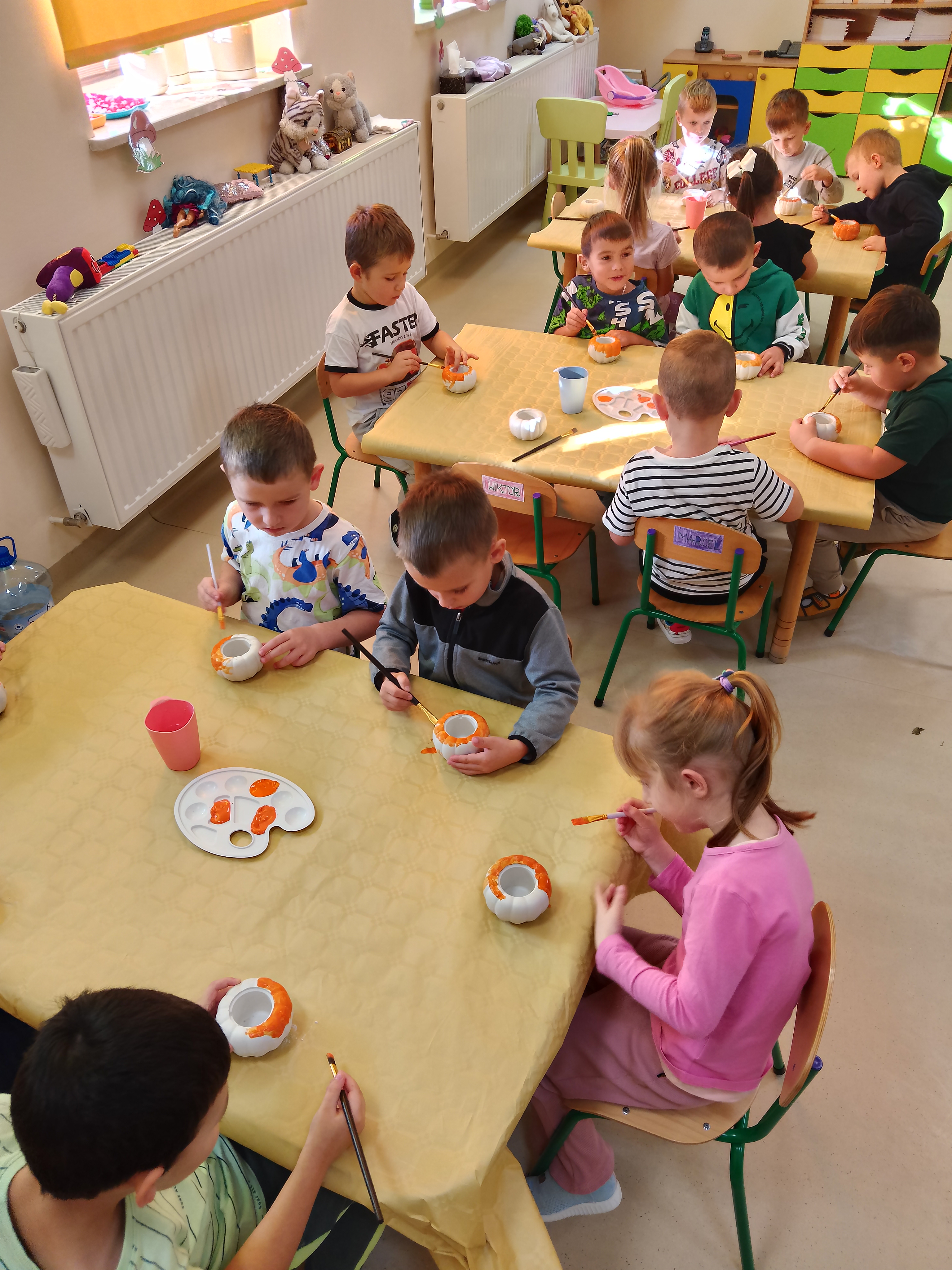 Dnia 05.11.2025 to. dzieci z grupy "Kotki" miały przyjemność wziąć udział w warsztatach wykonania kompozycji w gipsowej dyni organizowanych przez "Kreatywna warsztatownia". 5-latki miały możliwość rozwinąć swoją twórczość i kreatywność a piękne prace ozdobią wnętrza ich domów.