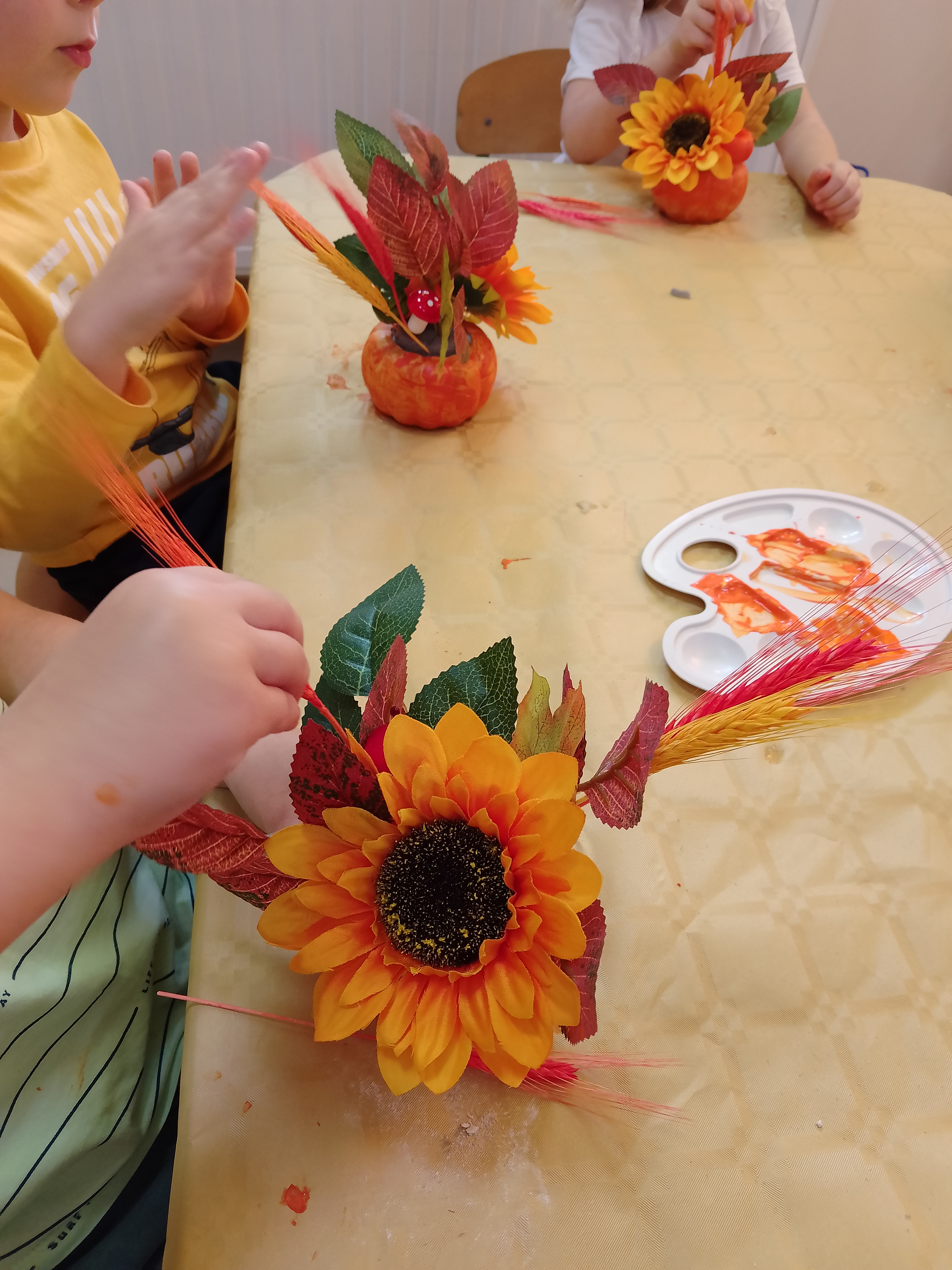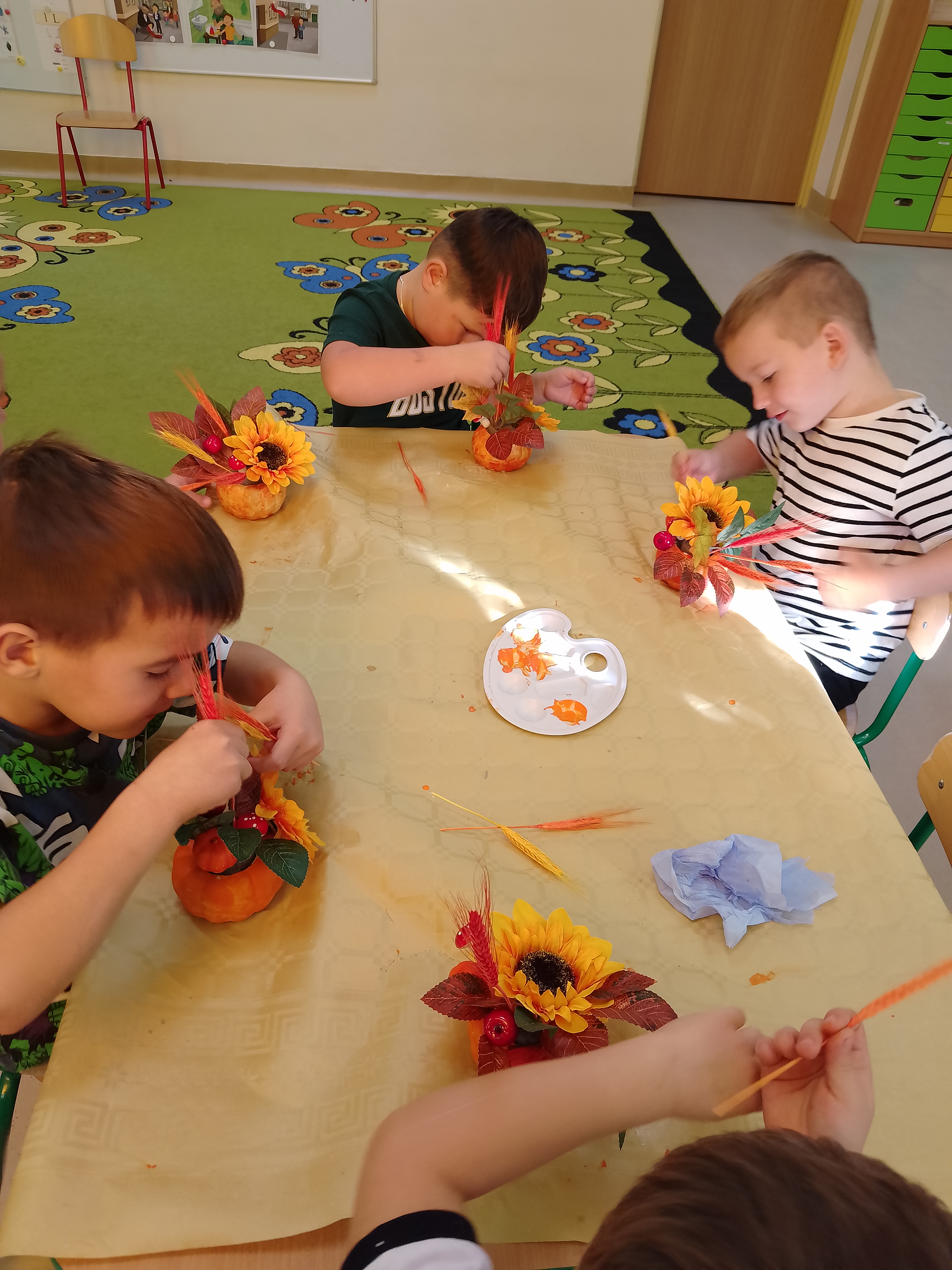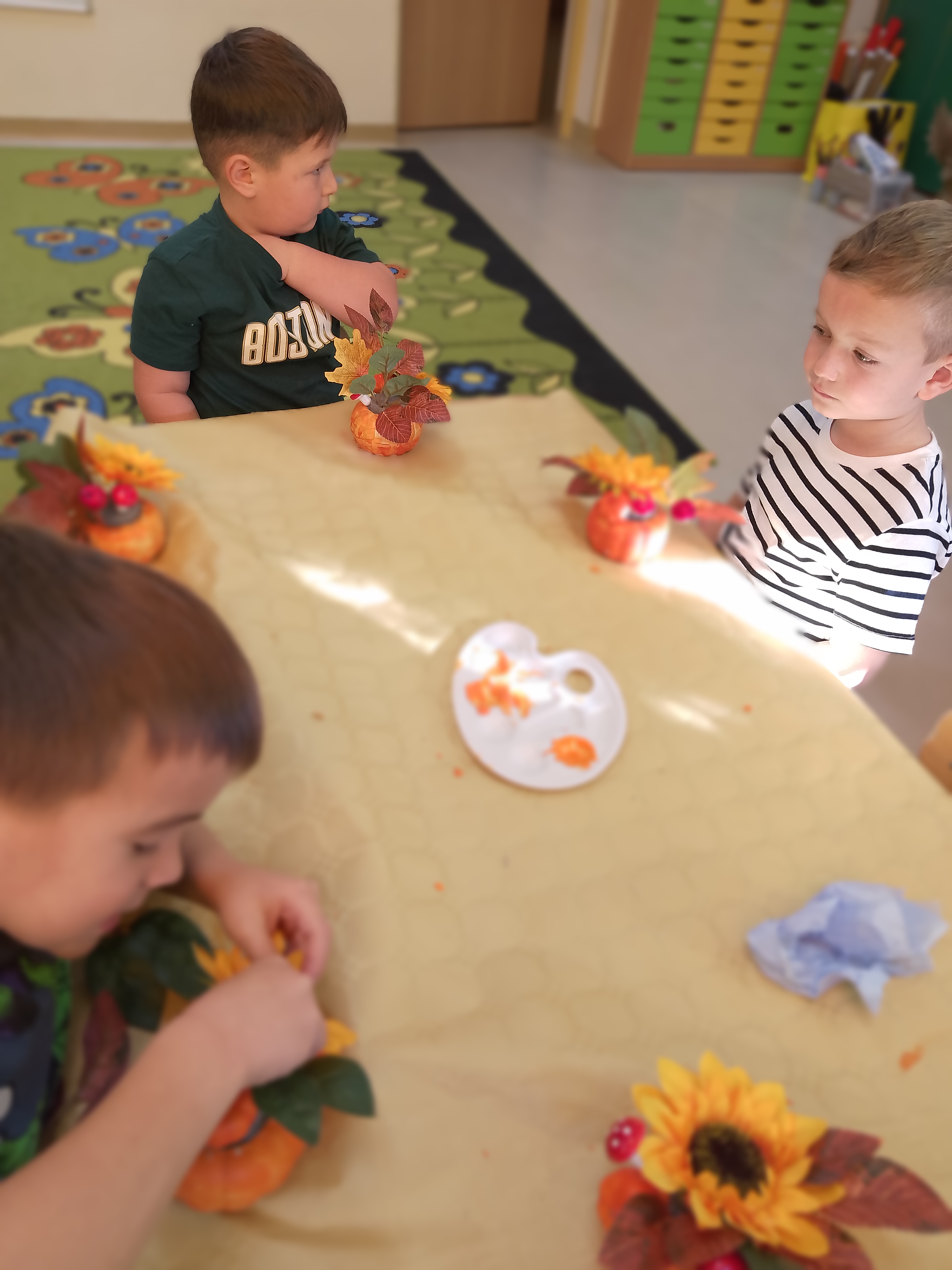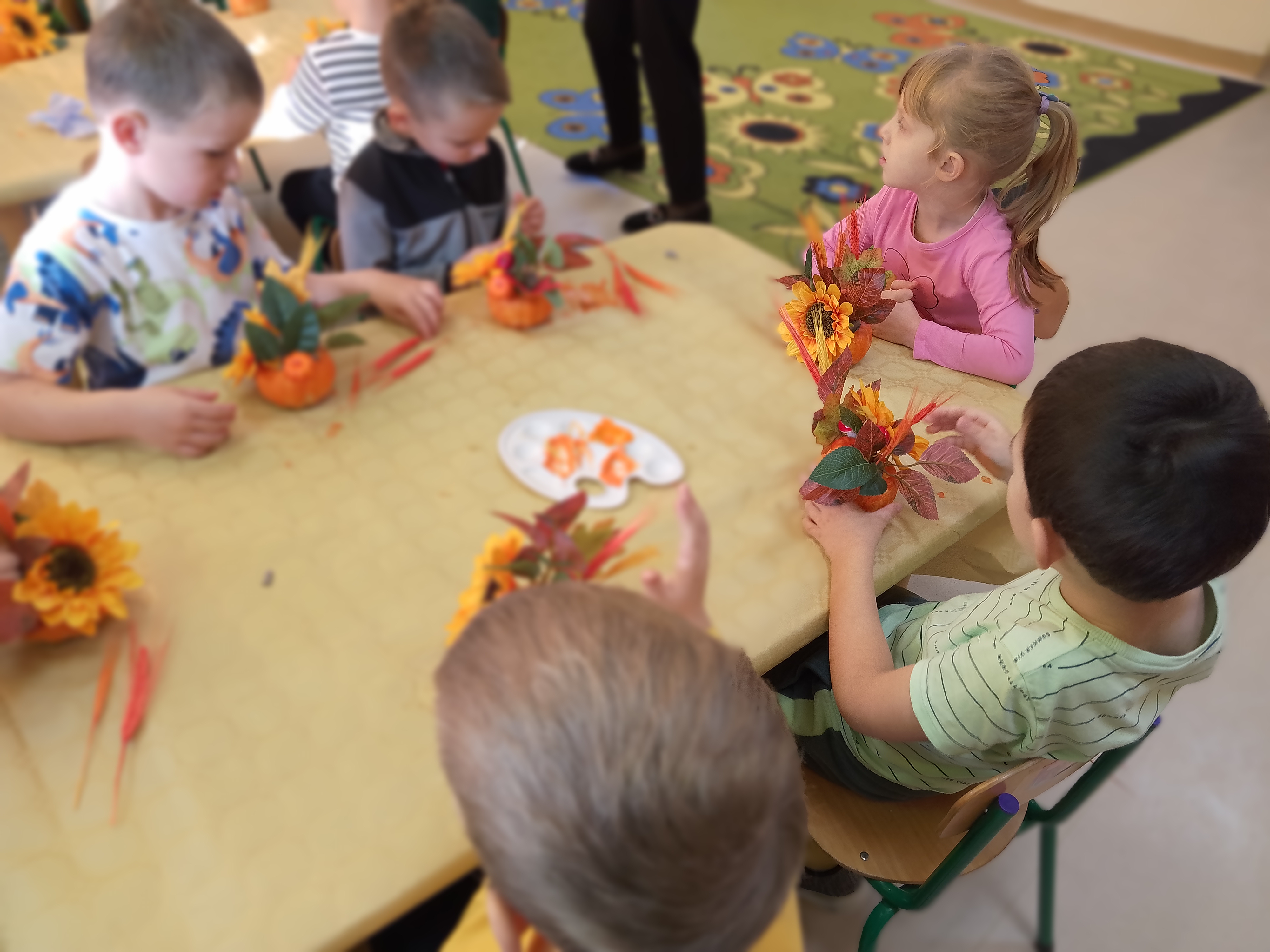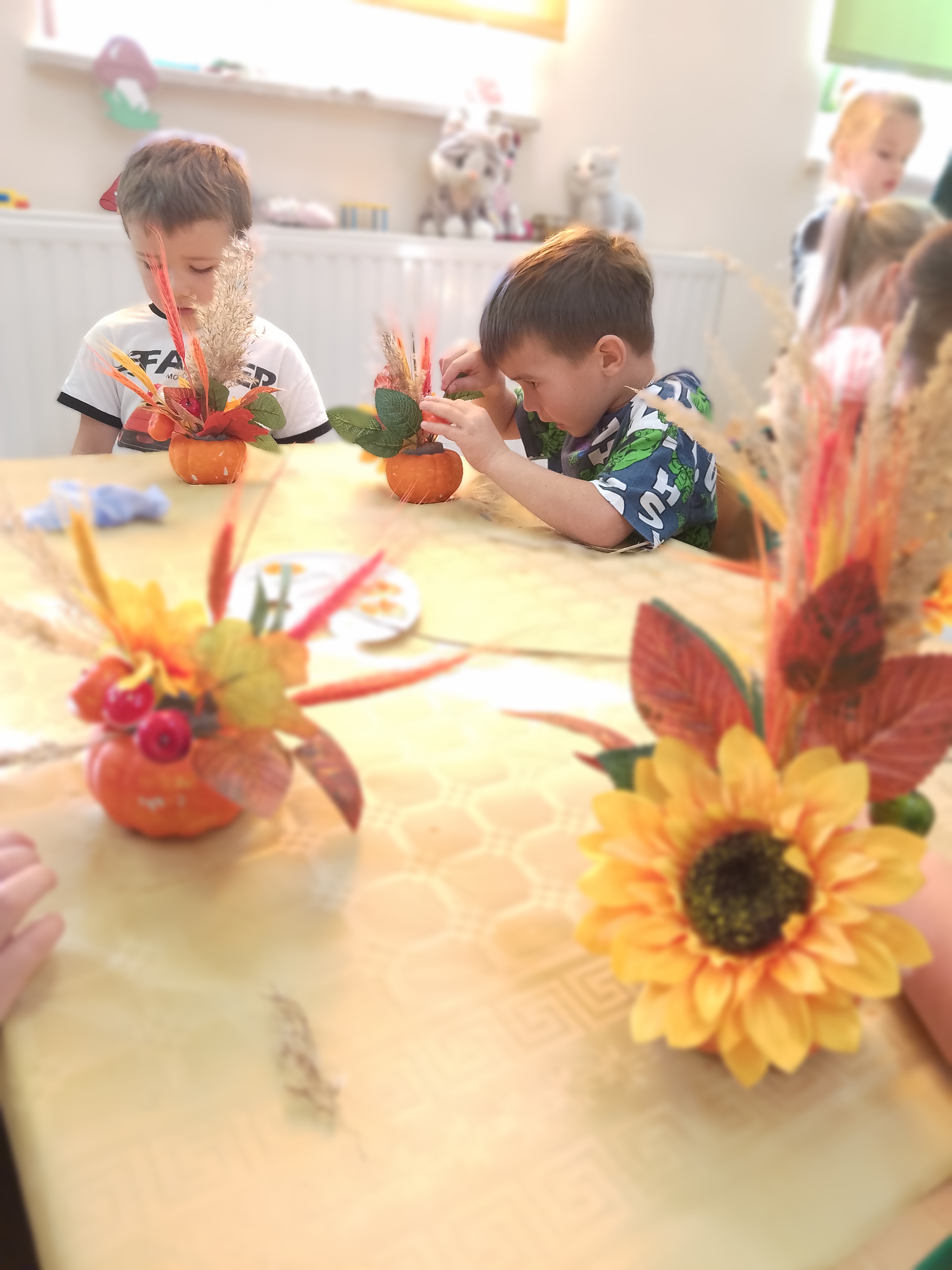 Dnia 05.11.2025 to. dzieci z grupy "Kotki" miały przyjemność wziąć udział w warsztatach wykonania kompozycji w gipsowej dyni organizowanych przez "Kreatywna warsztatownia". 5-latki miały możliwość rozwinąć swoją twórczość i kreatywność a piękne prace ozdobią wnętrza ich domów.