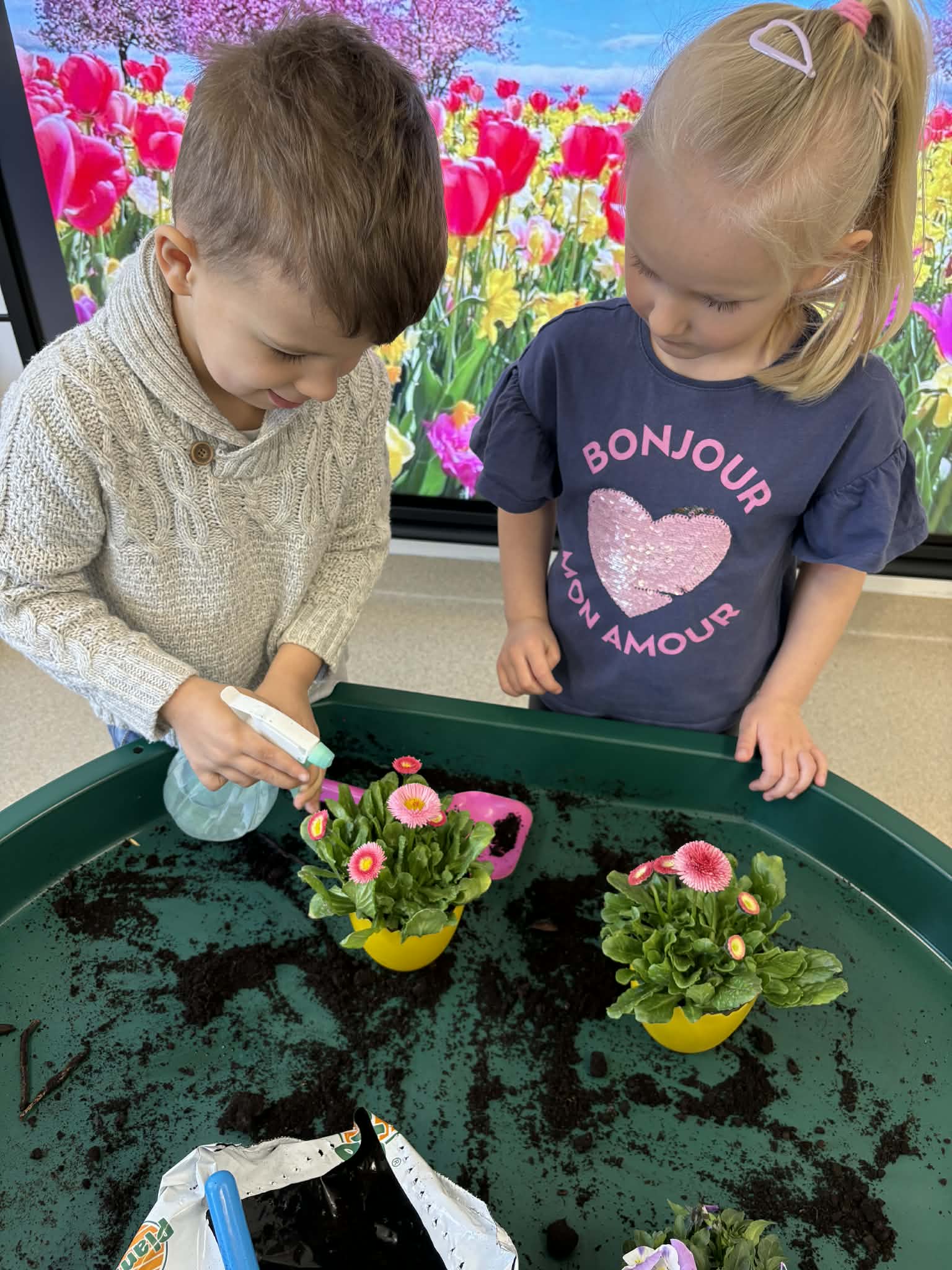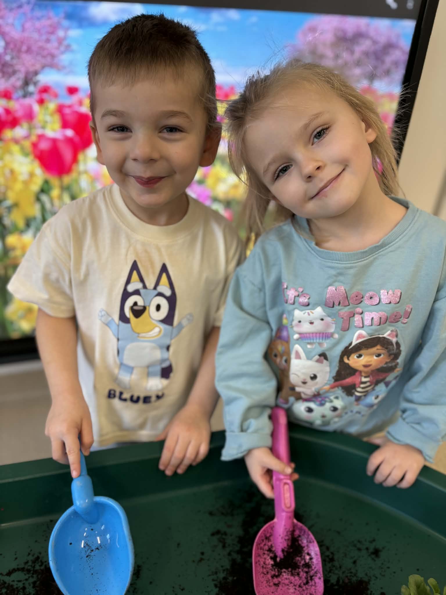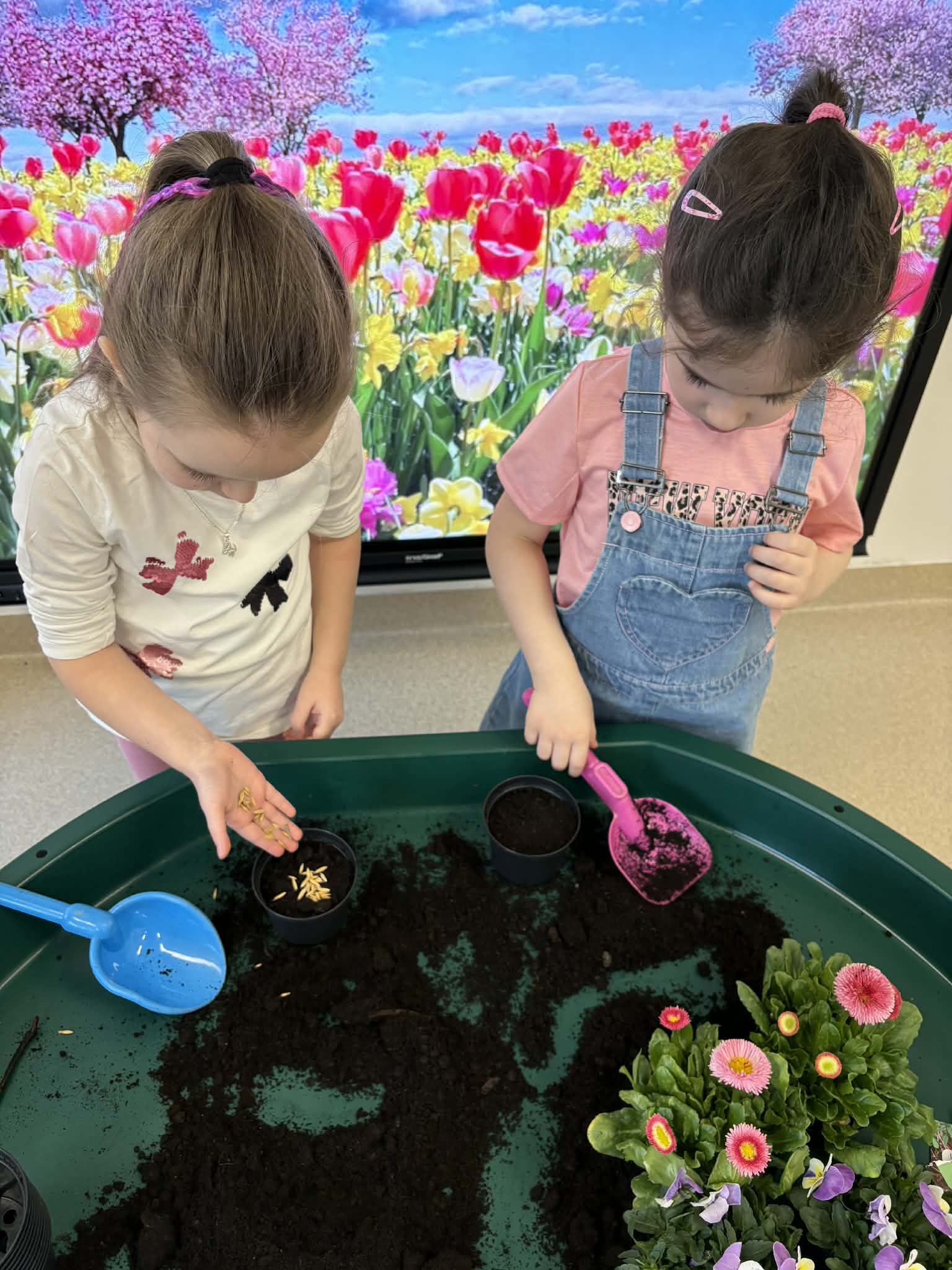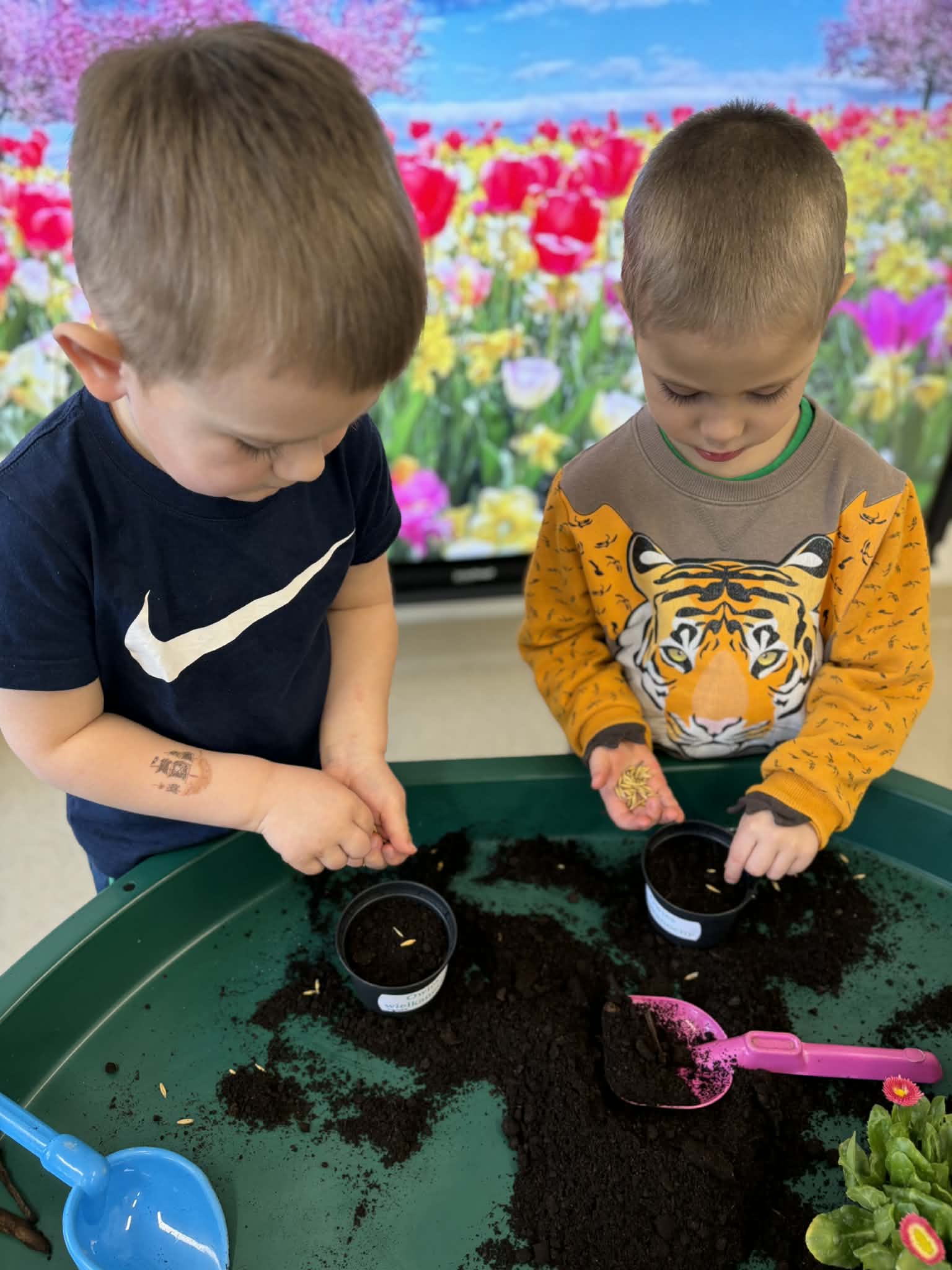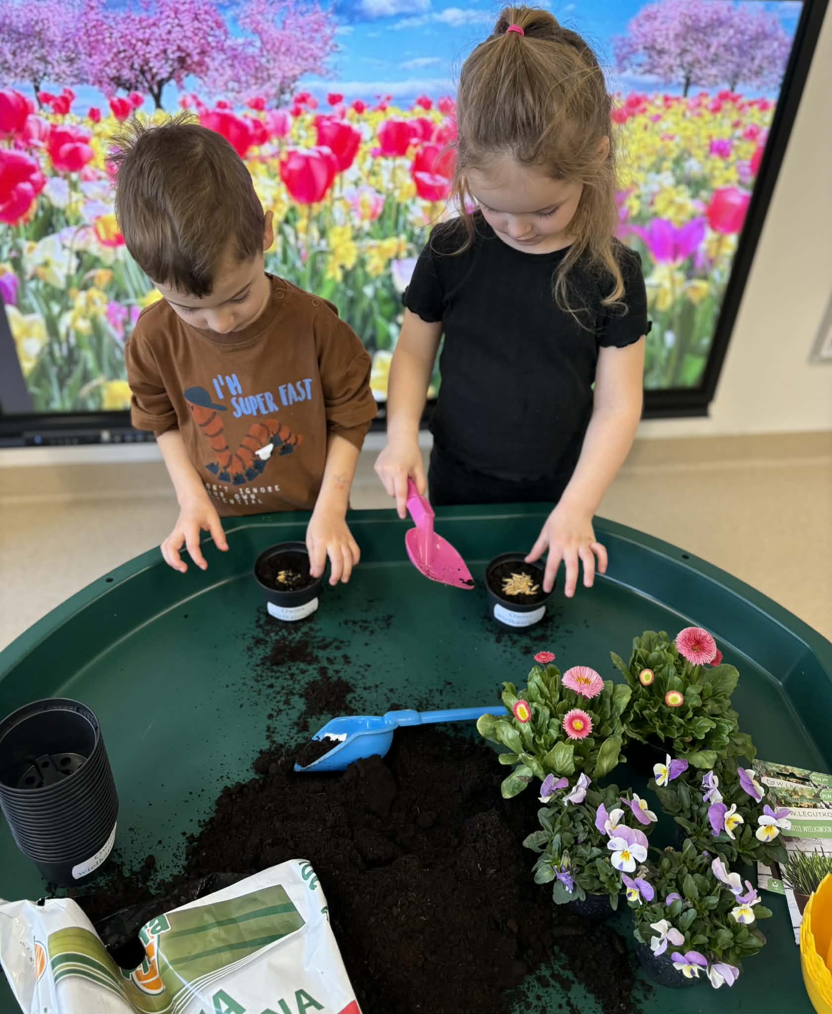 Warsztaty ogrodnicze w grupie „Smerfiki”. Ich celem było rozwijanie zainteresowań przyrodniczych, kształtowanie postawy troski o rośliny oraz doskonalenie umiejętności praktycznych. Podczas zajęć wspólnie sadziliśmy kwiatki oraz wysiewaliśmy owies wielkanocny. Dzieci miały okazję samodzielnie pracować z ziemią, poznawać etapy sadzenia roślin i obserwować, jak należy o nie dbać. Warsztaty sprawiły dużo radości i były doskonałą okazją do nauki poprzez działanie.