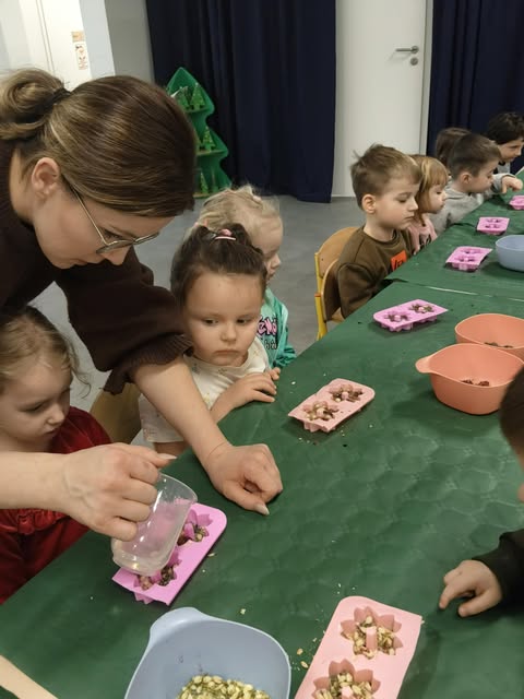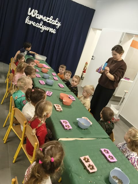 W dniu 12 stycznia 2025 odbyły się warsztaty kreatywne o tematyce mydlarskiej. Zajęcia prowadzone były w formie aktywnych działań manualnych, podczas których dzieci miały możliwość samodzielnie wykonać pachnące mydełka. Dzieci poznały różne rodzaje zapachów oraz barwników. Uczestnicy mogli samodzielnie dobierać kształty foremek, kolory zapachy oraz dodatki. Dzięki temu mogły rozwijać zmysł estetyczny oraz samodzielność. Tego dnia w całym przedszkolu, unosiła się piękna woń mydełkowych zapachów.