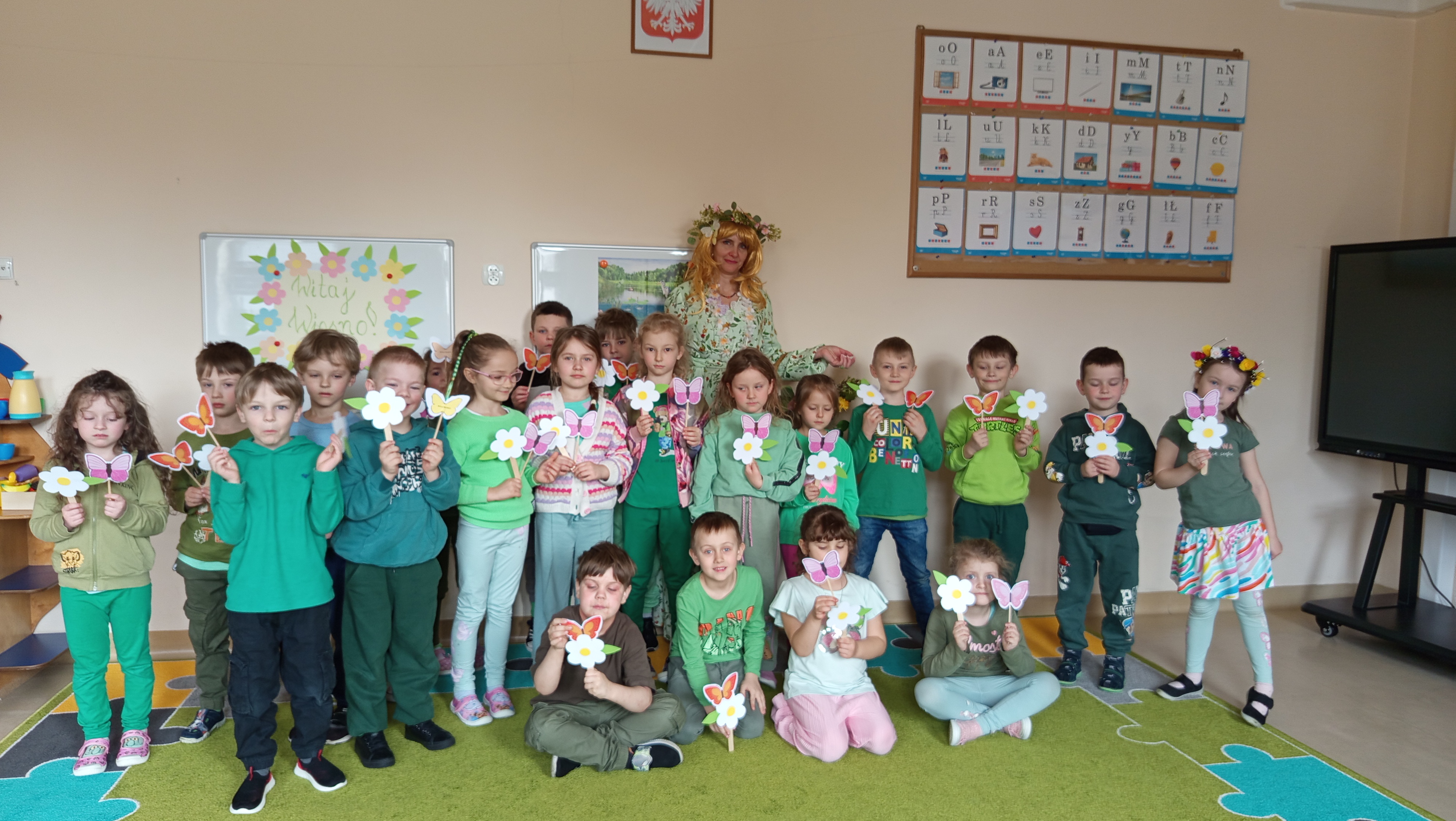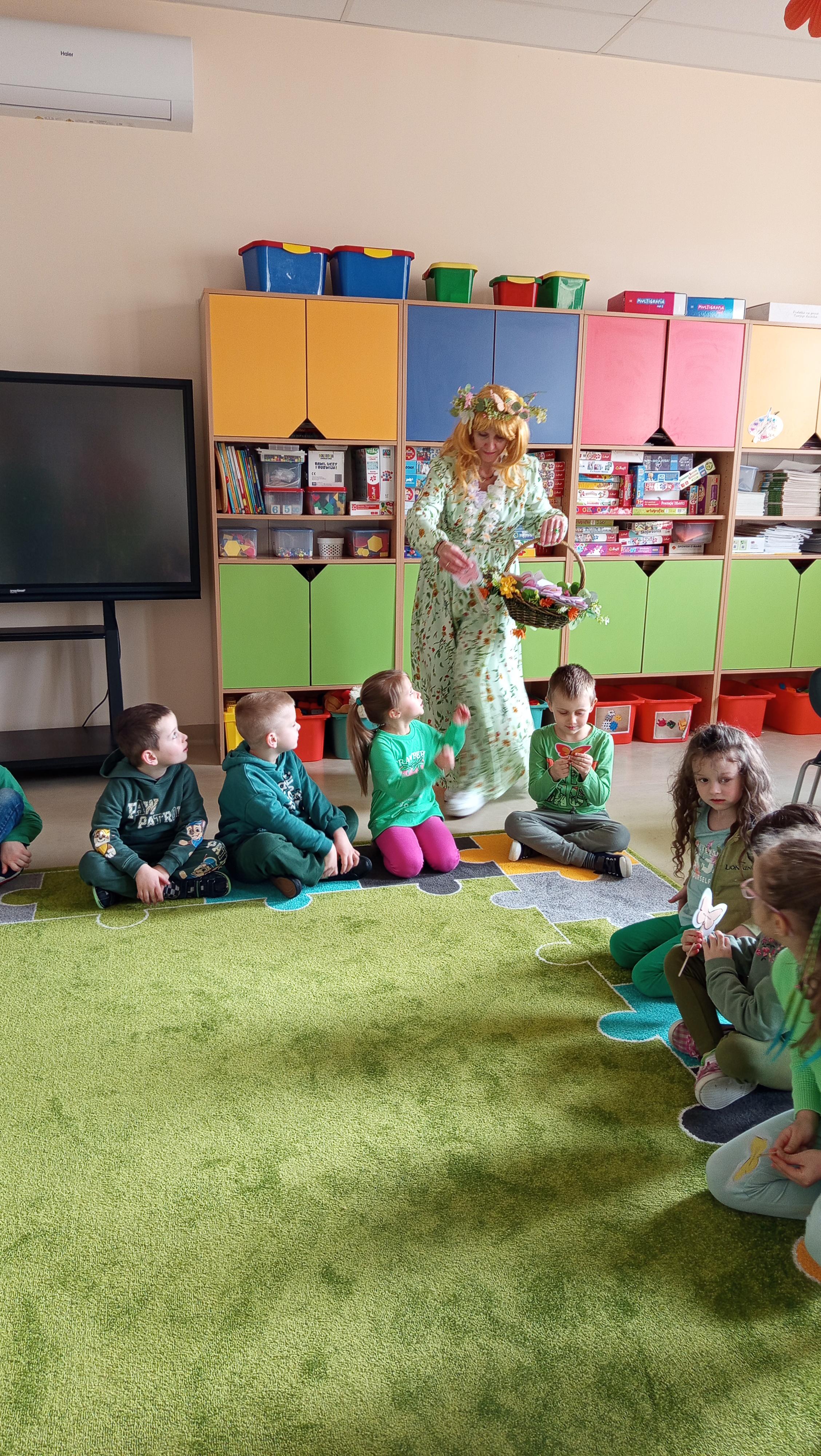 Pierwszego dnia wiosny w naszym przedszkolu pojawił się wyjątkowy gość – Pani Wiosna. Przyniosła ze sobą uśmiech, ciepło i pierwsze oznaki budzącej się do życia przyrody. Dzieci z radością powitały ją piosenką. Pani Wiosna zaprosiła wszystkich na wspólny spacer, podczas którego przedszkolaki mogły obserwować kwitnące kwiaty, słuchać śpiewu ptaków i cieszyć się piękną pogodą. To był bardzo radosny i pełen wrażeń dzień.