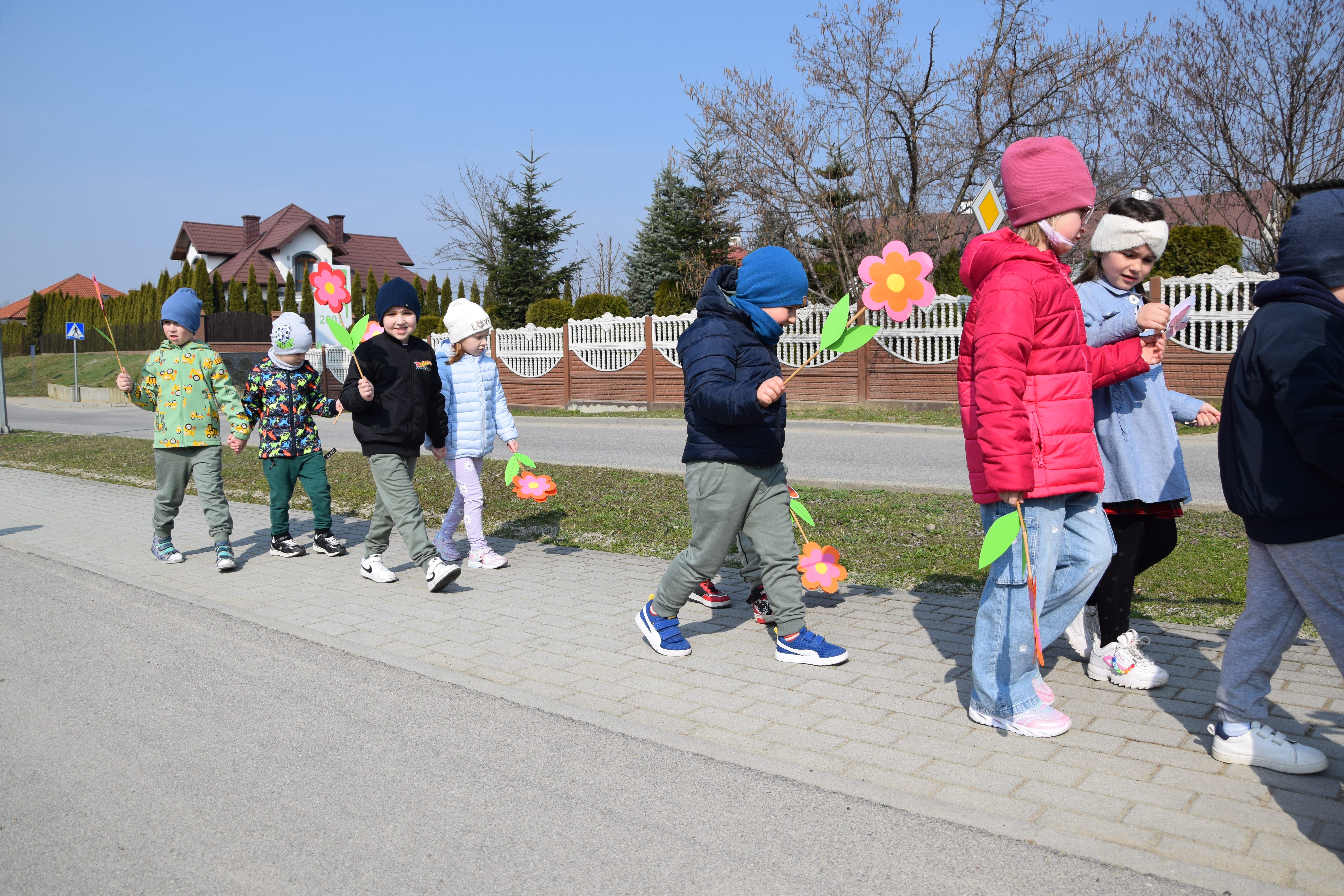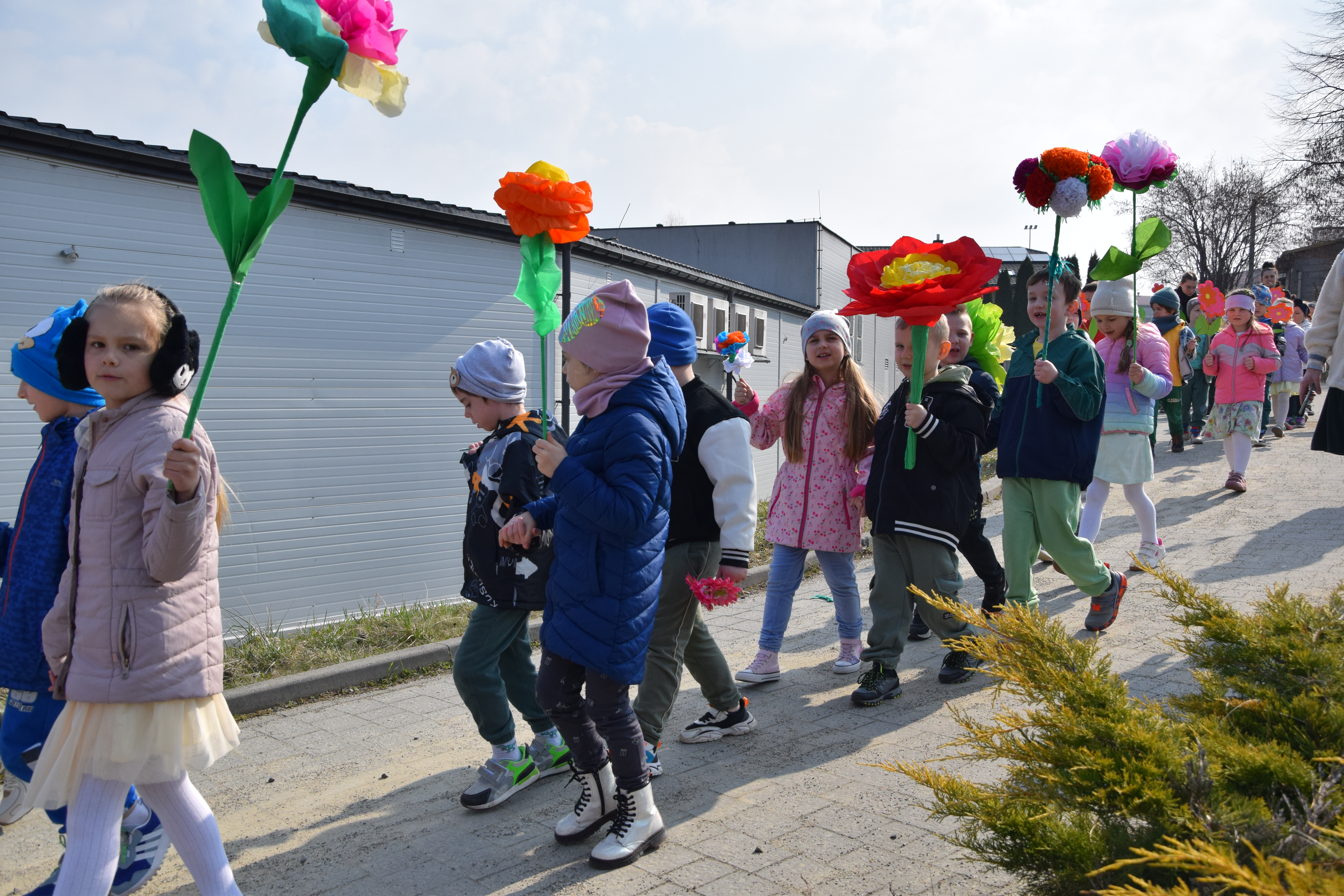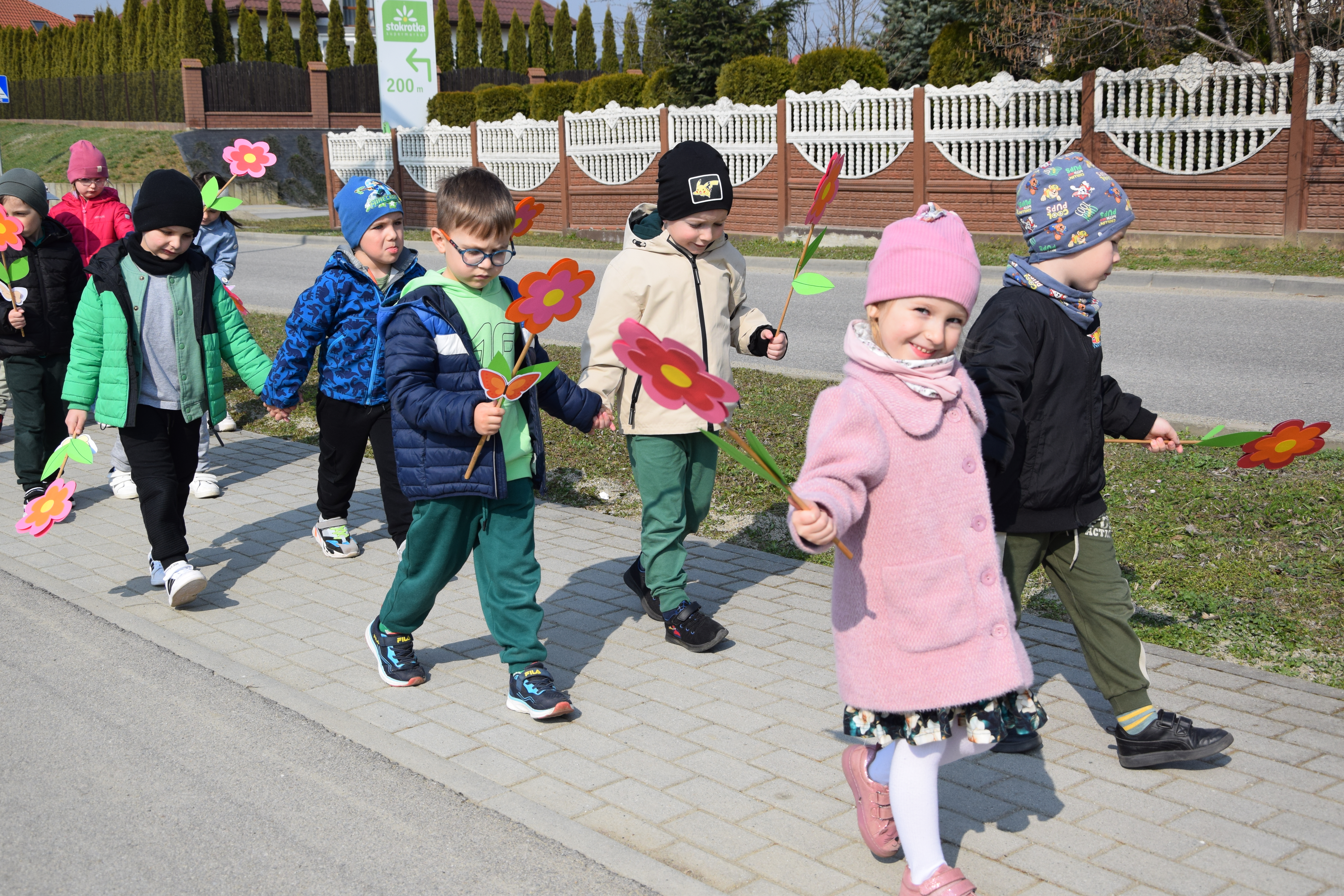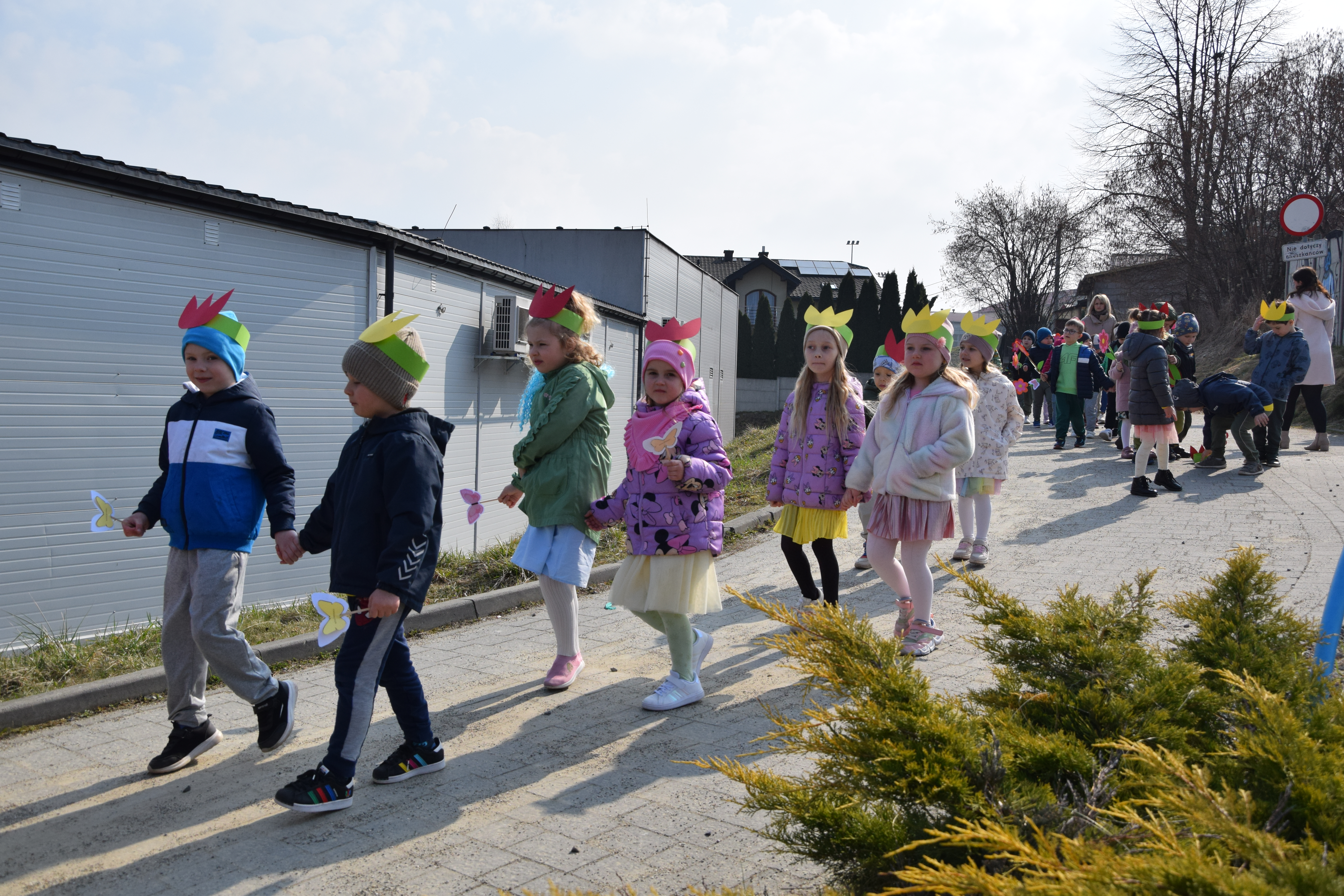 Aby ogłosić wszystkim, że prawdziwa wiosna już nadeszła udaliśmy się w przemarsz ulicami Brzostku z cudownymi wiosennymi kwiatami w dłoniach oraz ze śpiewem na ustach. Po drodze napotkaliśmy wiele wiosennych symboli jak krokusy czy nasz bocian.