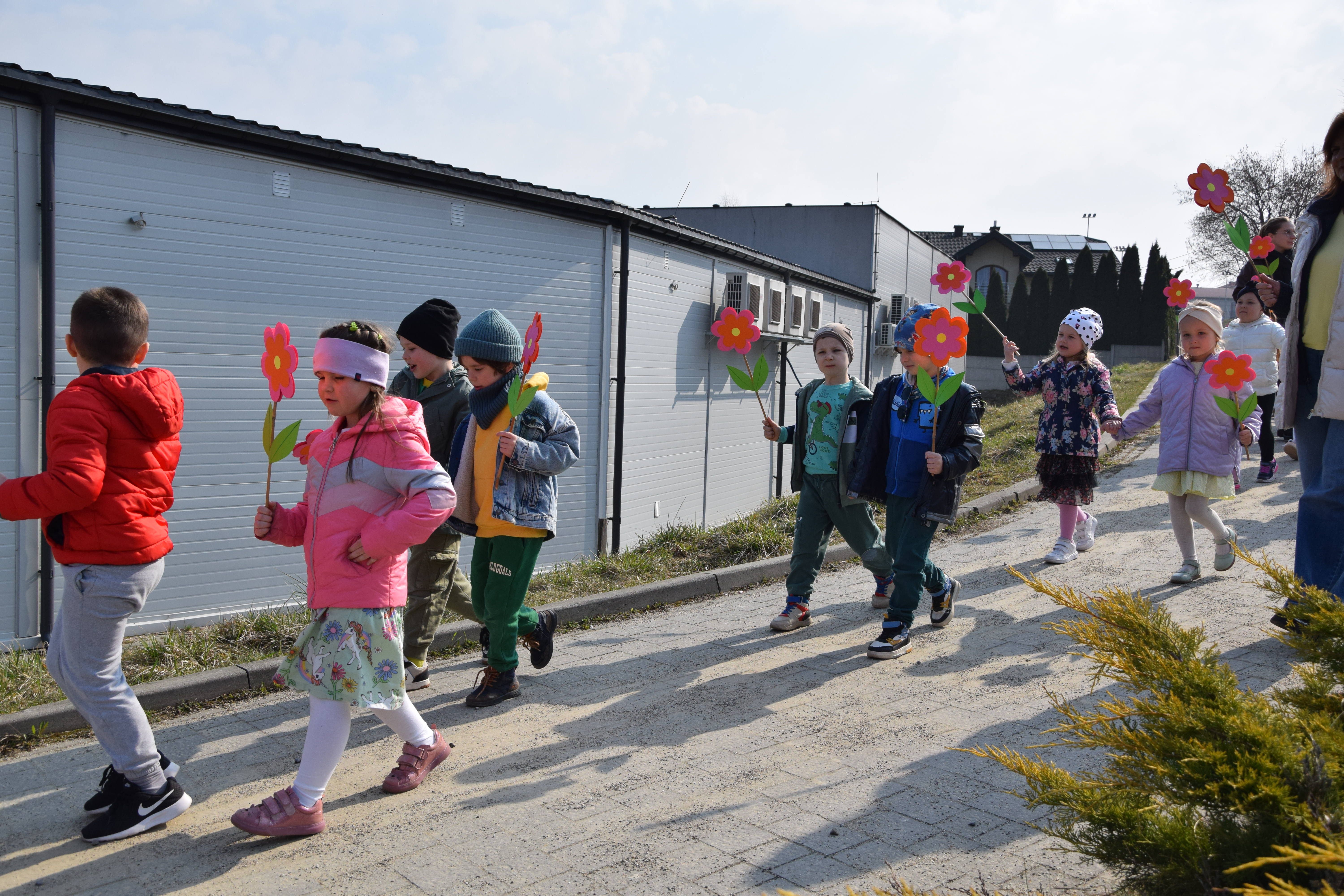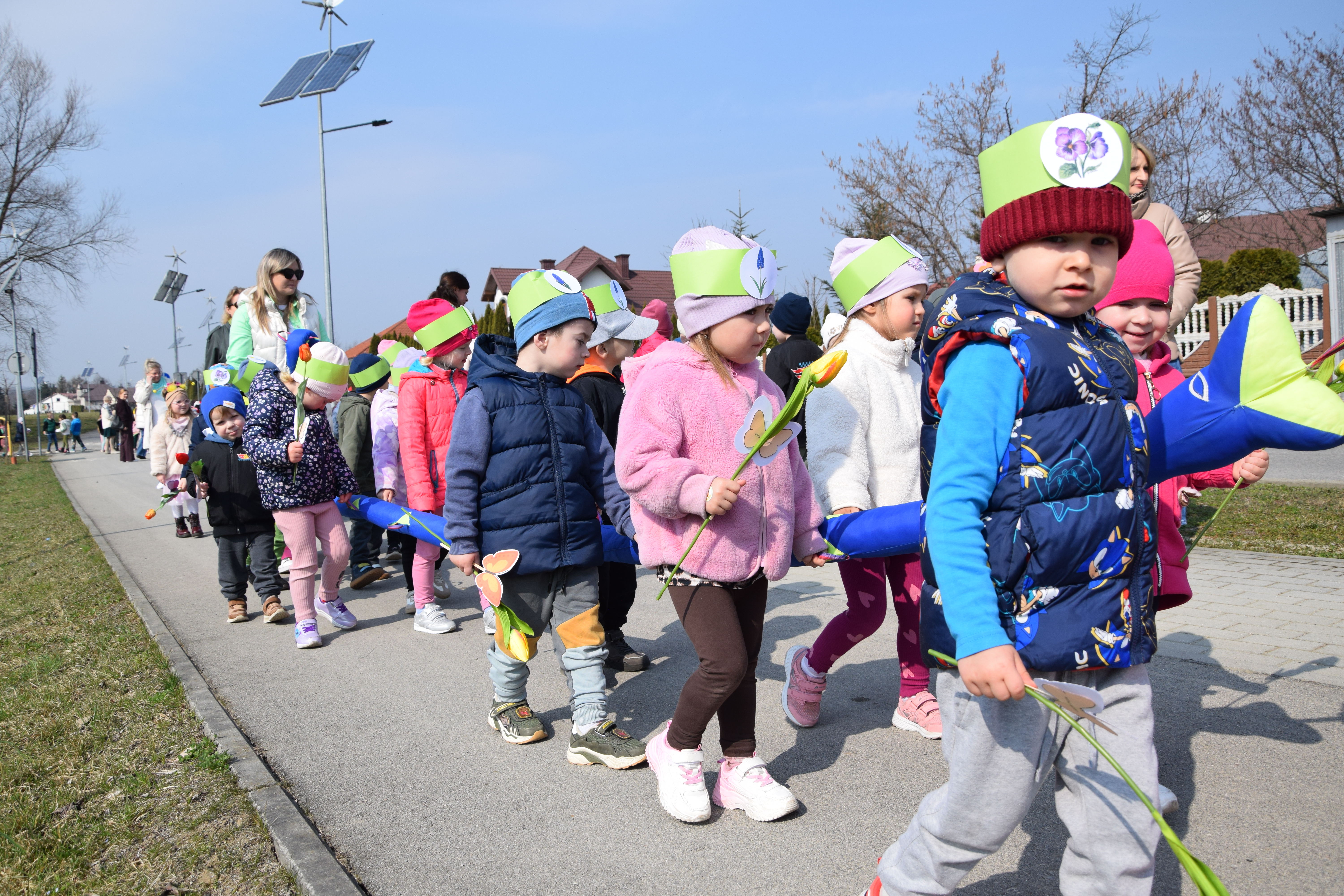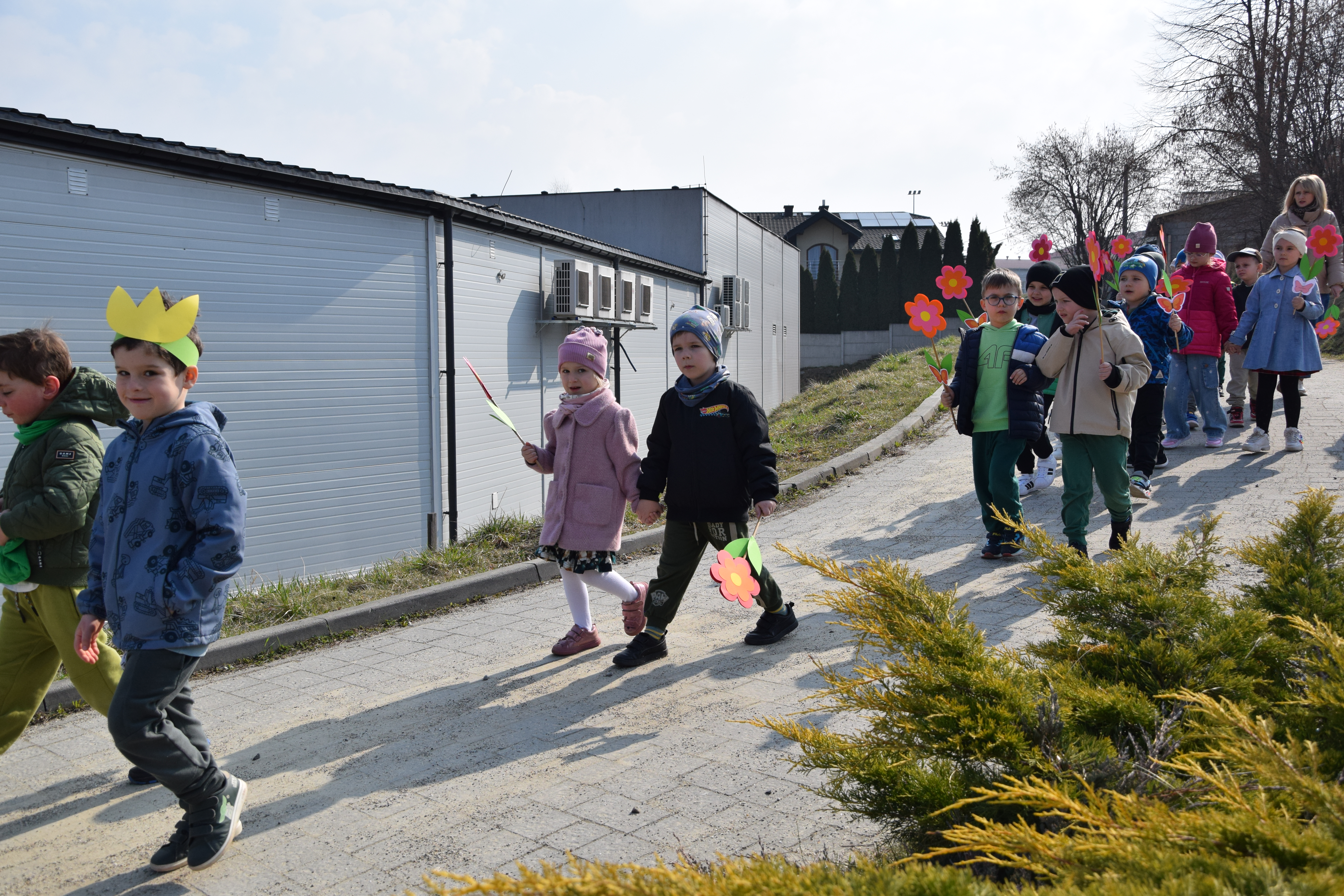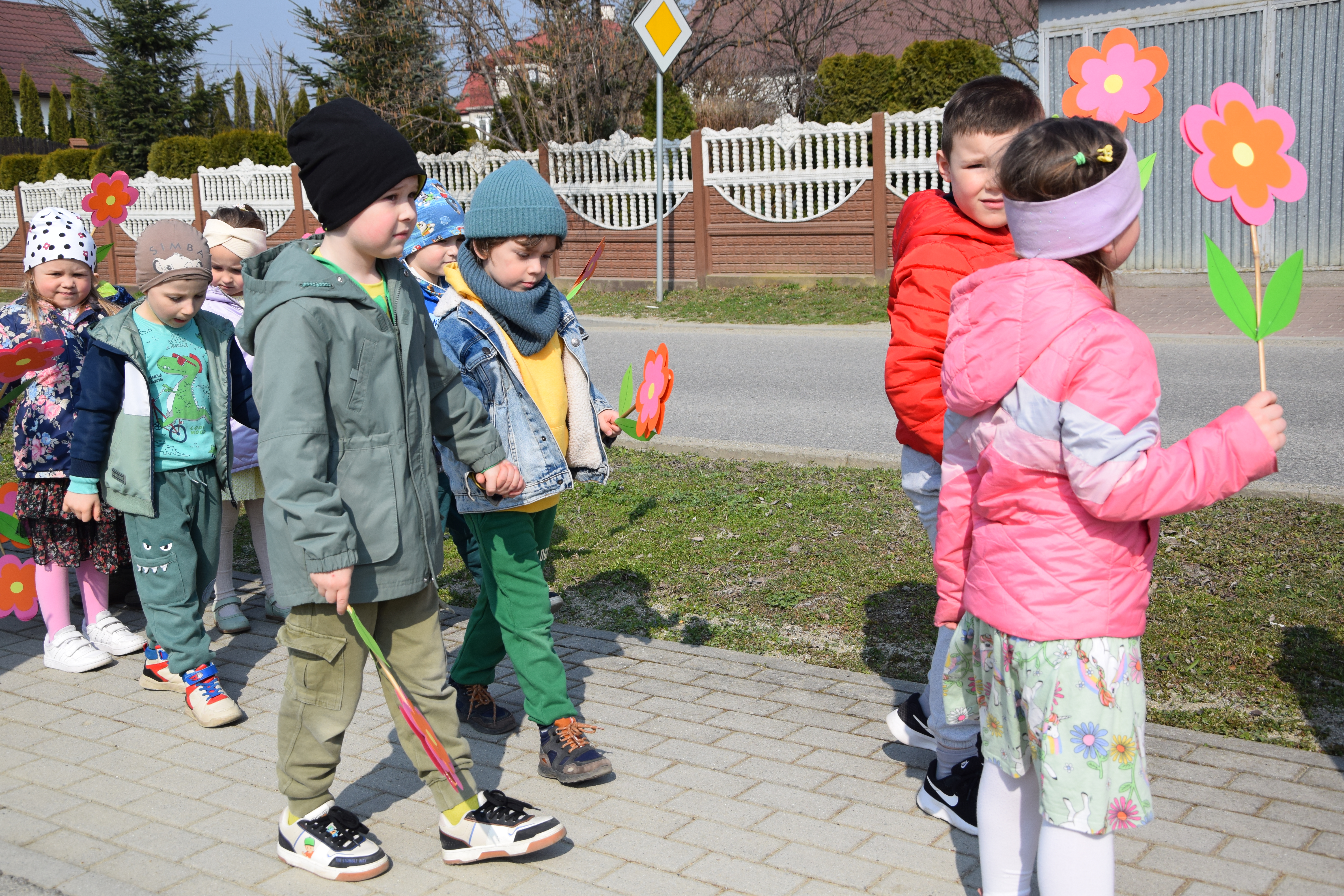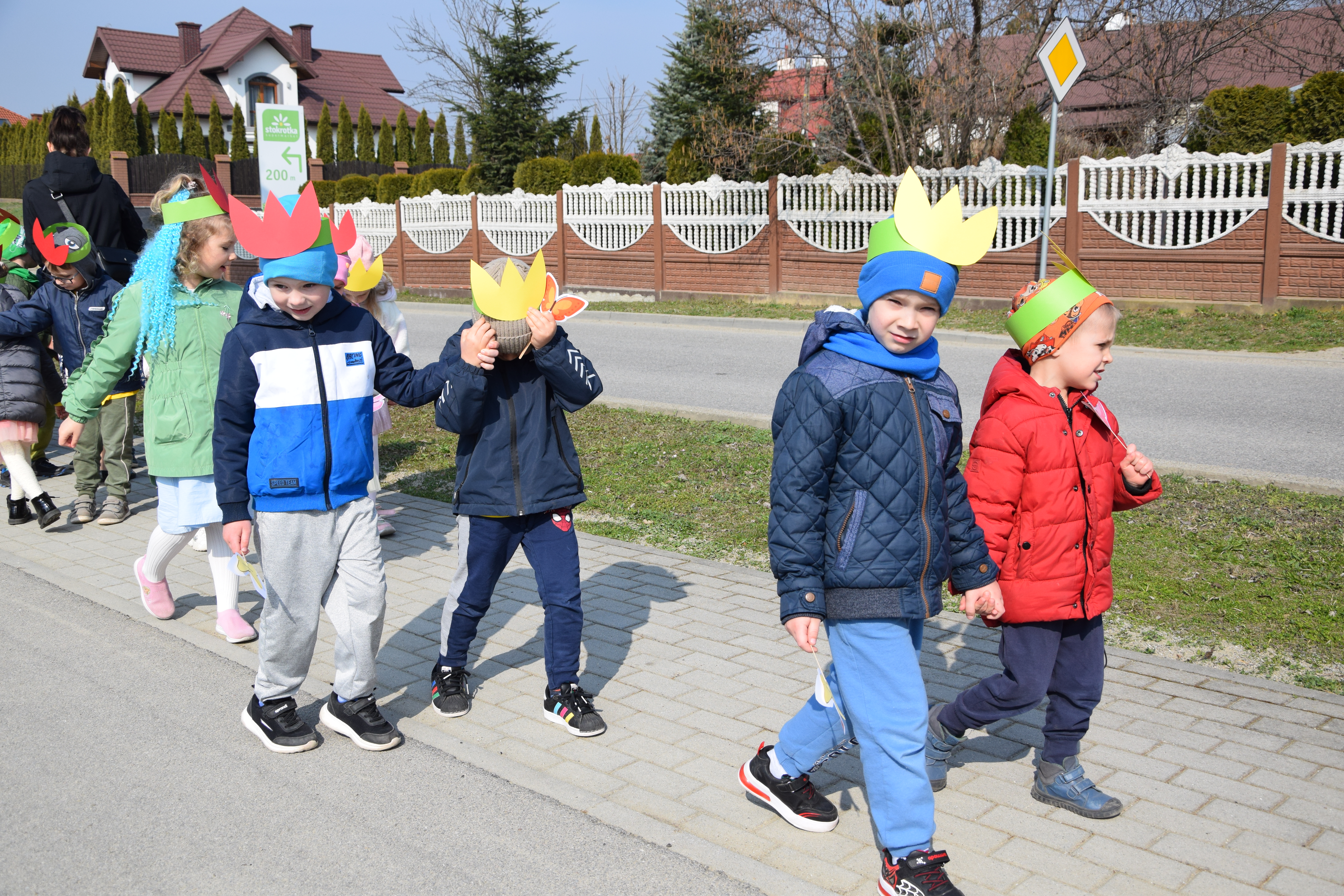 Aby ogłosić wszystkim, że prawdziwa wiosna już nadeszła udaliśmy się w przemarsz ulicami Brzostku z cudownymi wiosennymi kwiatami w dłoniach oraz ze śpiewem na ustach. Po drodze napotkaliśmy wiele wiosennych symboli jak krokusy czy nasz bocian.