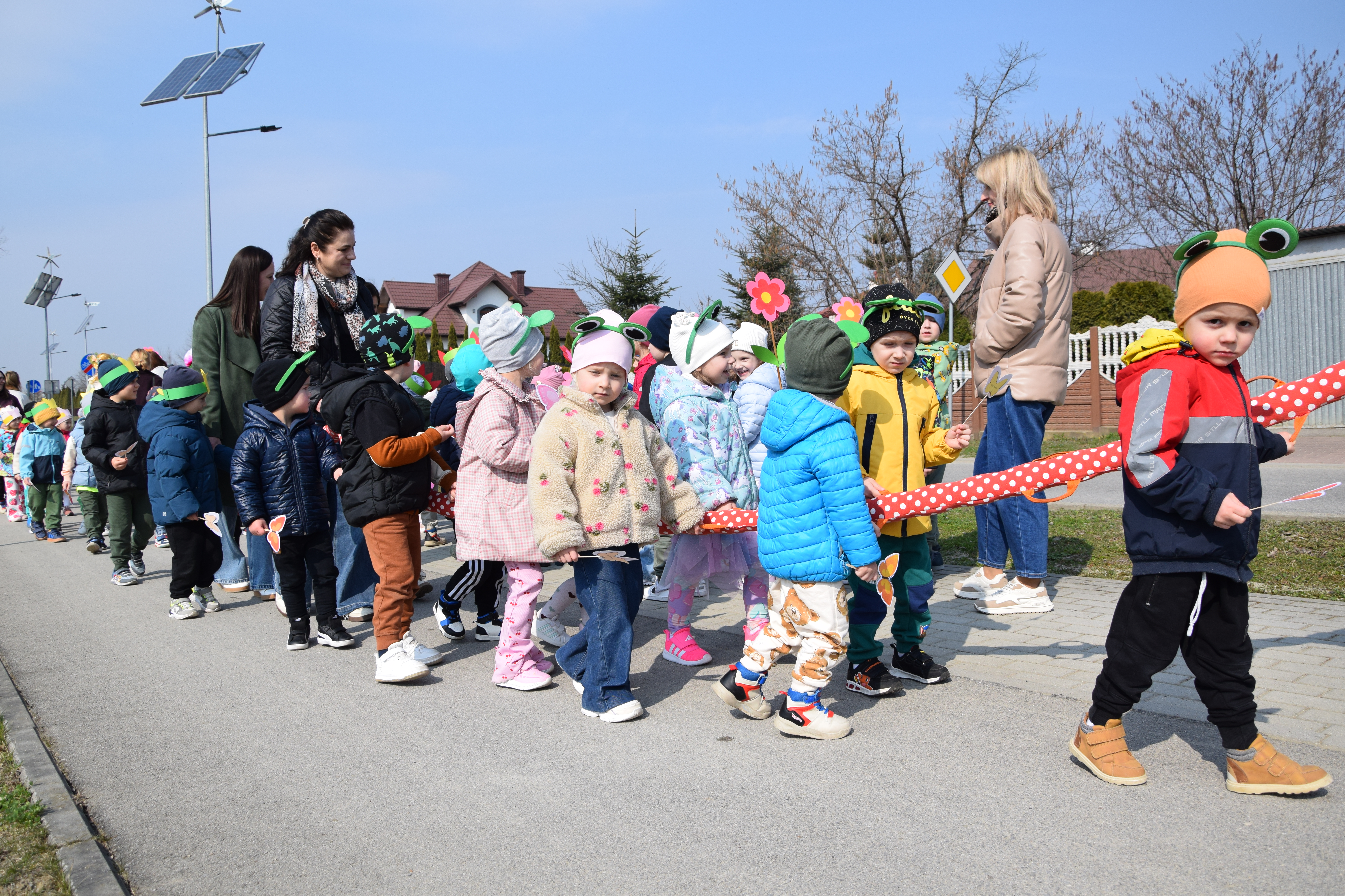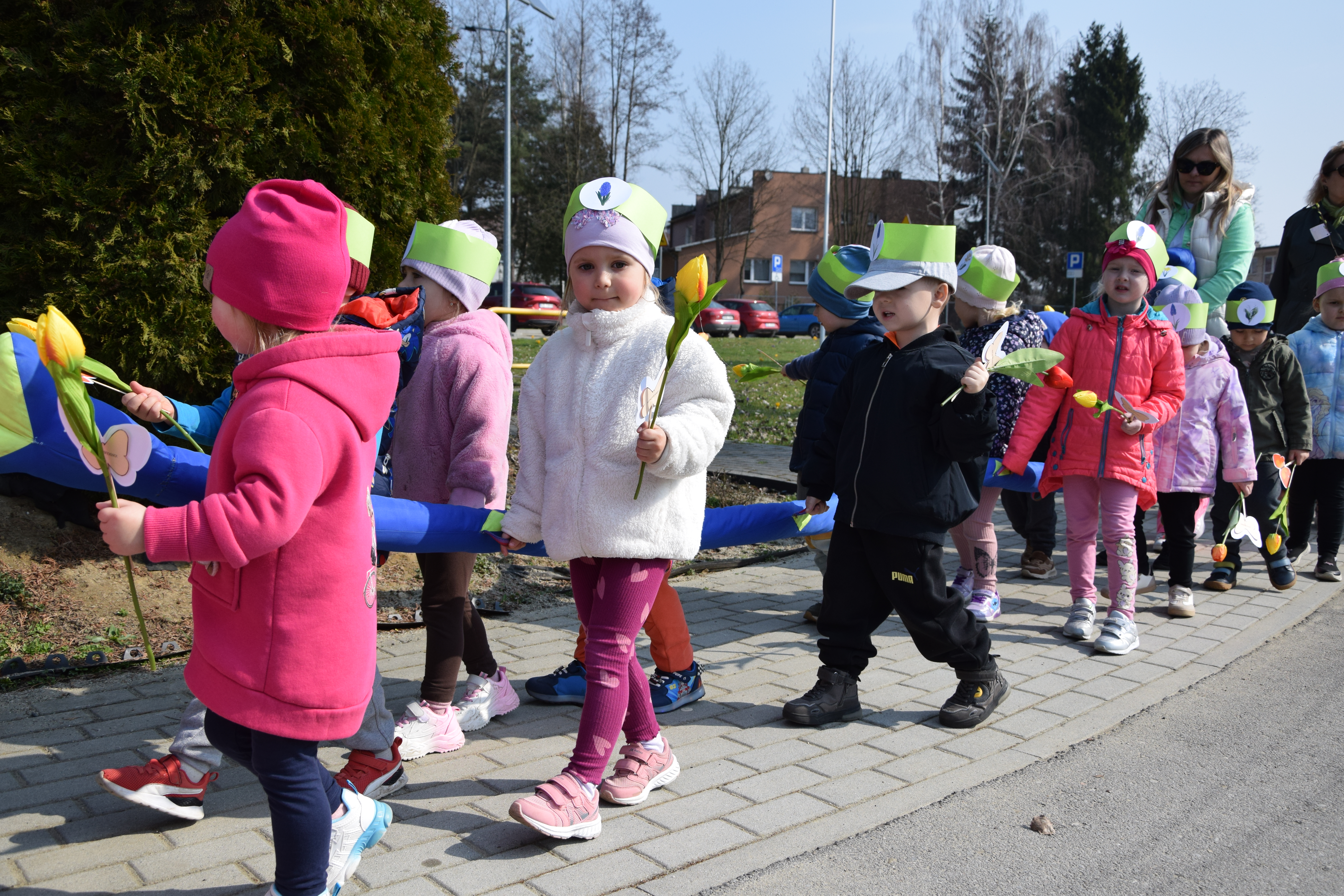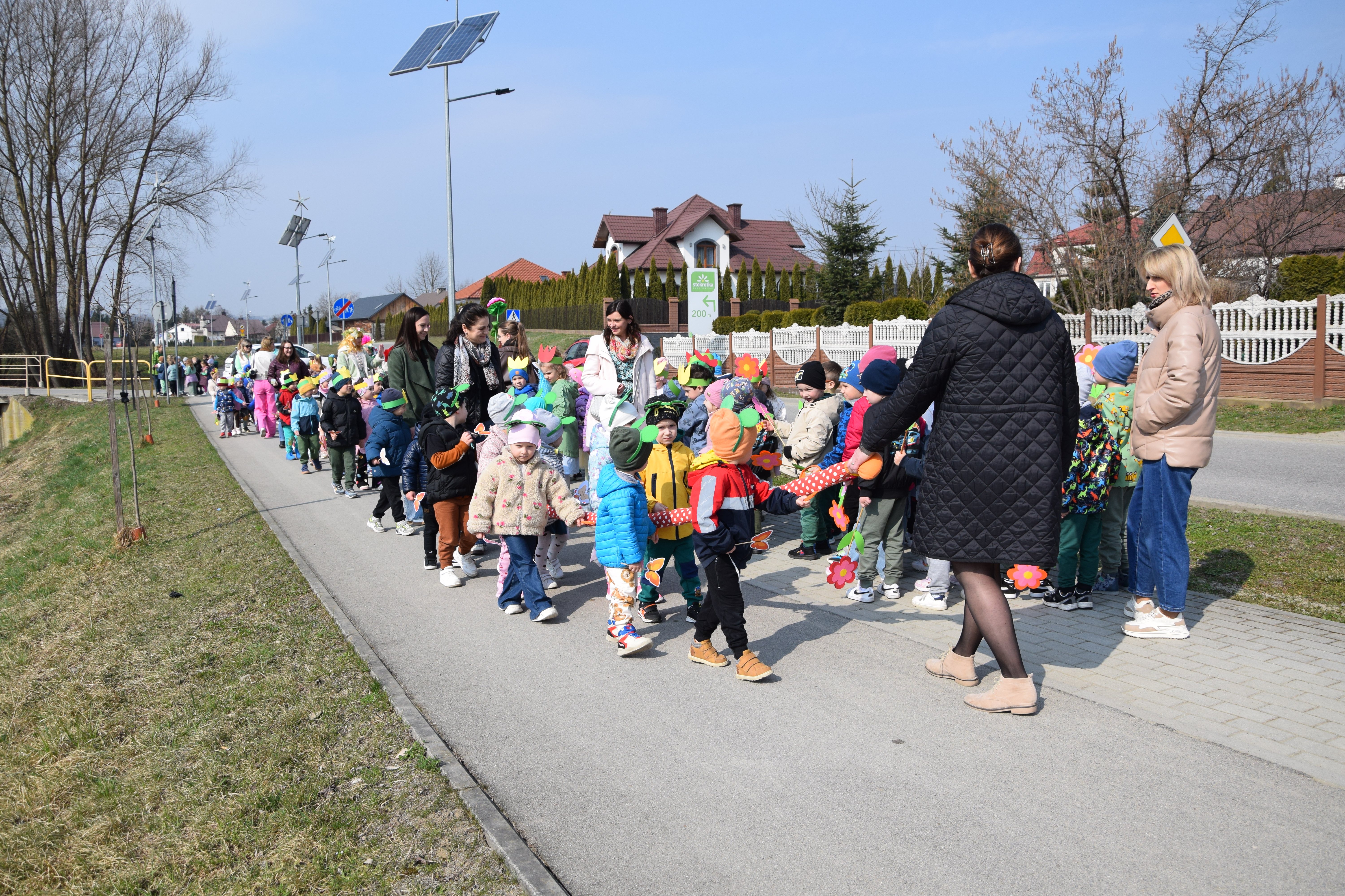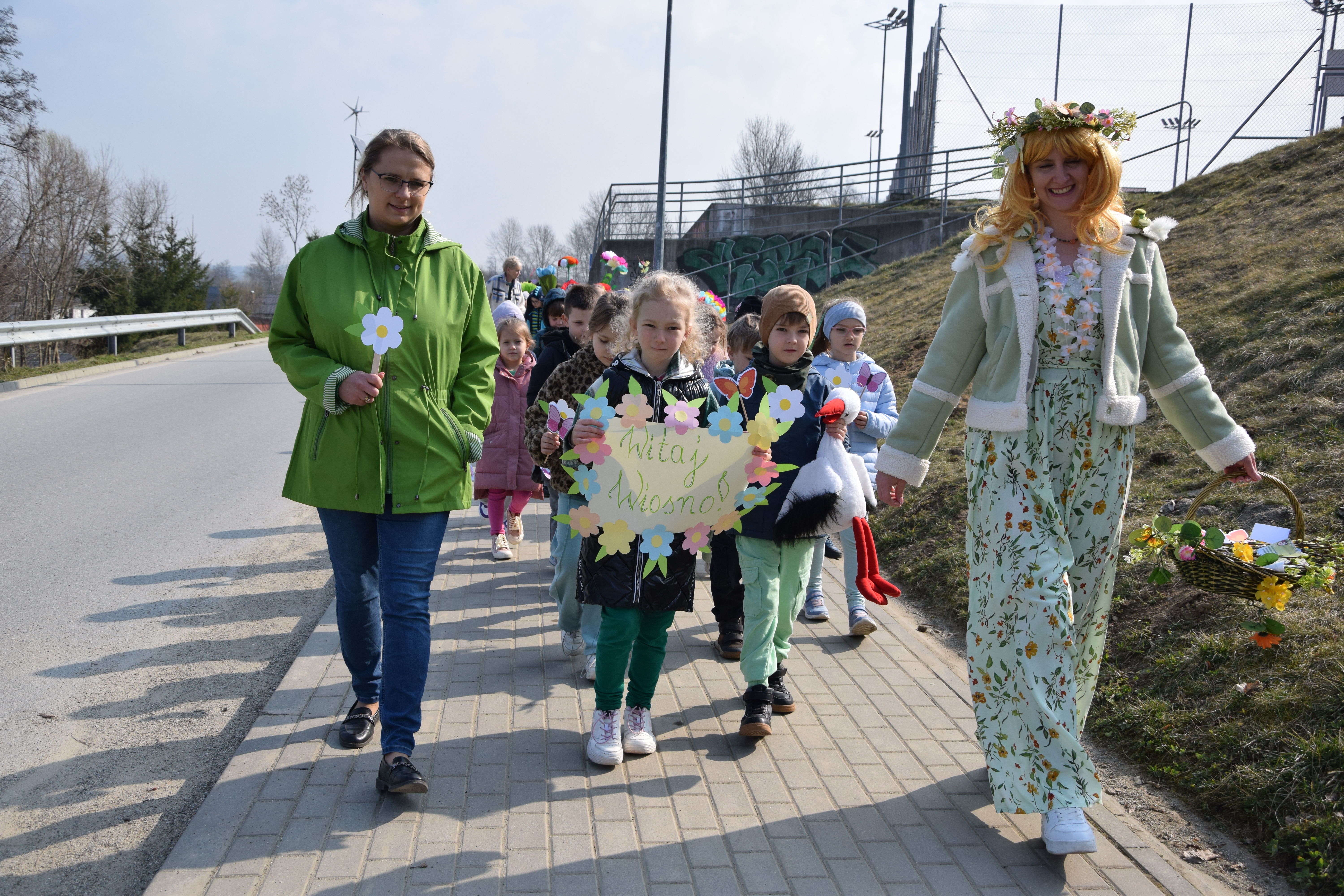 Aby ogłosić wszystkim, że prawdziwa wiosna już nadeszła udaliśmy się w przemarsz ulicami Brzostku z cudownymi wiosennymi kwiatami w dłoniach oraz ze śpiewem na ustach. Po drodze napotkaliśmy wiele wiosennych symboli jak krokusy czy nasz bocian.