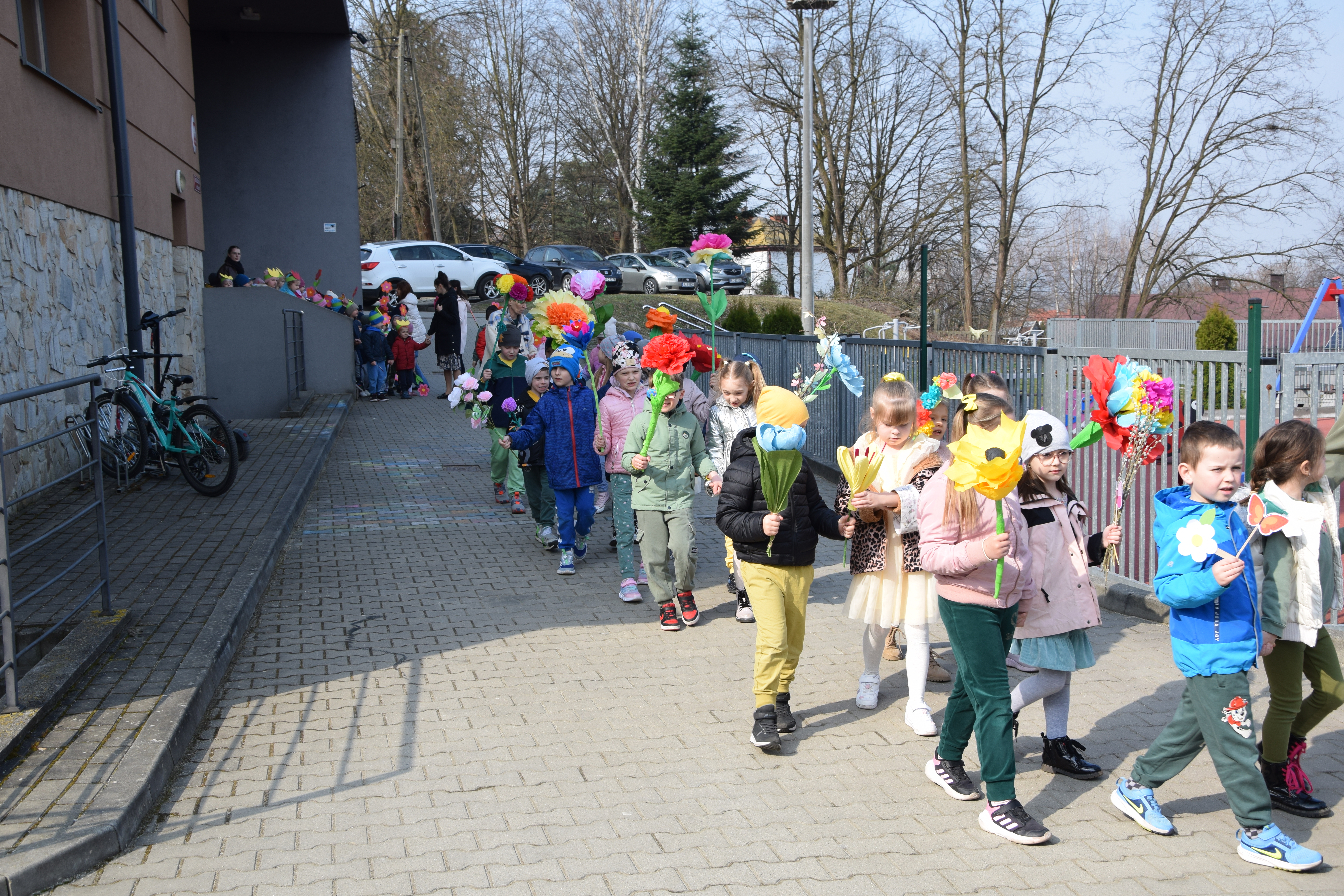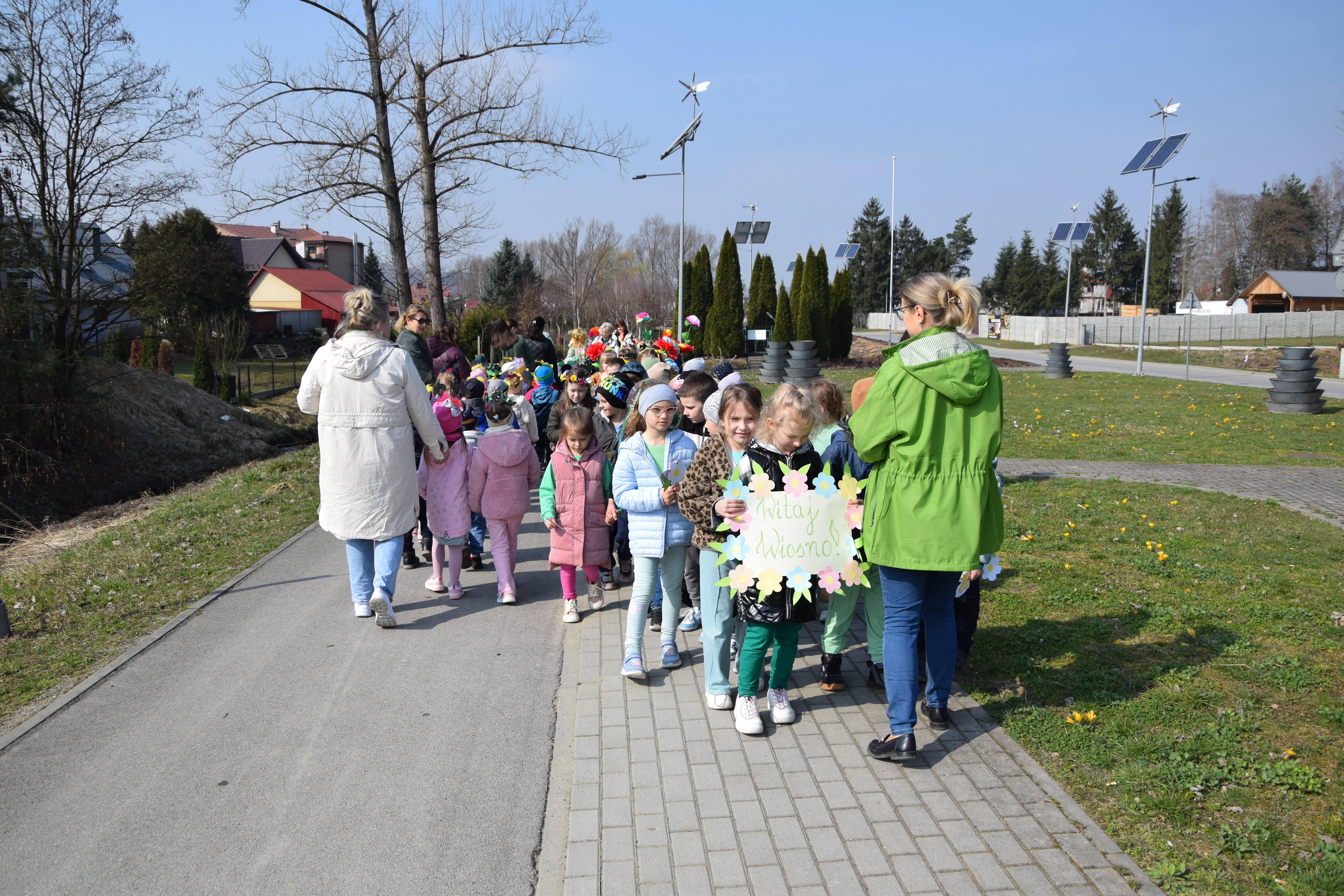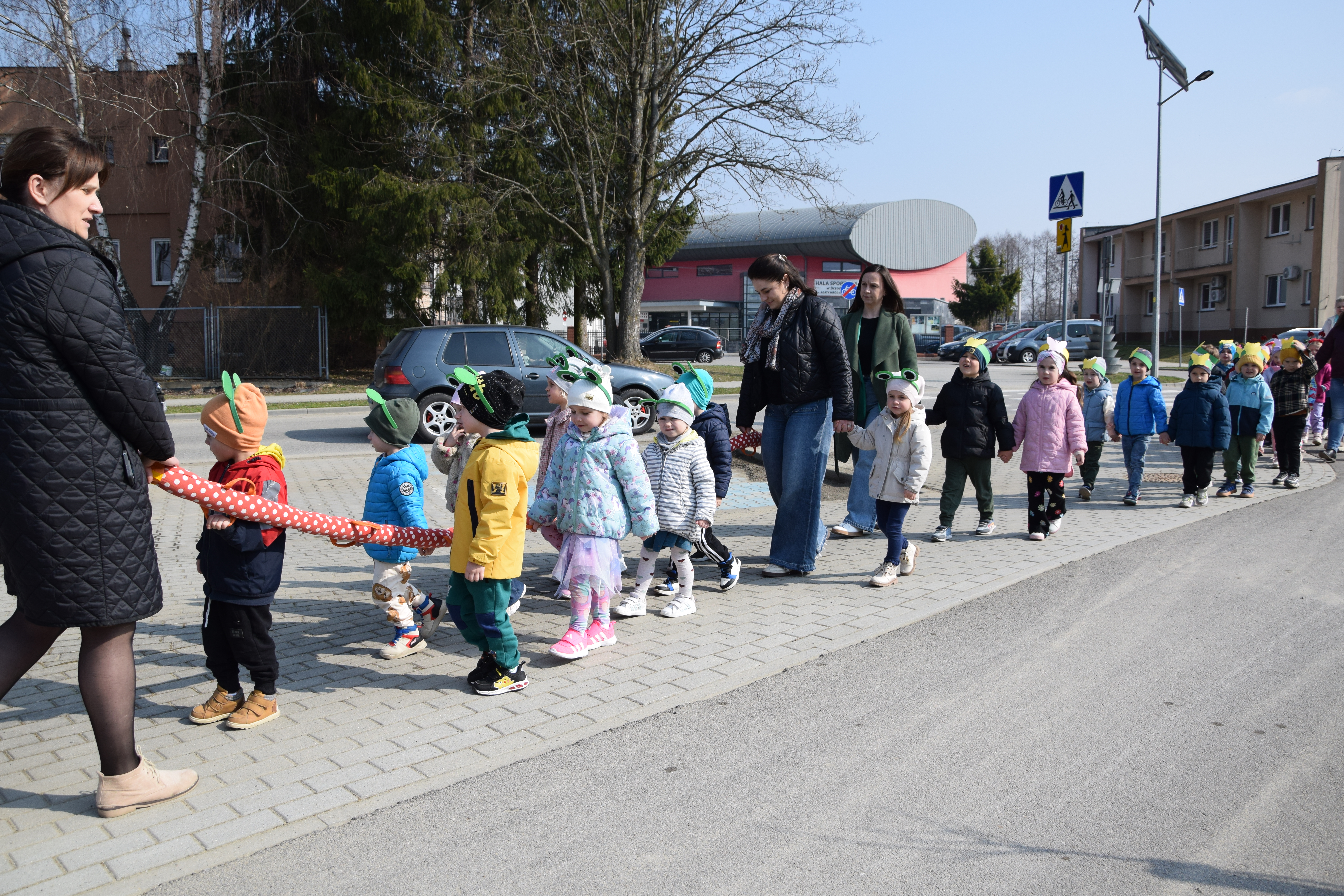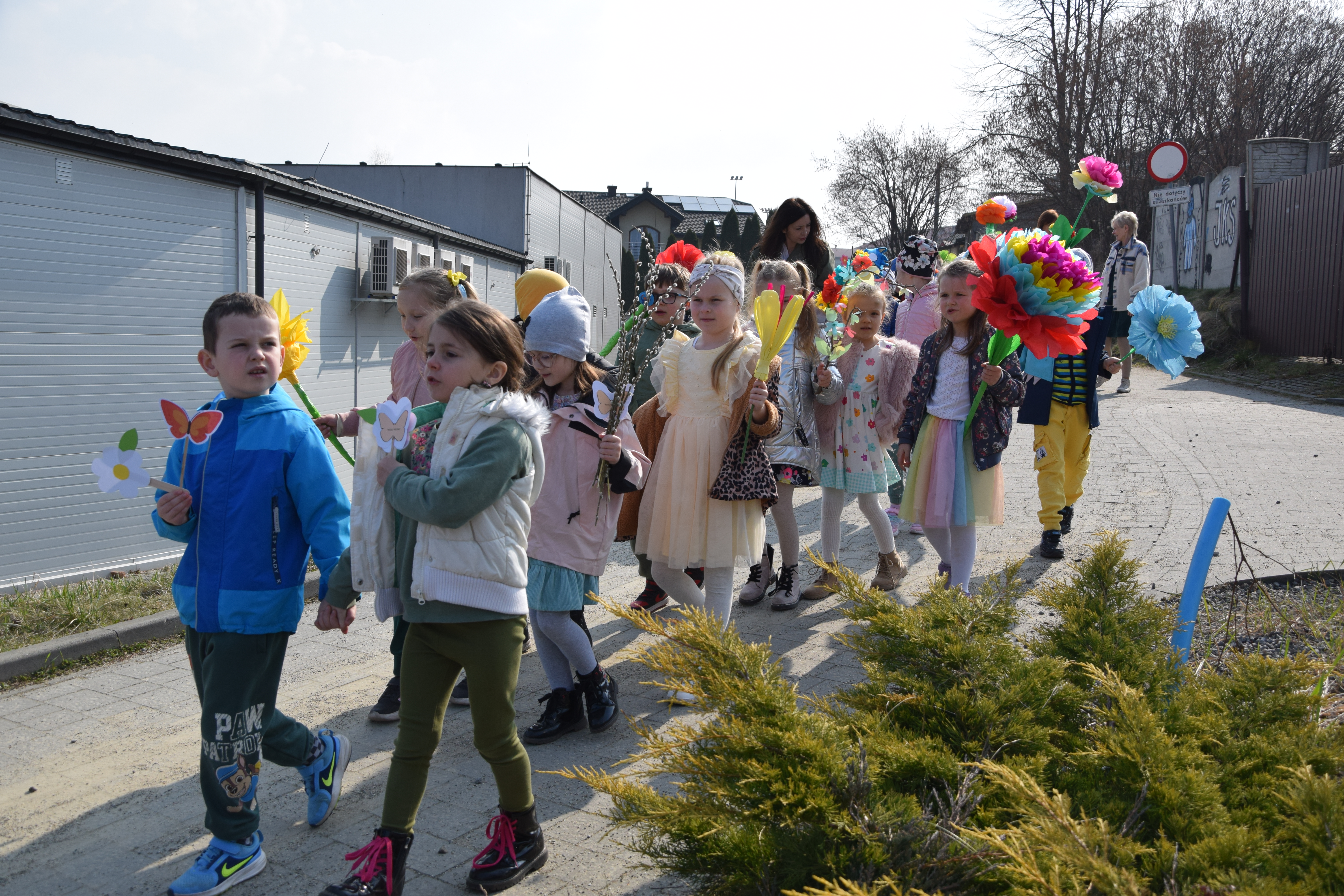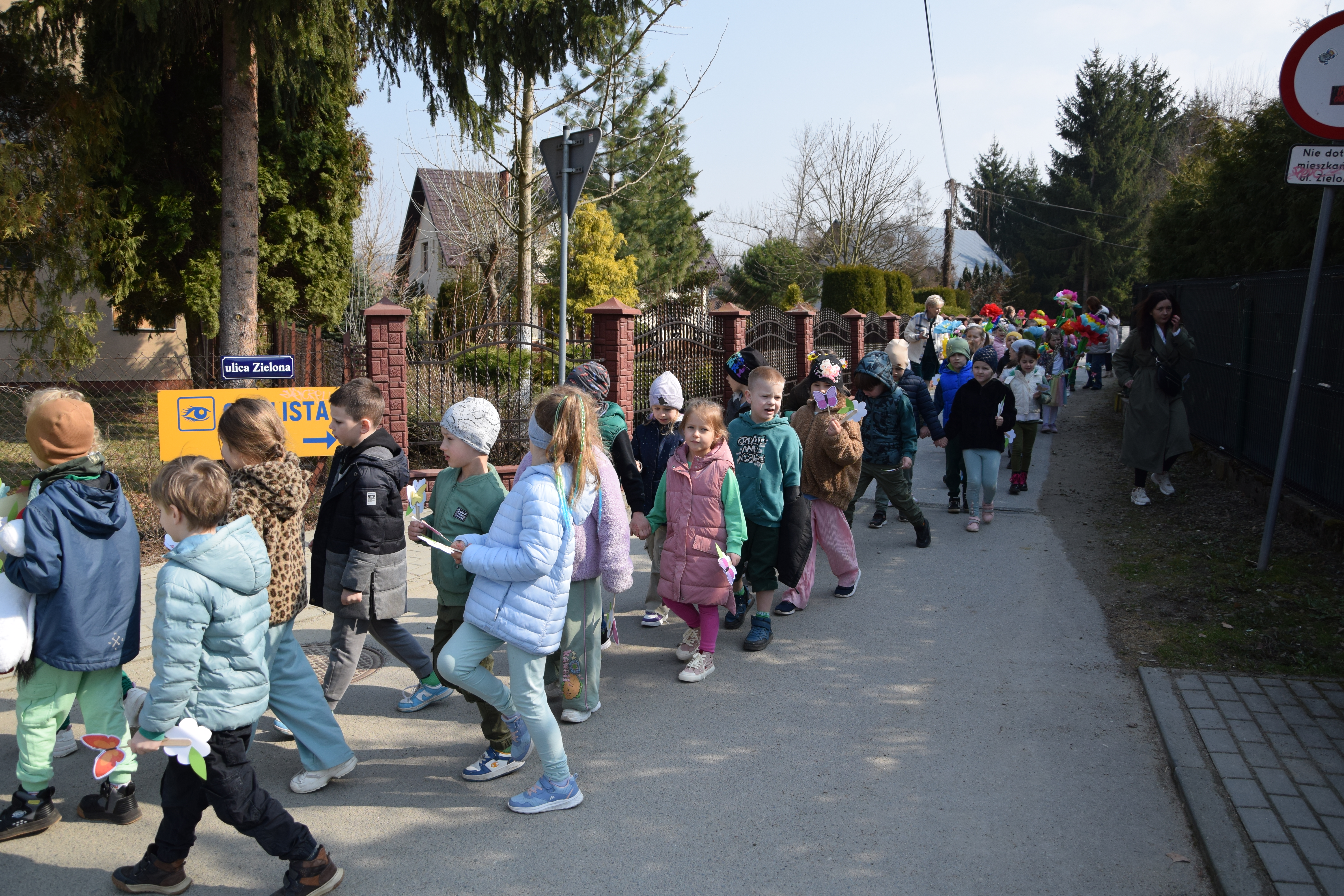 Aby ogłosić wszystkim, że prawdziwa wiosna już nadeszła udaliśmy się w przemarsz ulicami Brzostku z cudownymi wiosennymi kwiatami w dłoniach oraz ze śpiewem na ustach. Po drodze napotkaliśmy wiele wiosennych symboli jak krokusy czy nasz bocian.
