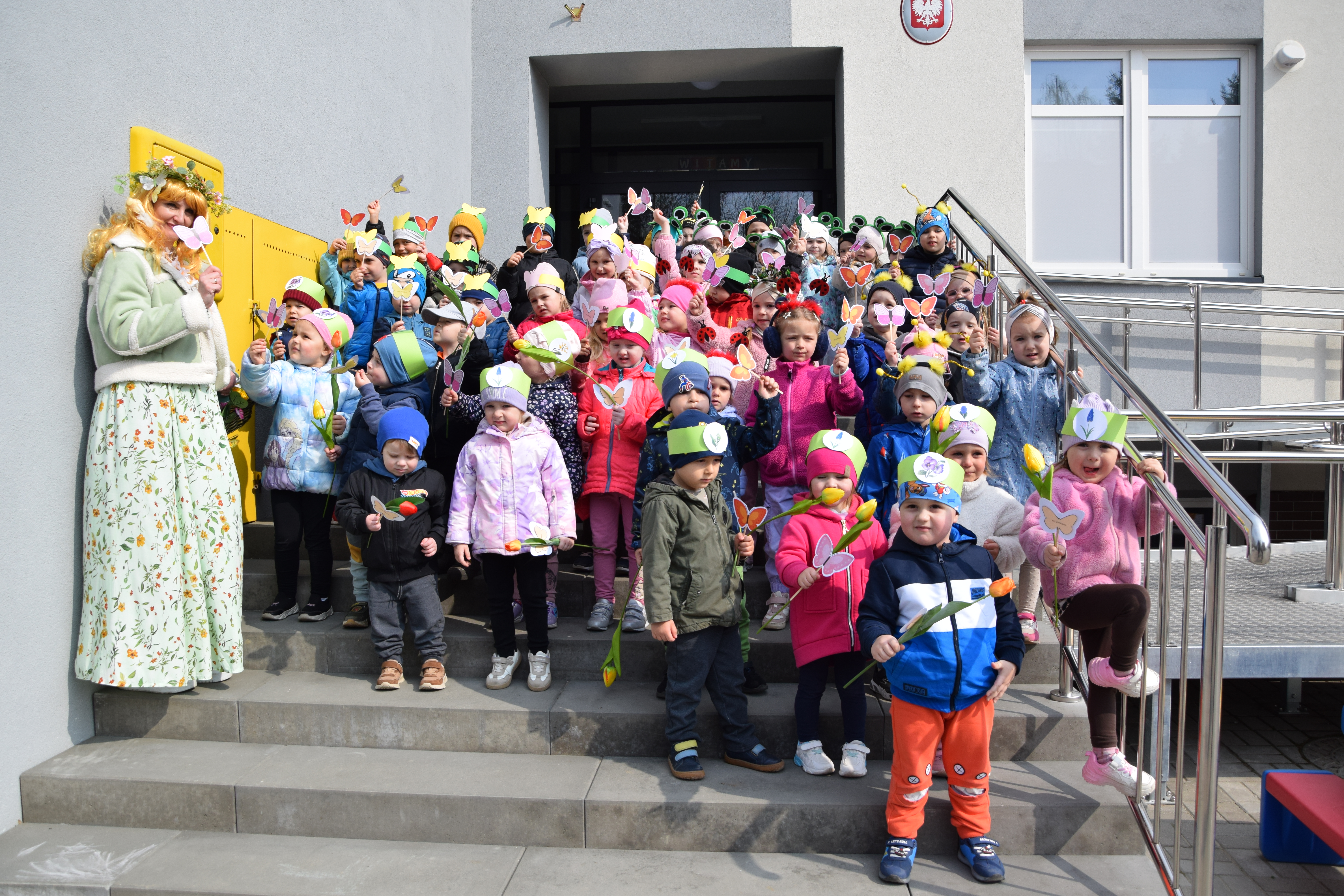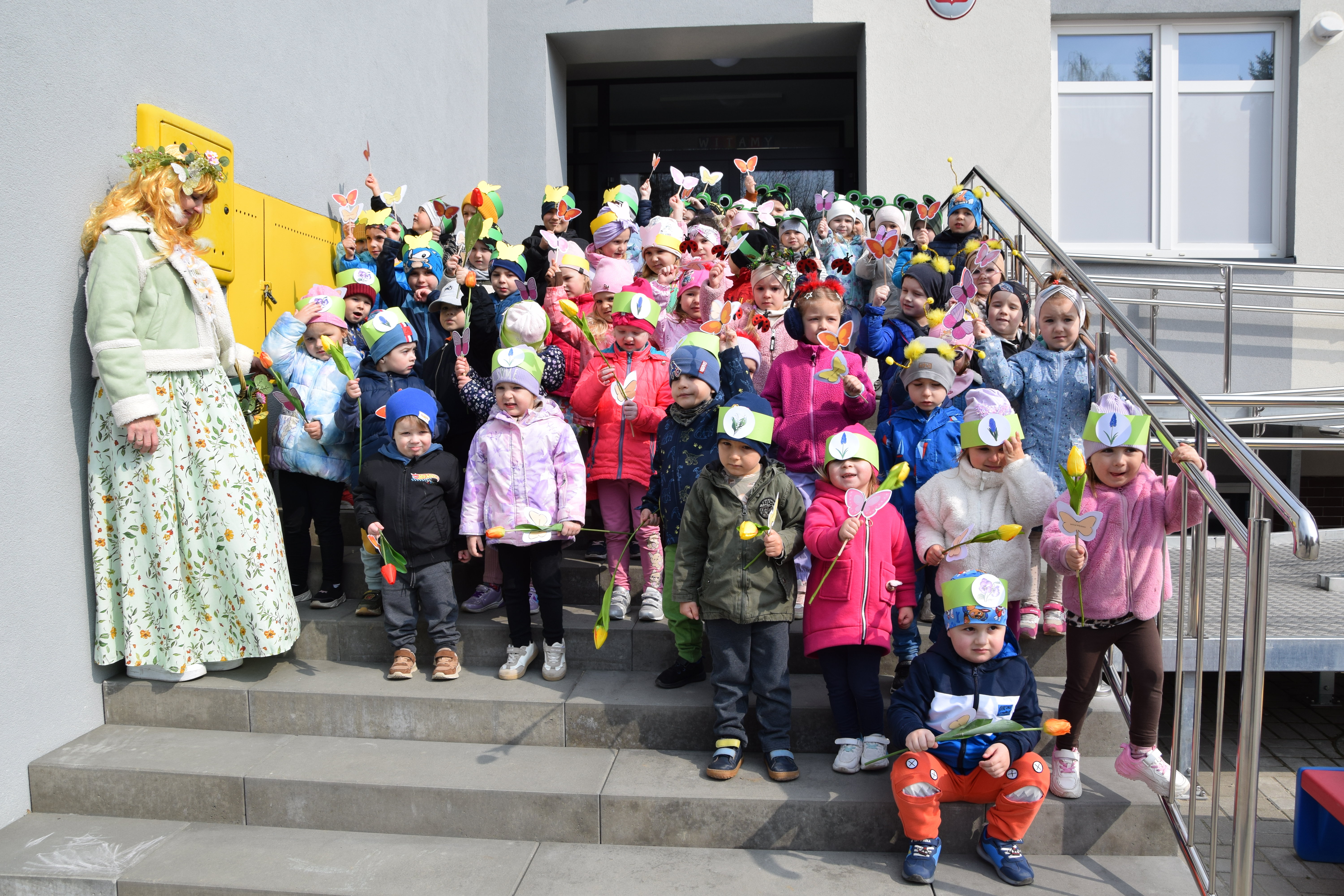 Dnia 20.03.2026 r. przedszkolaków odwiedził specjalny gość - Pani Wiosna, która obdarowała nas kwiatami oraz matylkami.