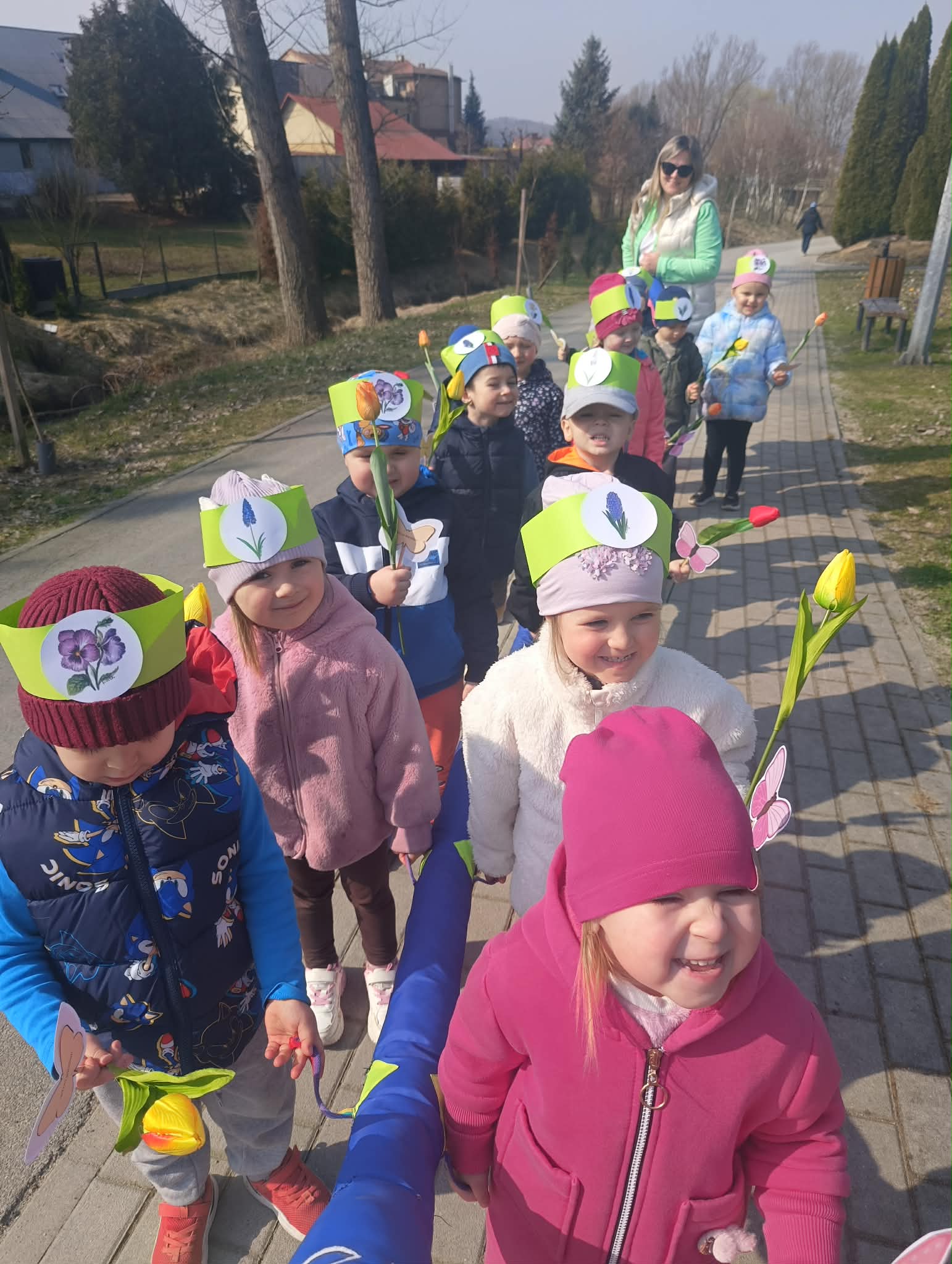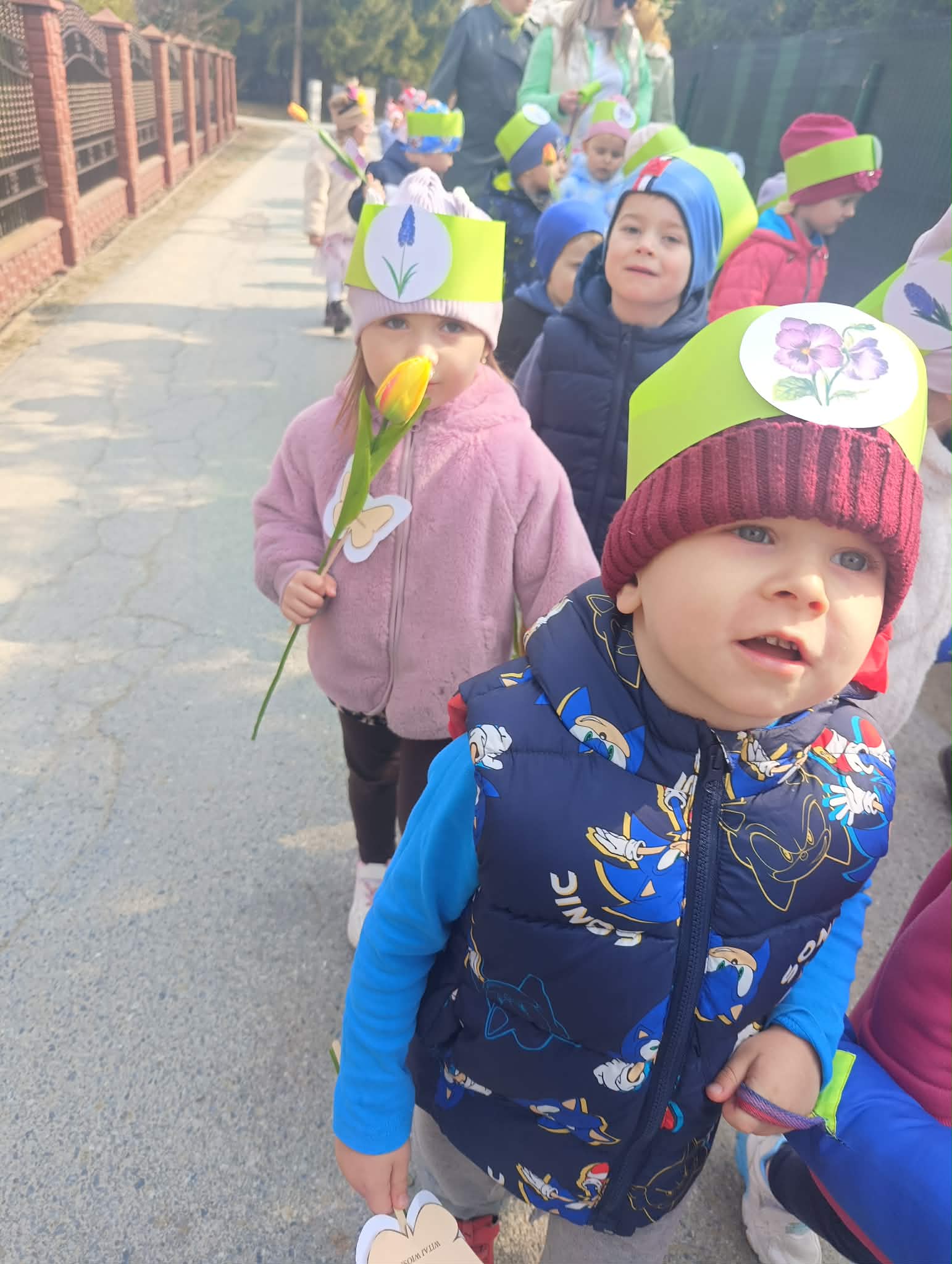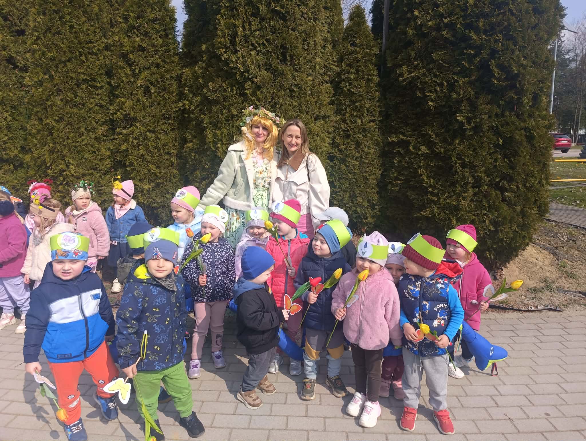 Pierwszy dzień nowej pory roku był dla nas wielkim wydarzeniem pełnym uśmiechu, śpiewu i radości. Do naszego przedszkola zawitała Pani Wiosna, która zaprosiła wszystkie dzieci na piękny i kolorowy spacer ulicami naszej miejscowości.