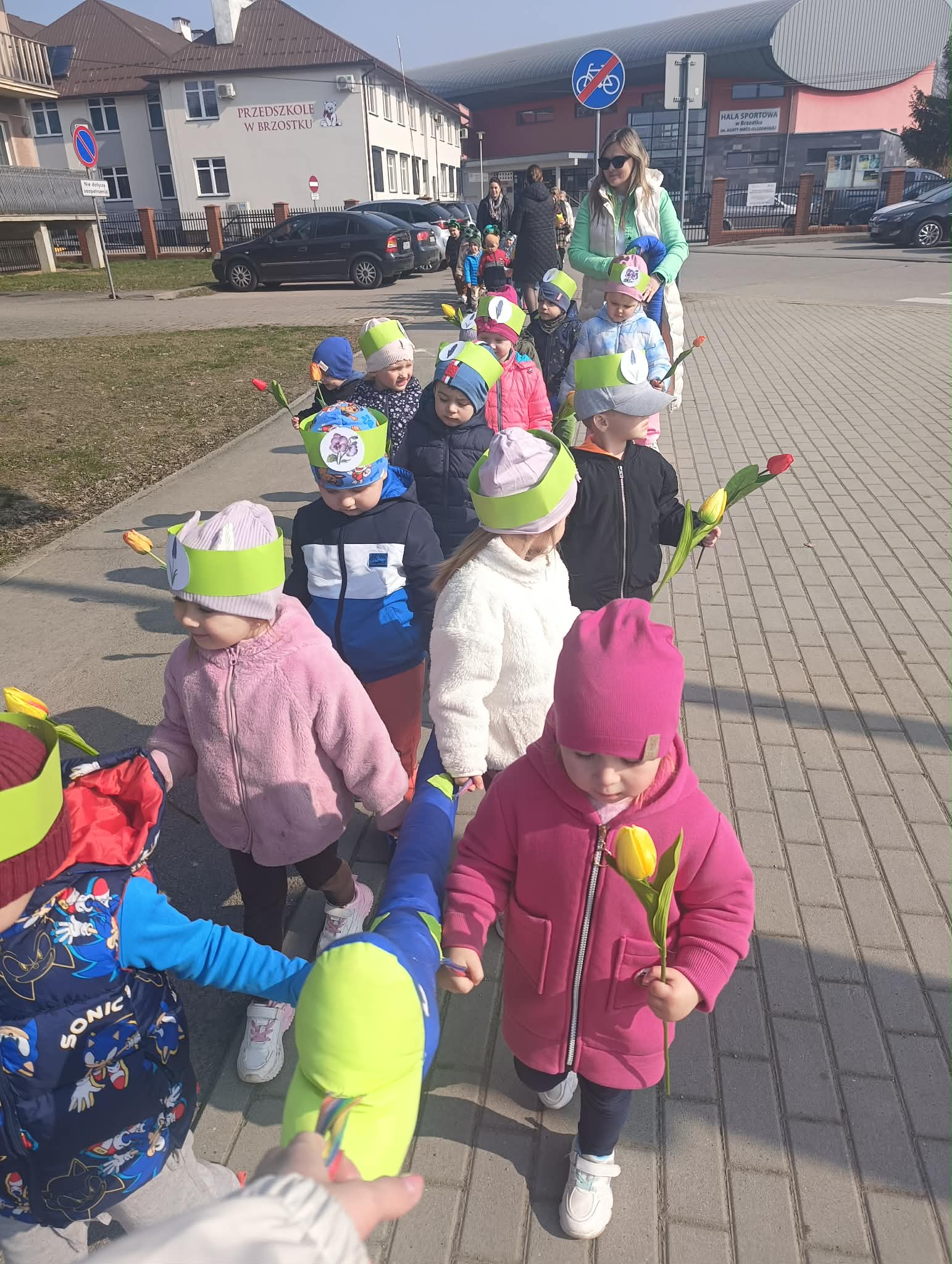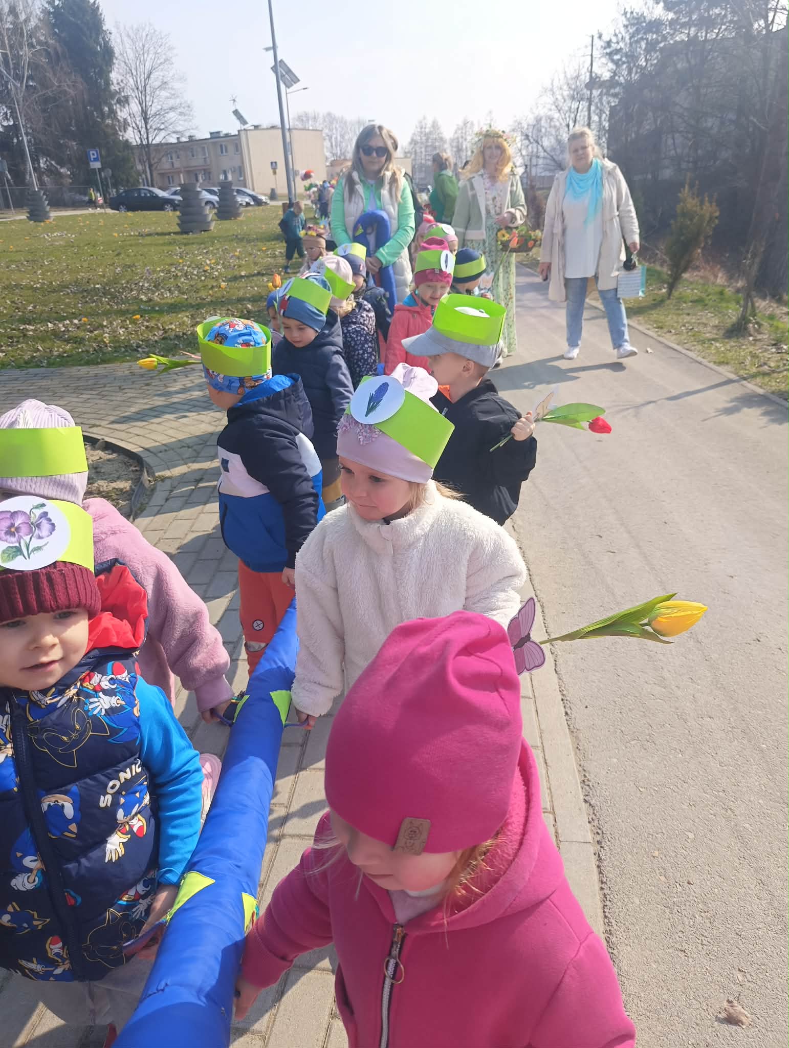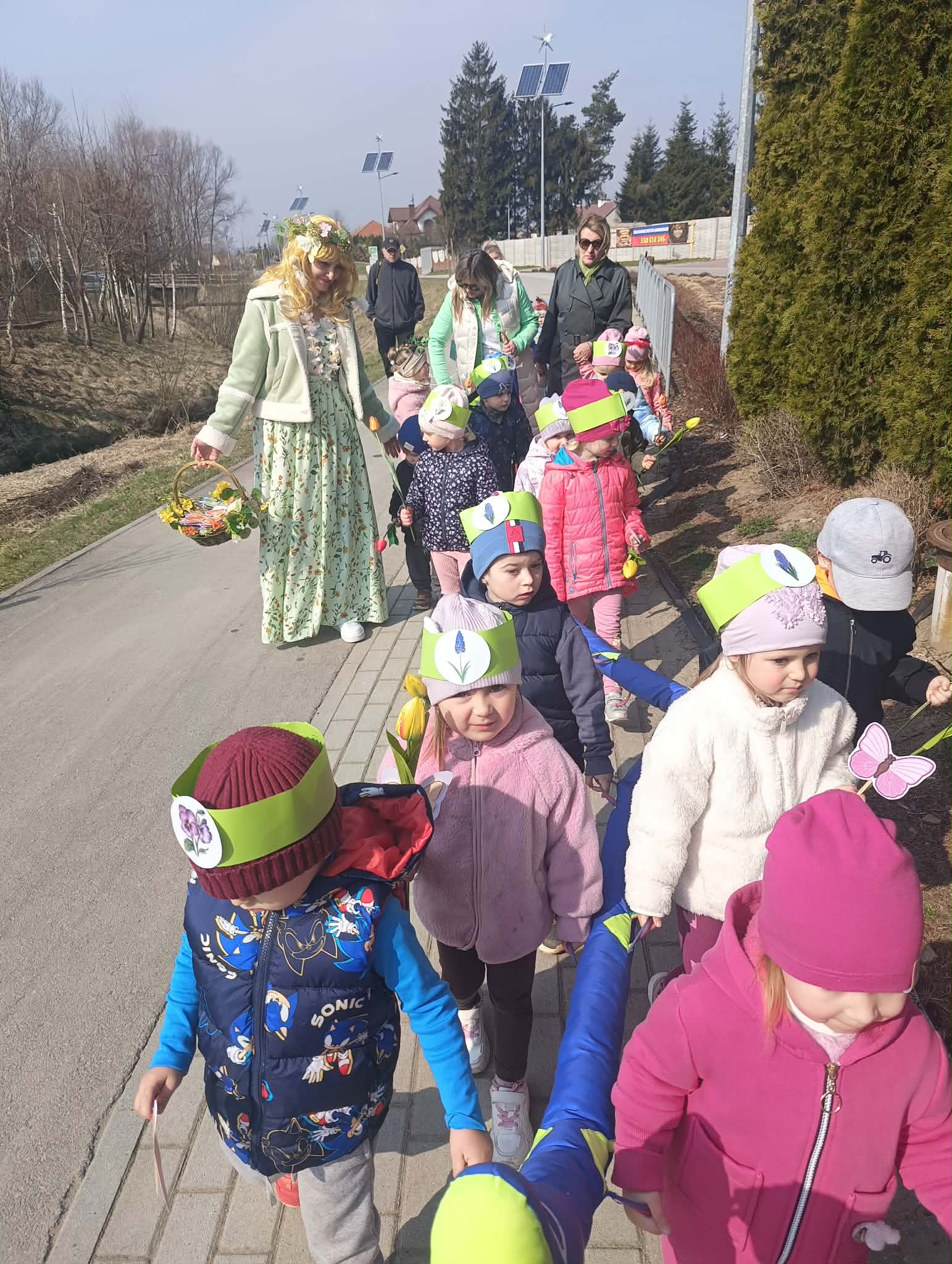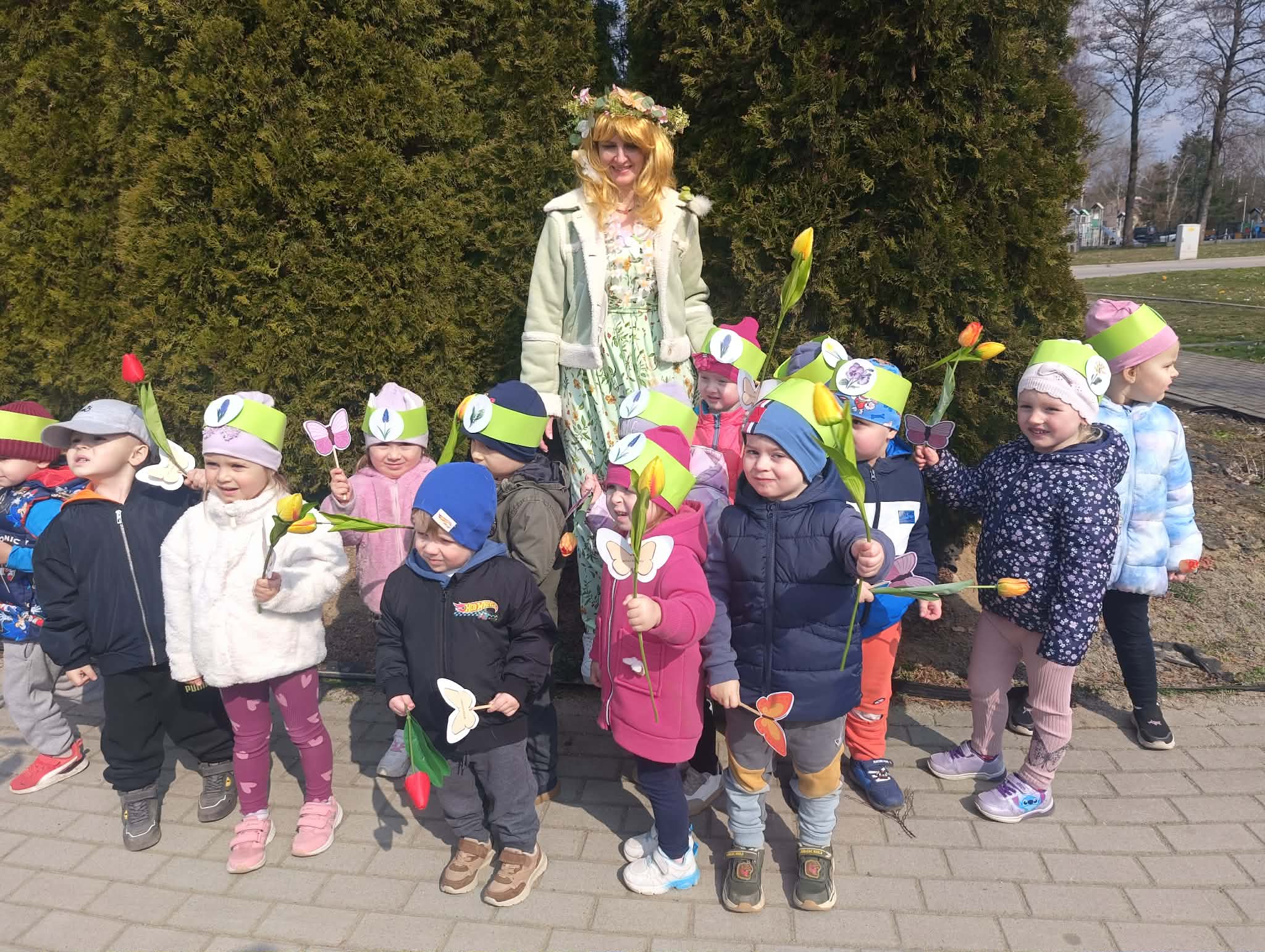 Pierwszy dzień nowej pory roku był dla nas wielkim wydarzeniem pełnym uśmiechu, śpiewu i radości. Do naszego przedszkola zawitała Pani Wiosna, która zaprosiła wszystkie dzieci na piękny i kolorowy spacer ulicami naszej miejscowości.