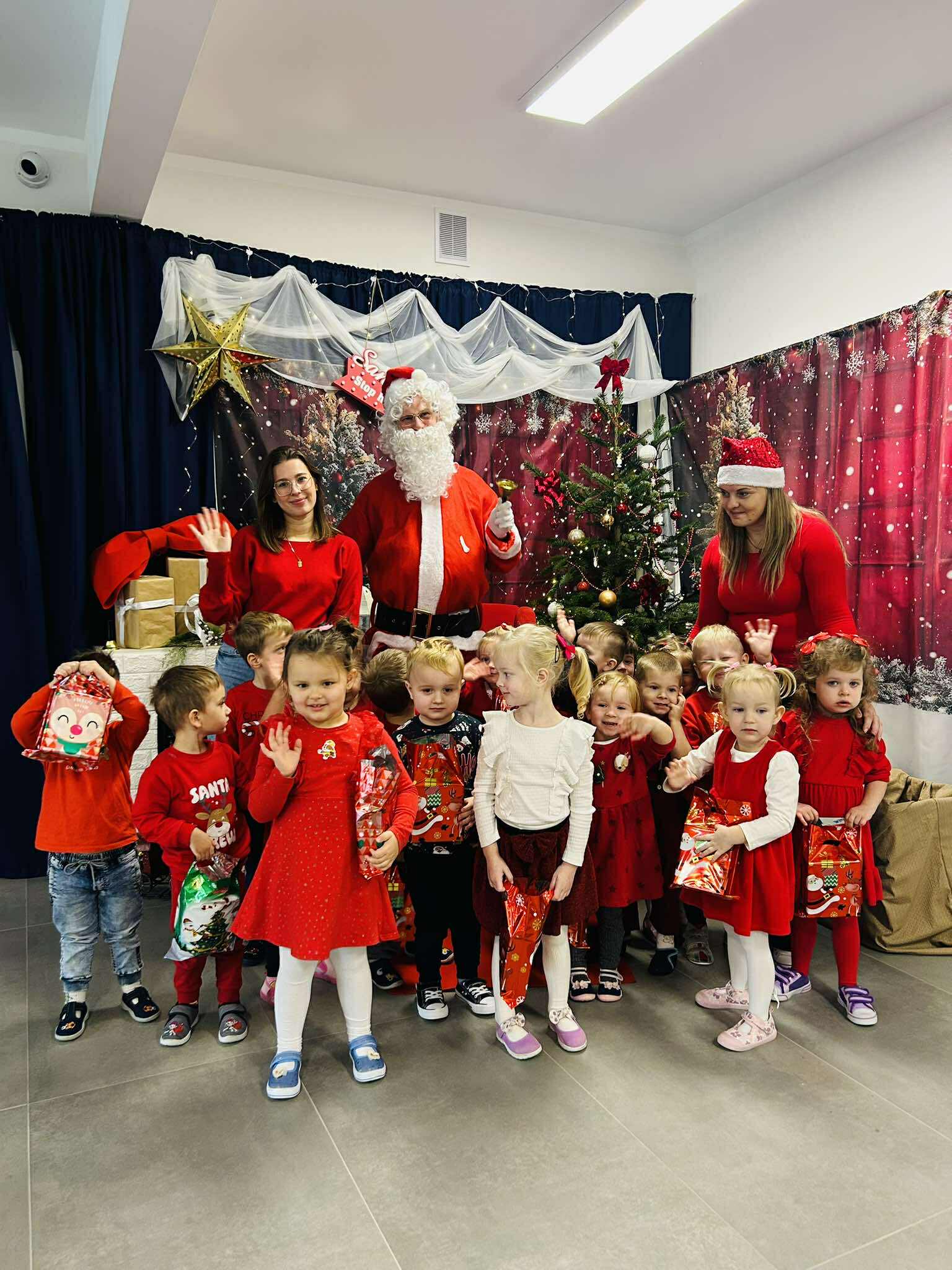 Wizyta Mikołaja w naszym przedszkolu to jeden z najbardziej oczekiwanych przez dzieci dni w roku. Dzieci przygotowywały się do tej wizyty bardzo starannie. Przedszkolaki napisały listy do Mikołaja, pilnie uczyły się piosenek i wierszyków. Od samego rana również oczekiwały Mikołaja zerkając przez okna… Gdy już przybył… przedszkolaki z ogromną radością przywitały tego niecodziennego gościa, na którego czekały cały rok. Podczas spotkania Mikołaj z wielką radością wysłuchał piosenek i wierszy które przygotowały dzieci. Na zakończenie Mikołaj wszystkim grzecznym dzieciom rozdał wspaniałe prezenty i zapewnił, że za rok znowu nas odwiedzi. Wizyta wyjątkowego gościa wprowadziła wszystkich w radosny klimat zbliżających się Świąt Bożego Narodzenia.